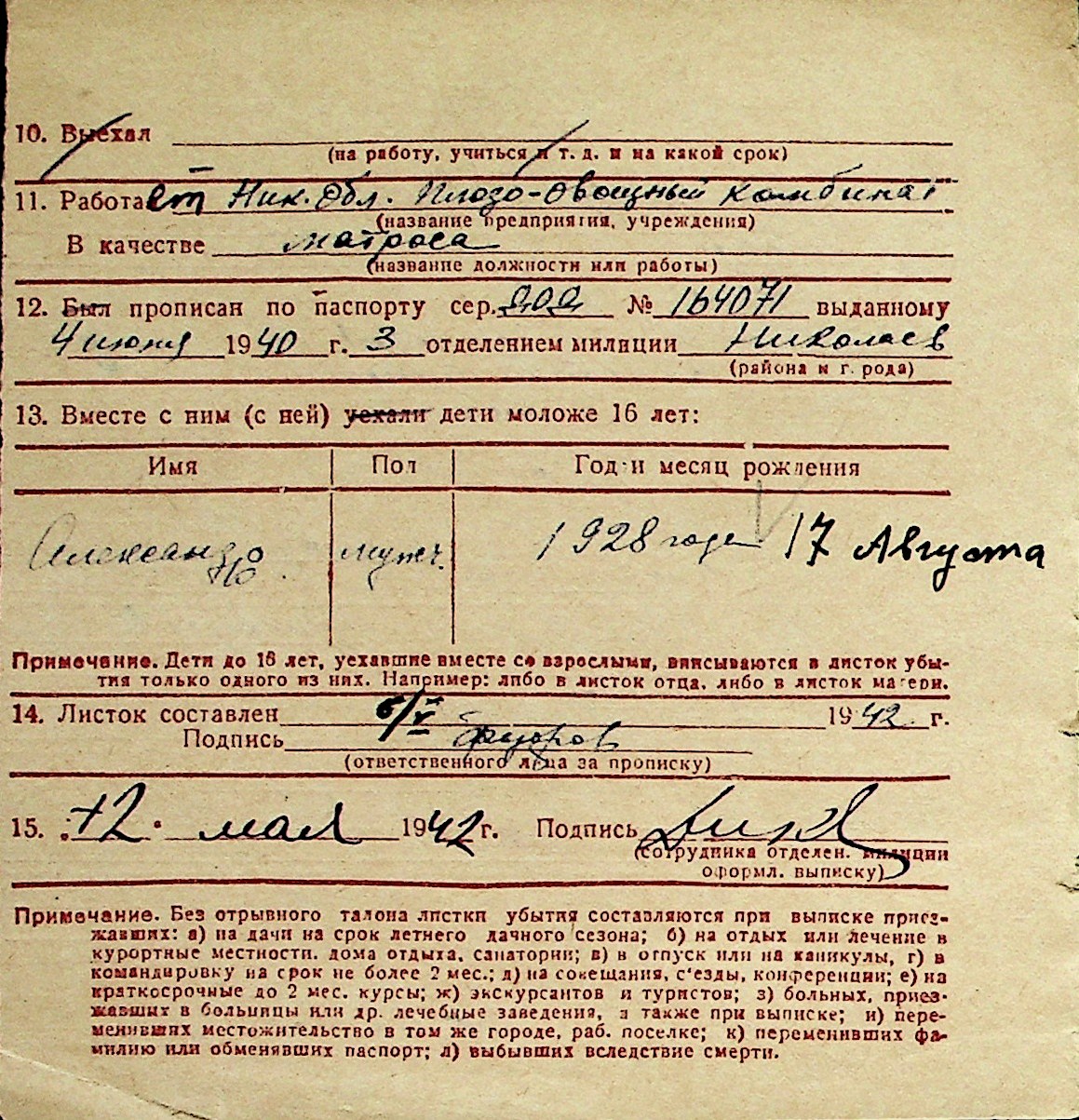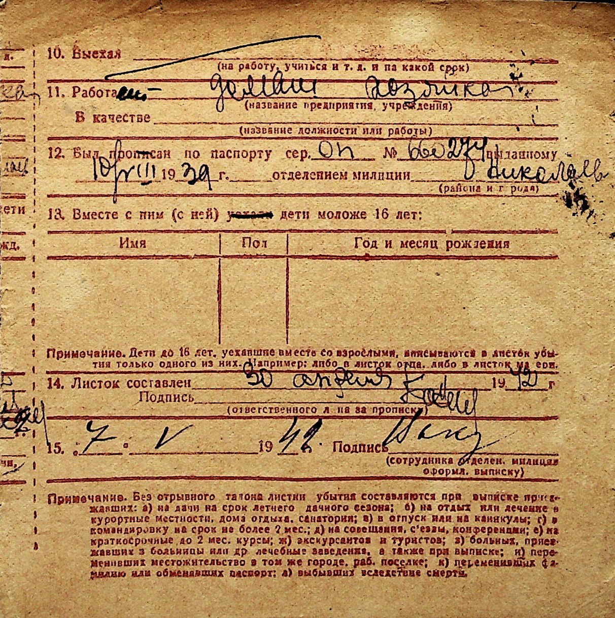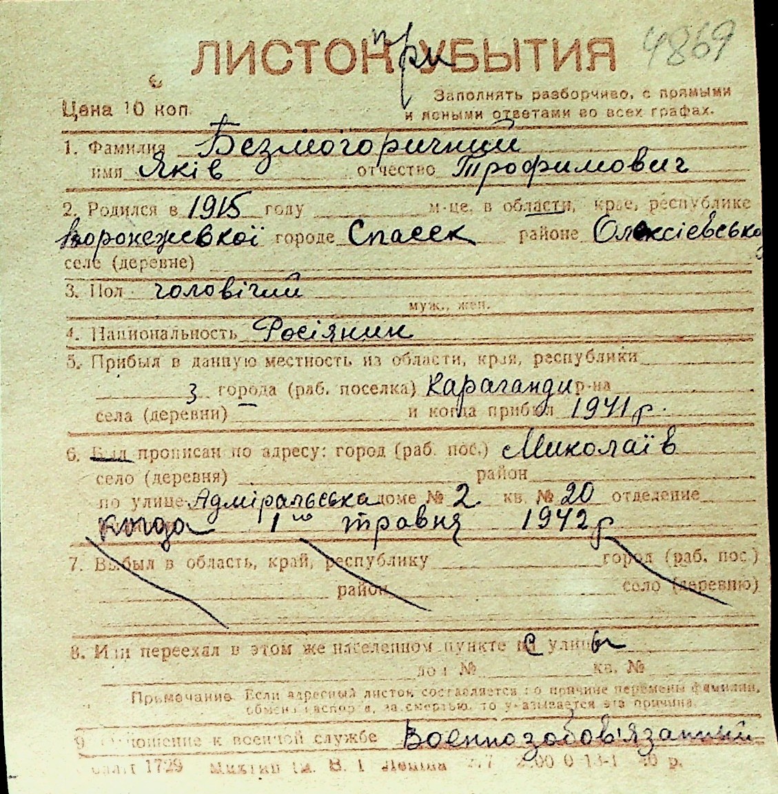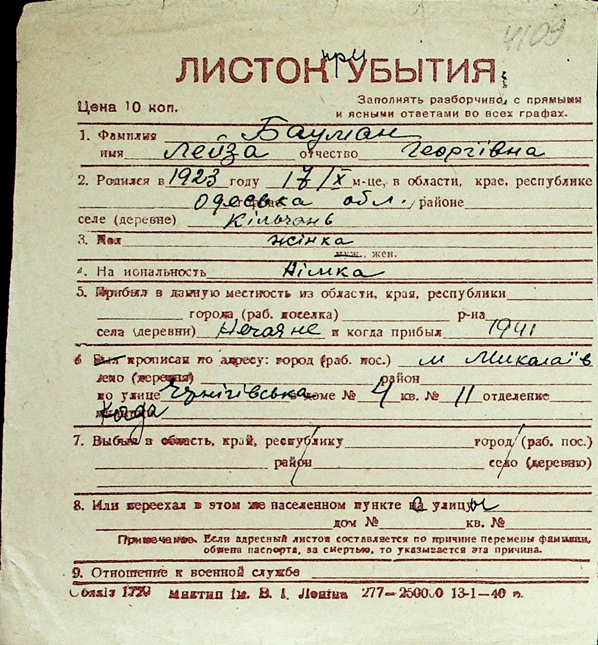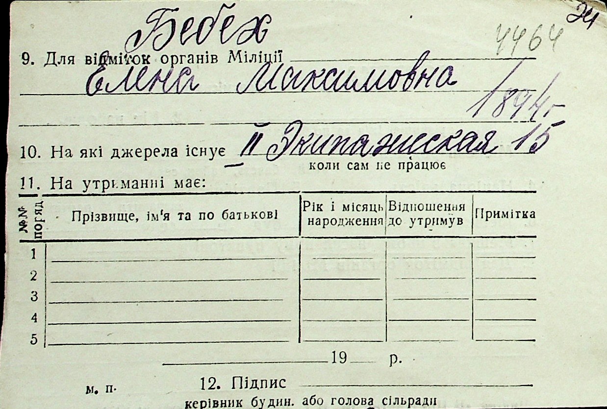 ◦ ◦ Перелік карток на осіб, які мешкали у м. Миколаїв у період окупації 1941–1944 років