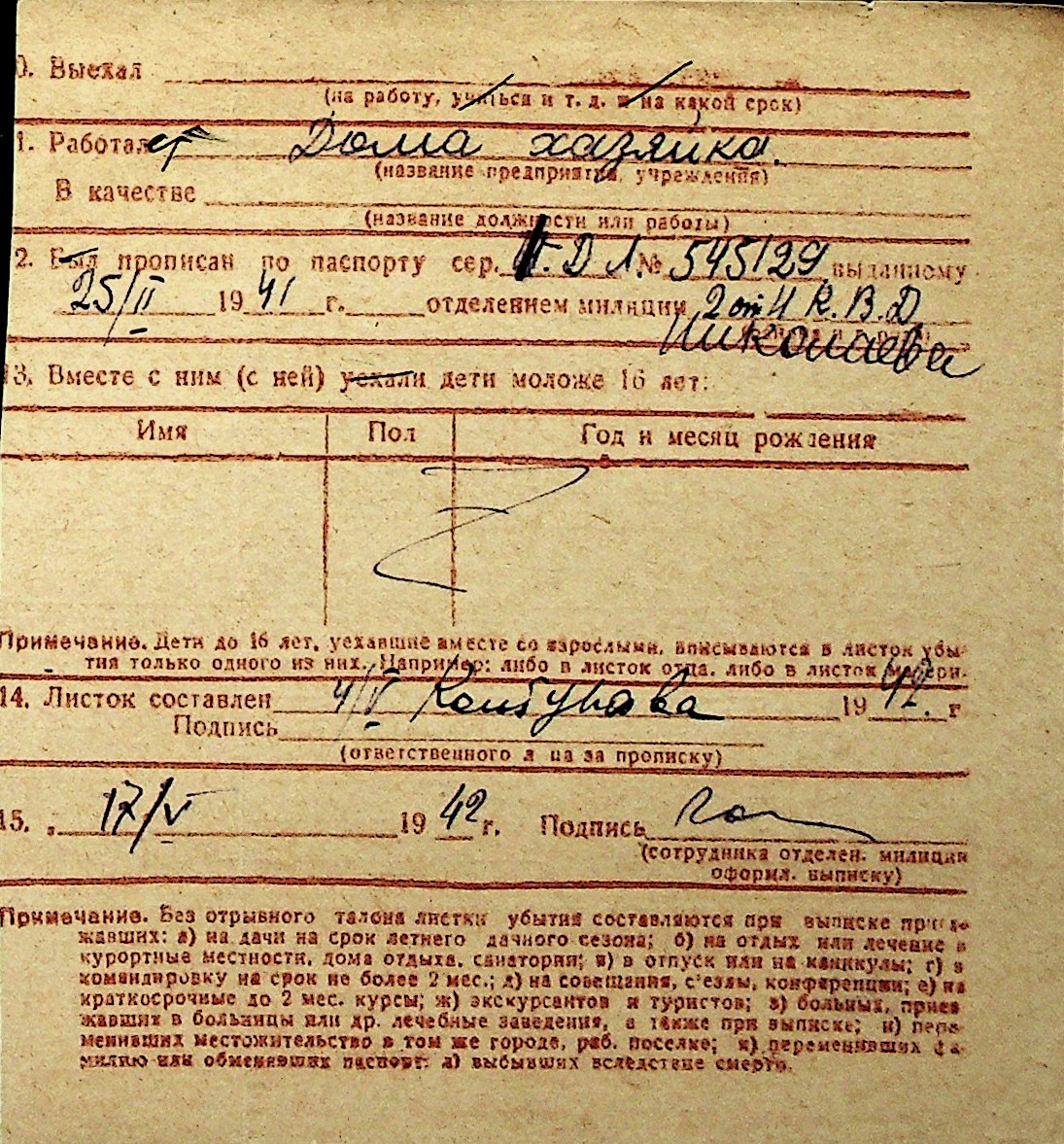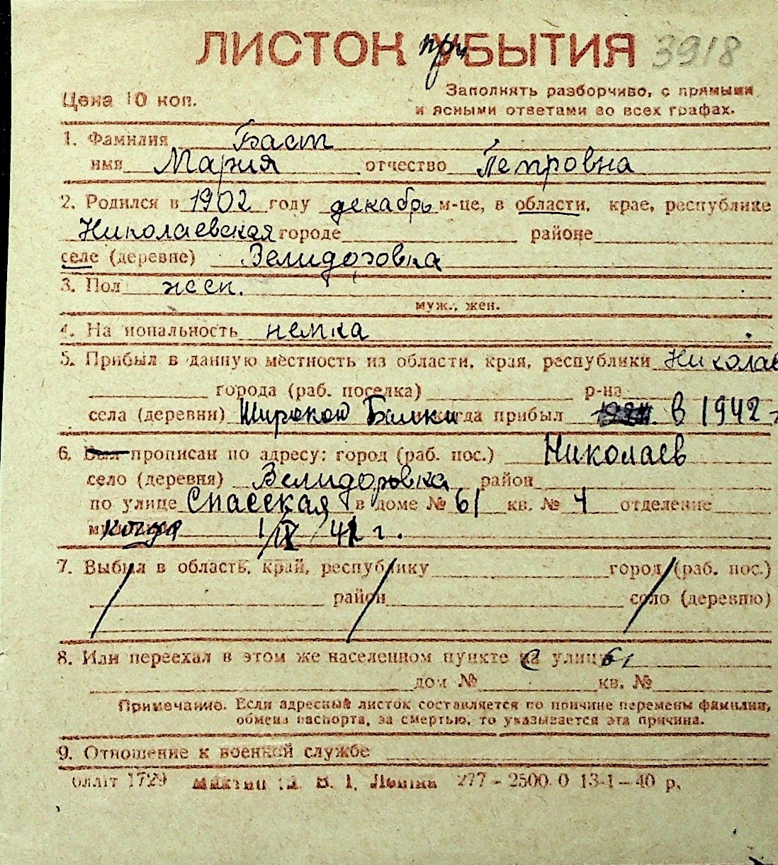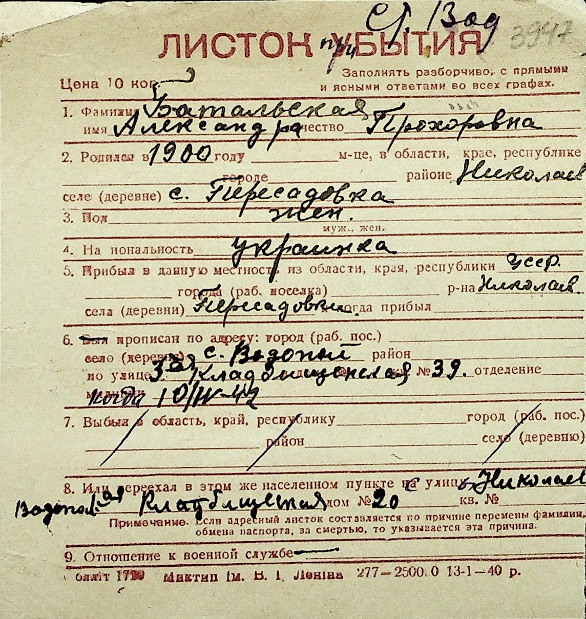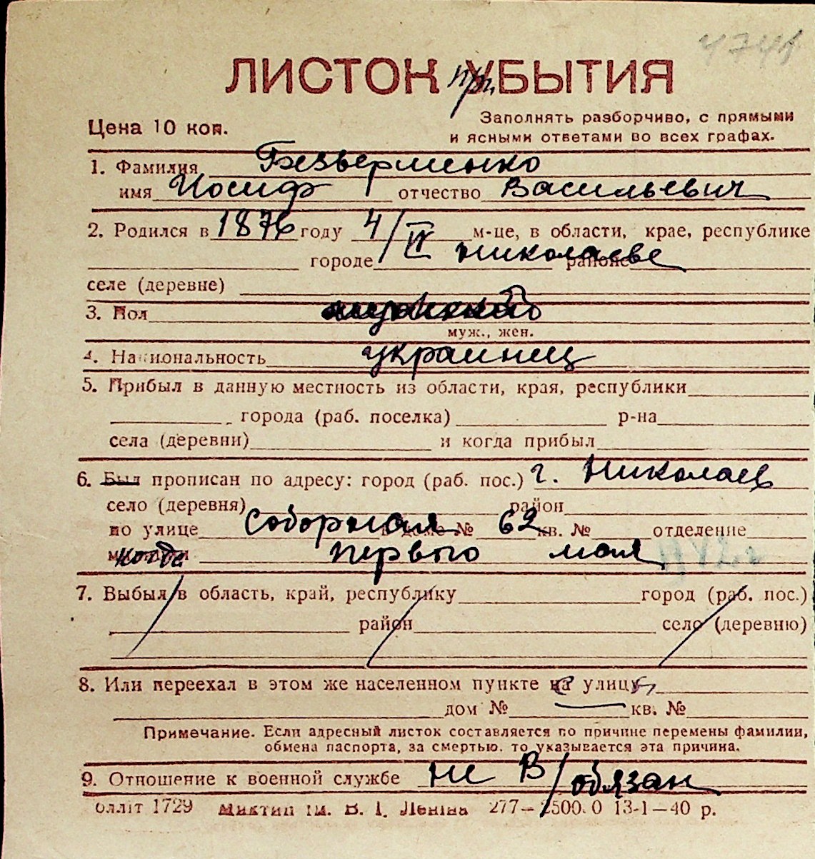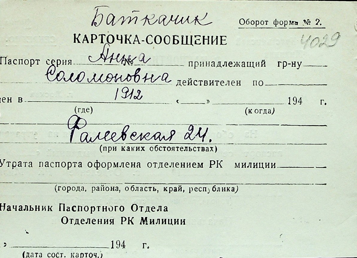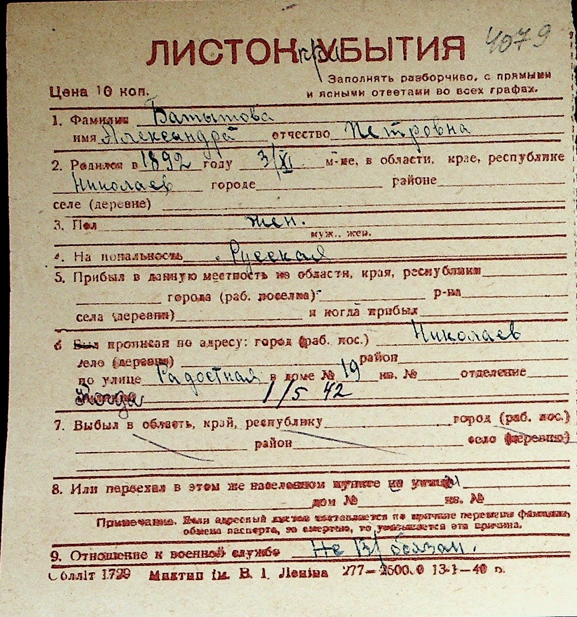 ◦ ◦ Перелік карток на осіб, які мешкали у м. Миколаїв у період окупації 1941–1944 років