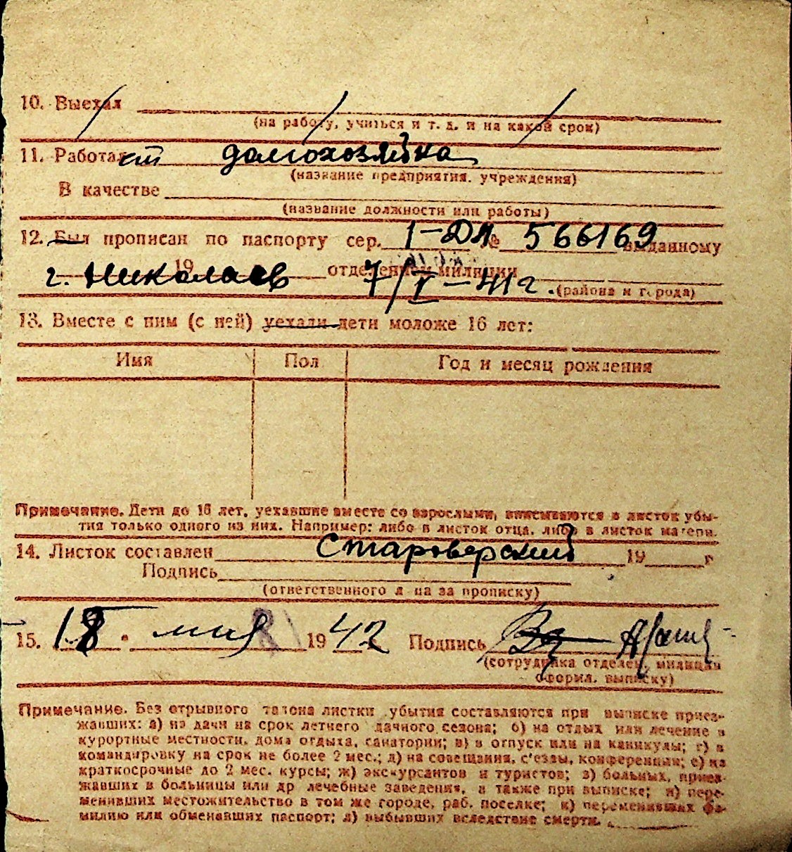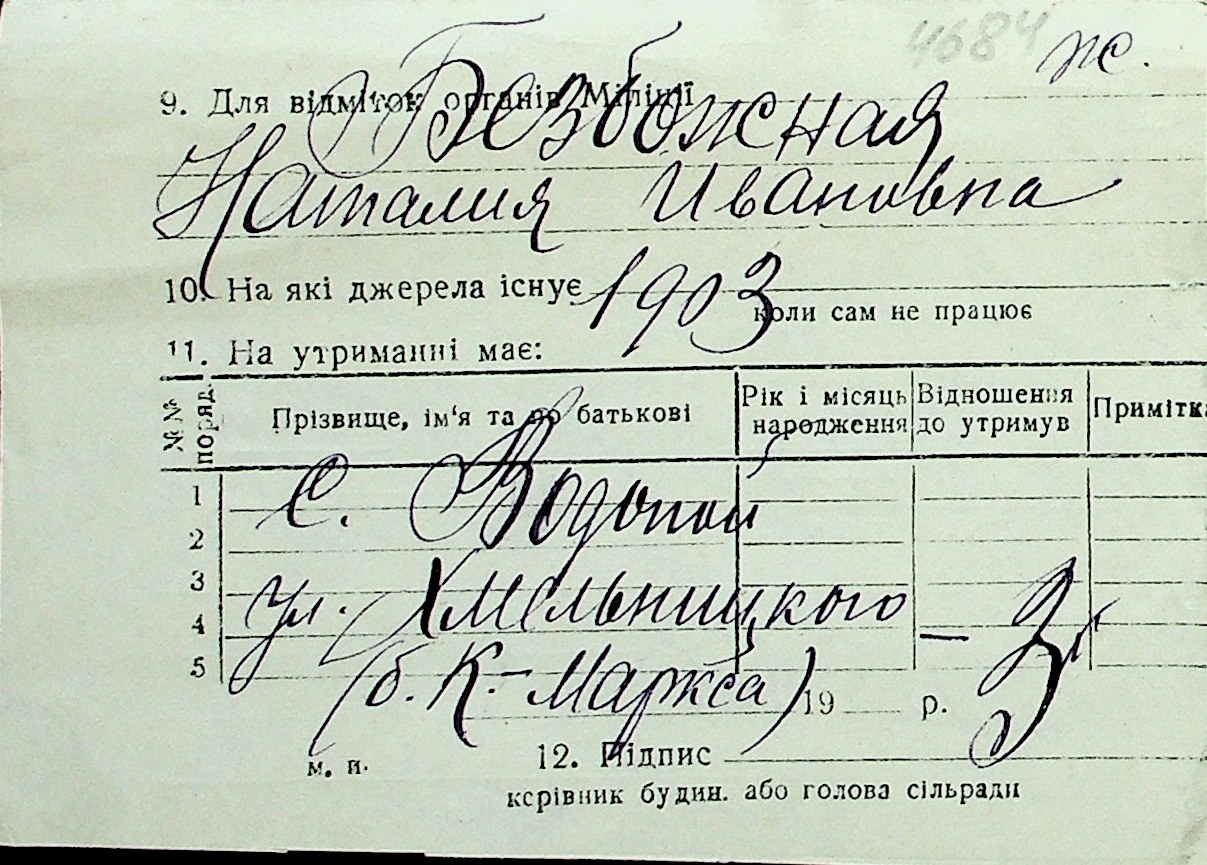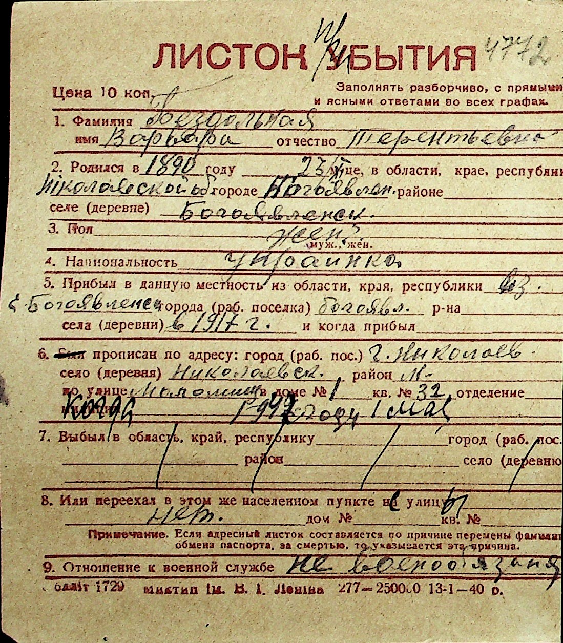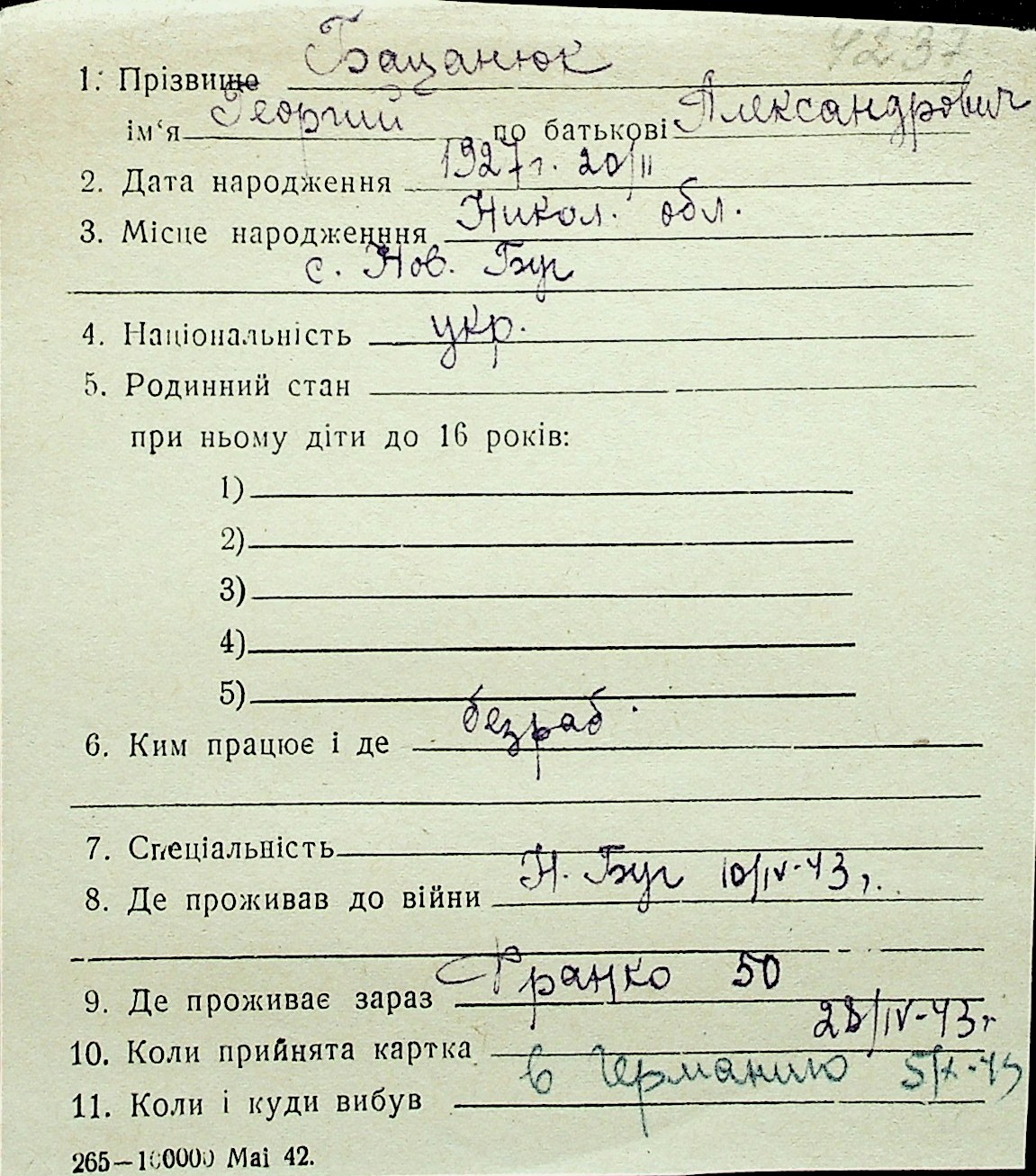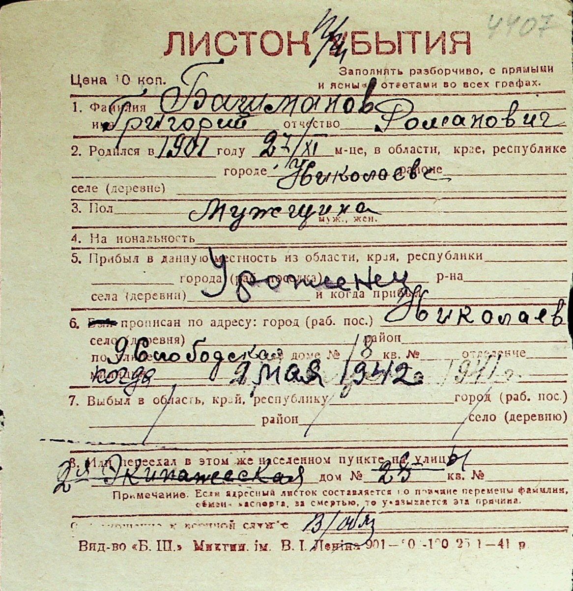 ◦ ◦ Перелік карток на осіб, які мешкали у м. Миколаїв у період окупації 1941–1944 років