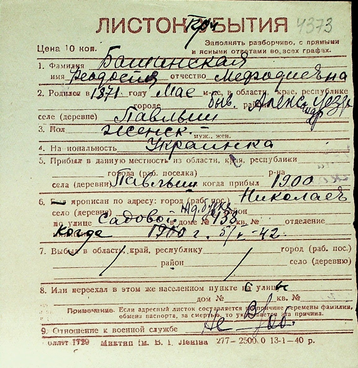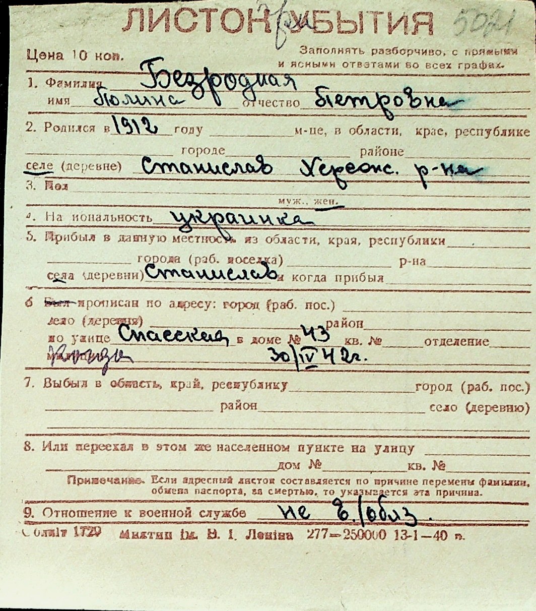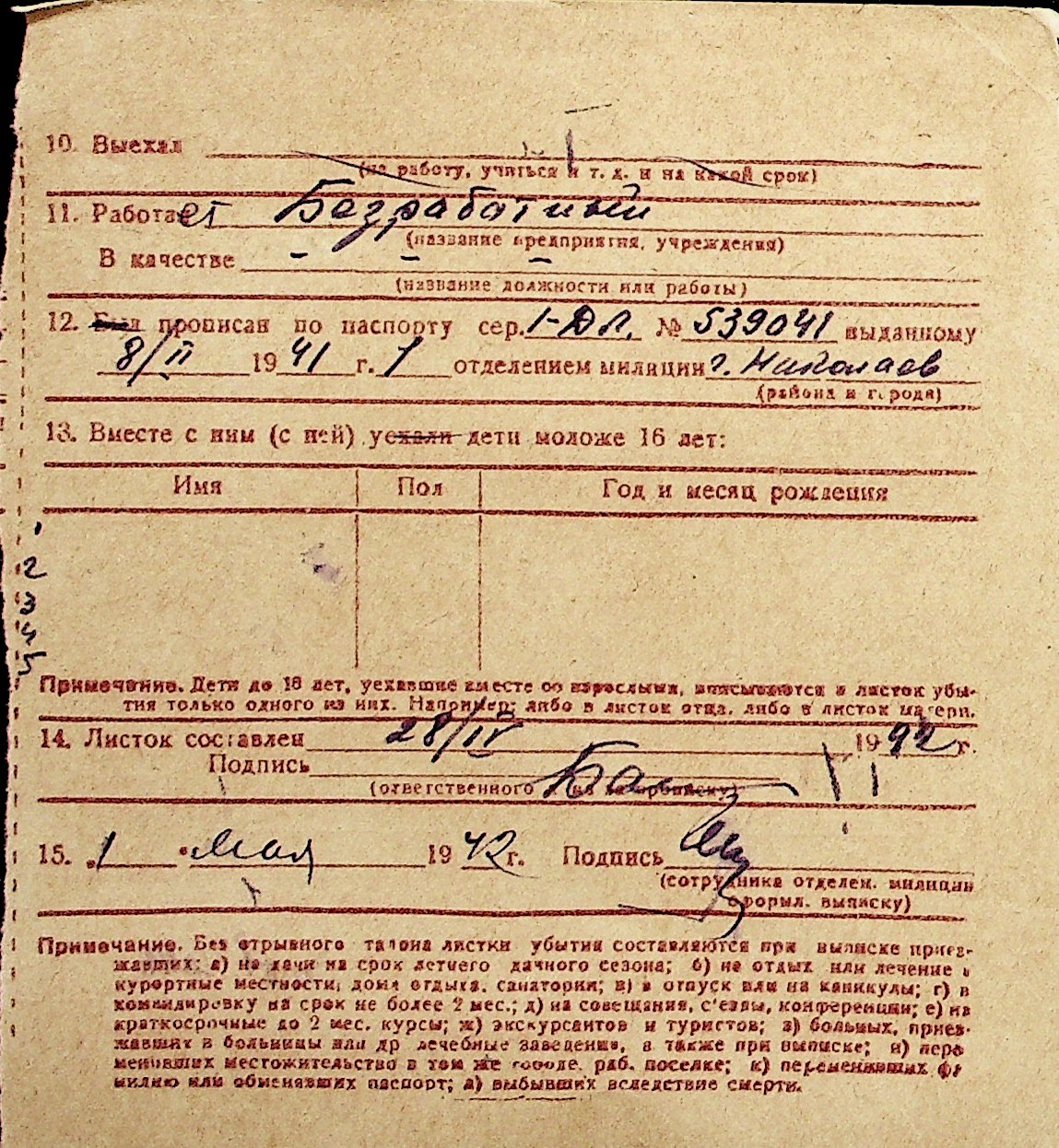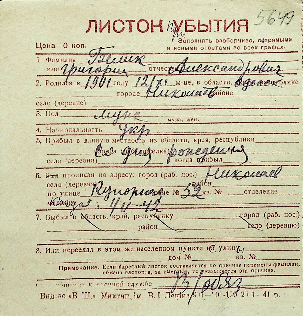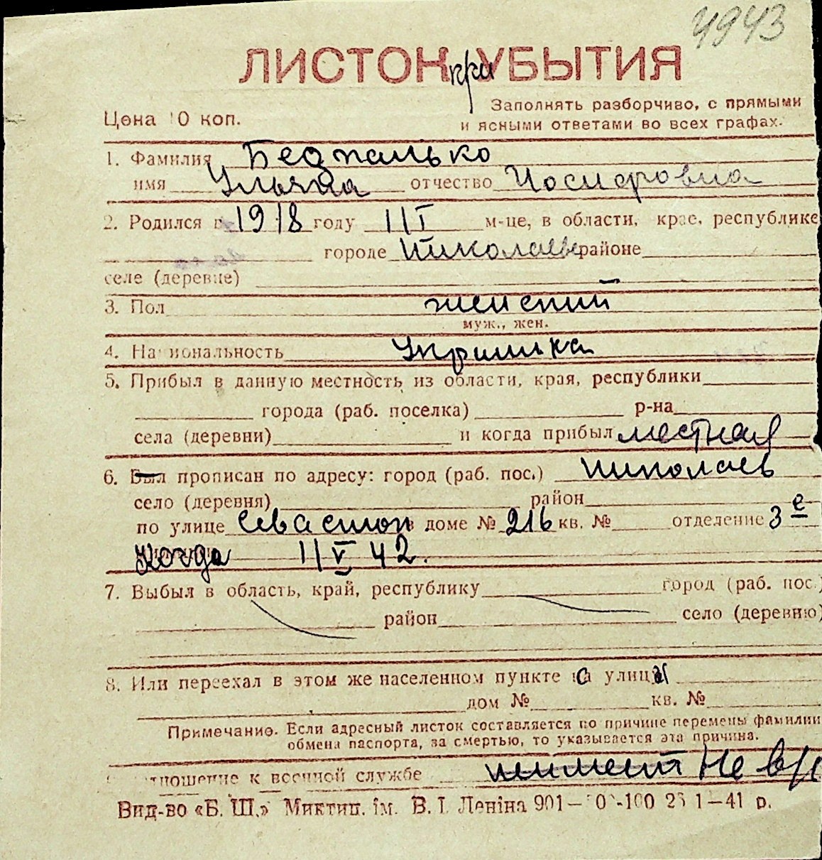 ◦ ◦ Перелік карток на осіб, які мешкали у м. Миколаїв у період окупації 1941–1944 років