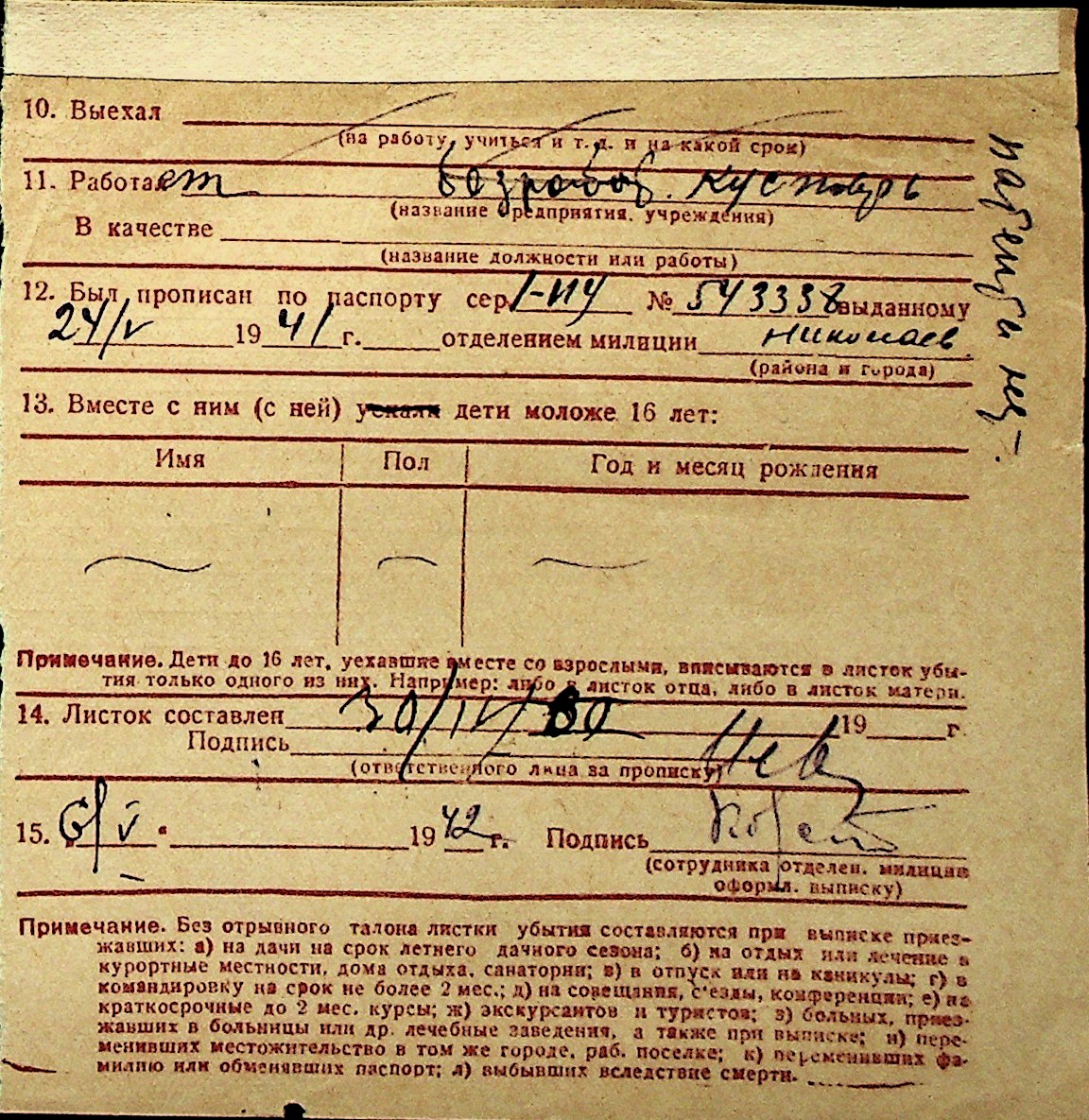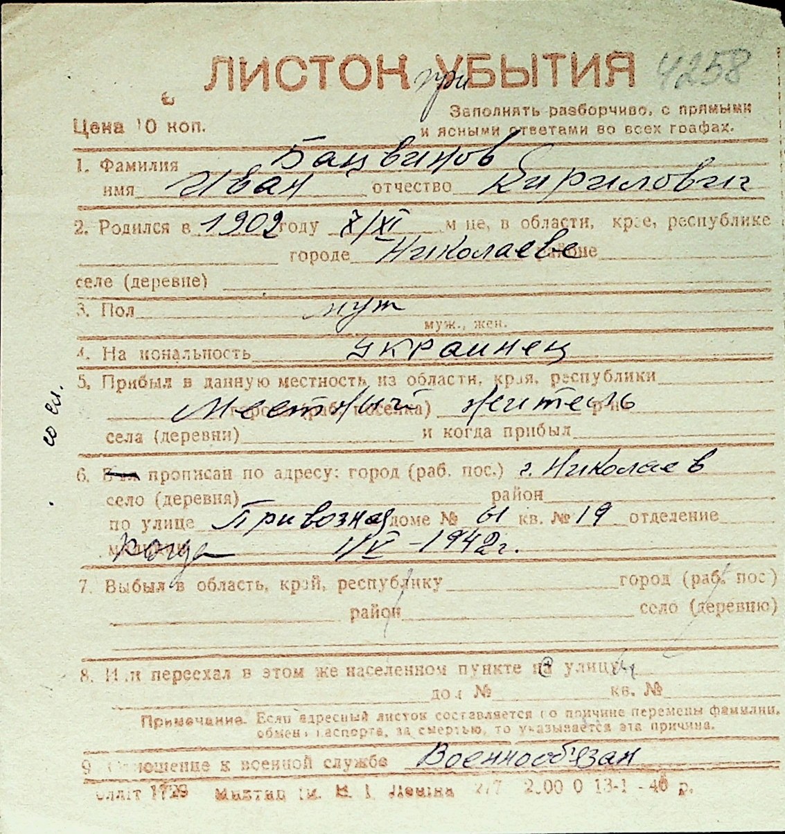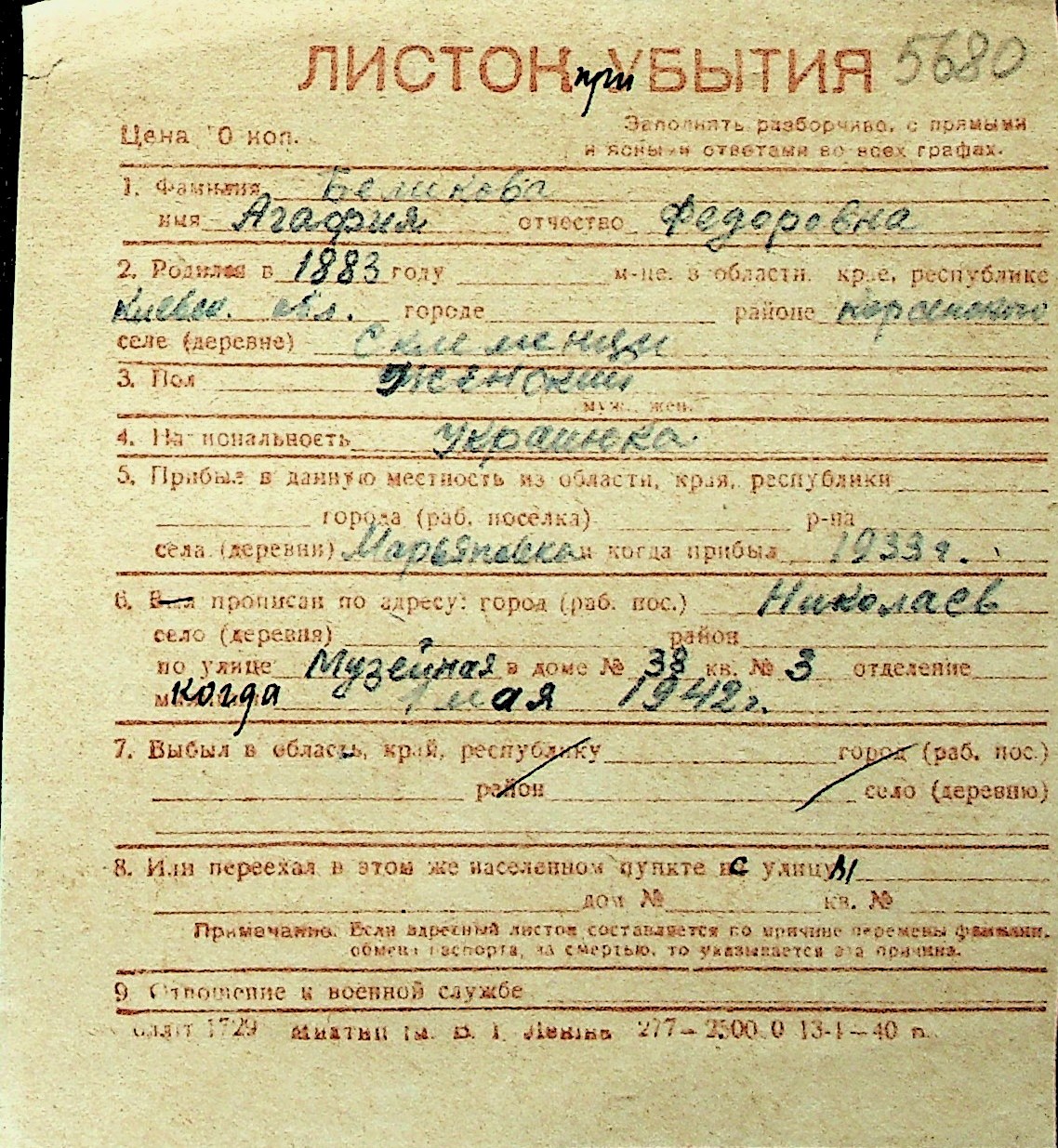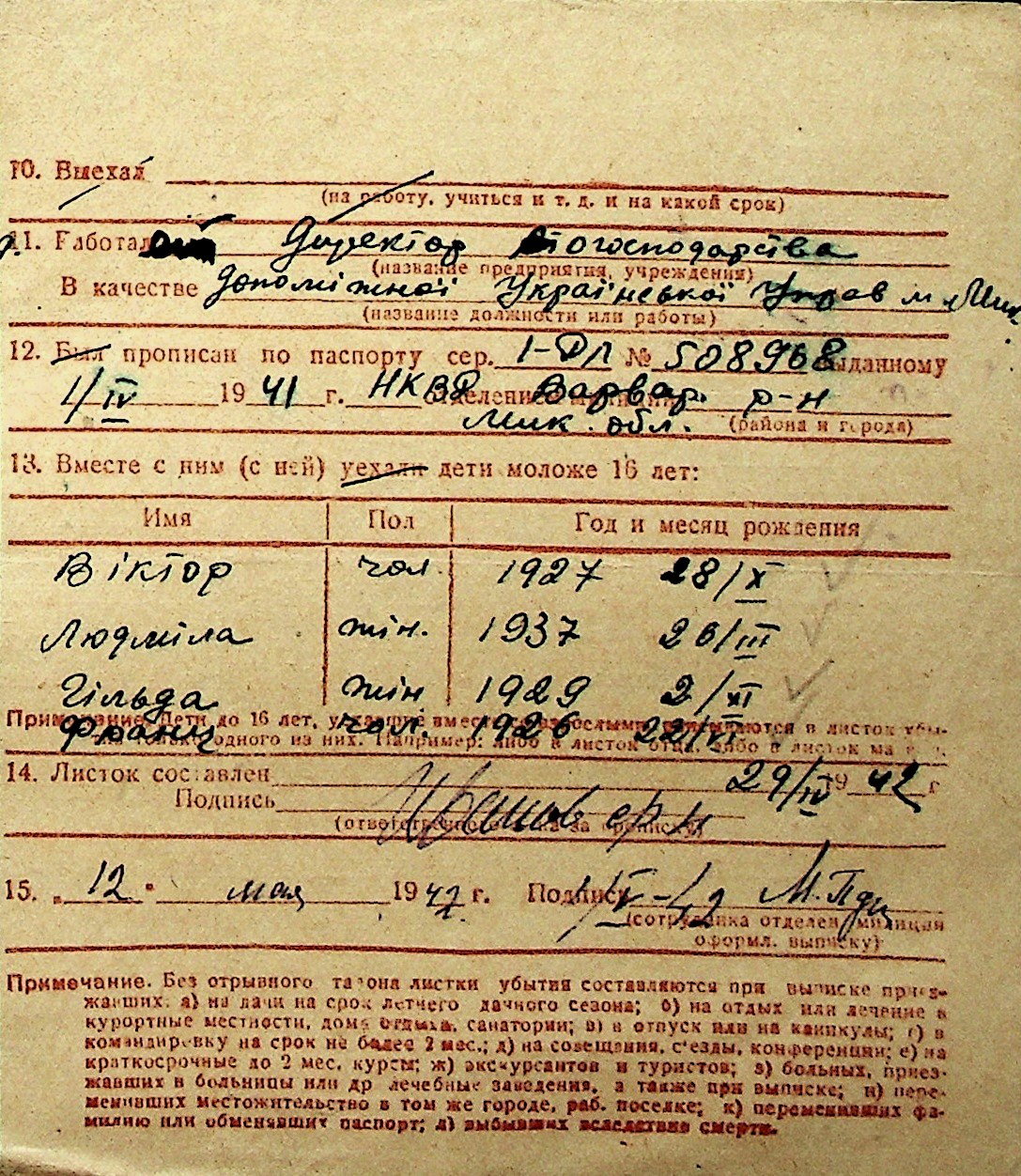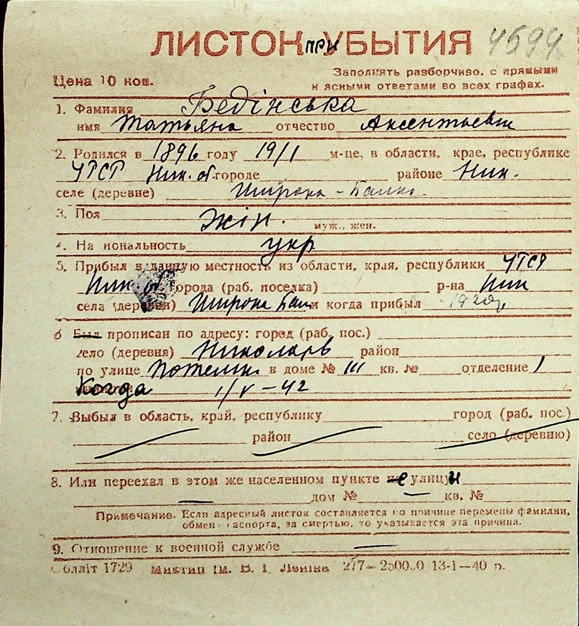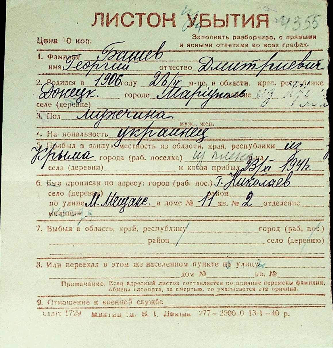 ◦ ◦ Перелік карток на осіб, які мешкали у м. Миколаїв у період окупації 1941–1944 років