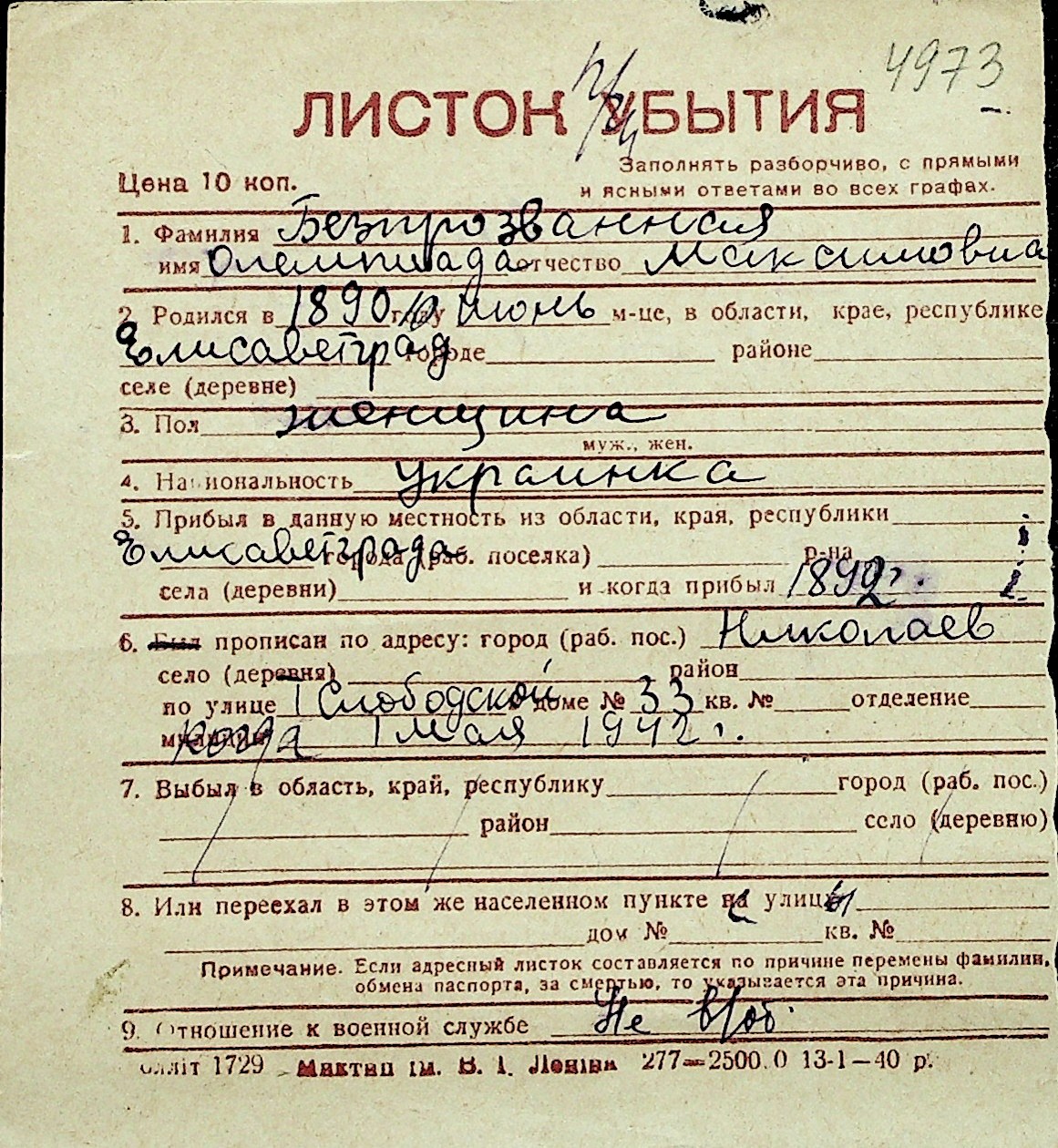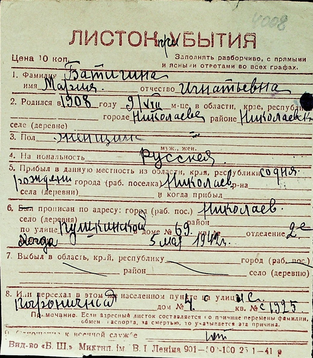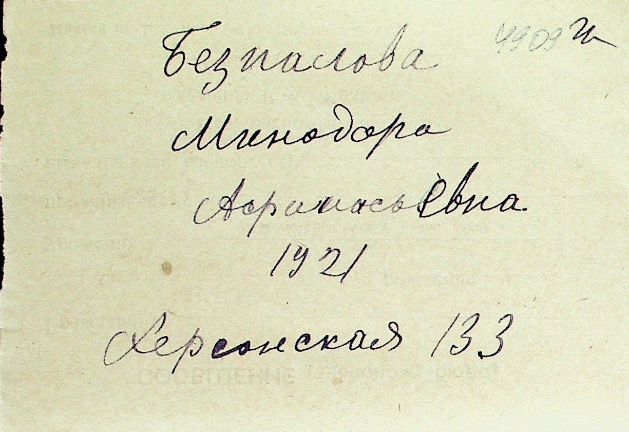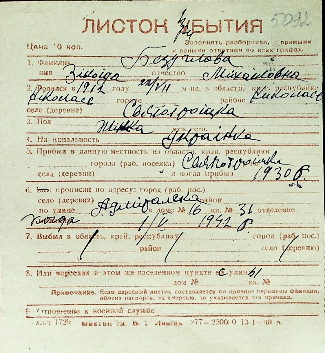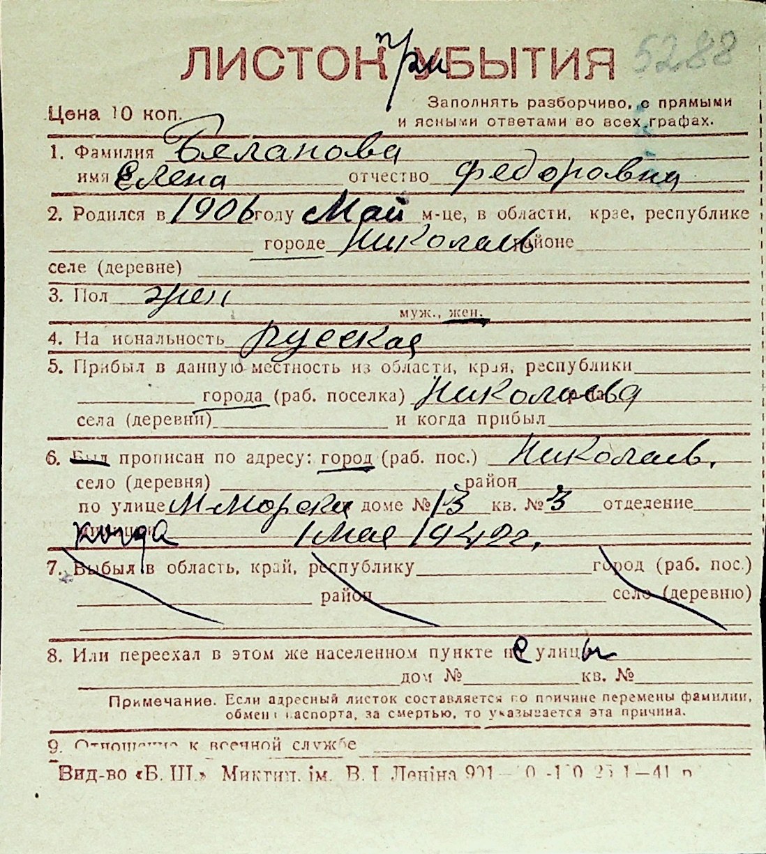 ◦ ◦ Перелік карток на осіб, які мешкали у м. Миколаїв у період окупації 1941–1944 років