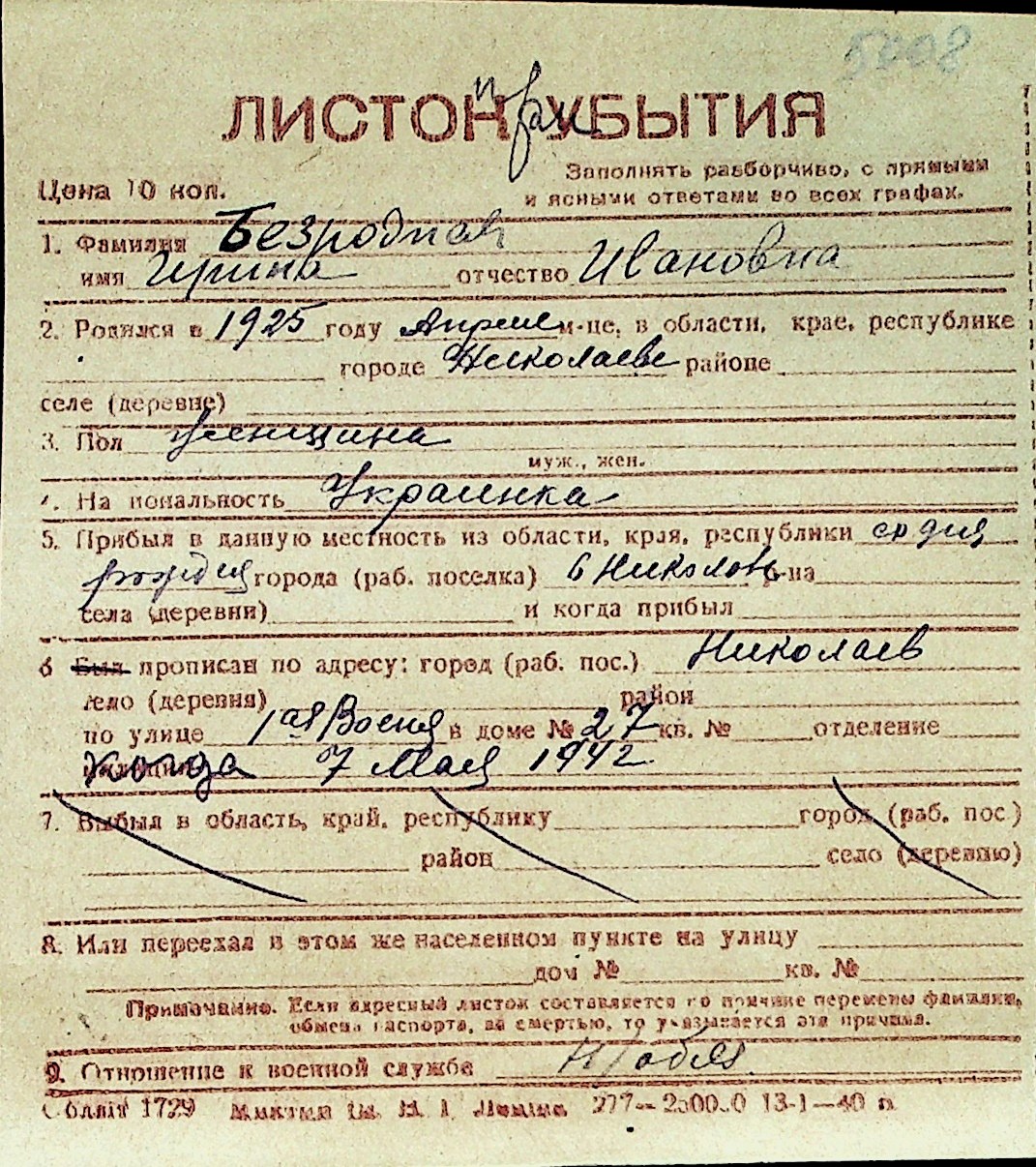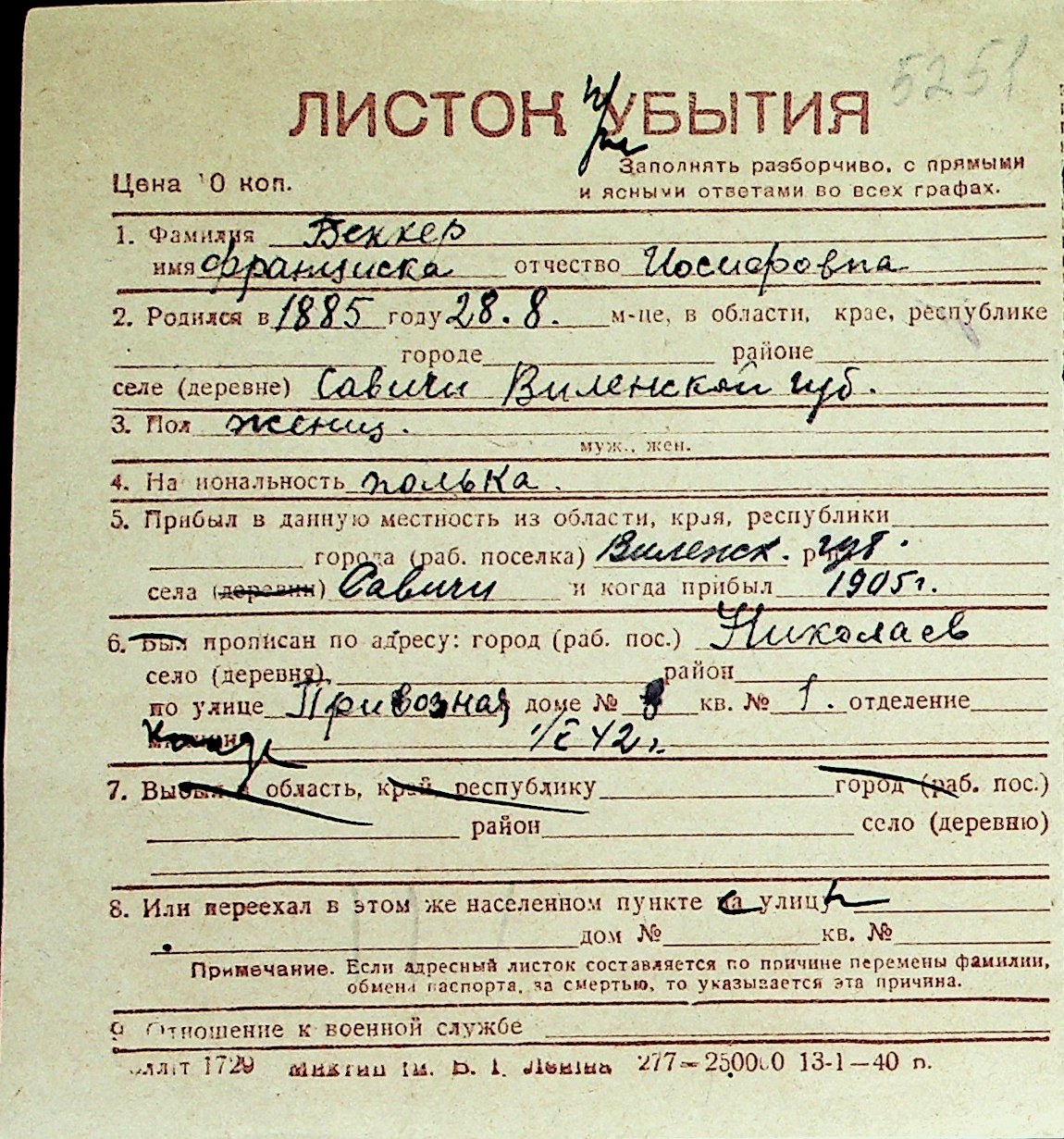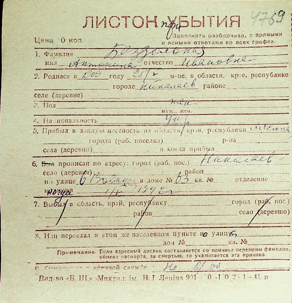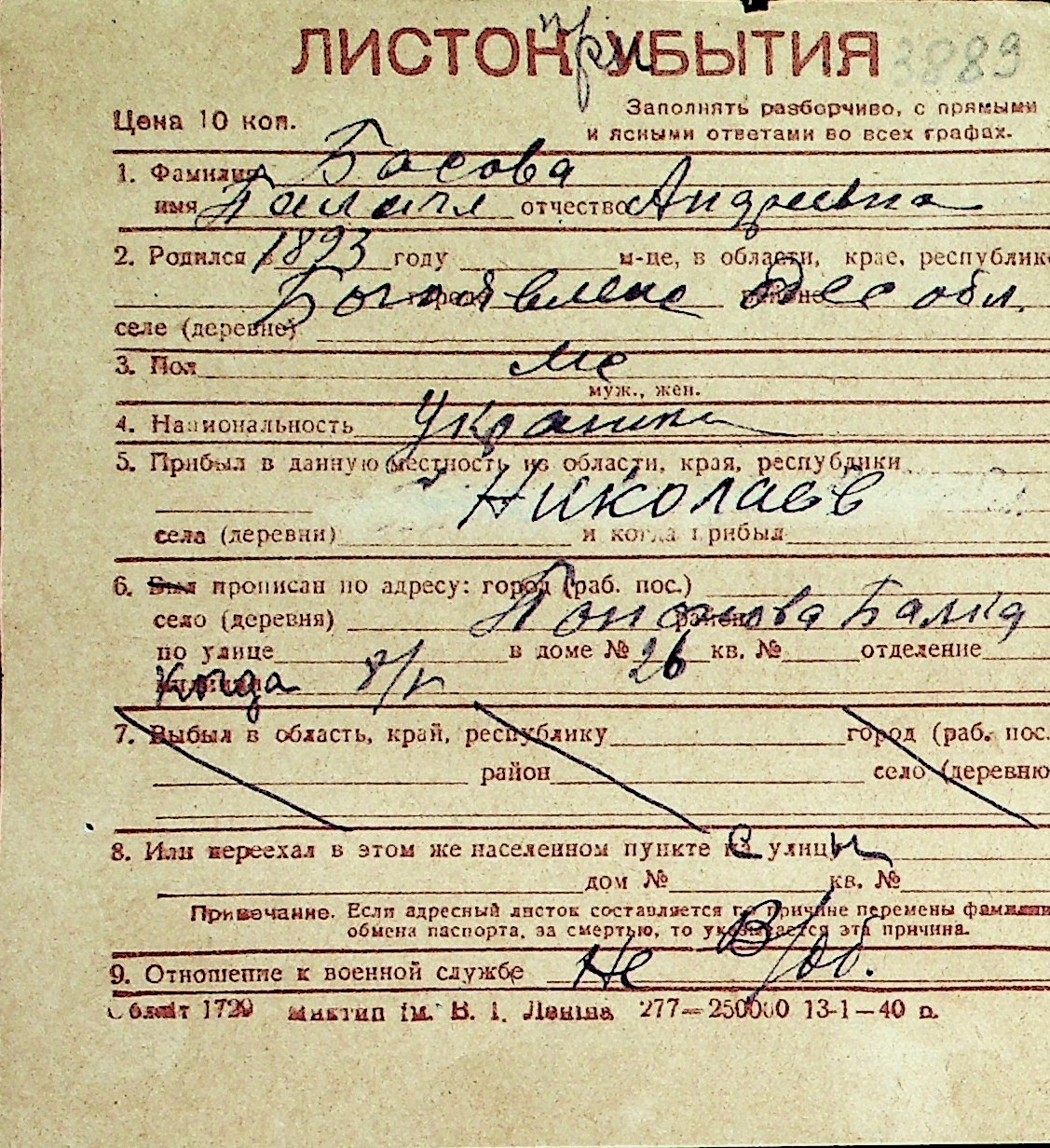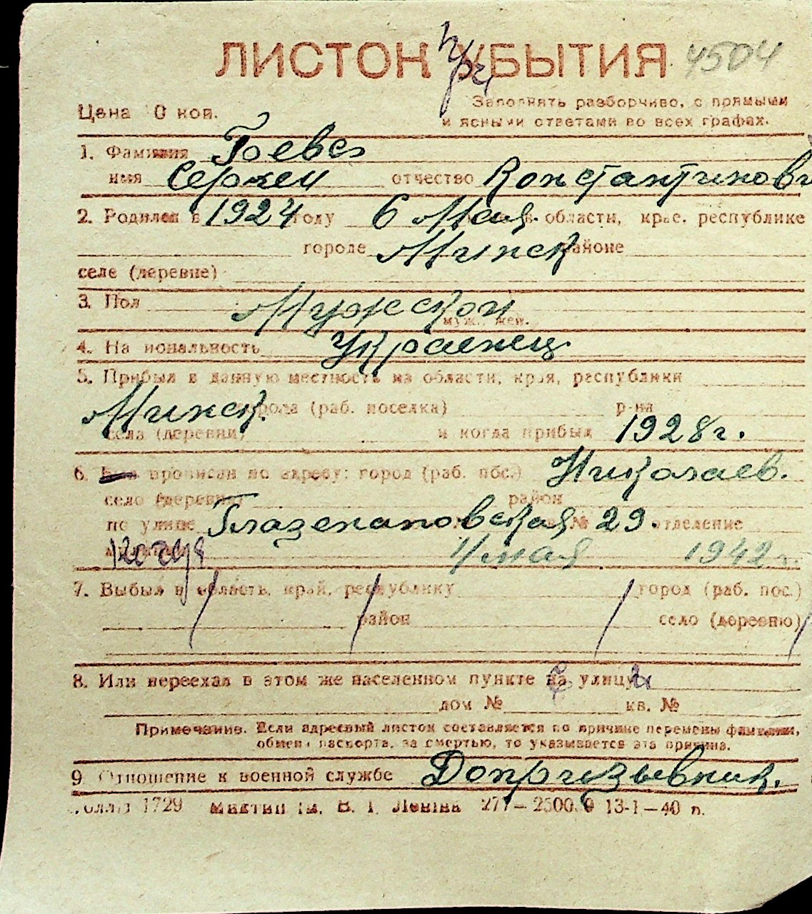 ◦ ◦ Перелік карток на осіб, які мешкали у м. Миколаїв у період окупації 1941–1944 років