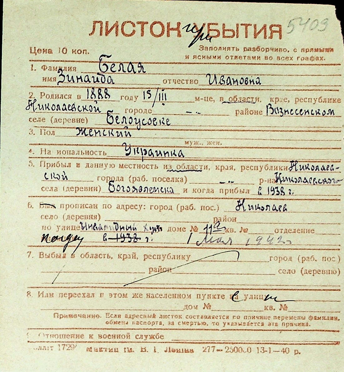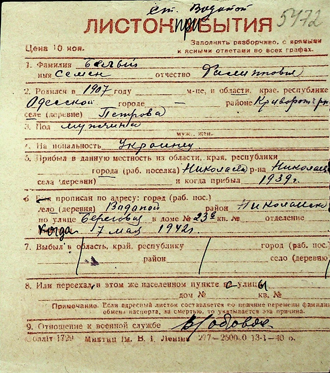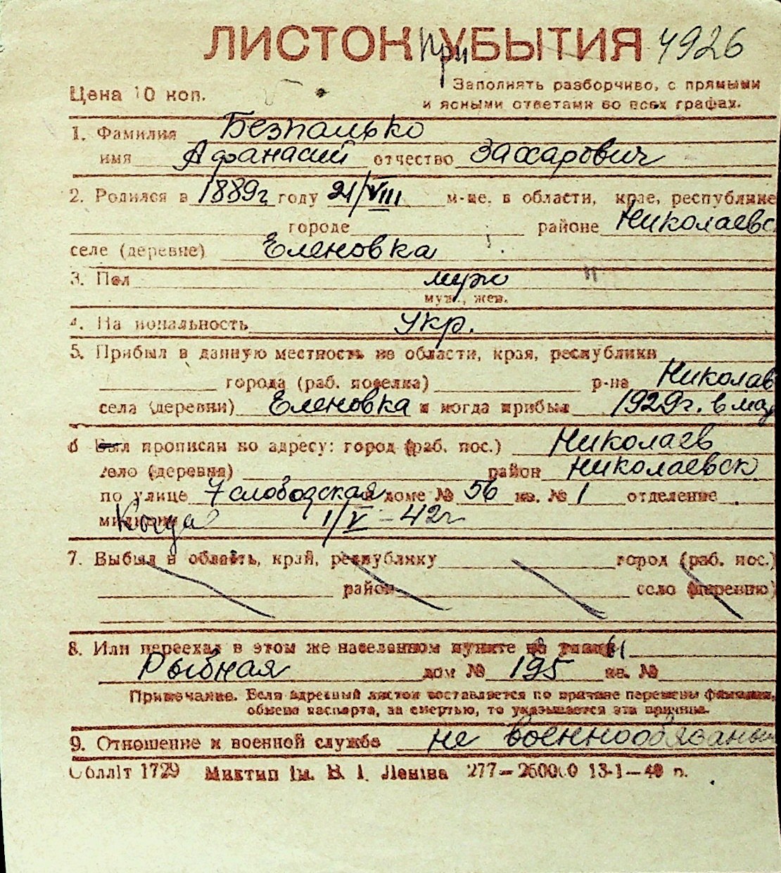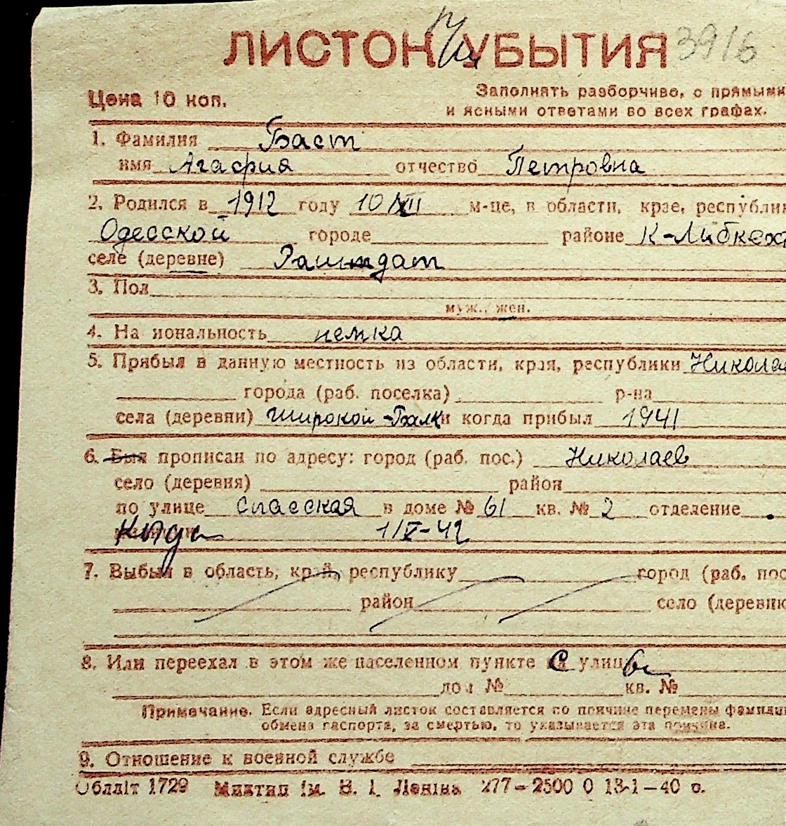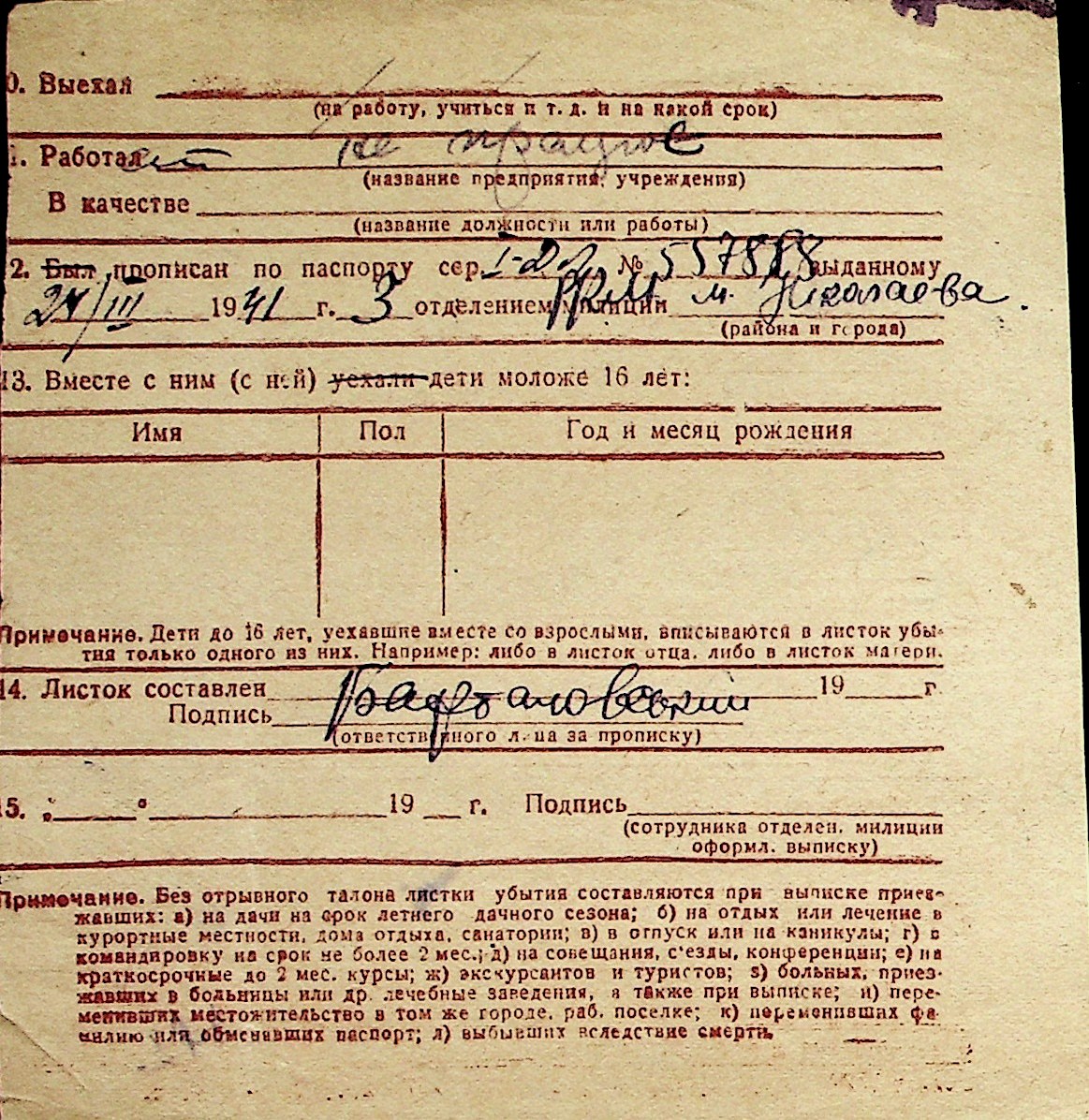 ◦ ◦ Перелік карток на осіб, які мешкали у м. Миколаїв у період окупації 1941–1944 років