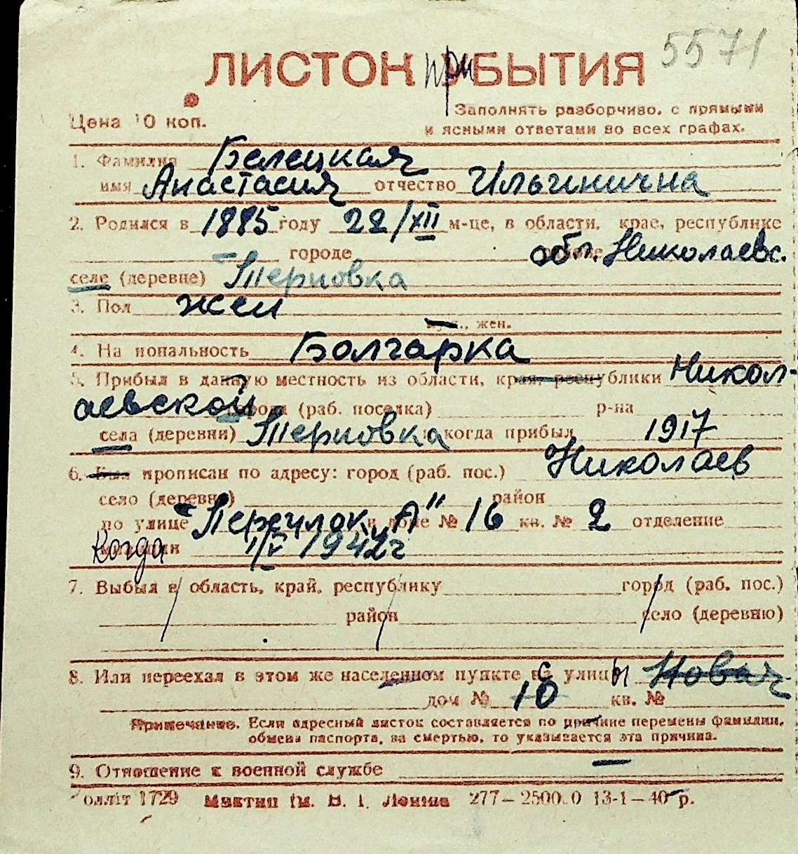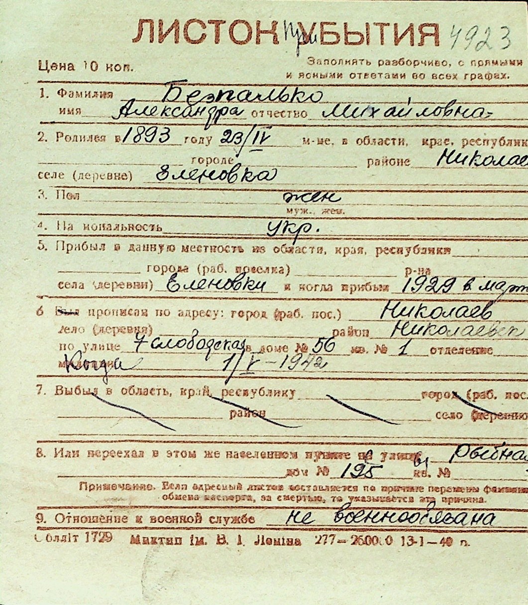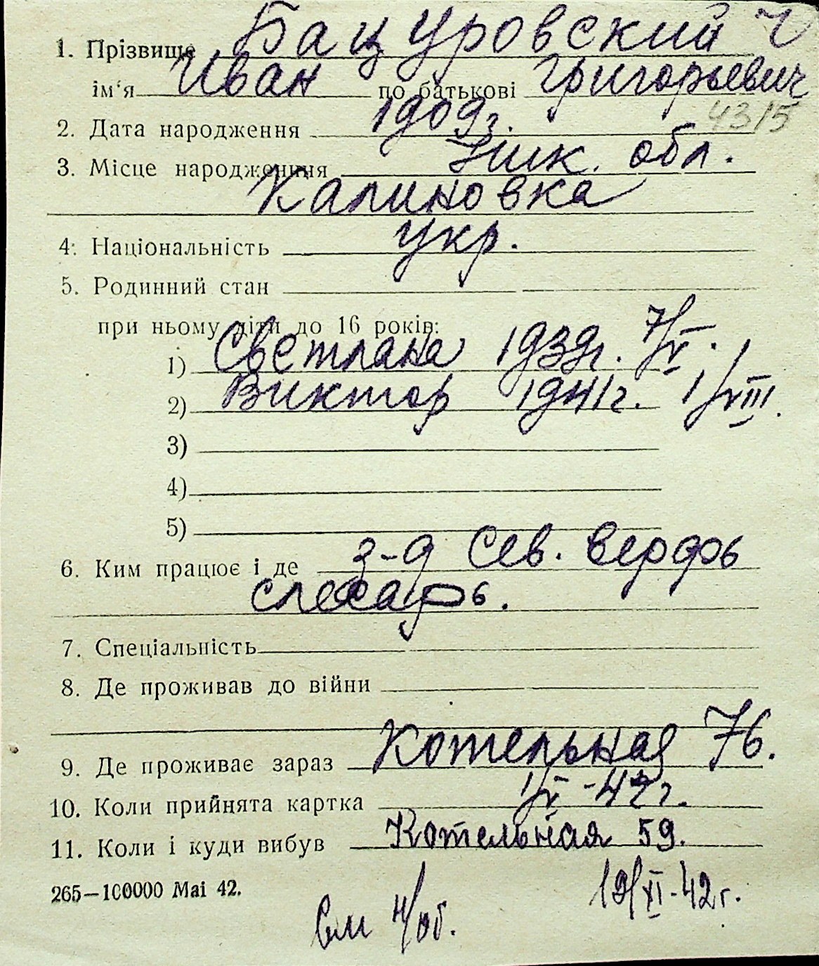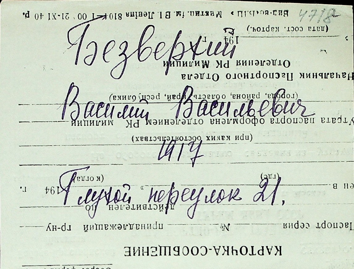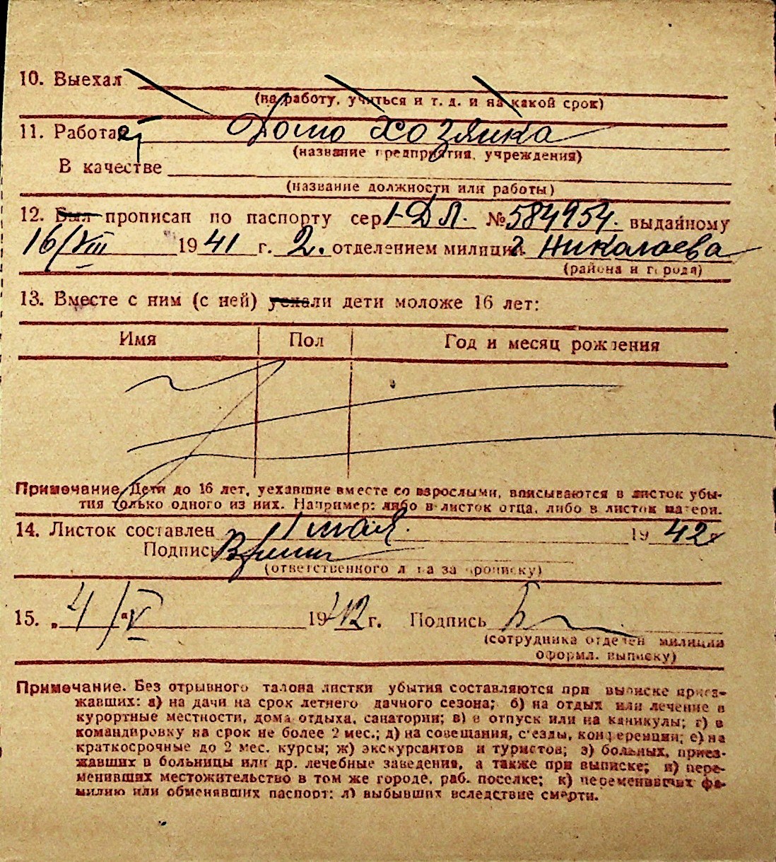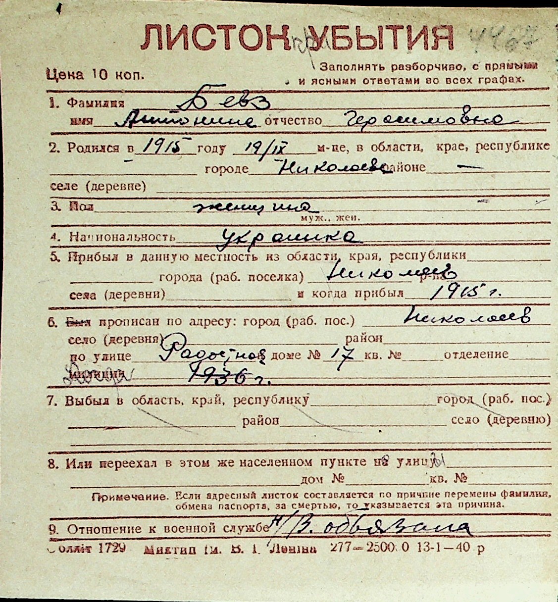 ◦ ◦ Перелік карток на осіб, які мешкали у м. Миколаїв у період окупації 1941–1944 років