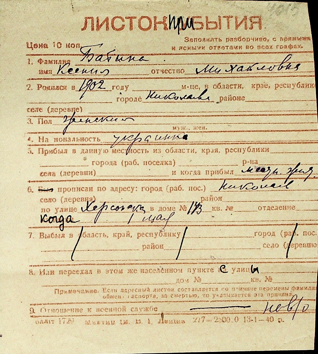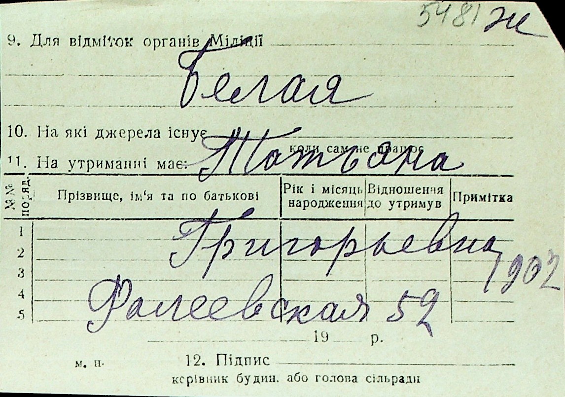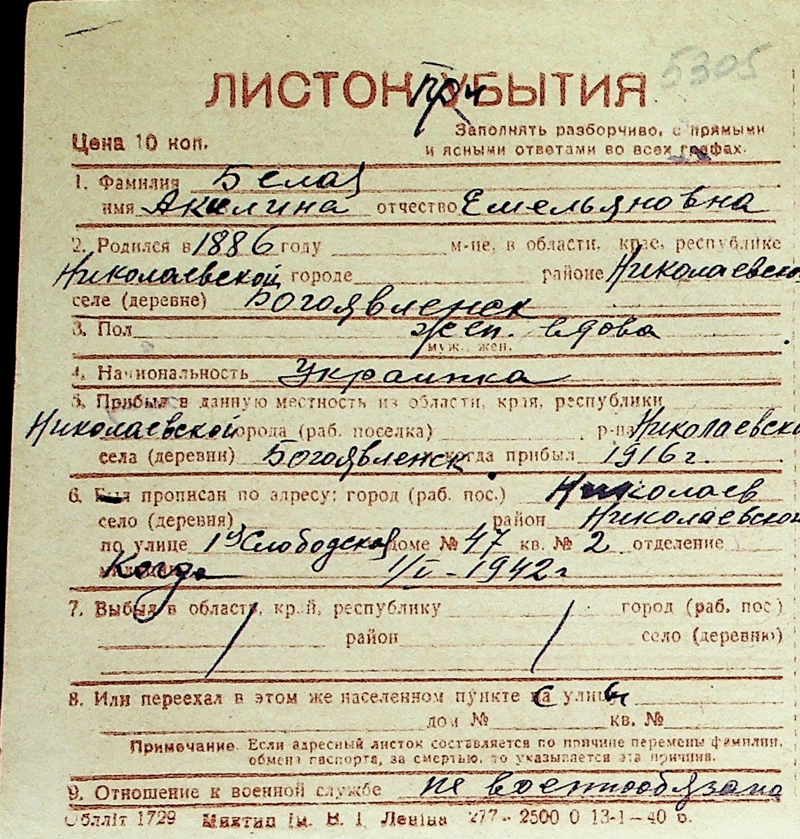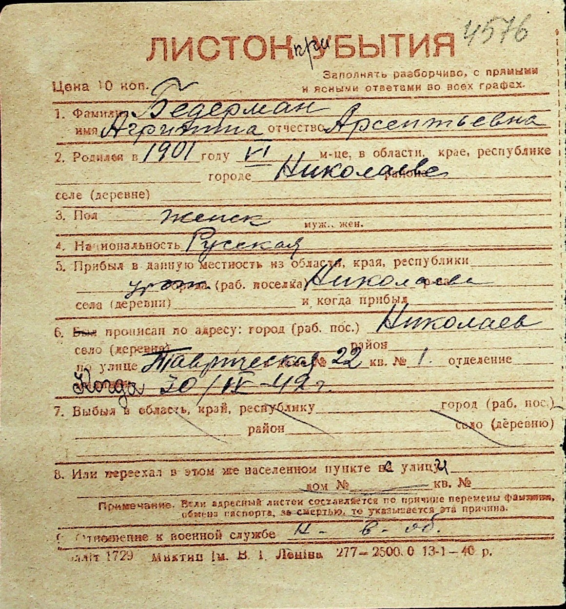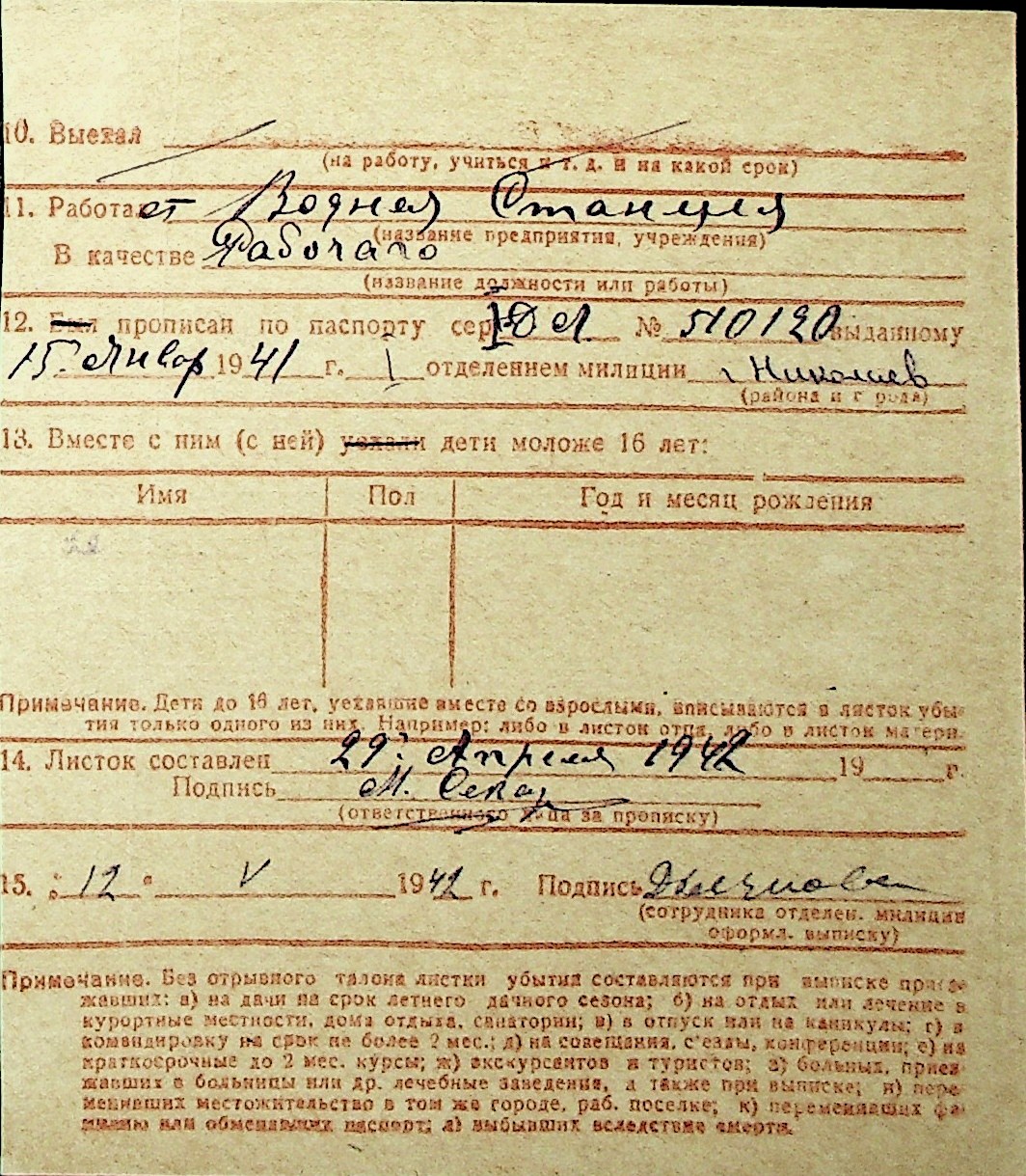 ◦ ◦ Перелік карток на осіб, які мешкали у м. Миколаїв у період окупації 1941–1944 років