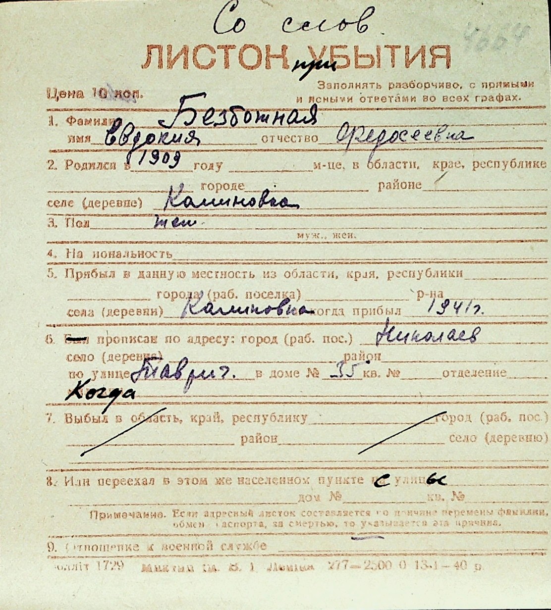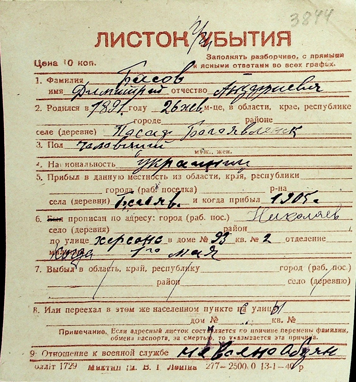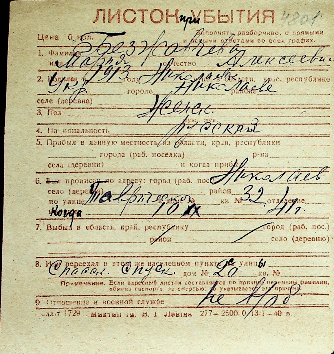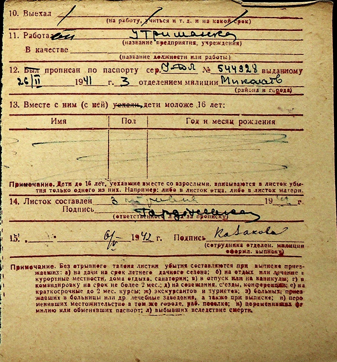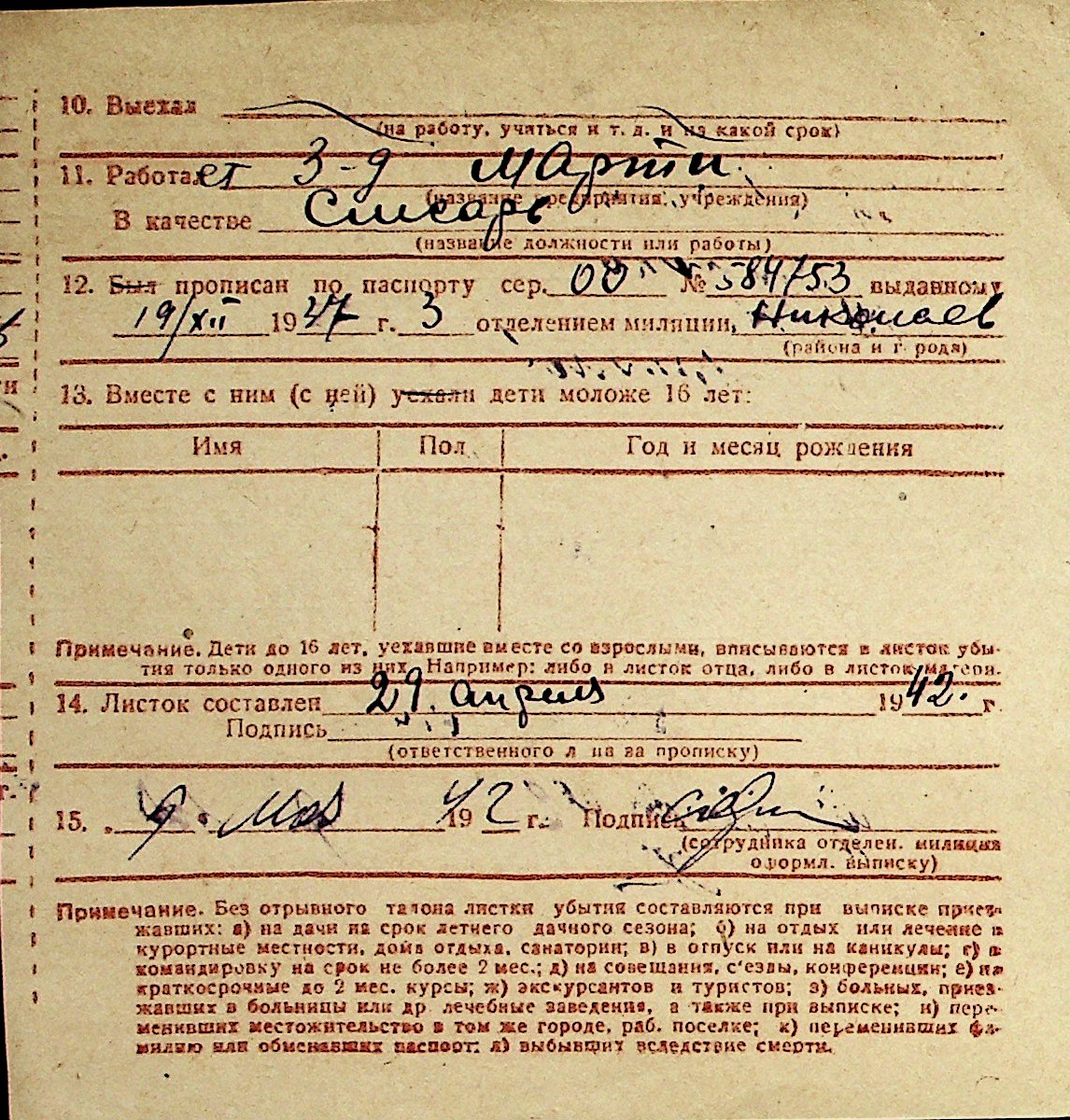 ◦ ◦ Перелік карток на осіб, які мешкали у м. Миколаїв у період окупації 1941–1944 років