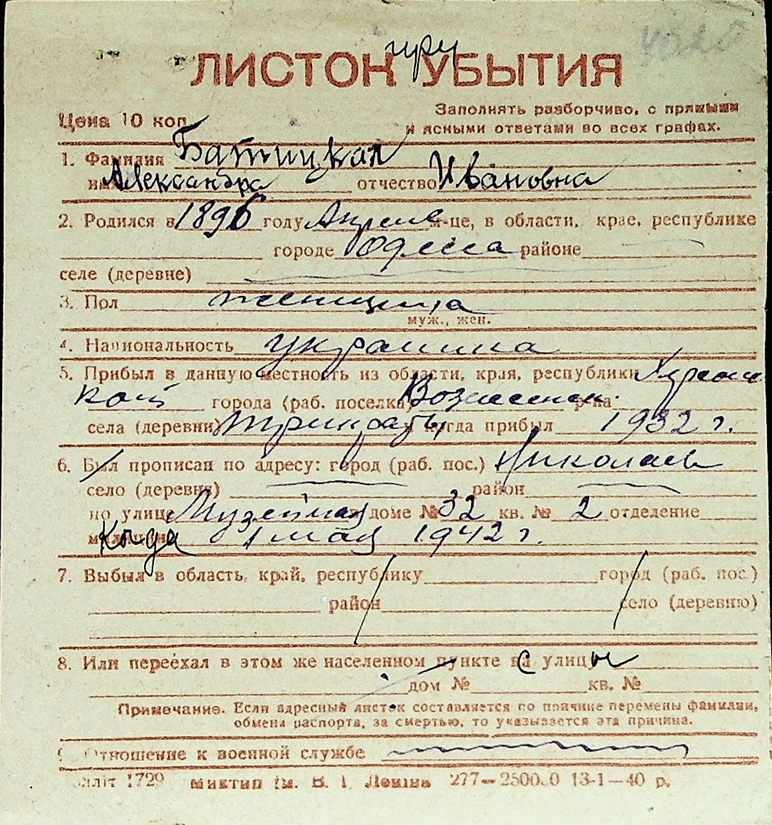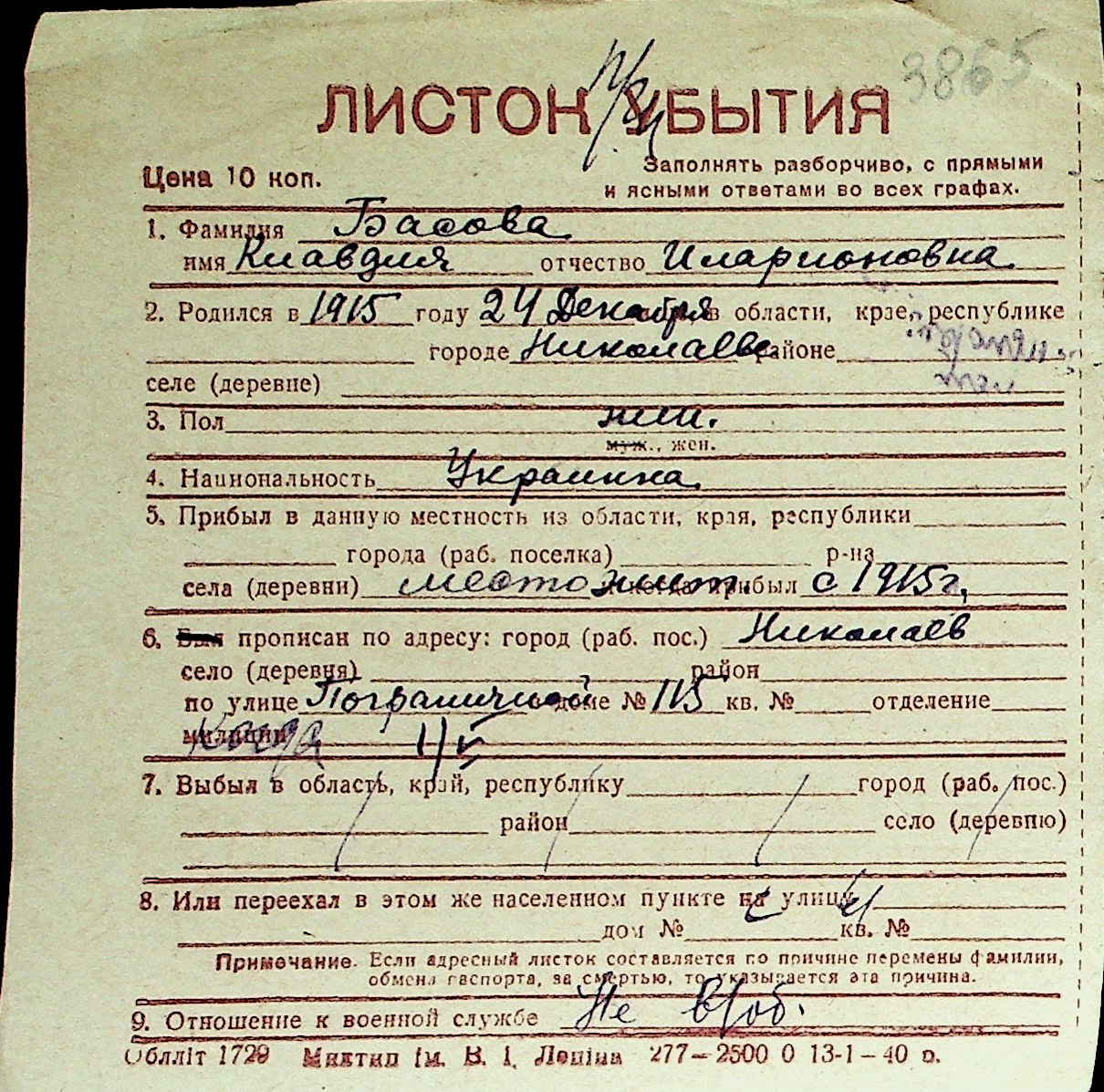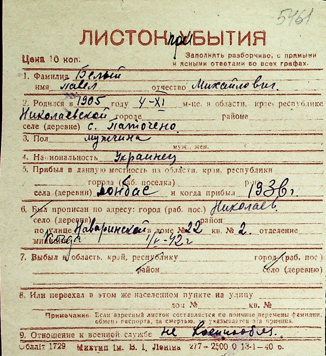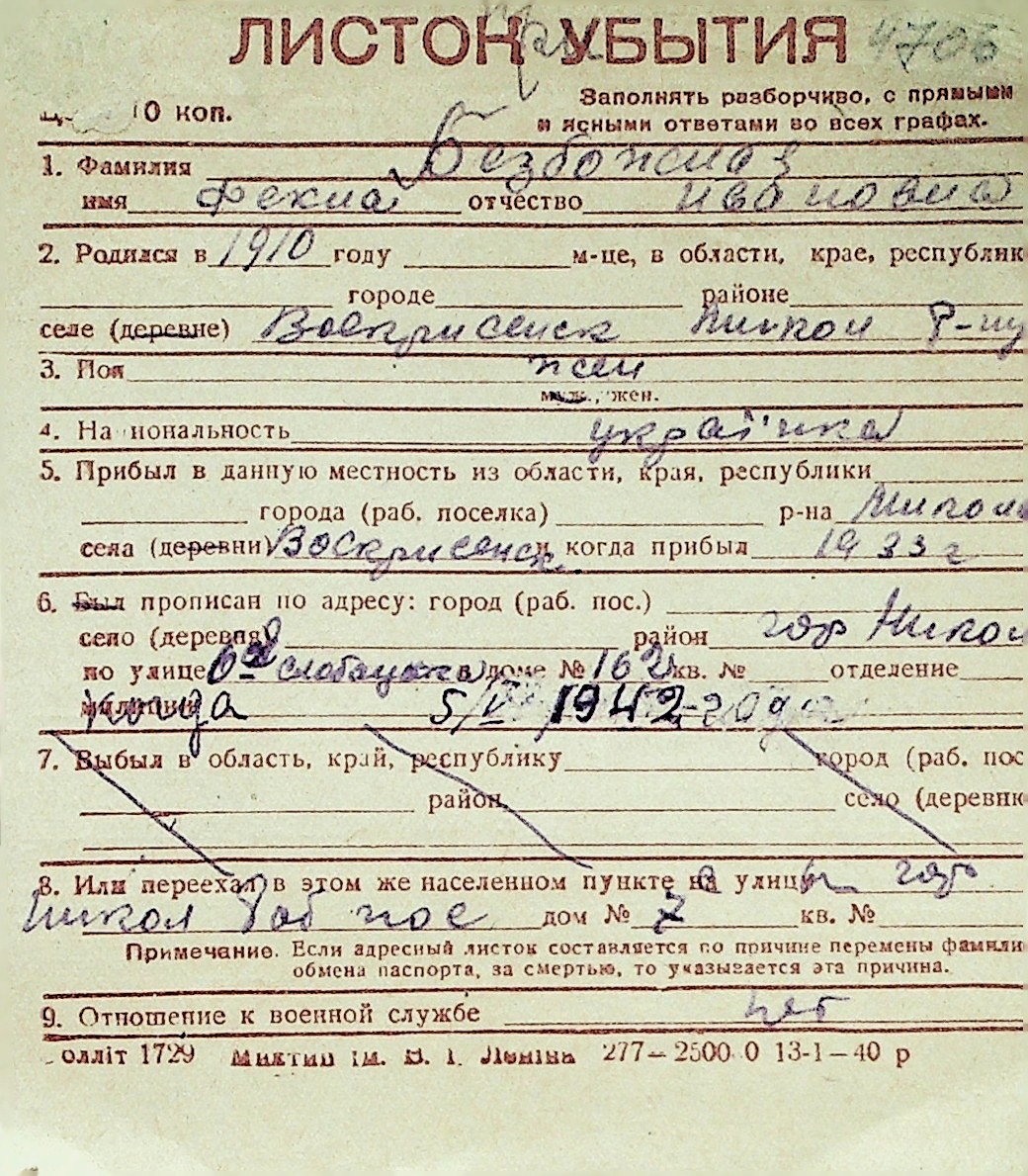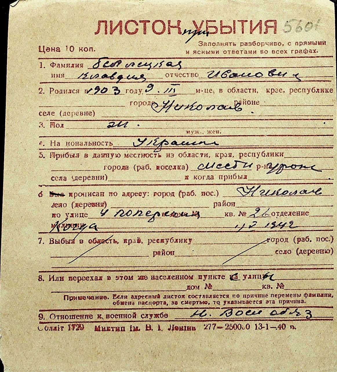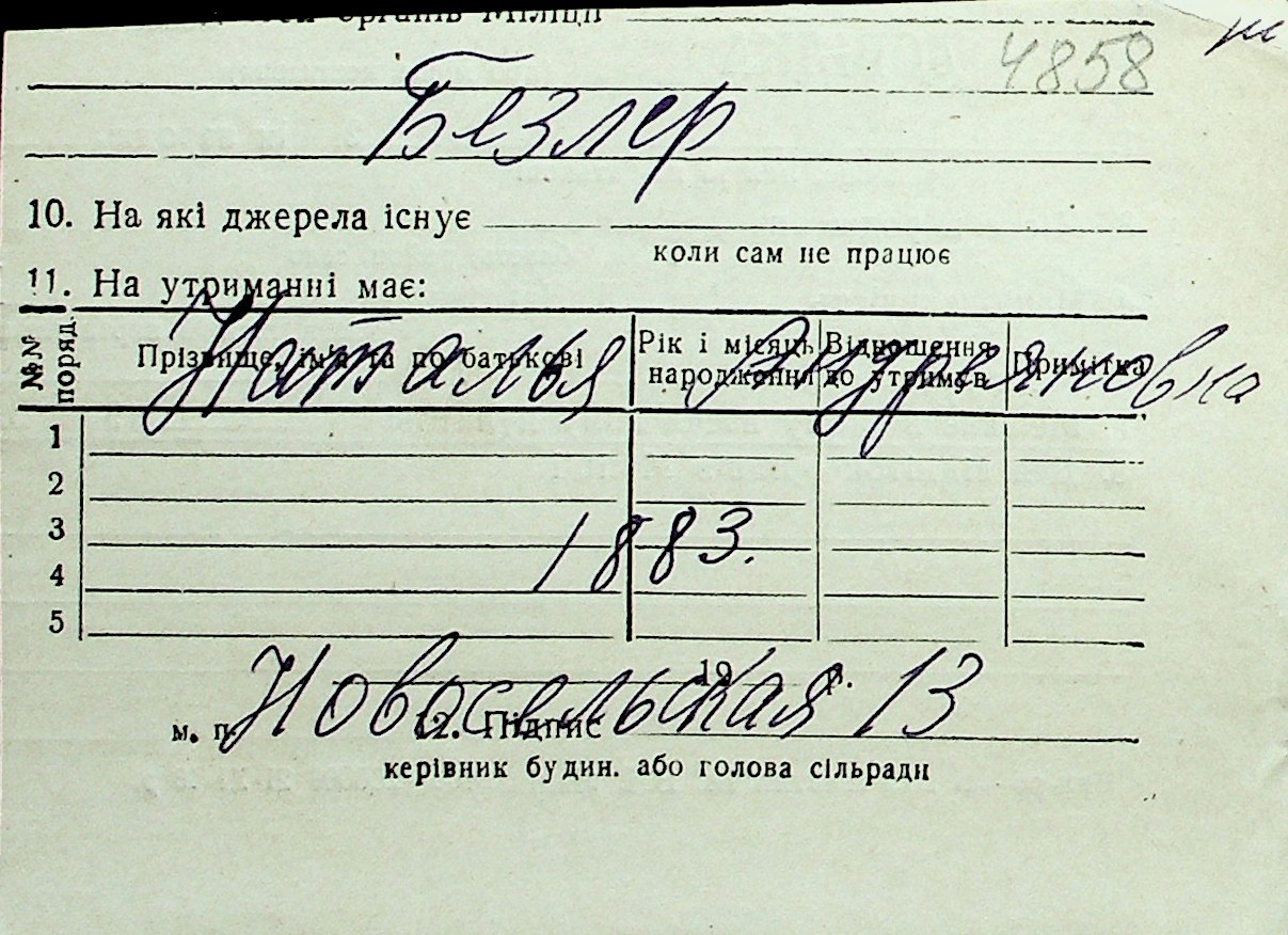 ◦ ◦ Перелік карток на осіб, які мешкали у м. Миколаїв у період окупації 1941–1944 років
