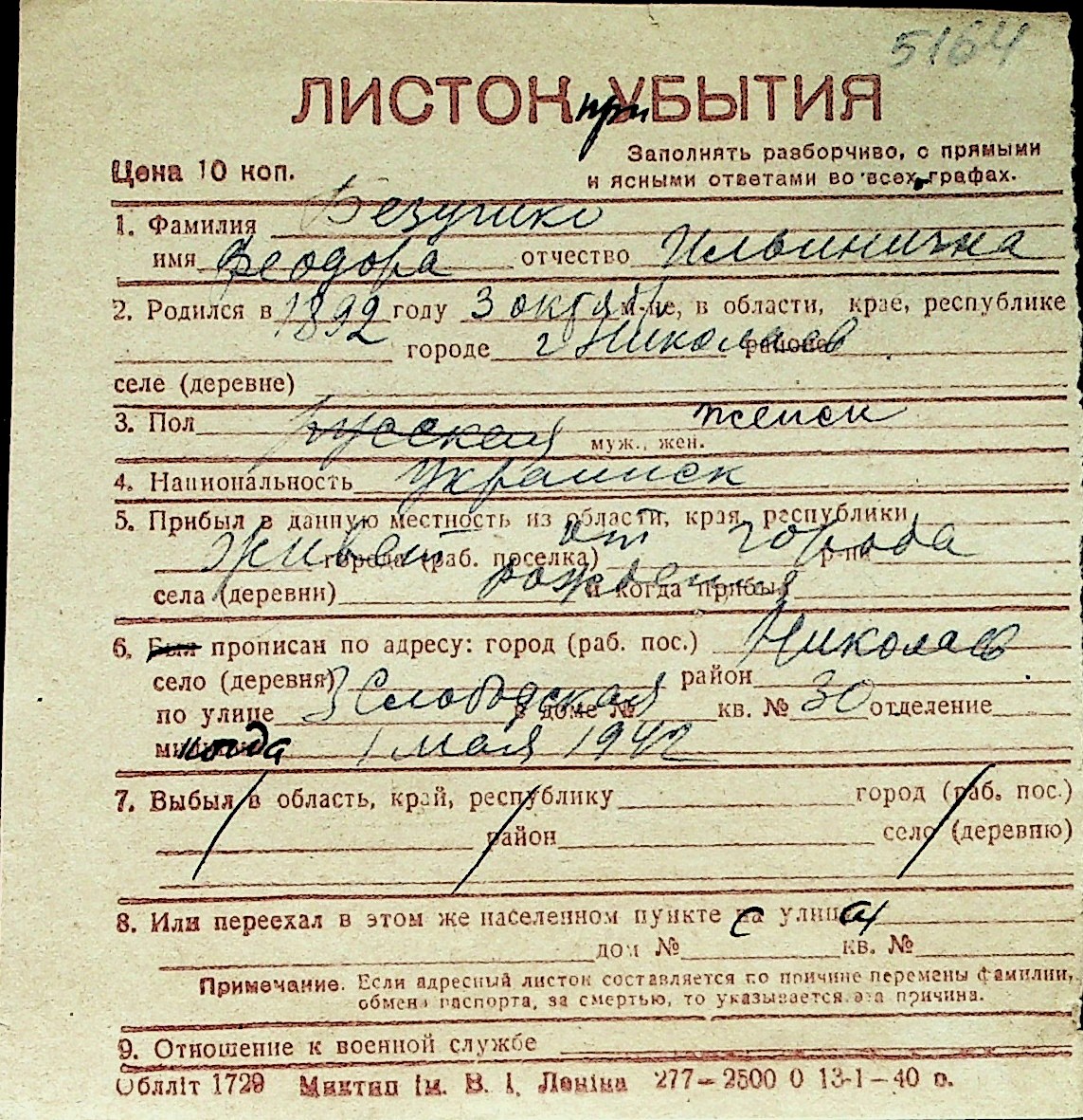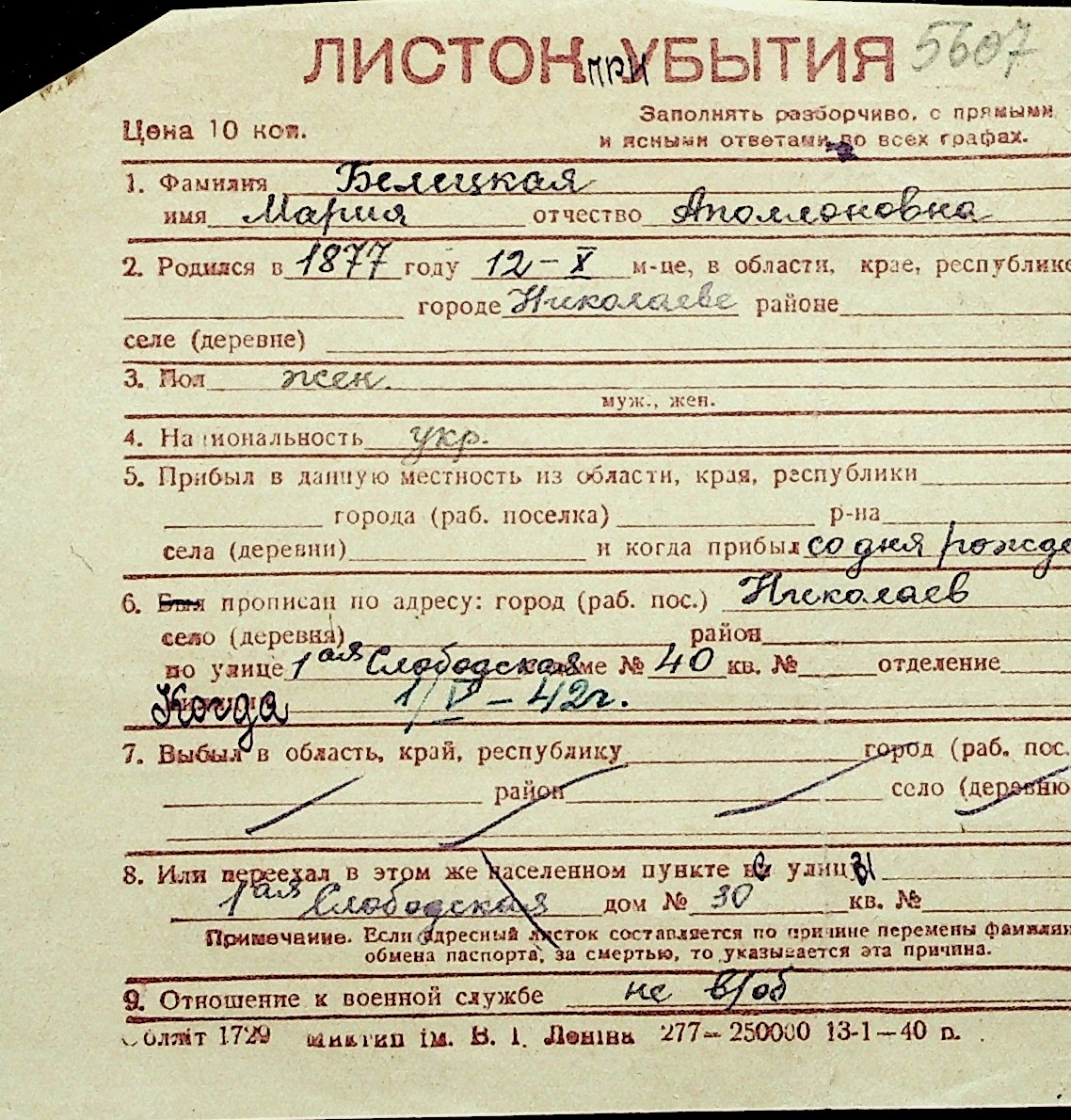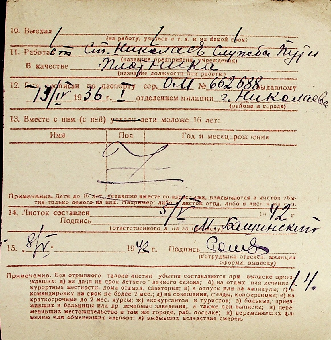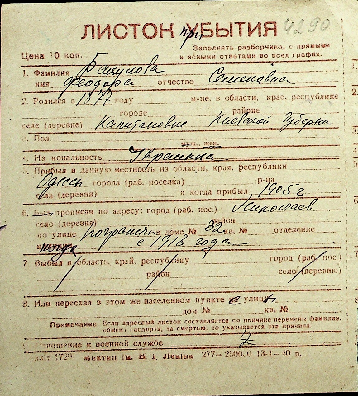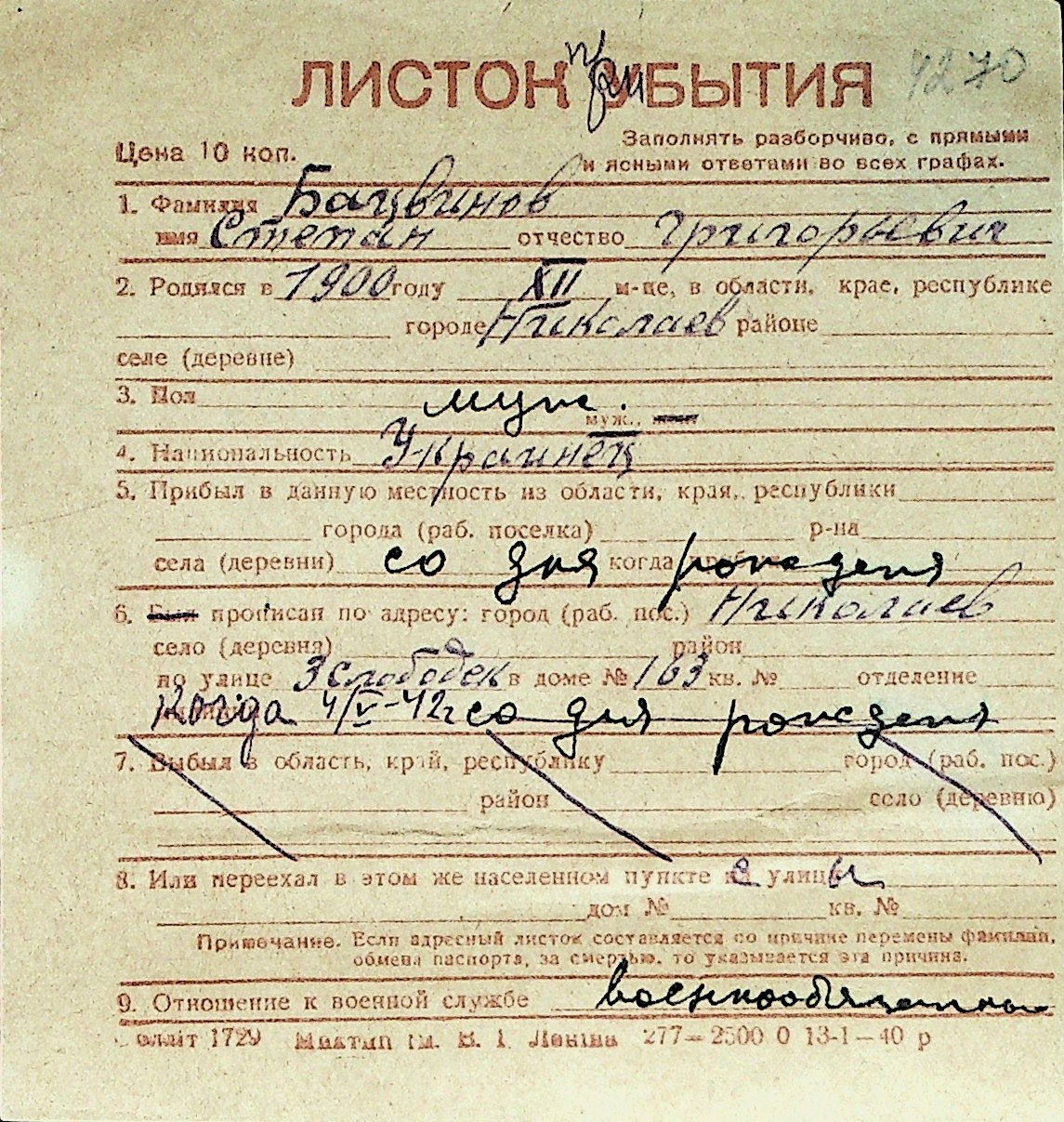 ◦ ◦ Перелік карток на осіб, які мешкали у м. Миколаїв у період окупації 1941–1944 років