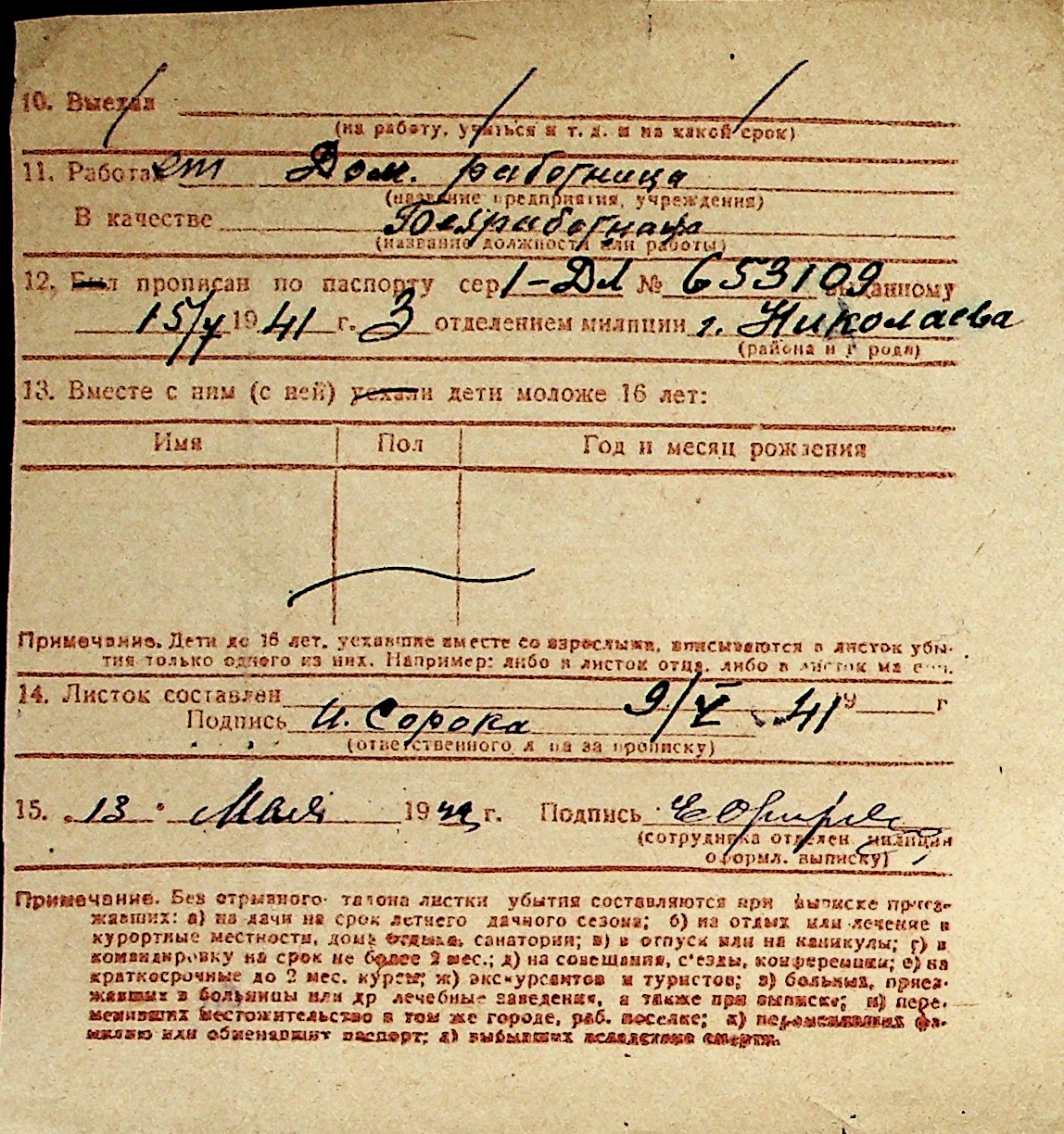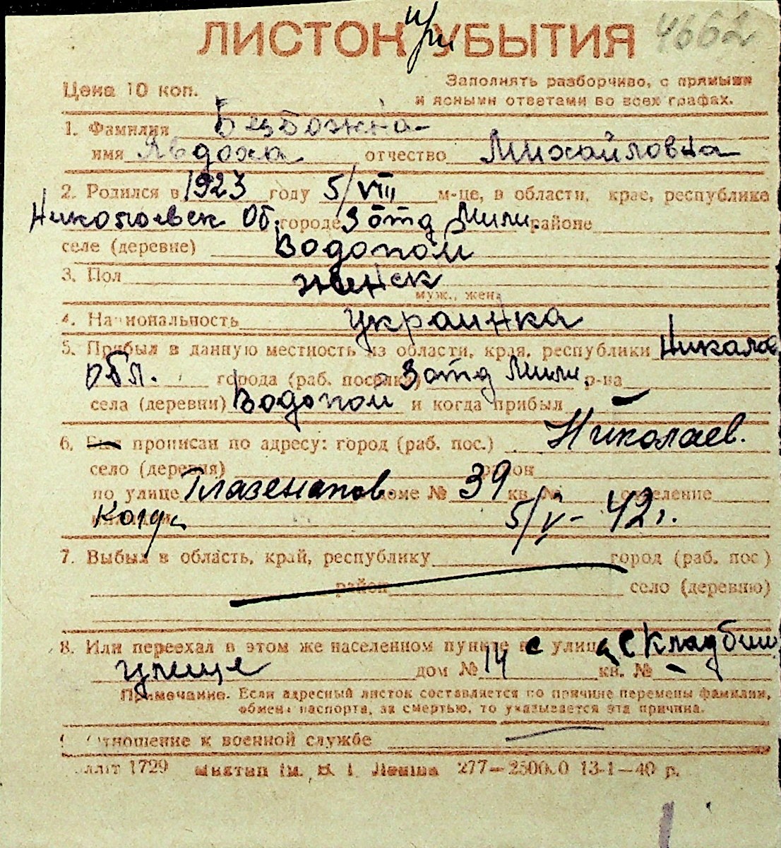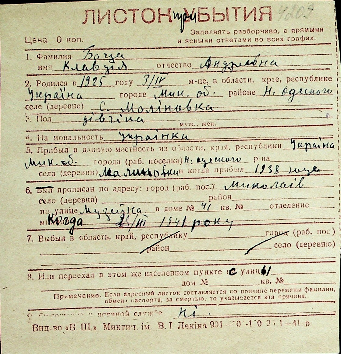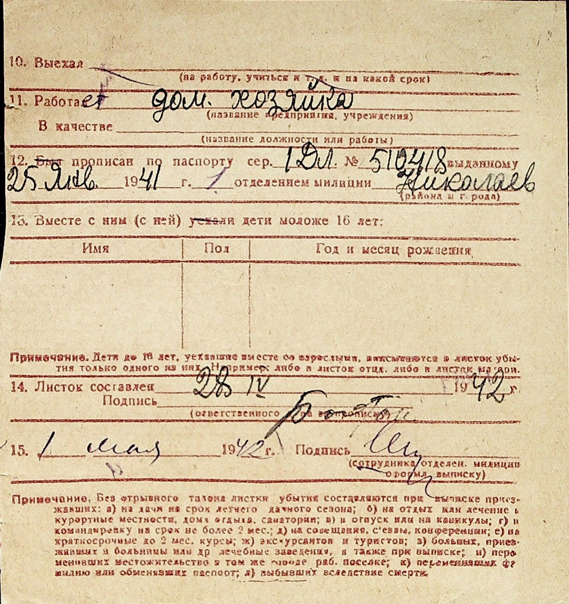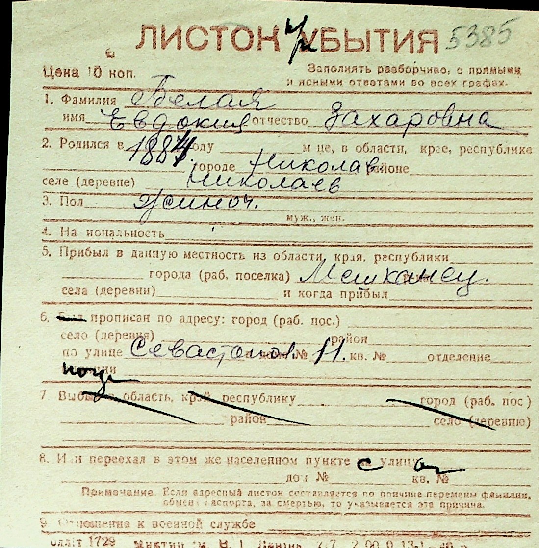 ◦ ◦ Перелік карток на осіб, які мешкали у м. Миколаїв у період окупації 1941–1944 років