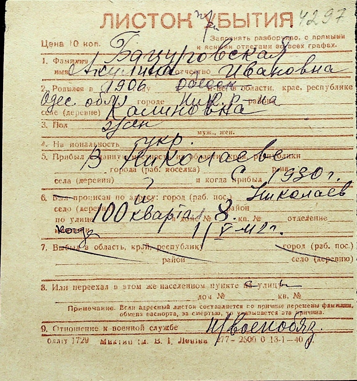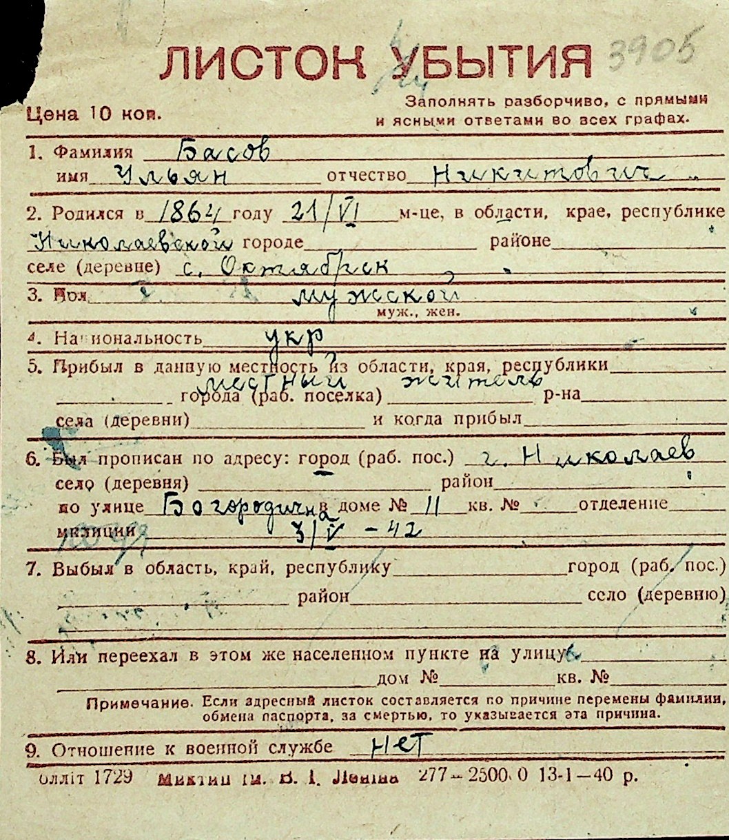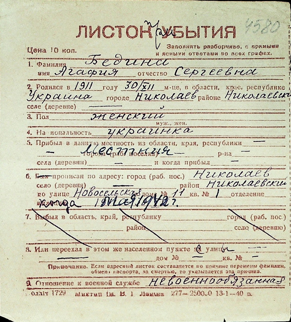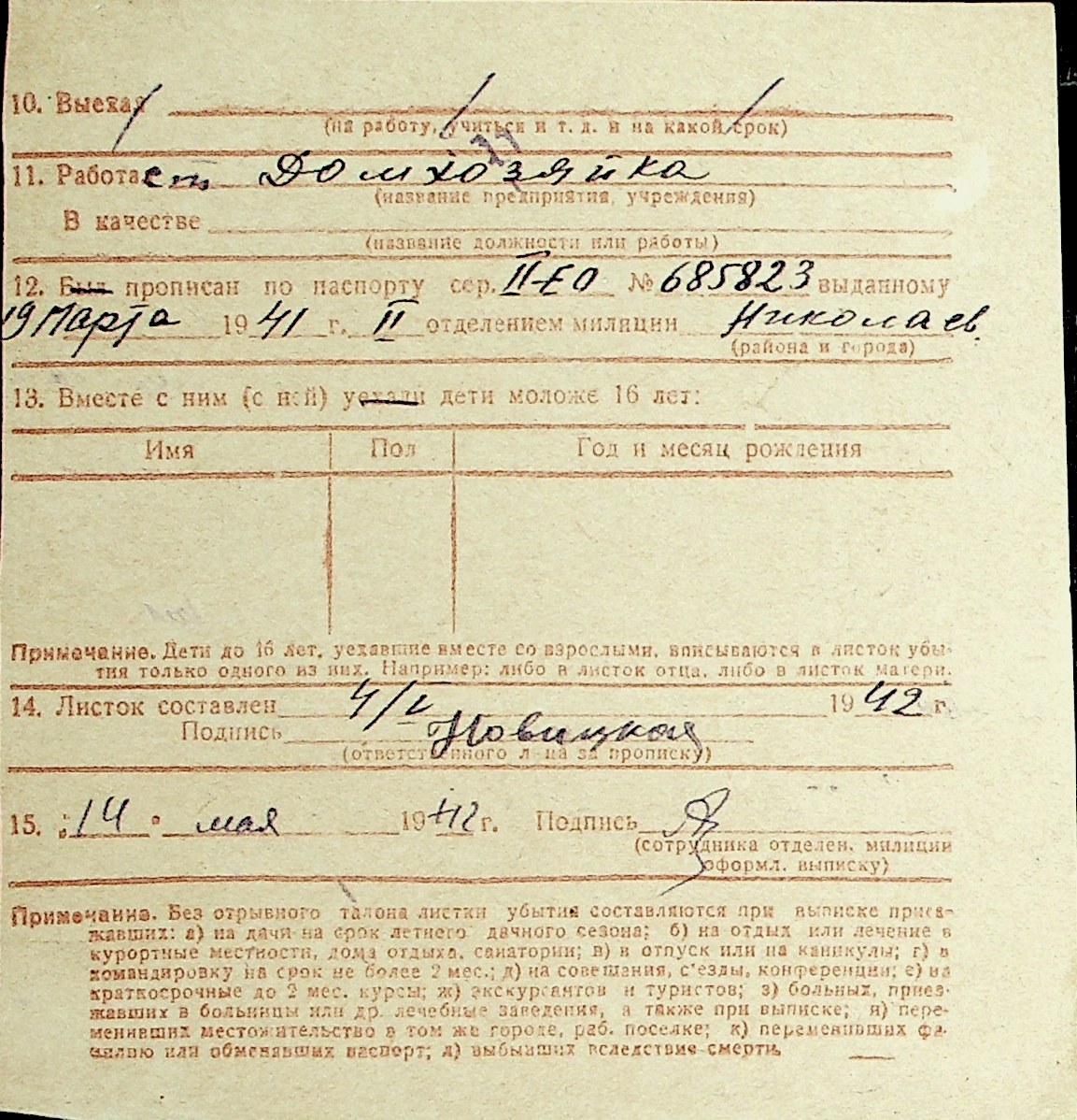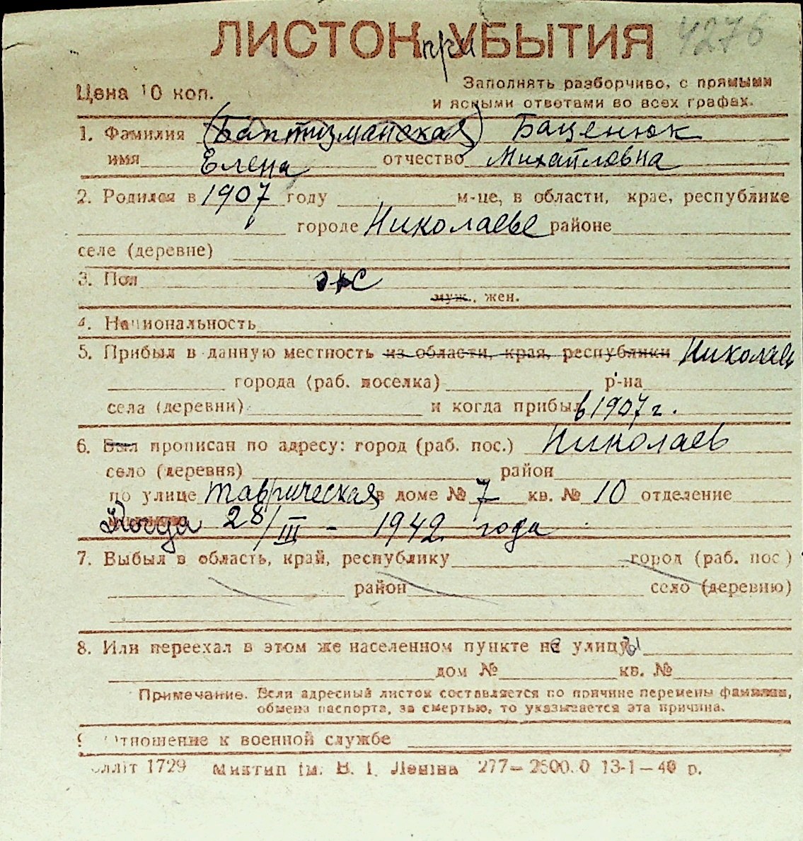 ◦ ◦ Перелік карток на осіб, які мешкали у м. Миколаїв у період окупації 1941–1944 років