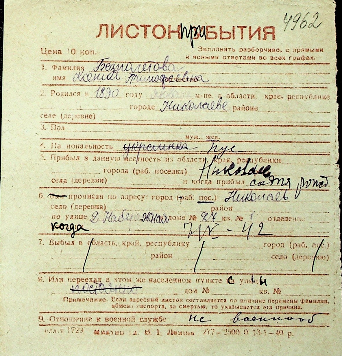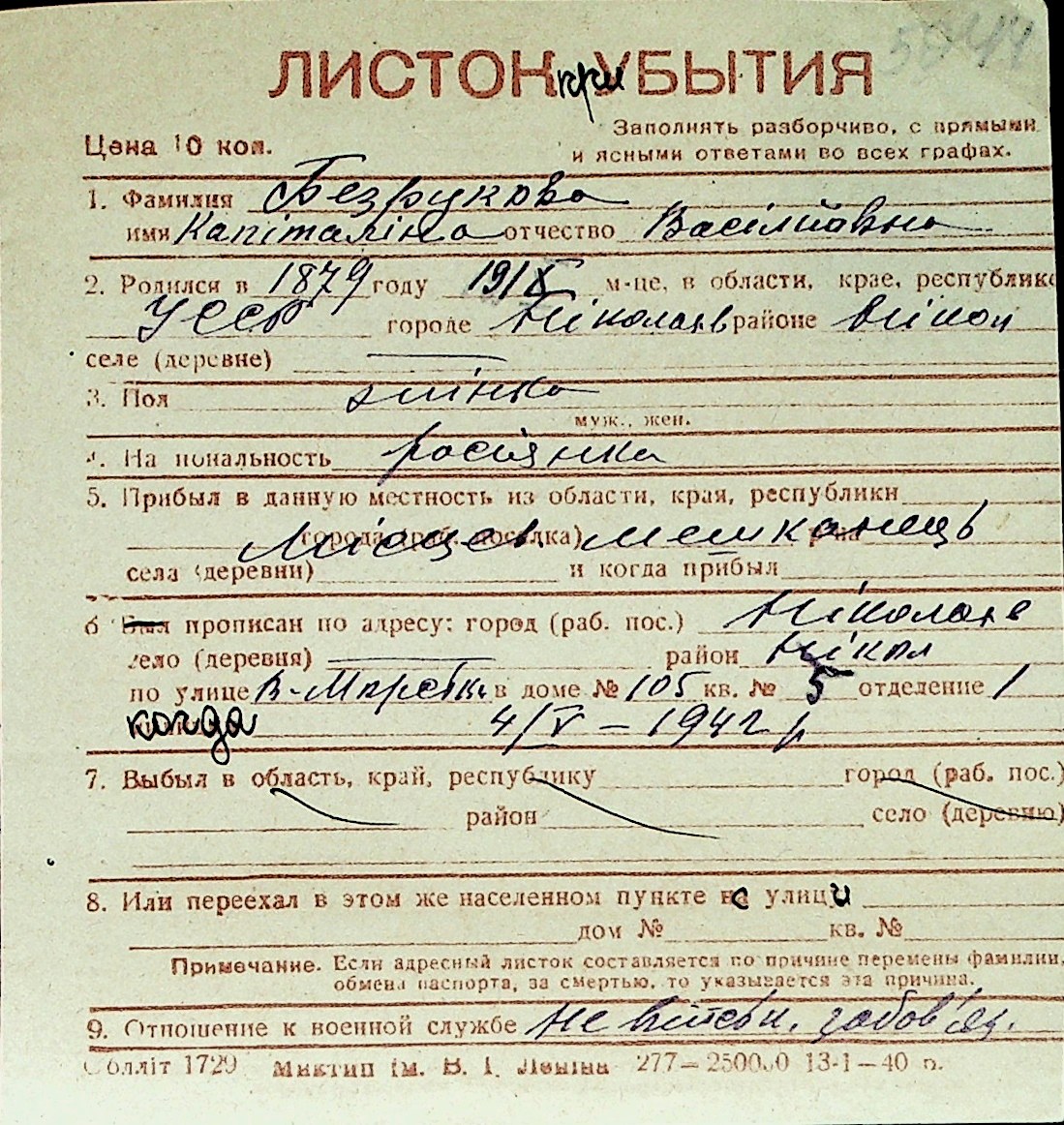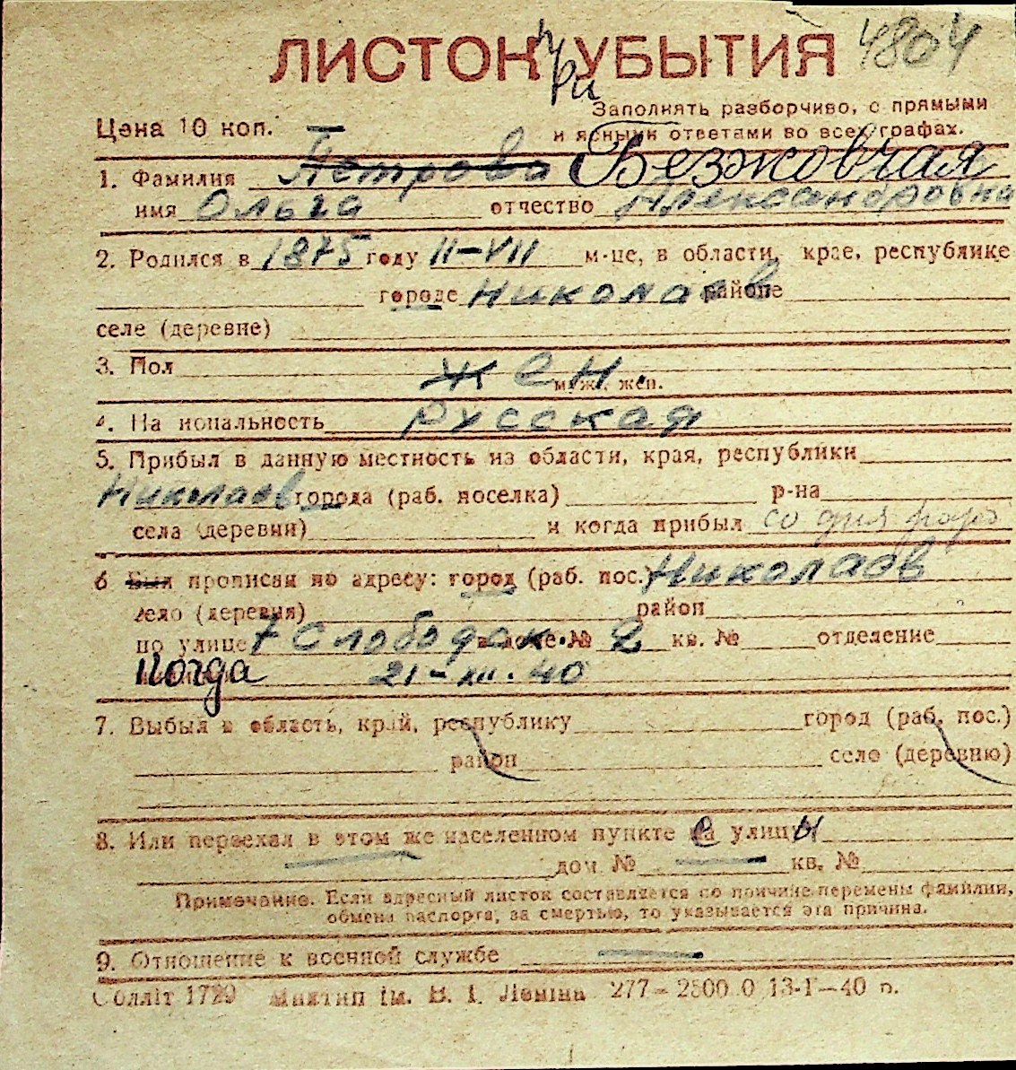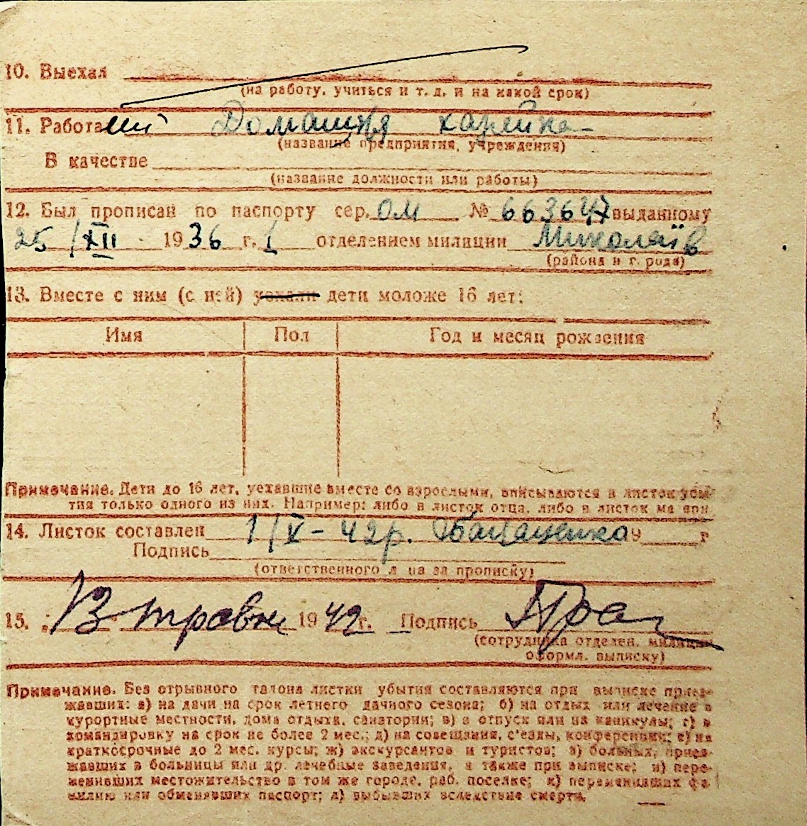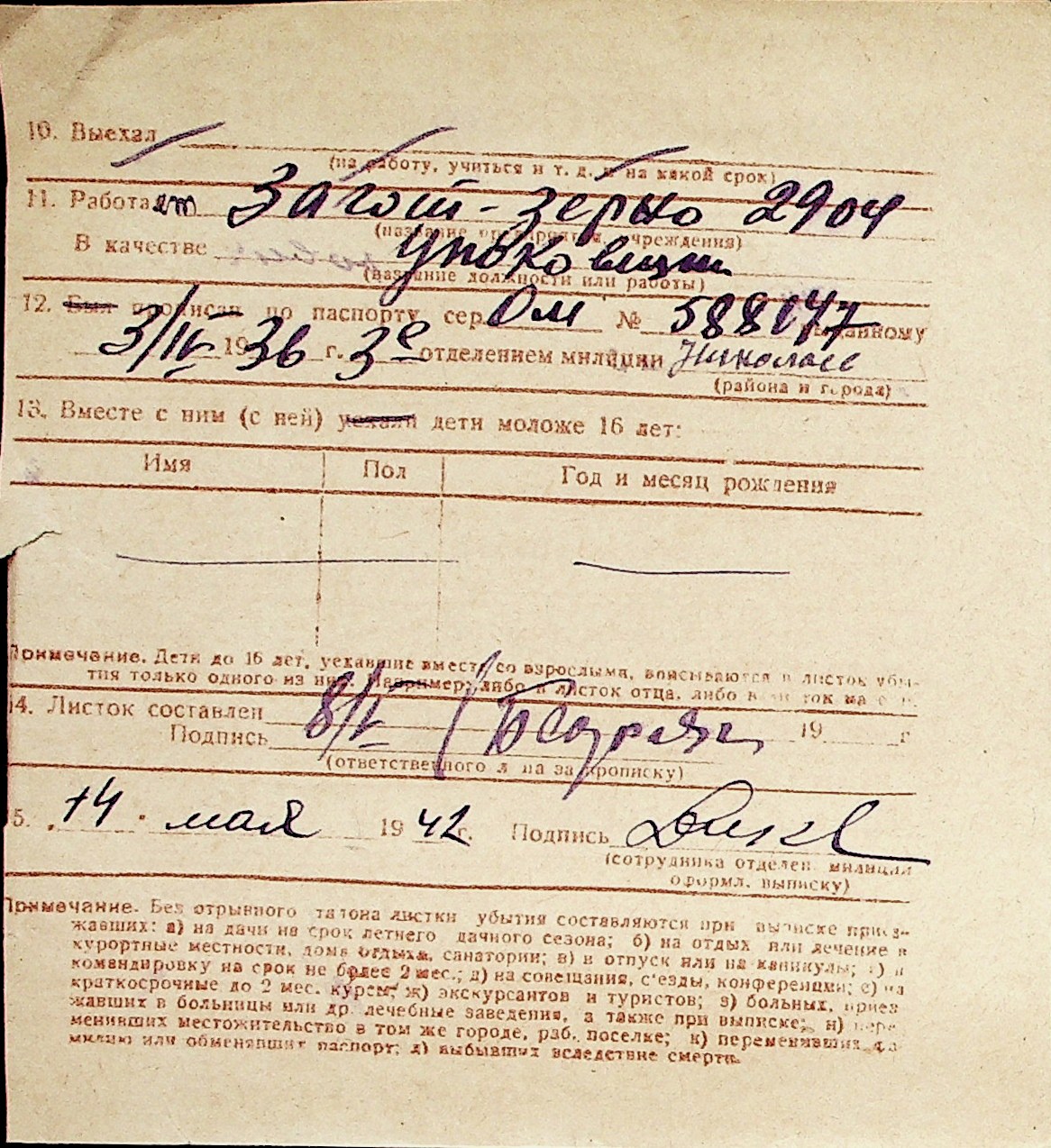 ◦ ◦ Перелік карток на осіб, які мешкали у м. Миколаїв у період окупації 1941–1944 років