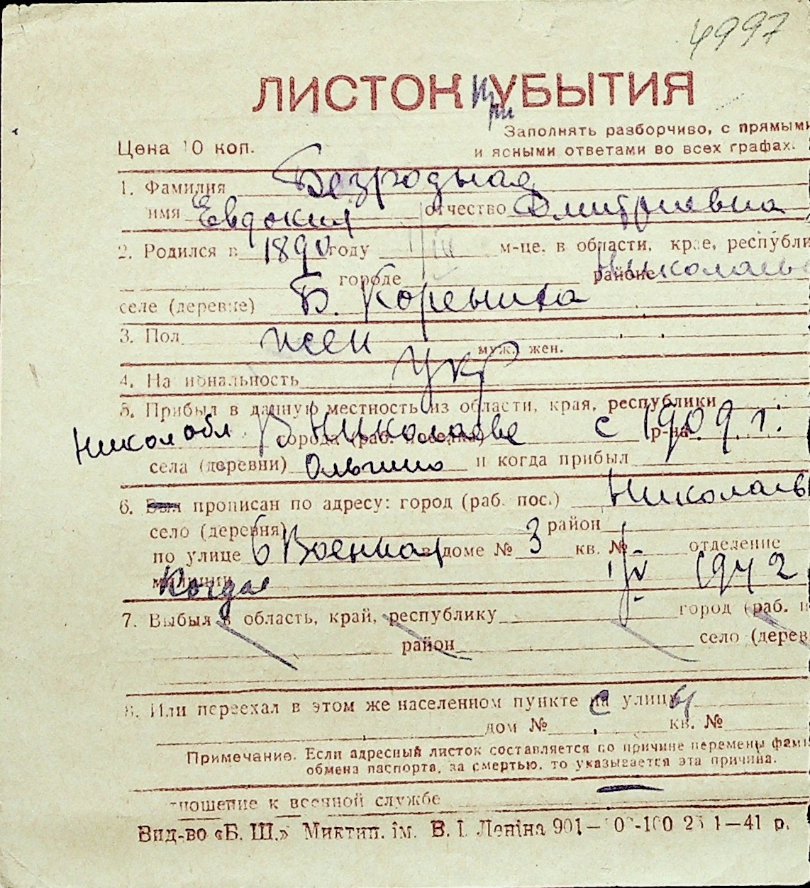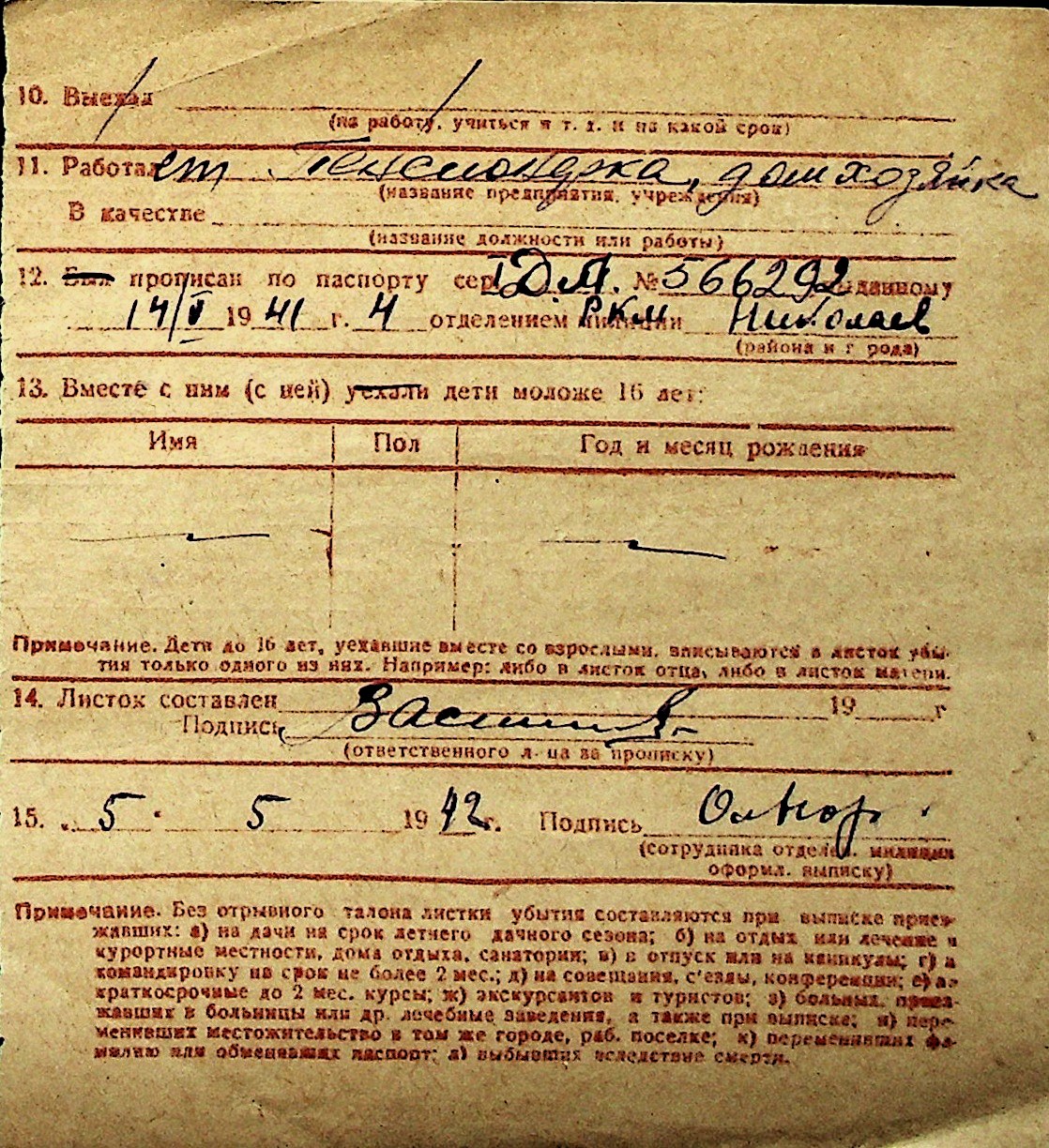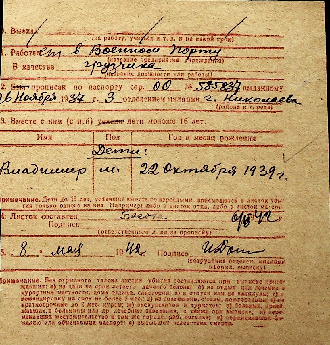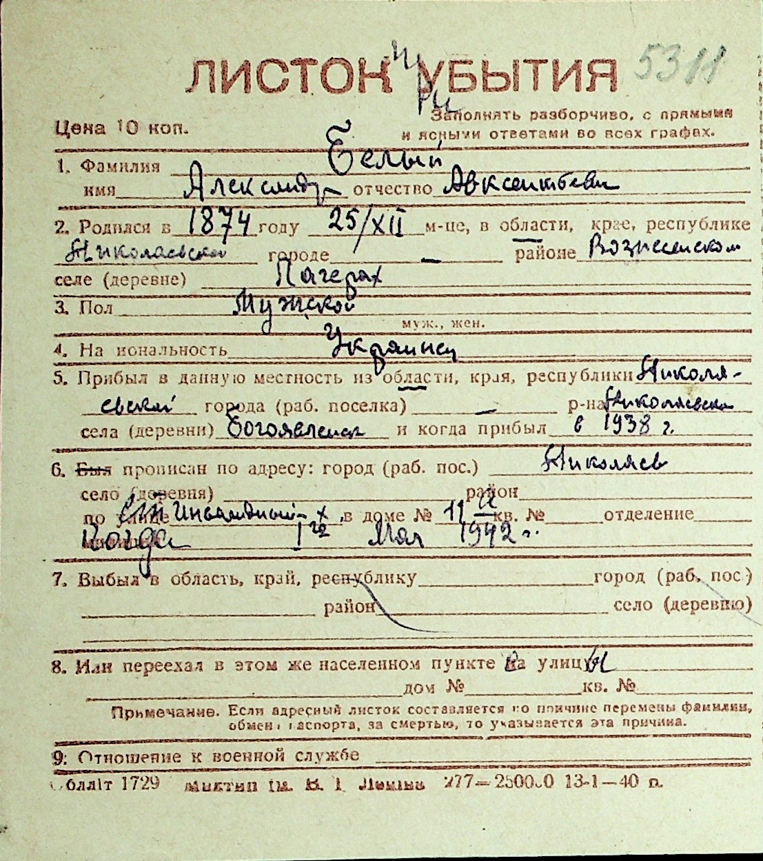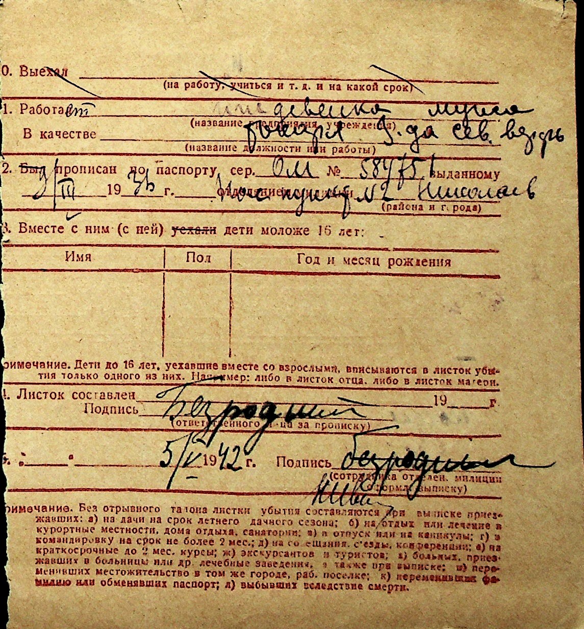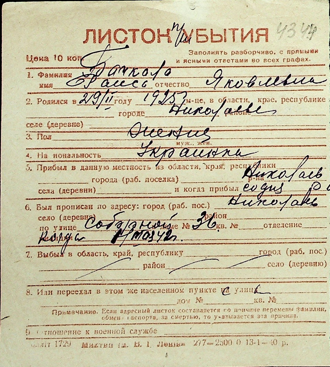 ◦ ◦ Перелік карток на осіб, які мешкали у м. Миколаїв у період окупації 1941–1944 років