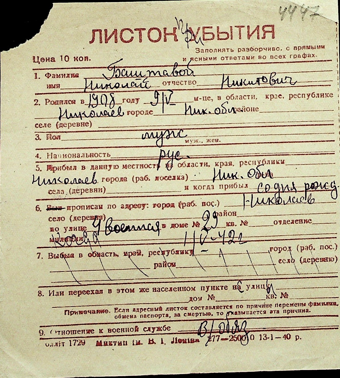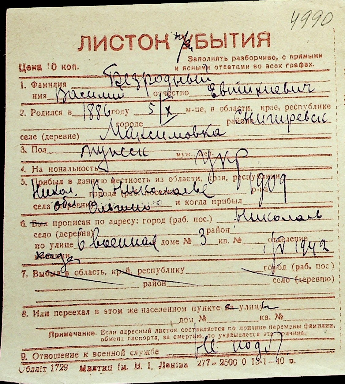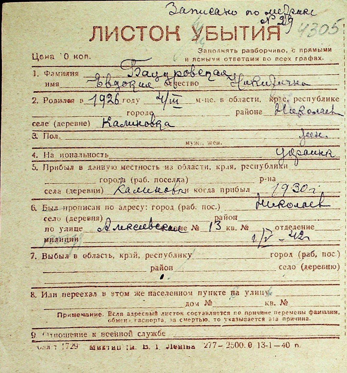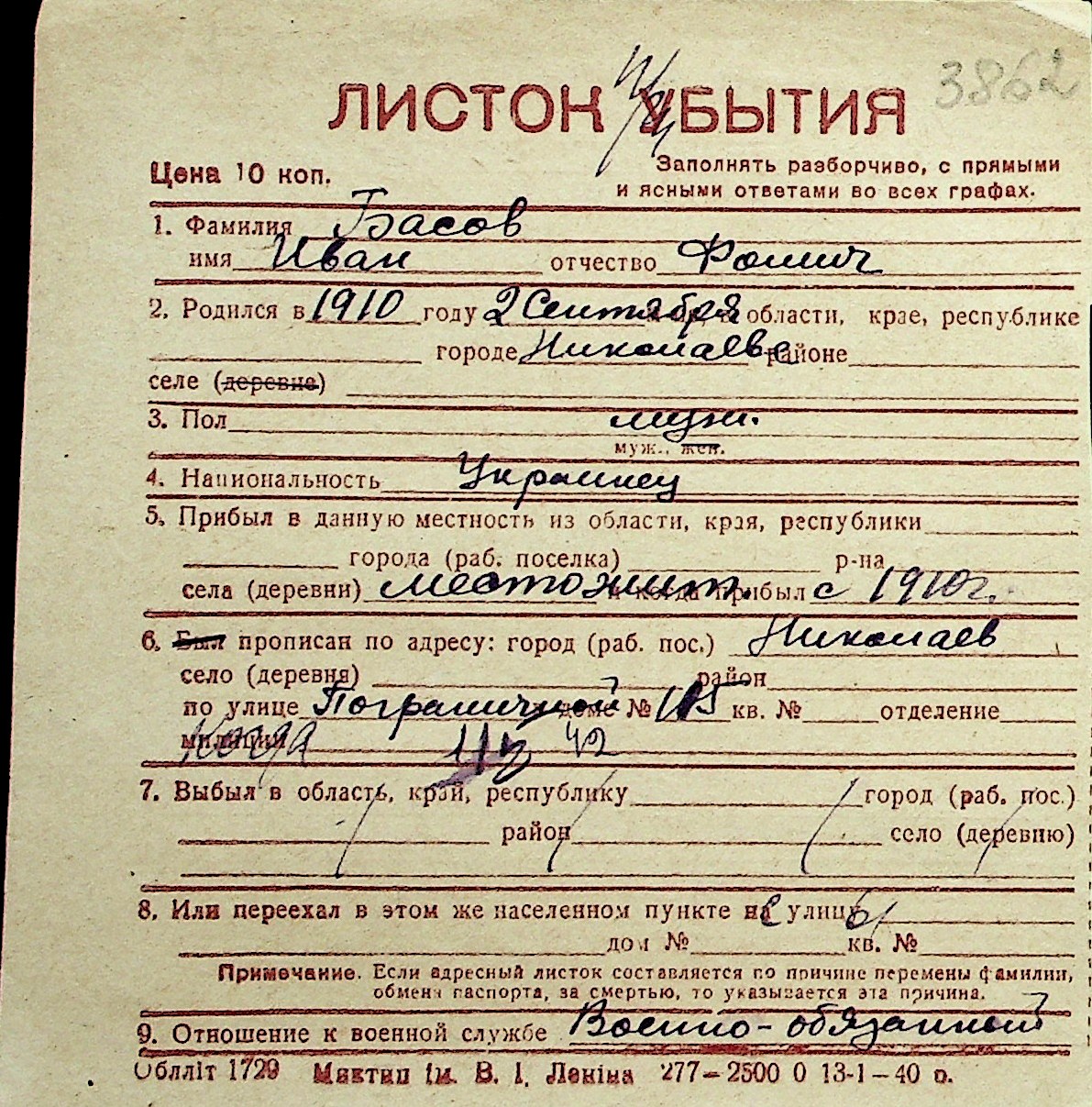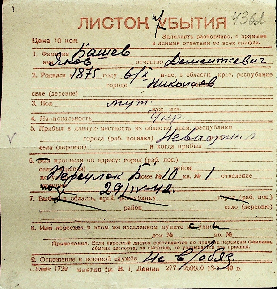 ◦ ◦ Перелік карток на осіб, які мешкали у м. Миколаїв у період окупації 1941–1944 років