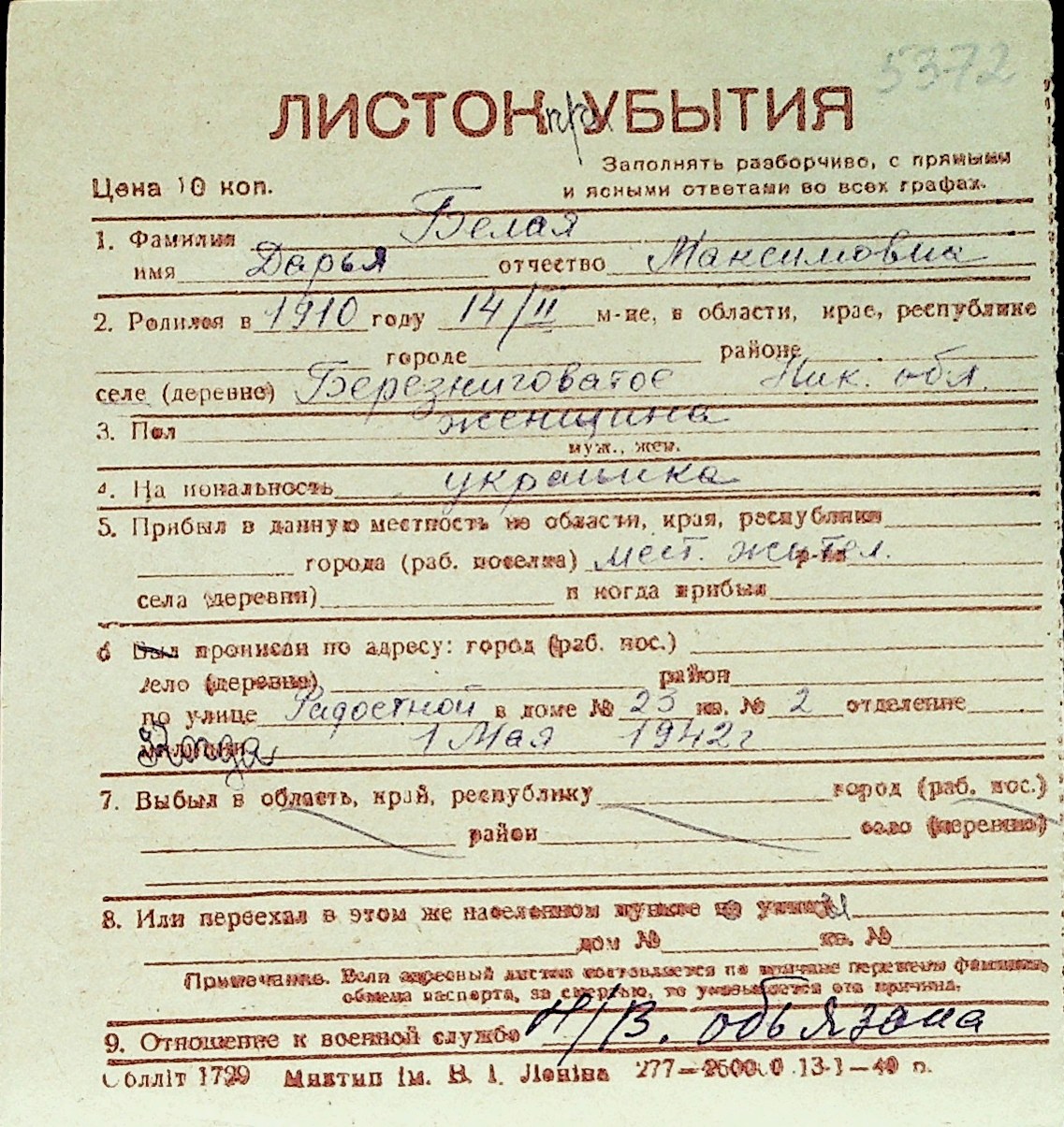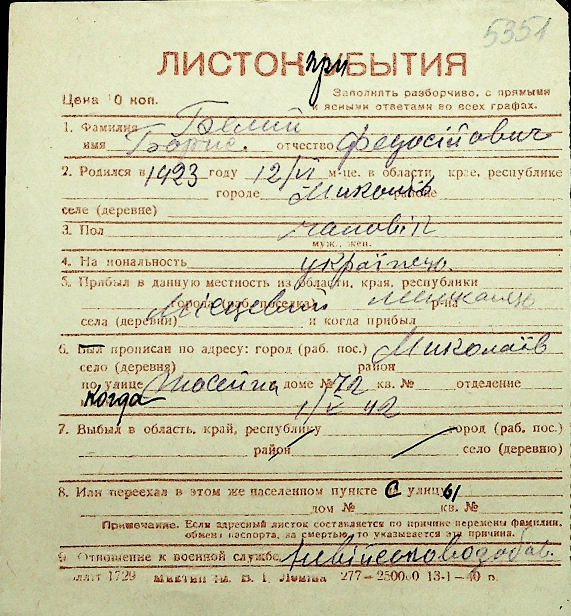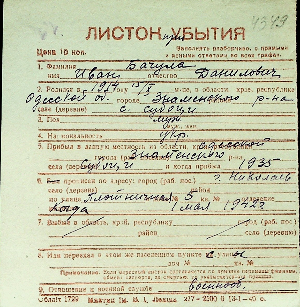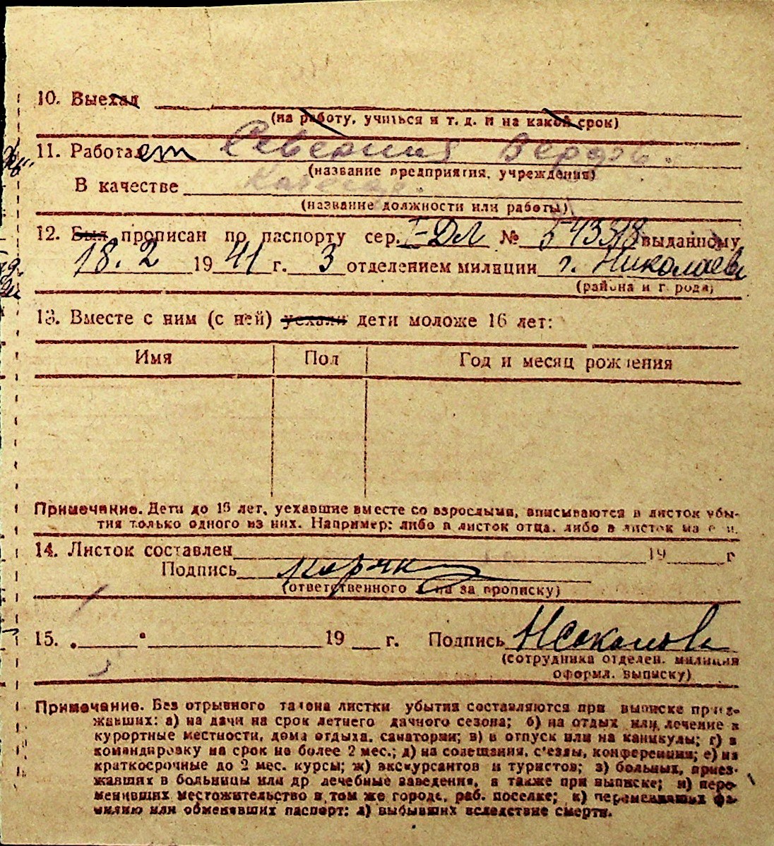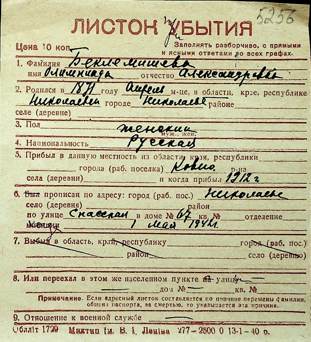 ◦ ◦ Перелік карток на осіб, які мешкали у м. Миколаїв у період окупації 1941–1944 років