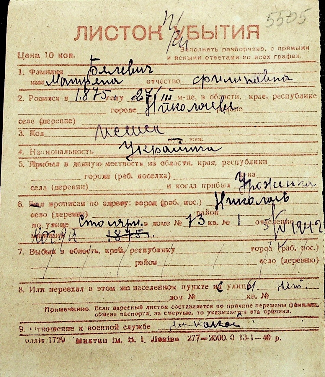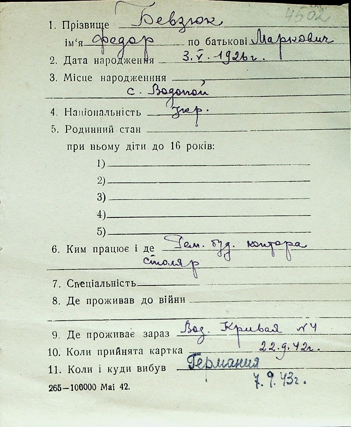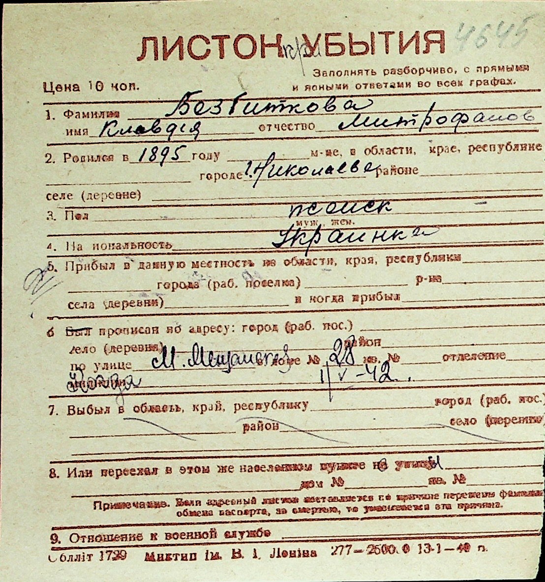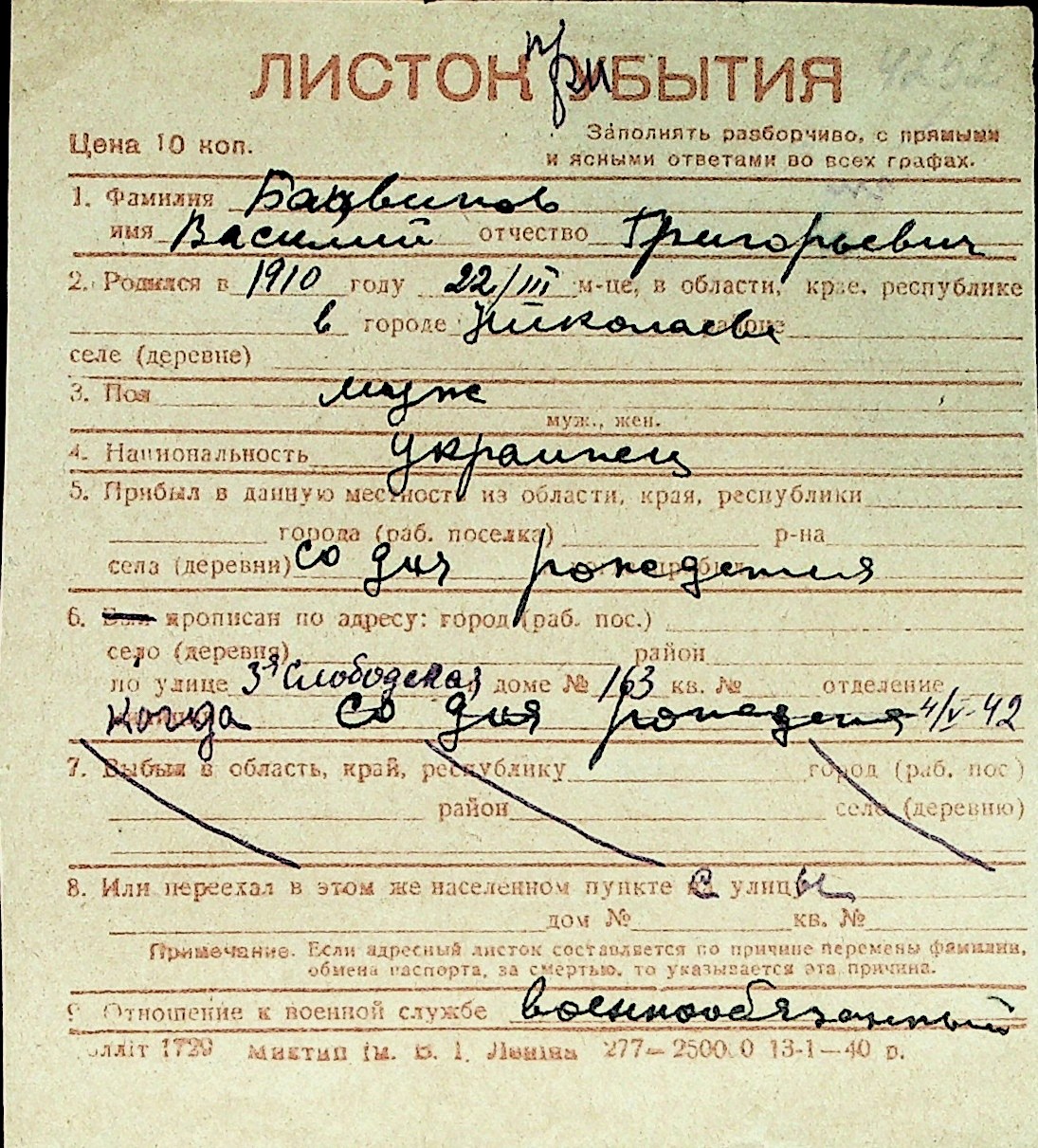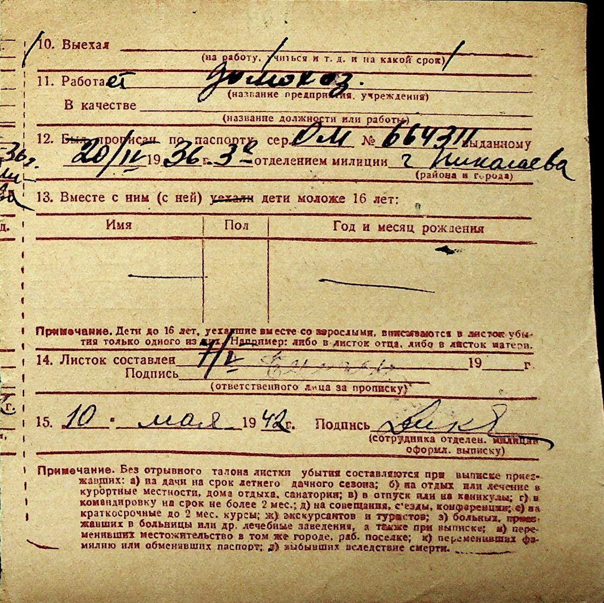 ◦ ◦ Перелік карток на осіб, які мешкали у м. Миколаїв у період окупації 1941–1944 років