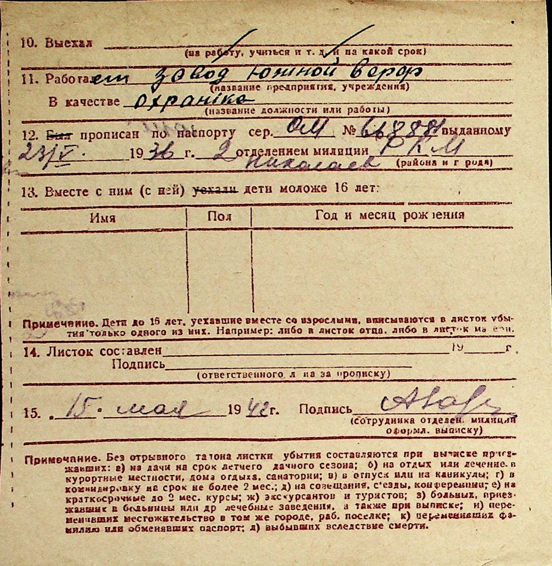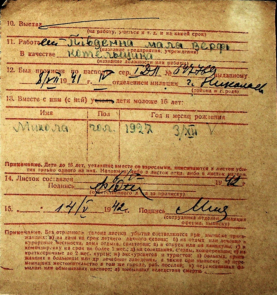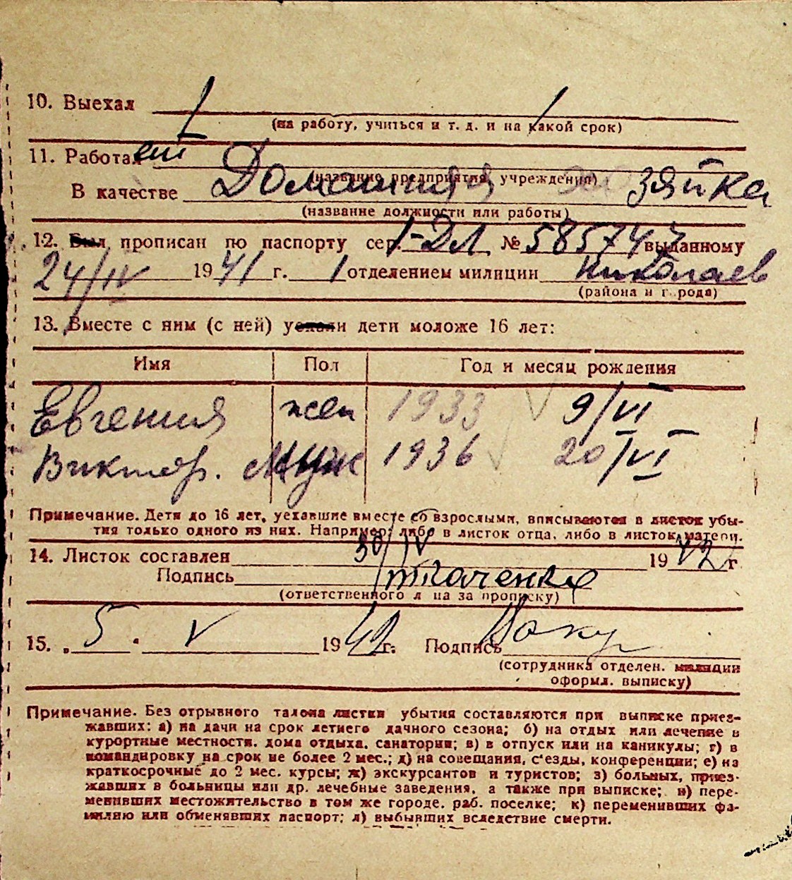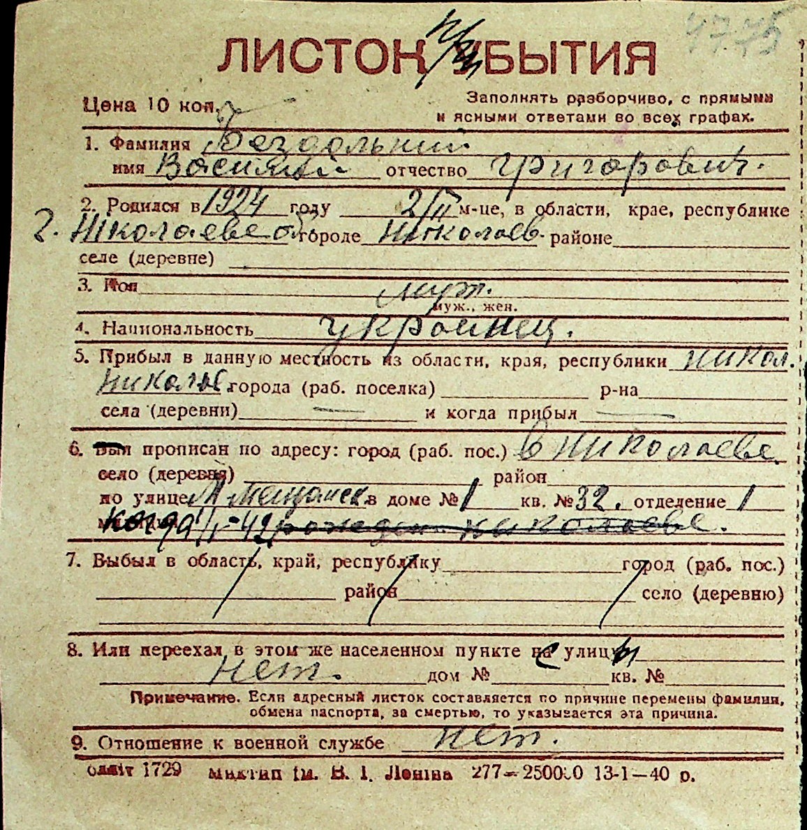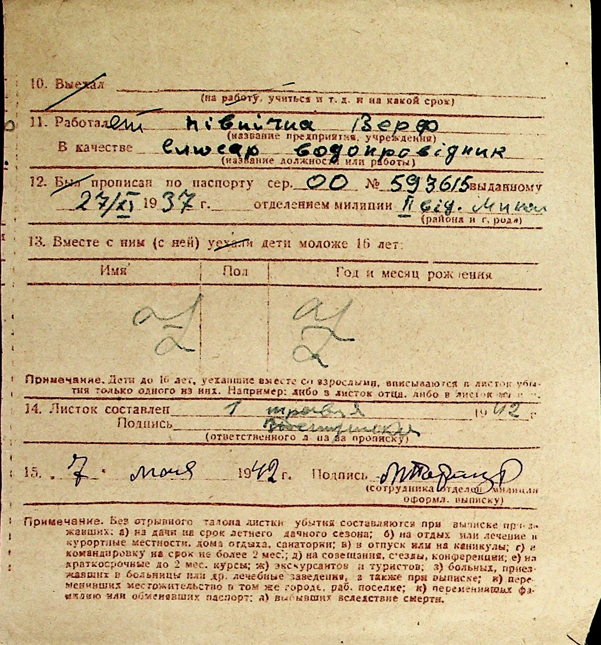 ◦ ◦ Перелік карток на осіб, які мешкали у м. Миколаїв у період окупації 1941–1944 років