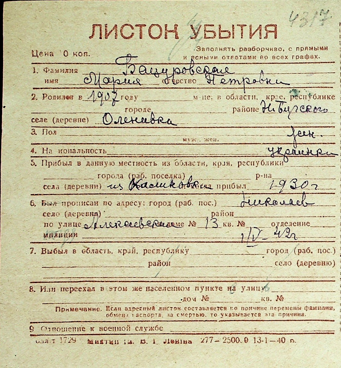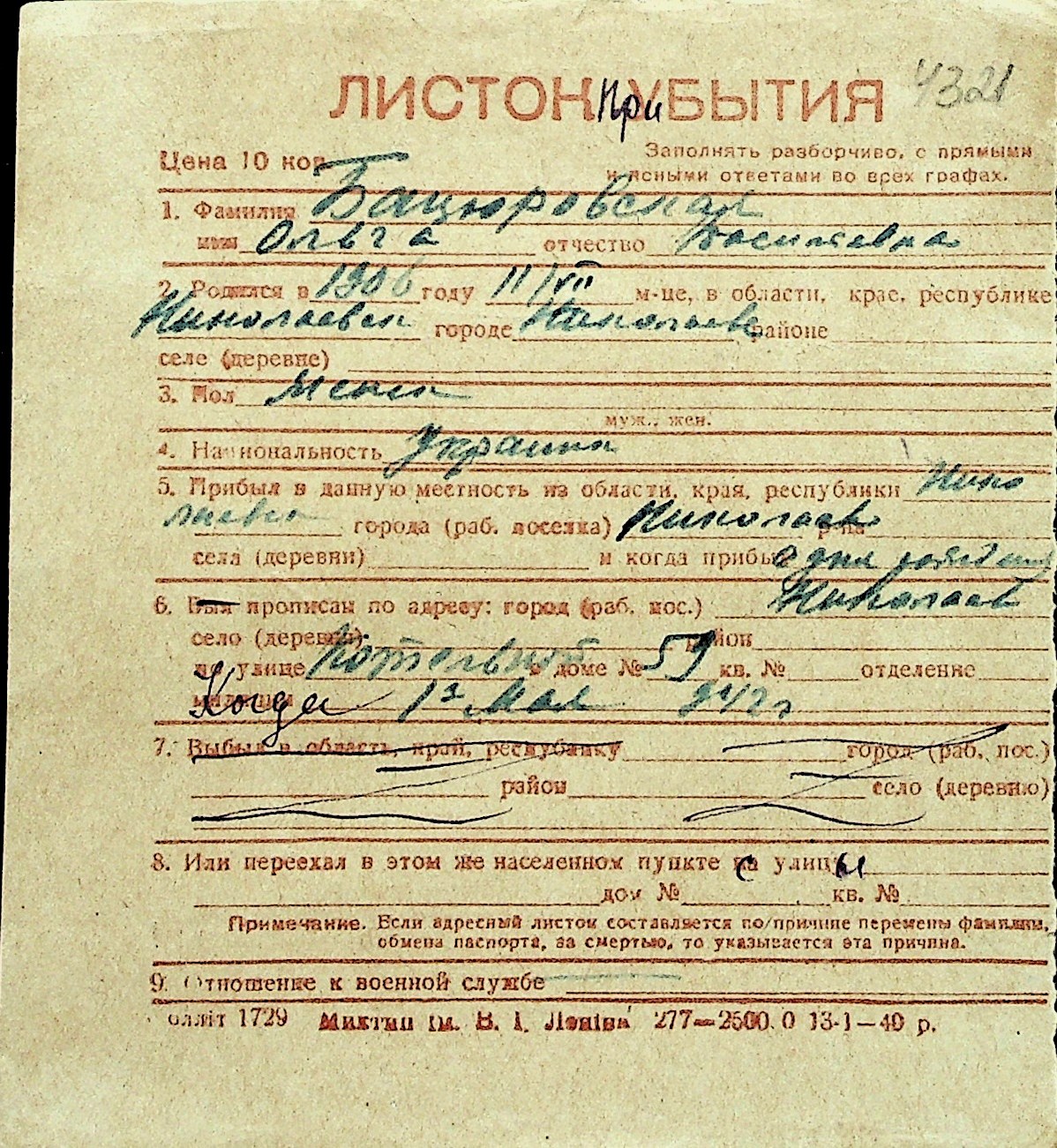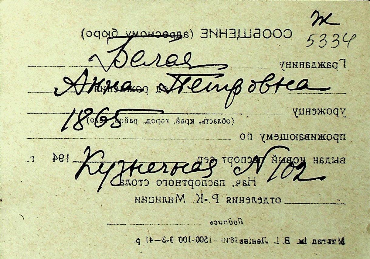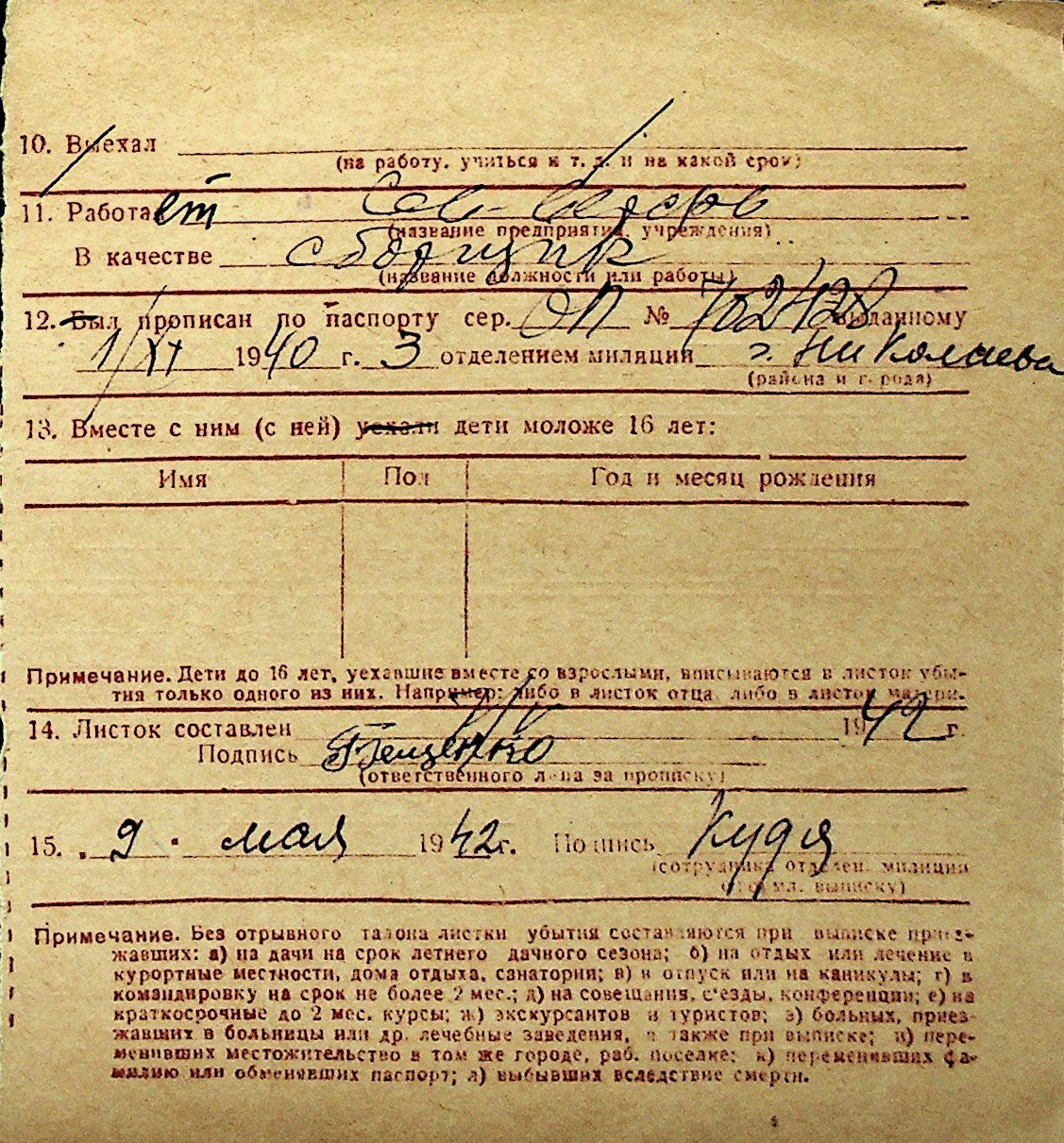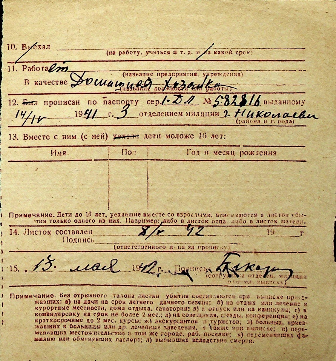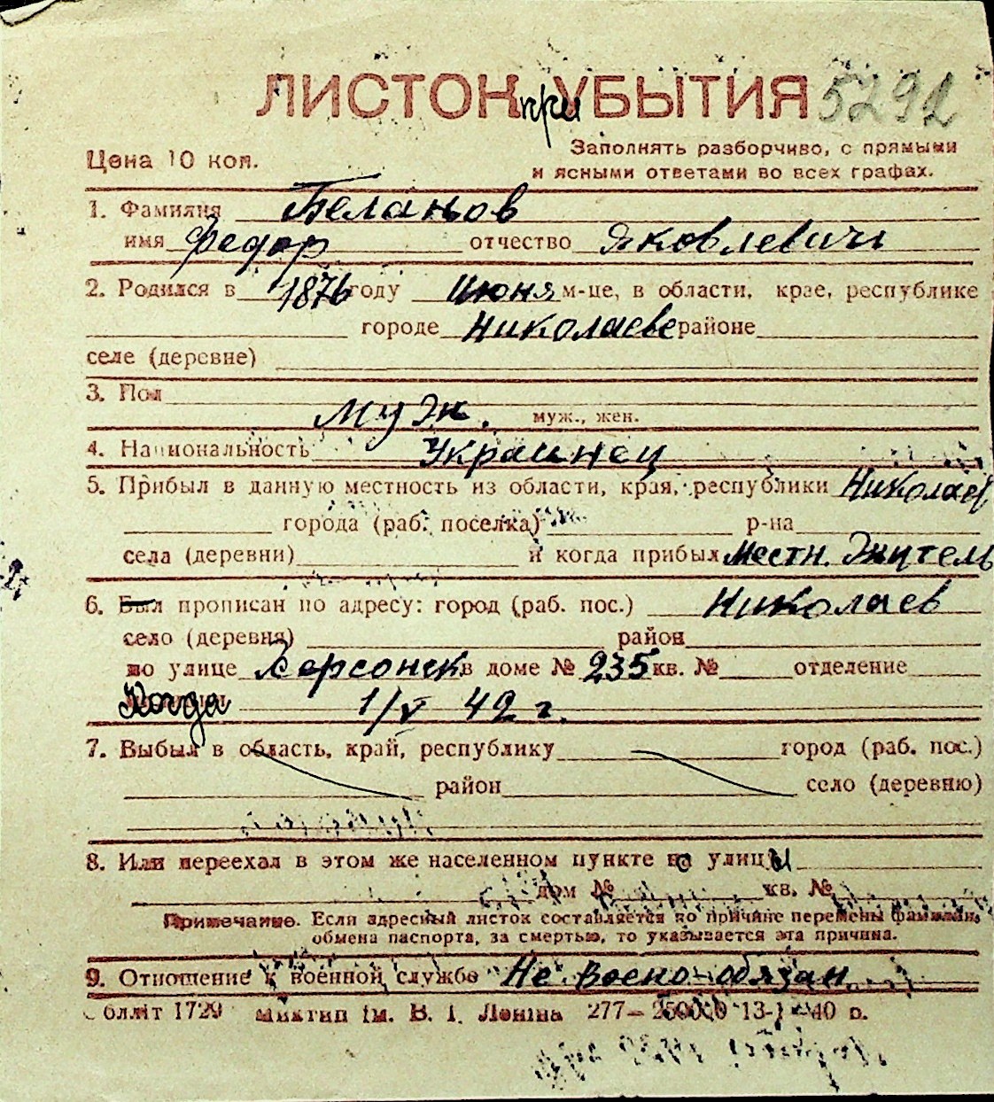 ◦ ◦ Перелік карток на осіб, які мешкали у м. Миколаїв у період окупації 1941–1944 років
