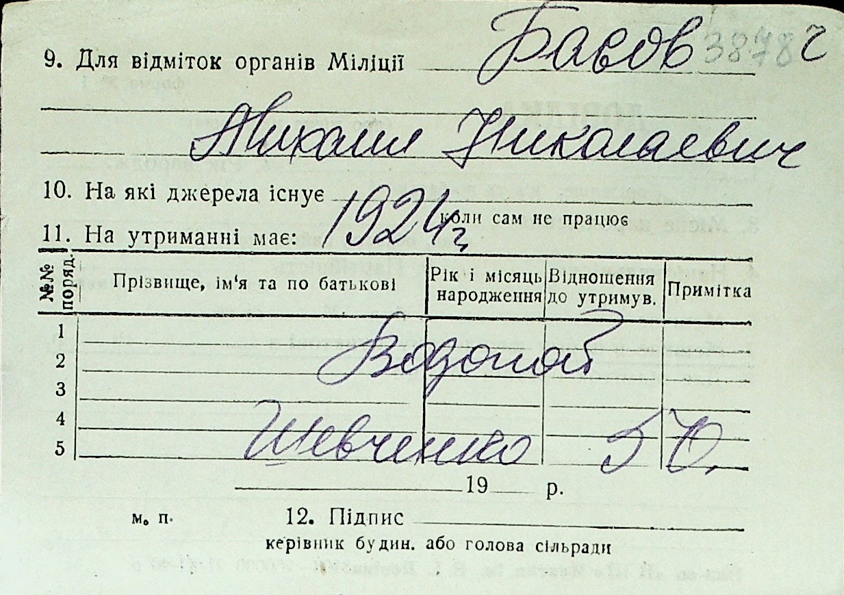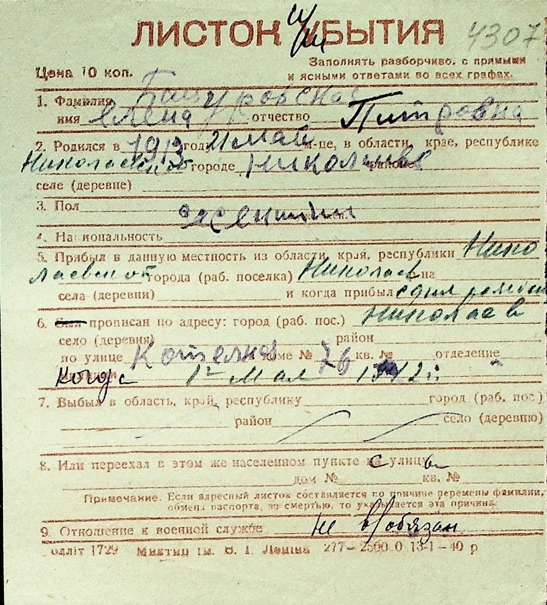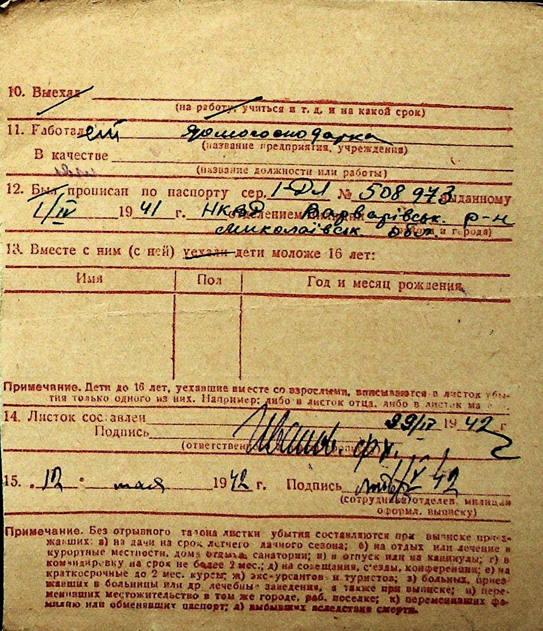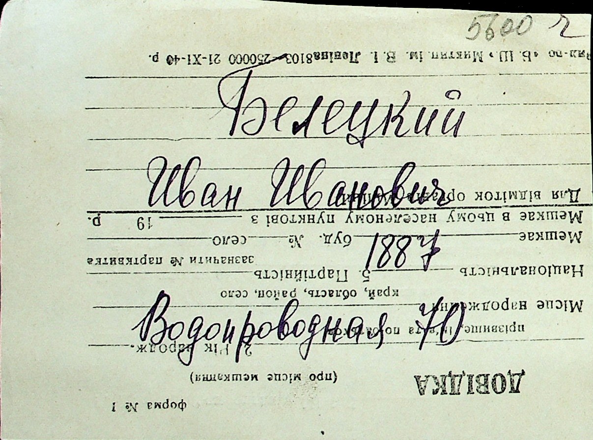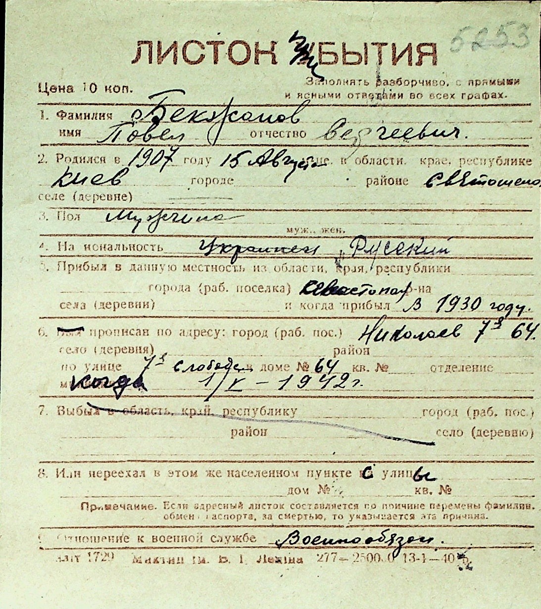 ◦ ◦ Перелік карток на осіб, які мешкали у м. Миколаїв у період окупації 1941–1944 років