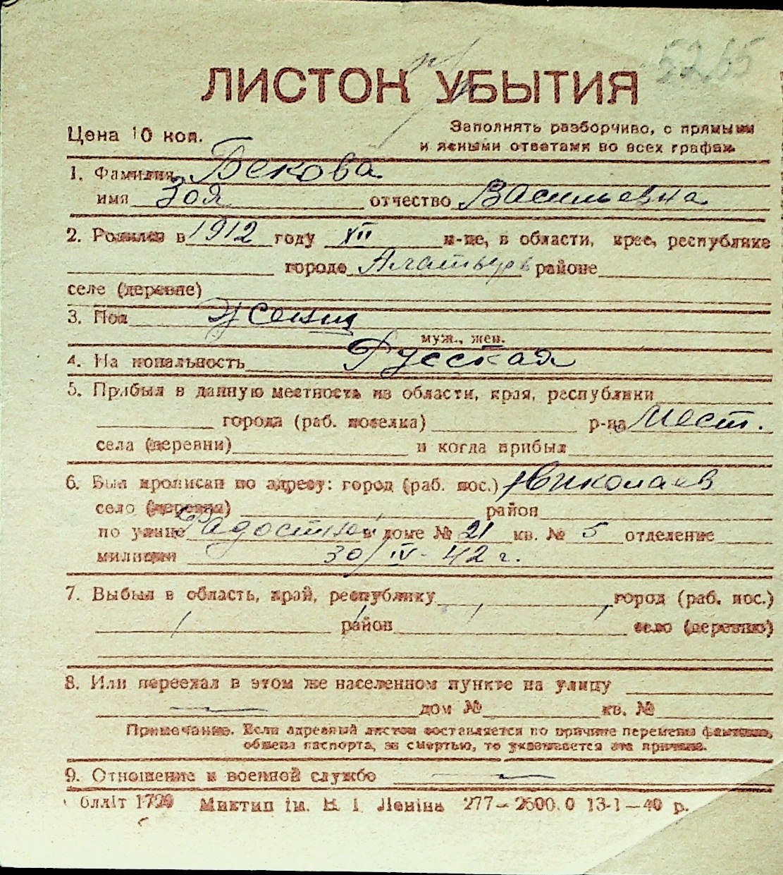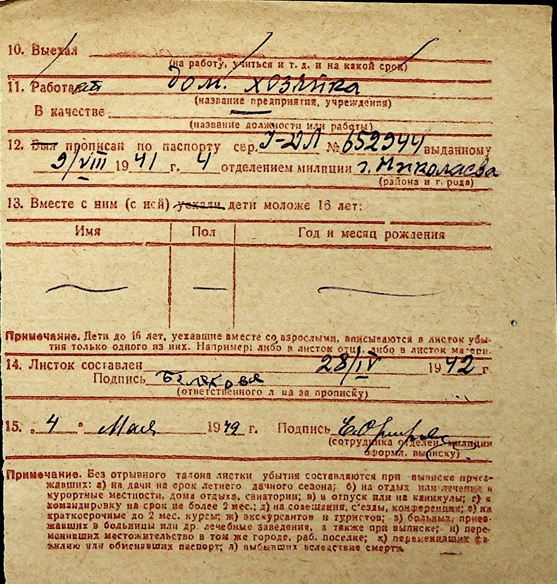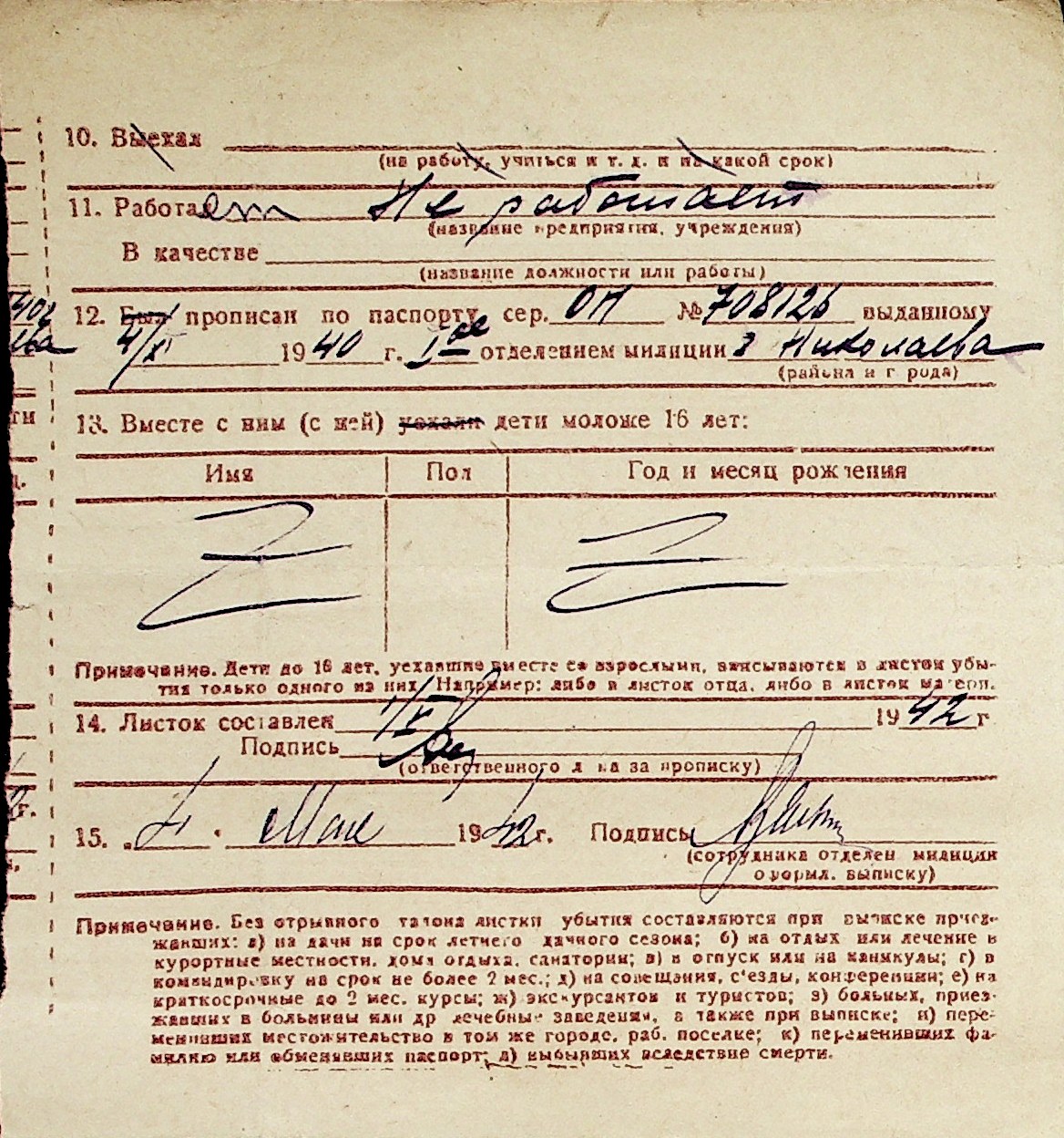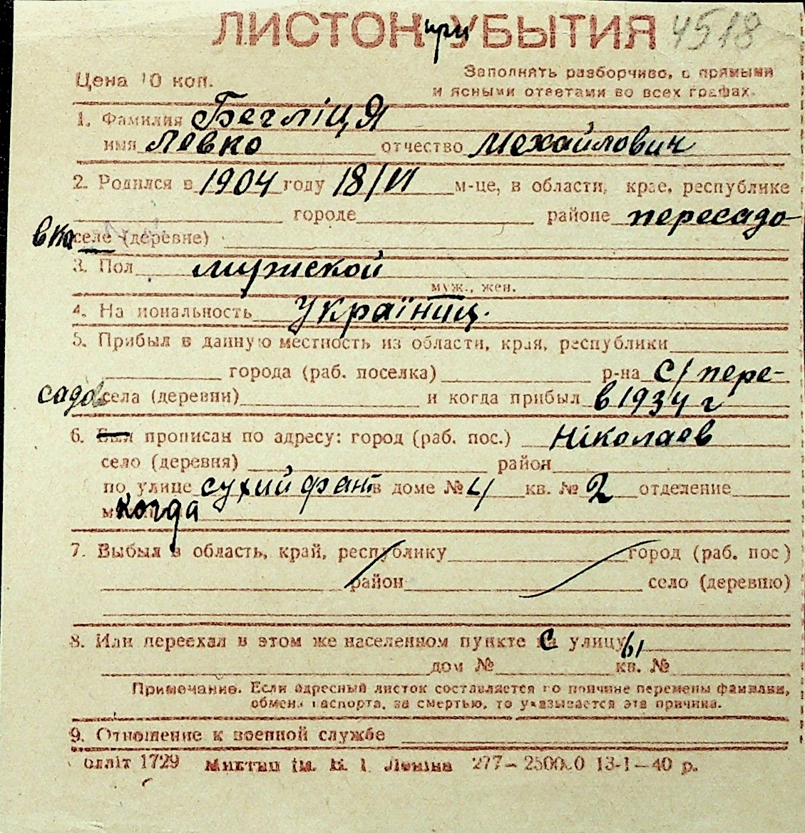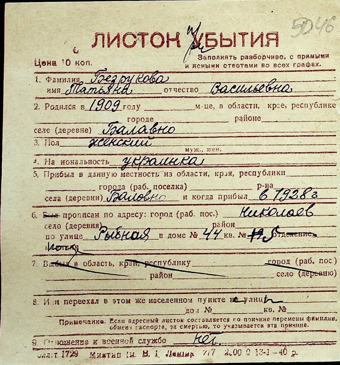 ◦ ◦ Перелік карток на осіб, які мешкали у м. Миколаїв у період окупації 1941–1944 років
