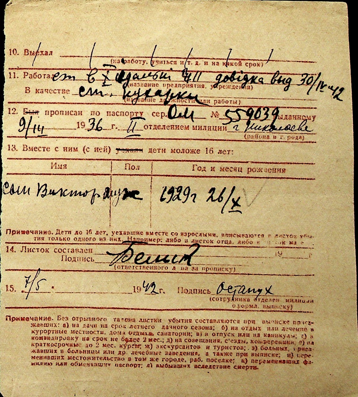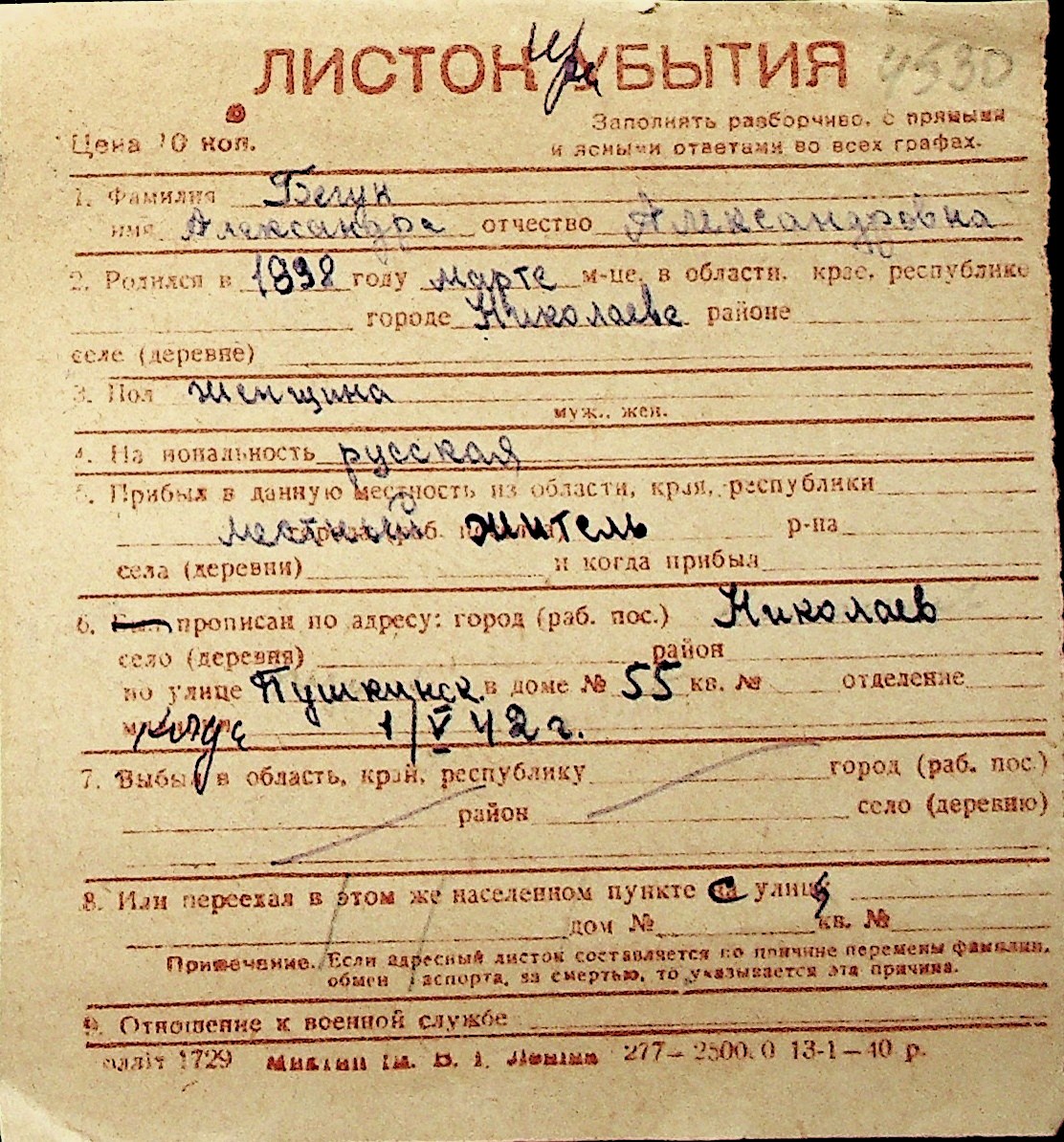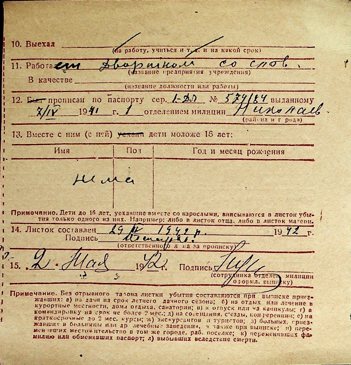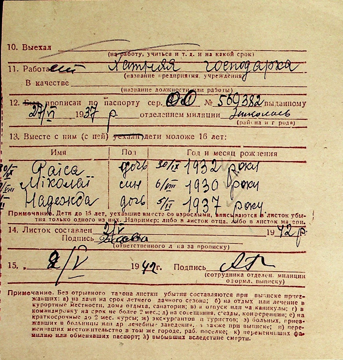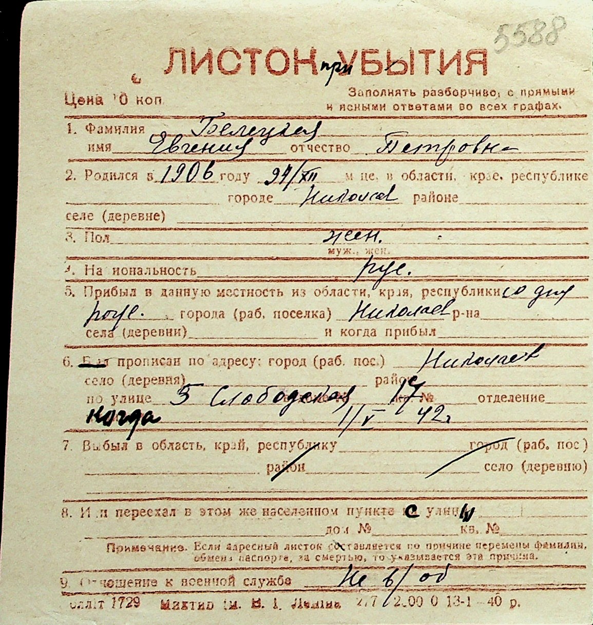 ◦ ◦ Перелік карток на осіб, які мешкали у м. Миколаїв у період окупації 1941–1944 років