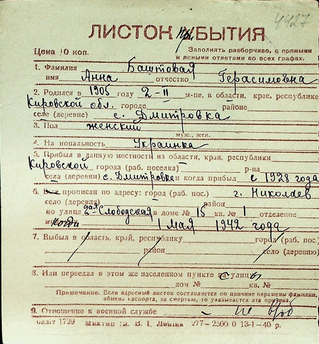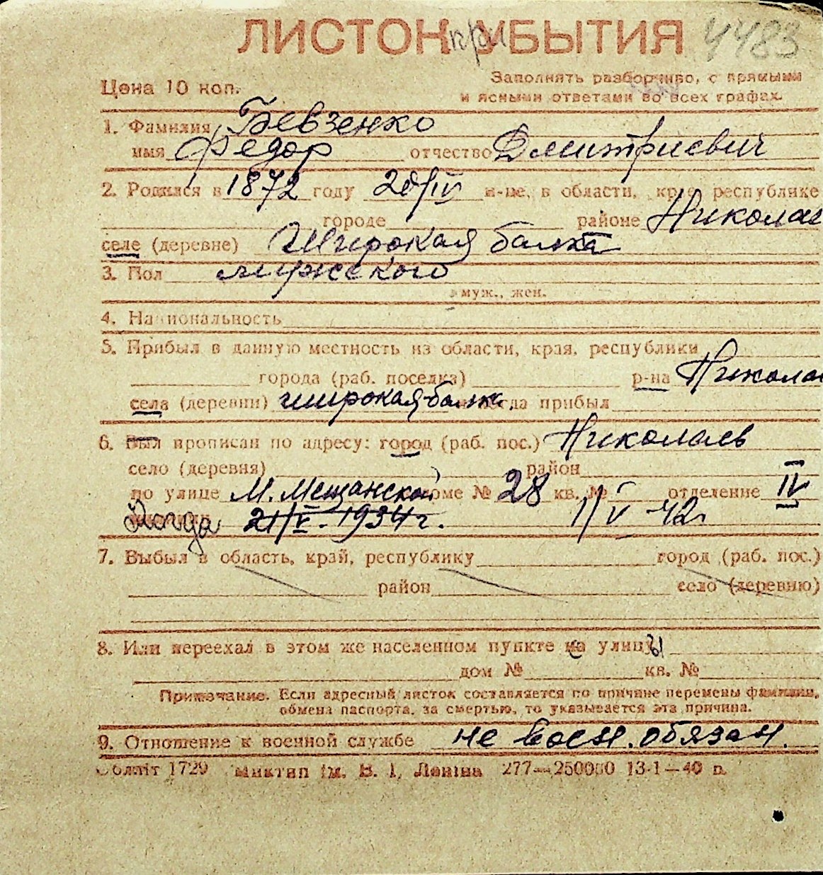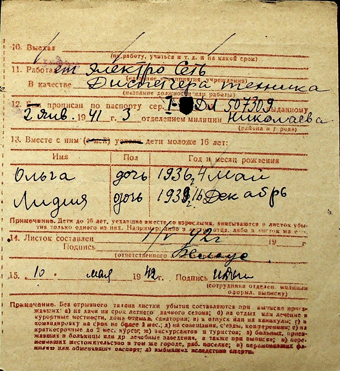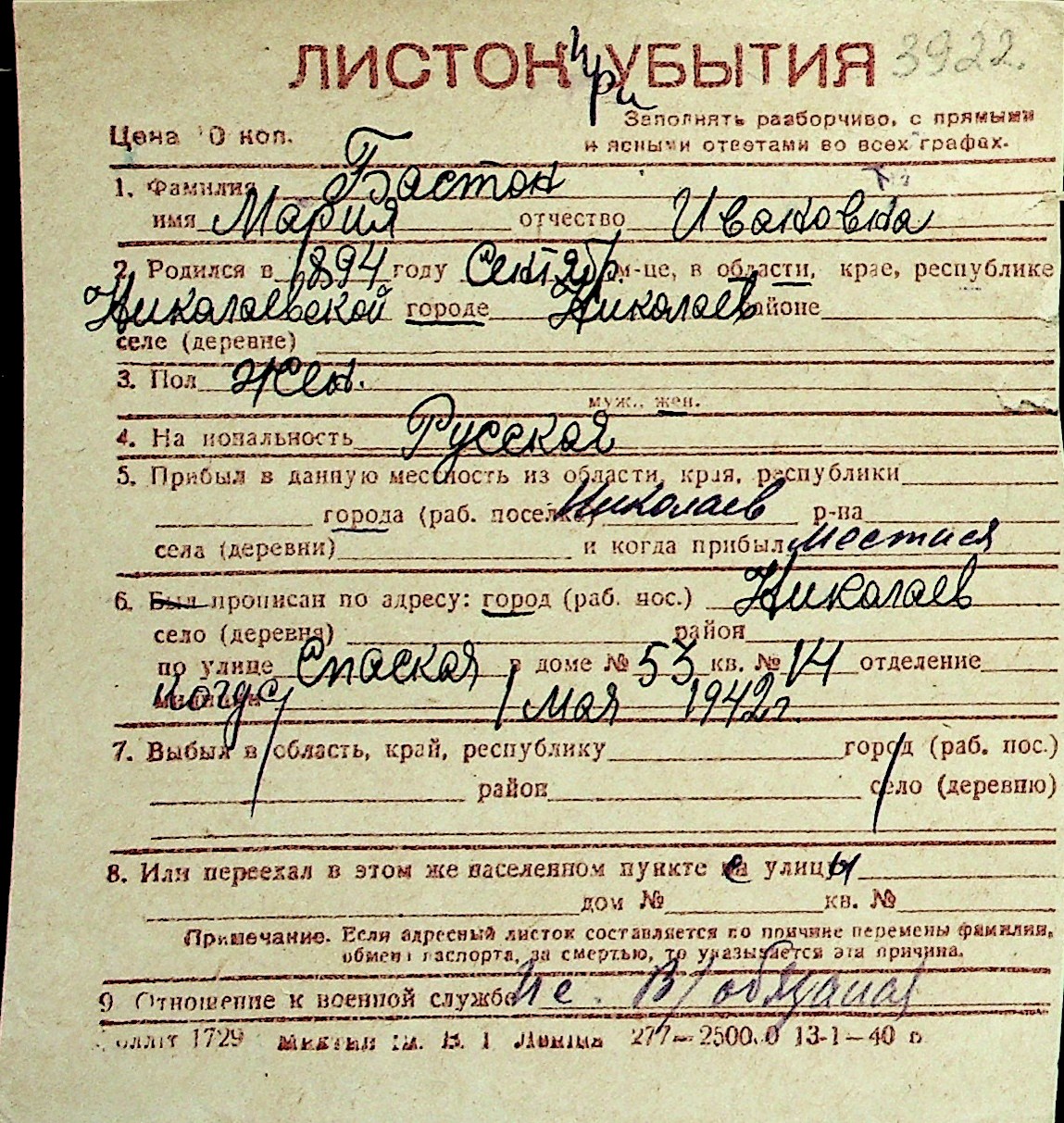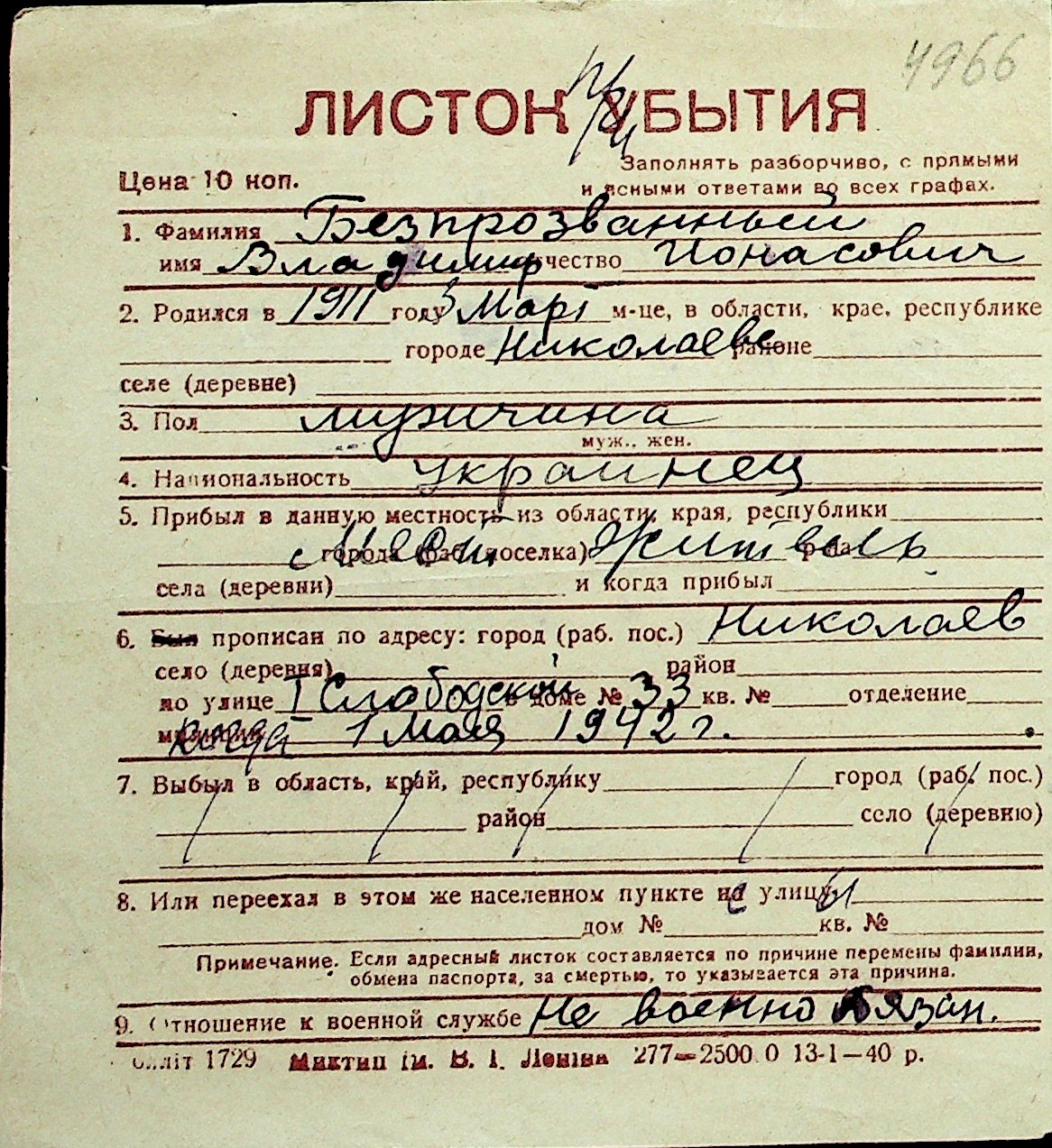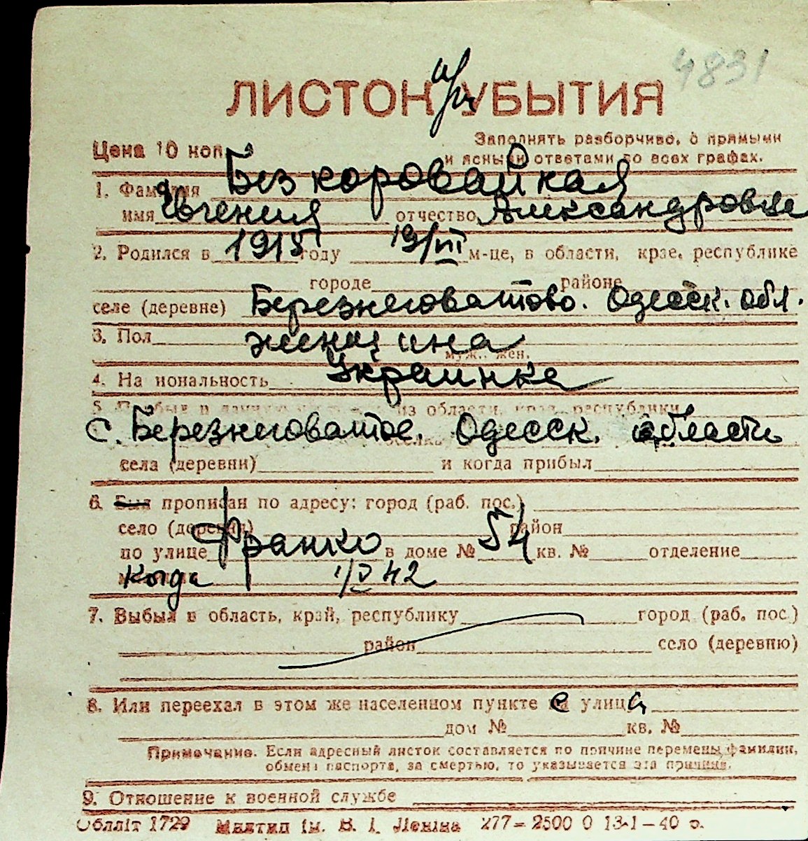 ◦ ◦ Перелік карток на осіб, які мешкали у м. Миколаїв у період окупації 1941–1944 років