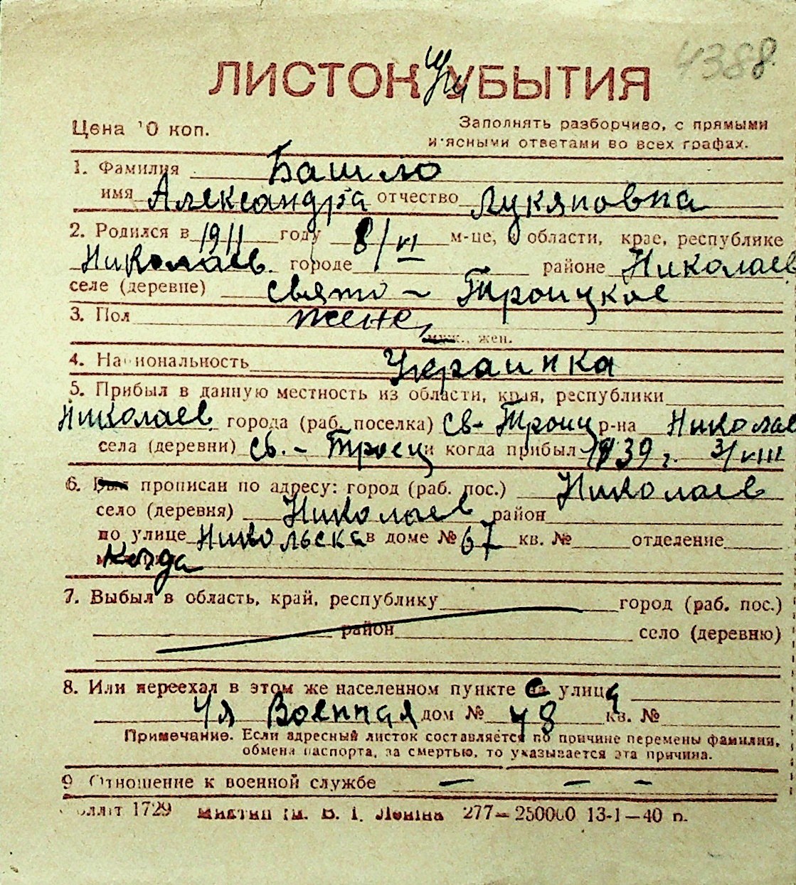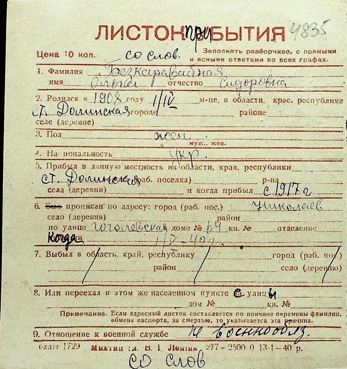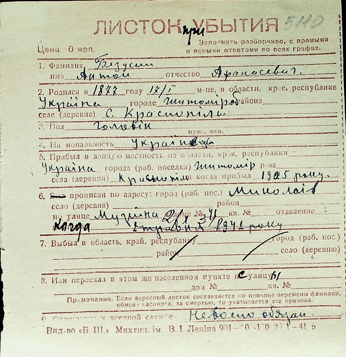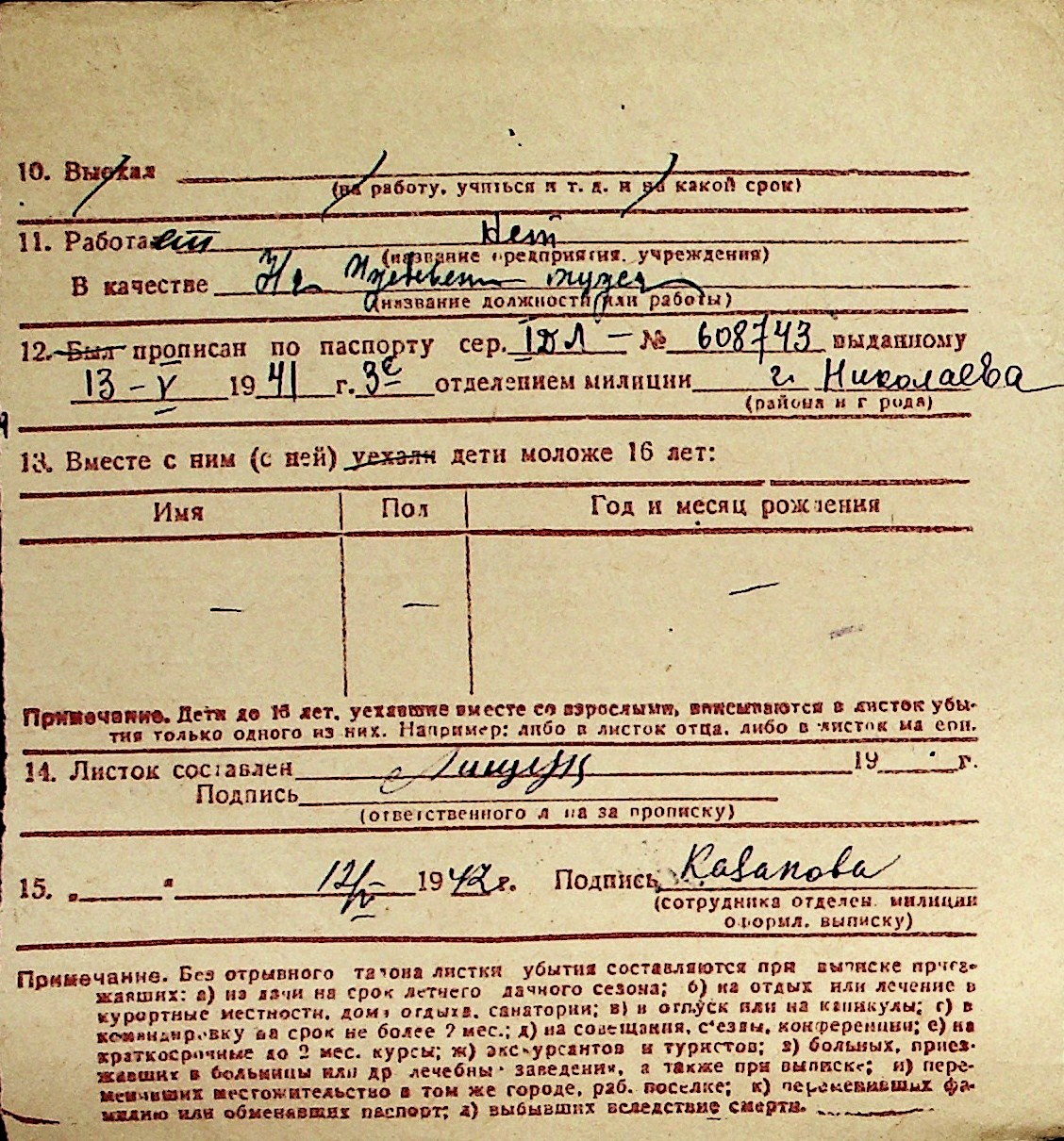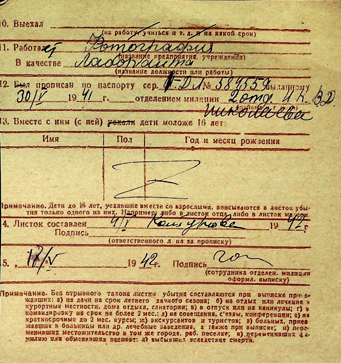 ◦ ◦ Перелік карток на осіб, які мешкали у м. Миколаїв у період окупації 1941–1944 років