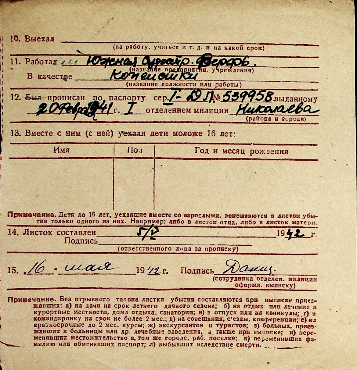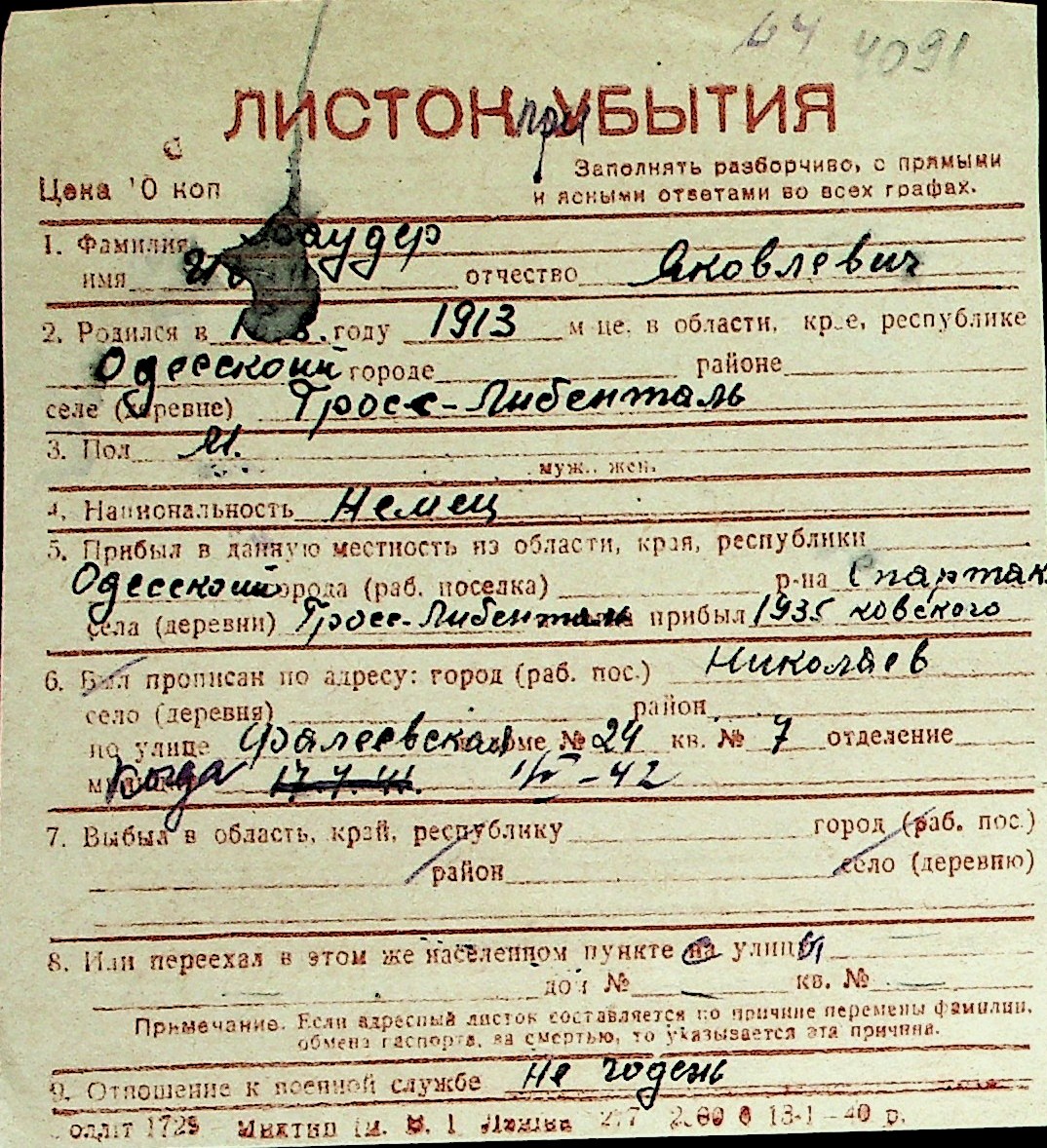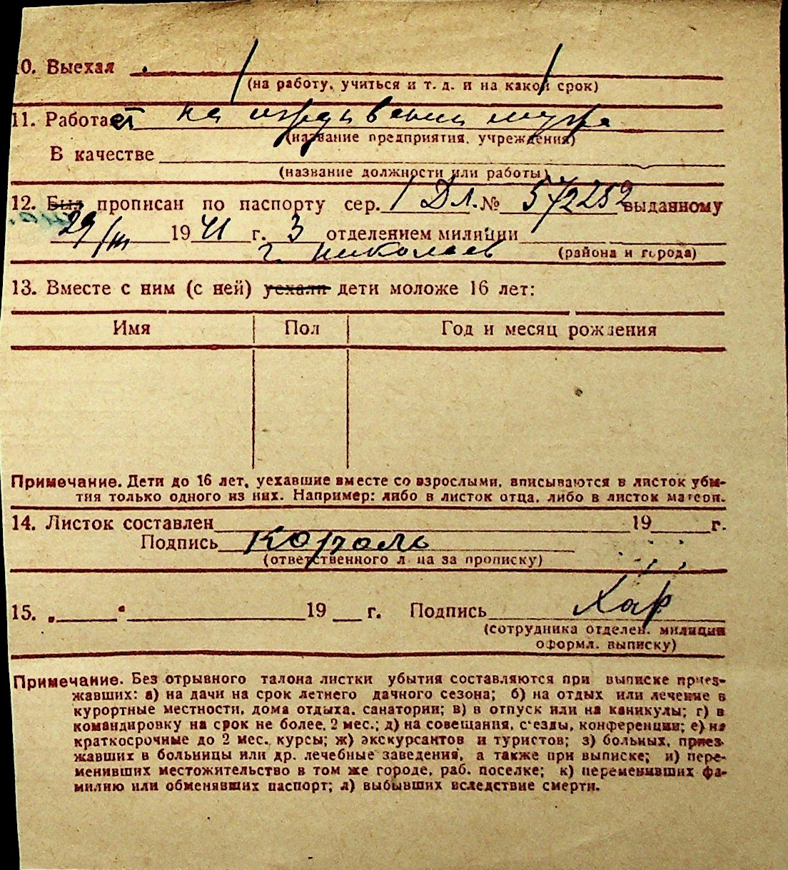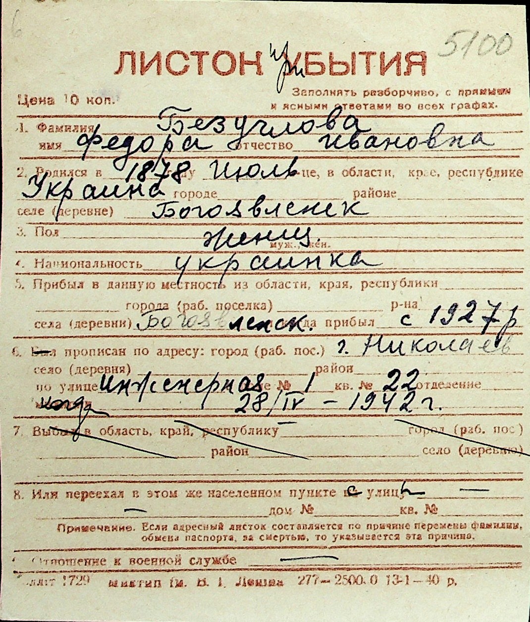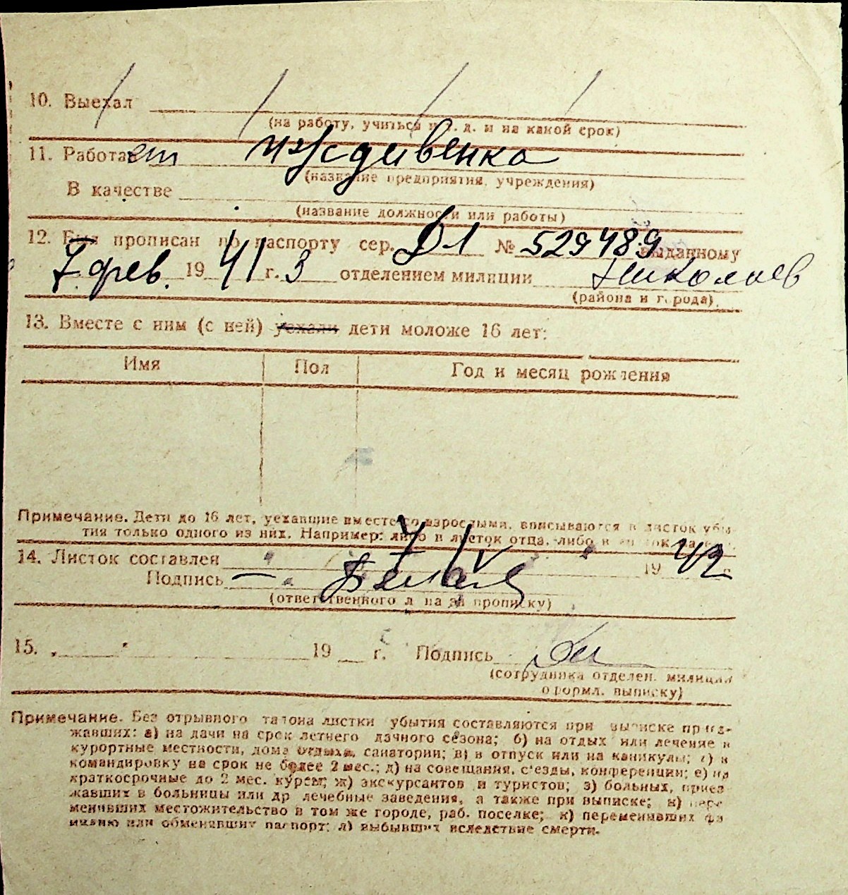 ◦ ◦ Перелік карток на осіб, які мешкали у м. Миколаїв у період окупації 1941–1944 років