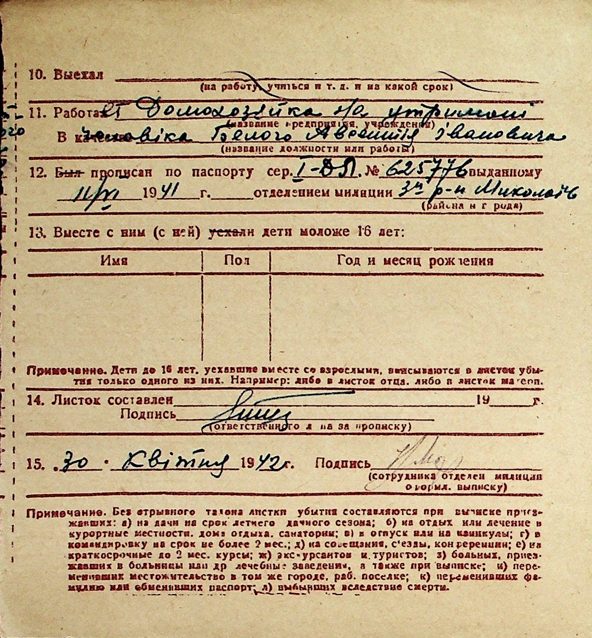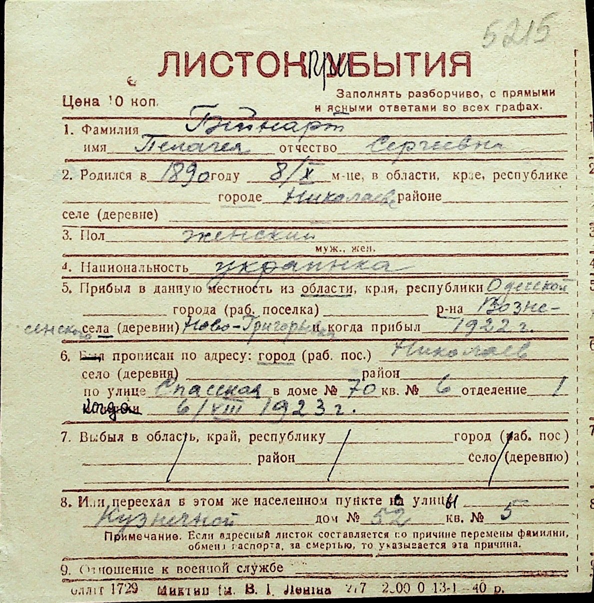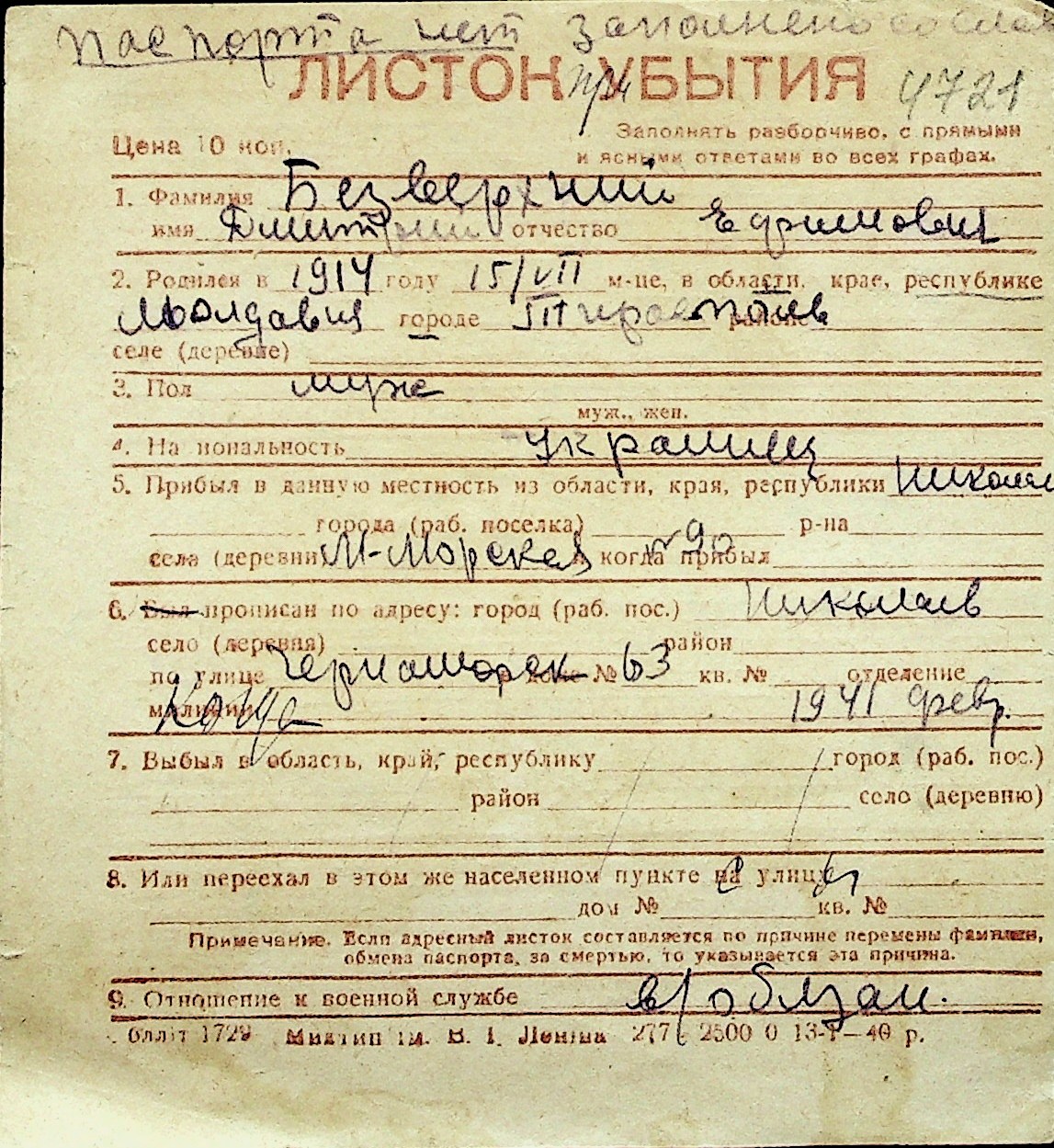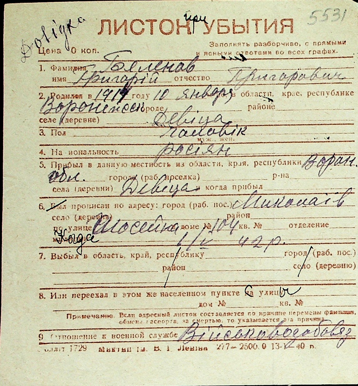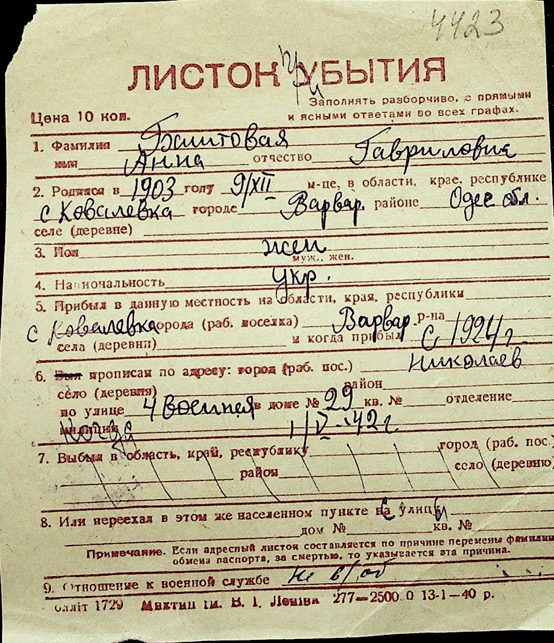 ◦ ◦ Перелік карток на осіб, які мешкали у м. Миколаїв у період окупації 1941–1944 років