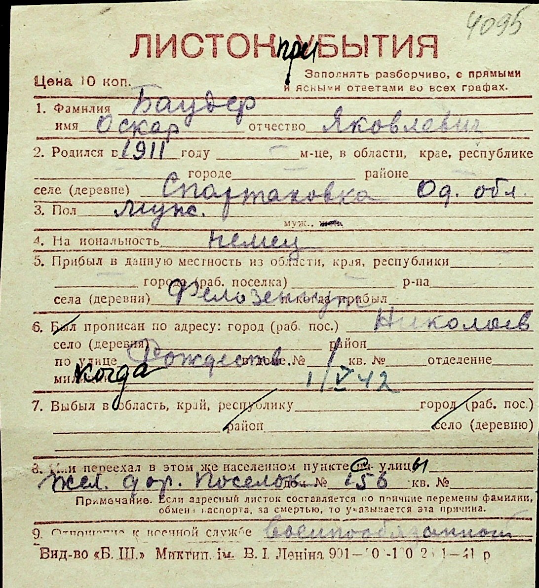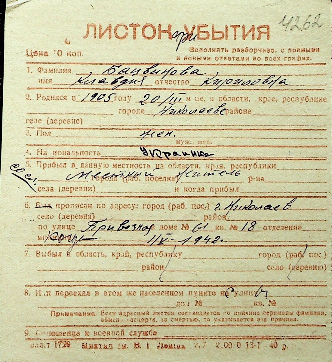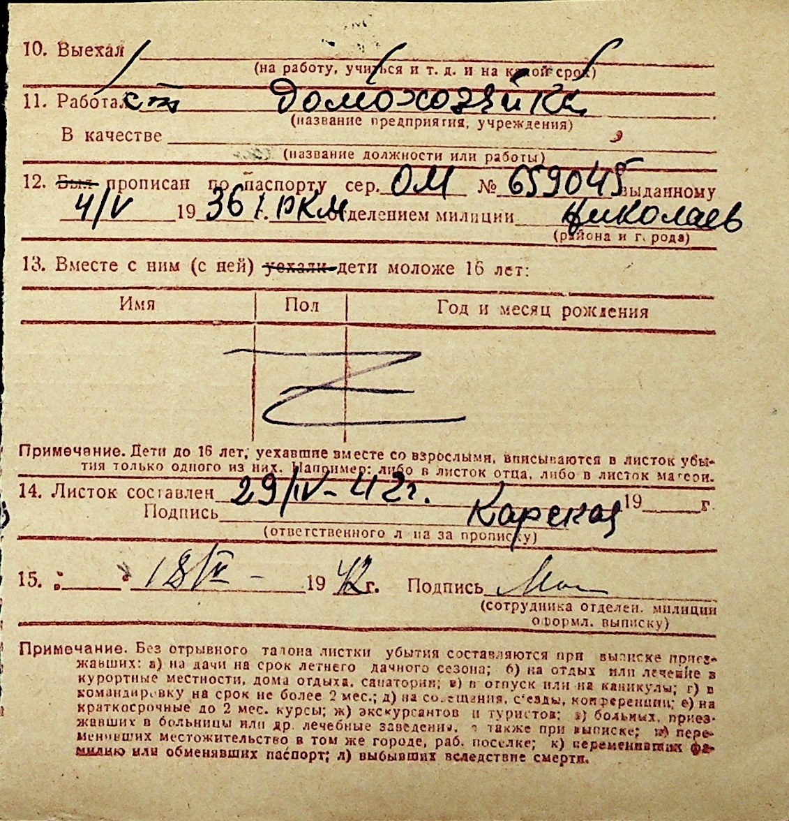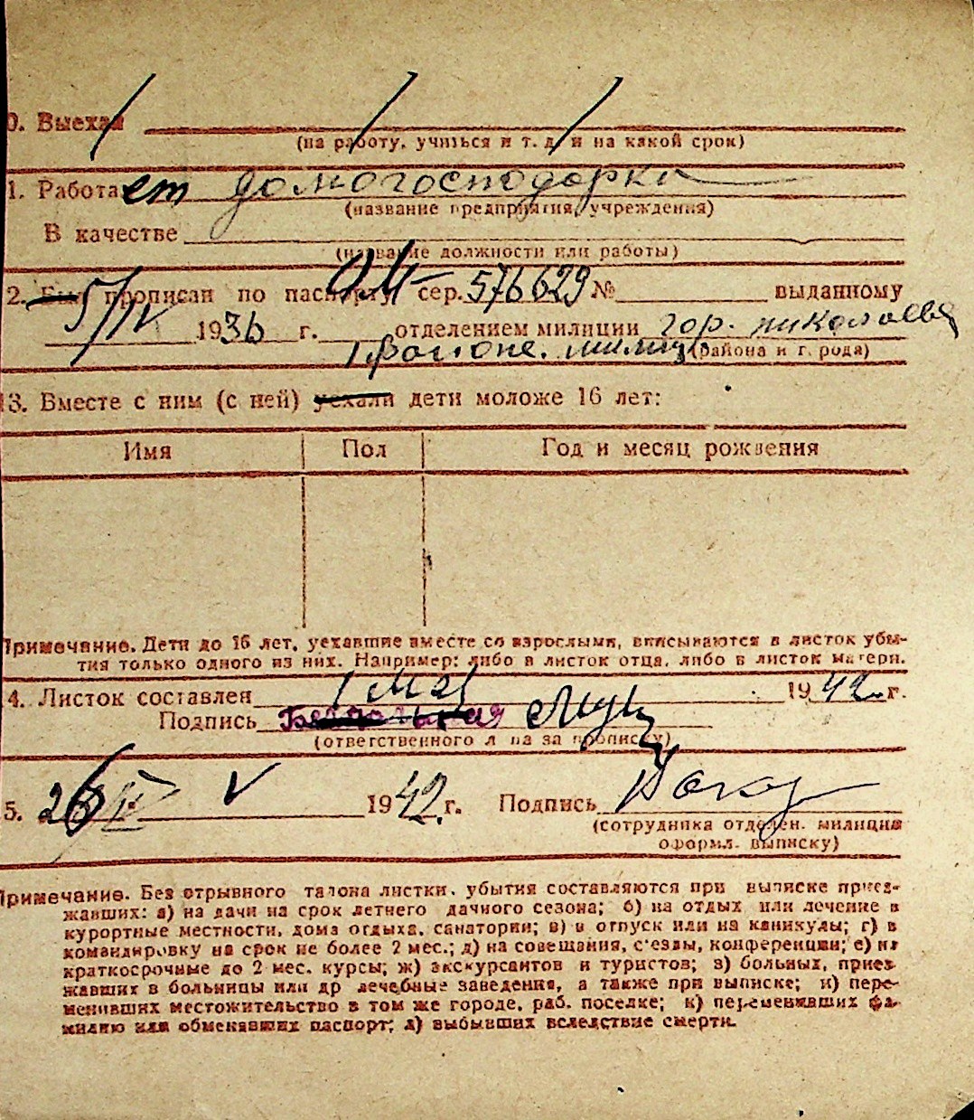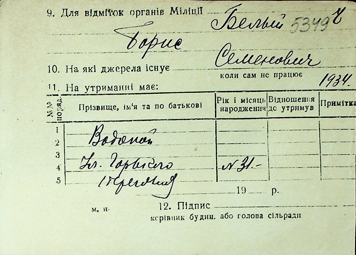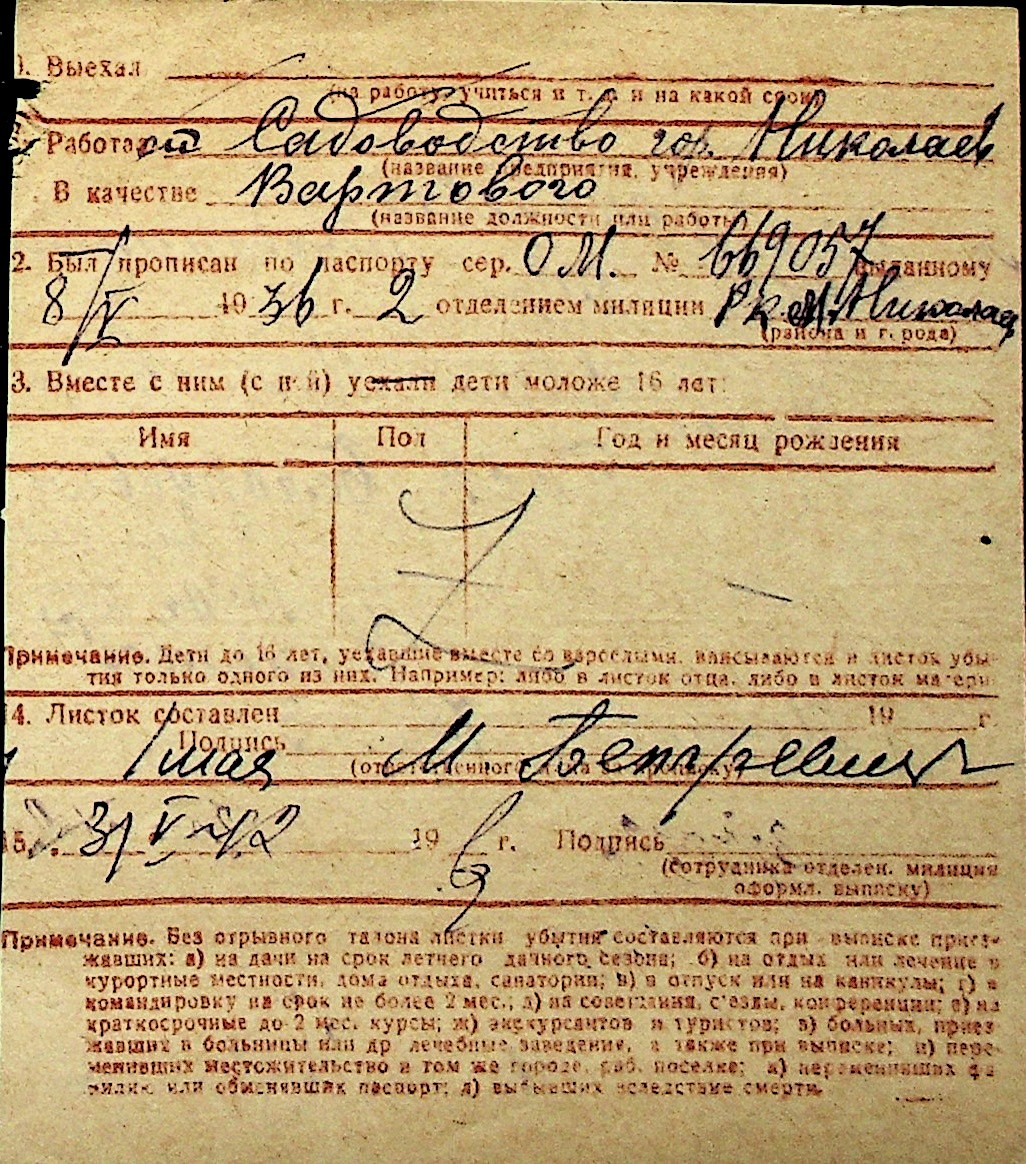 ◦ ◦ Перелік карток на осіб, які мешкали у м. Миколаїв у період окупації 1941–1944 років
