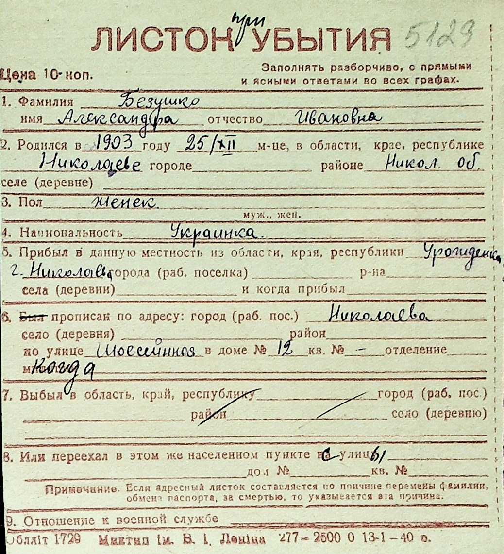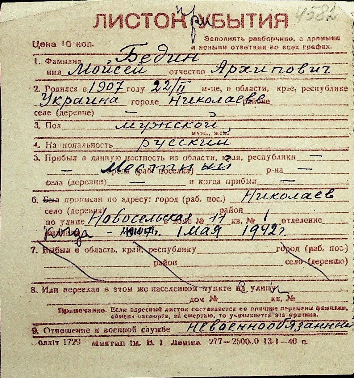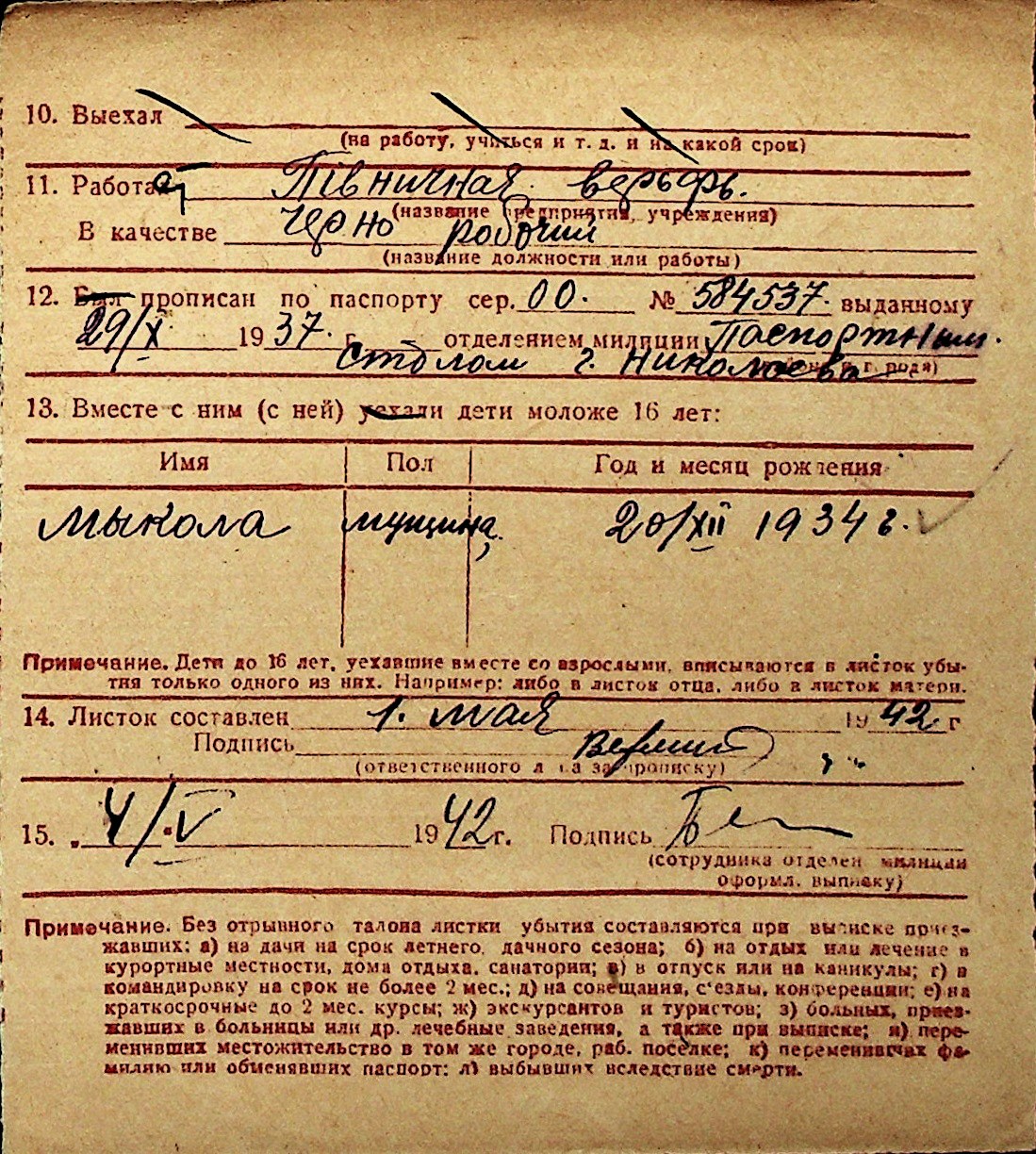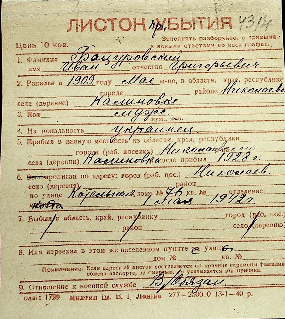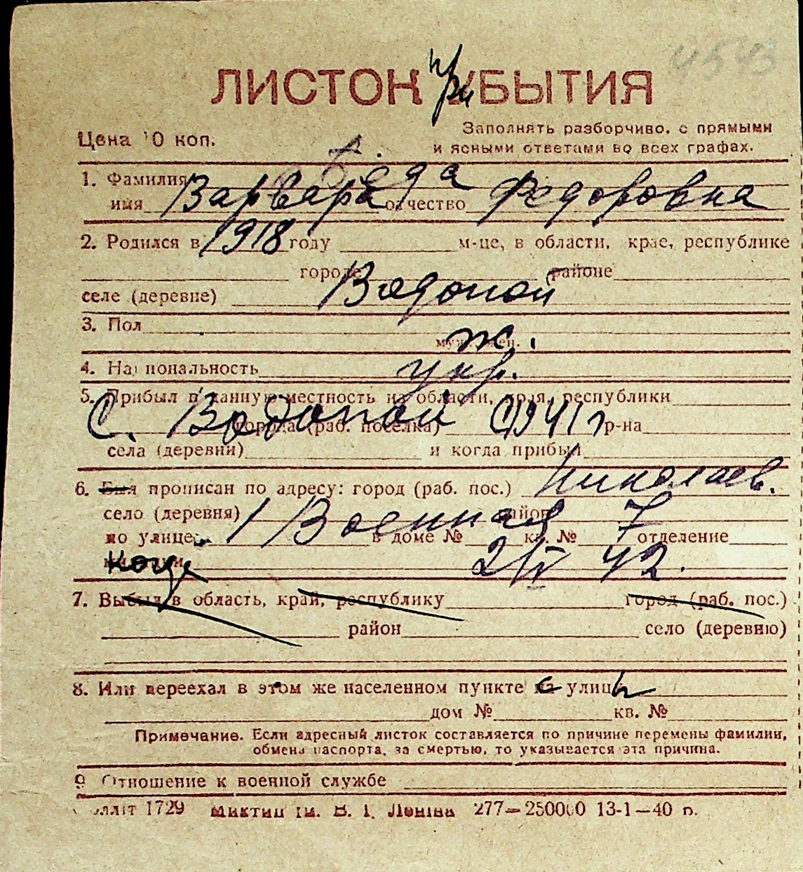 ◦ ◦ Перелік карток на осіб, які мешкали у м. Миколаїв у період окупації 1941–1944 років