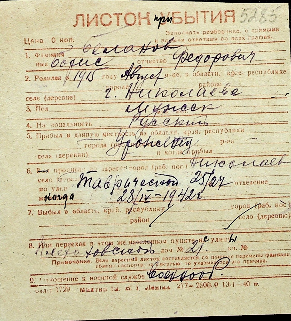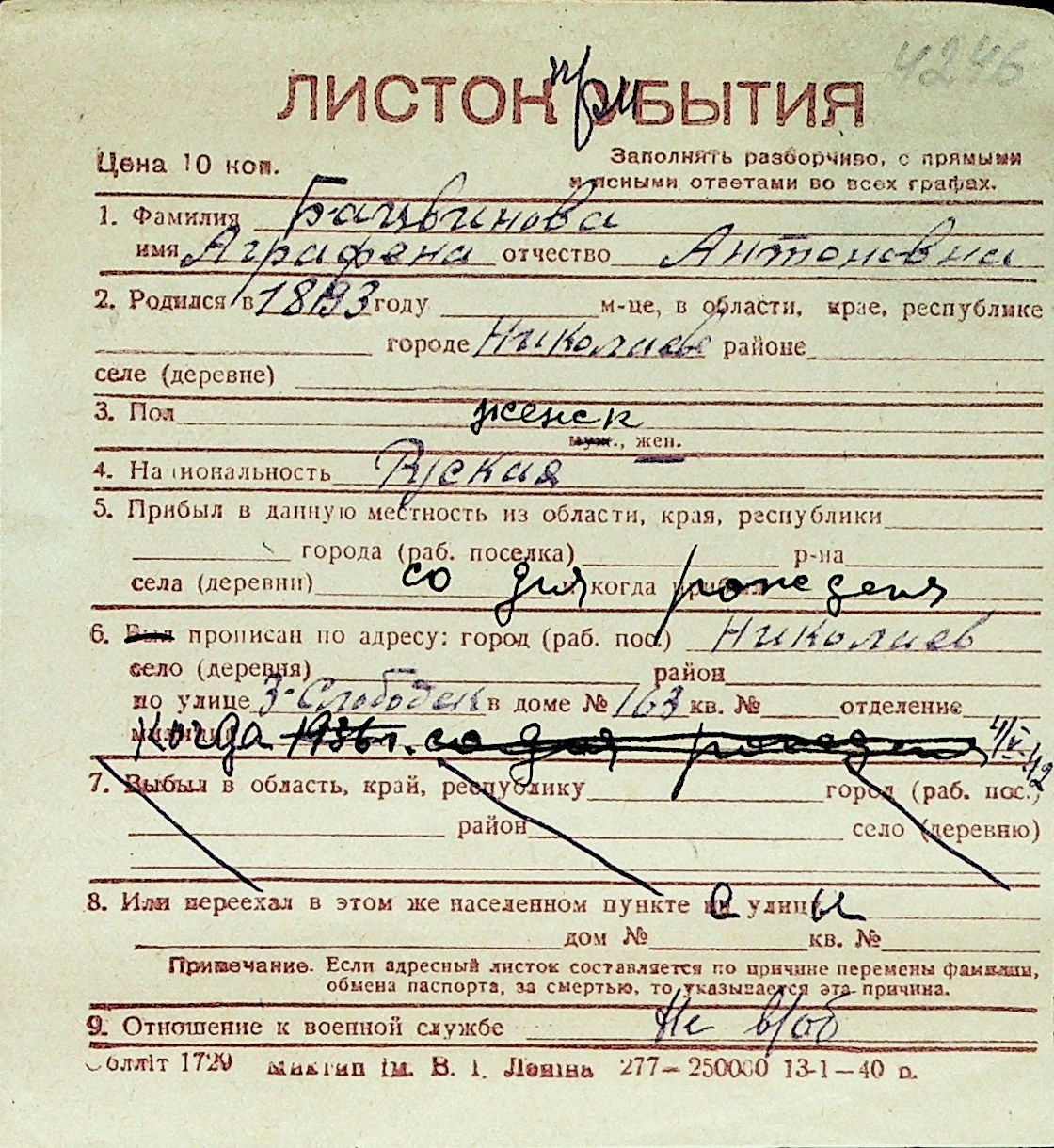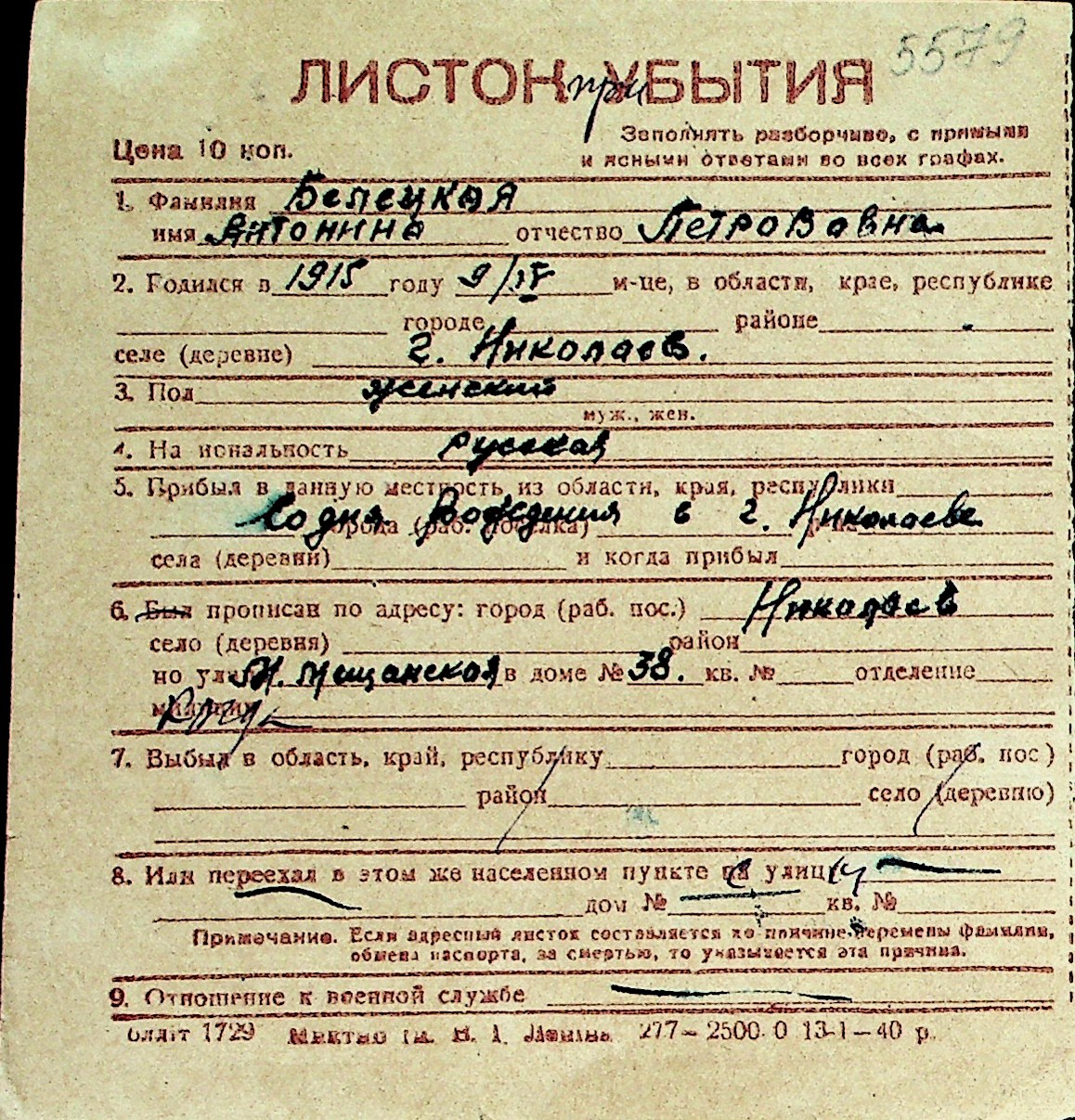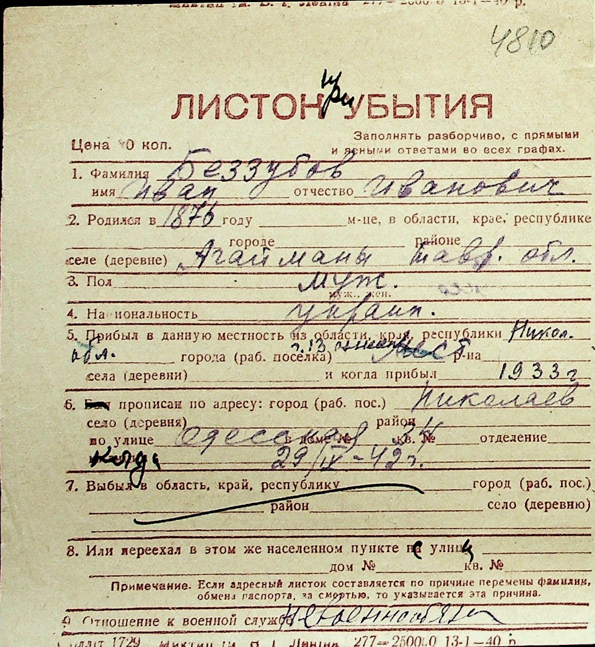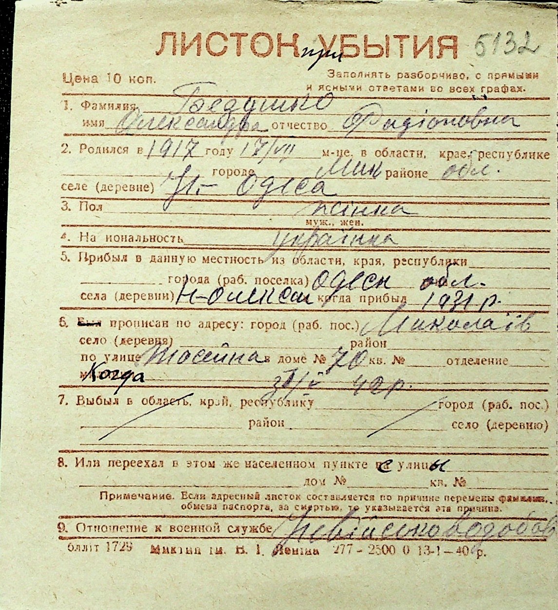 ◦ ◦ Перелік карток на осіб, які мешкали у м. Миколаїв у період окупації 1941–1944 років