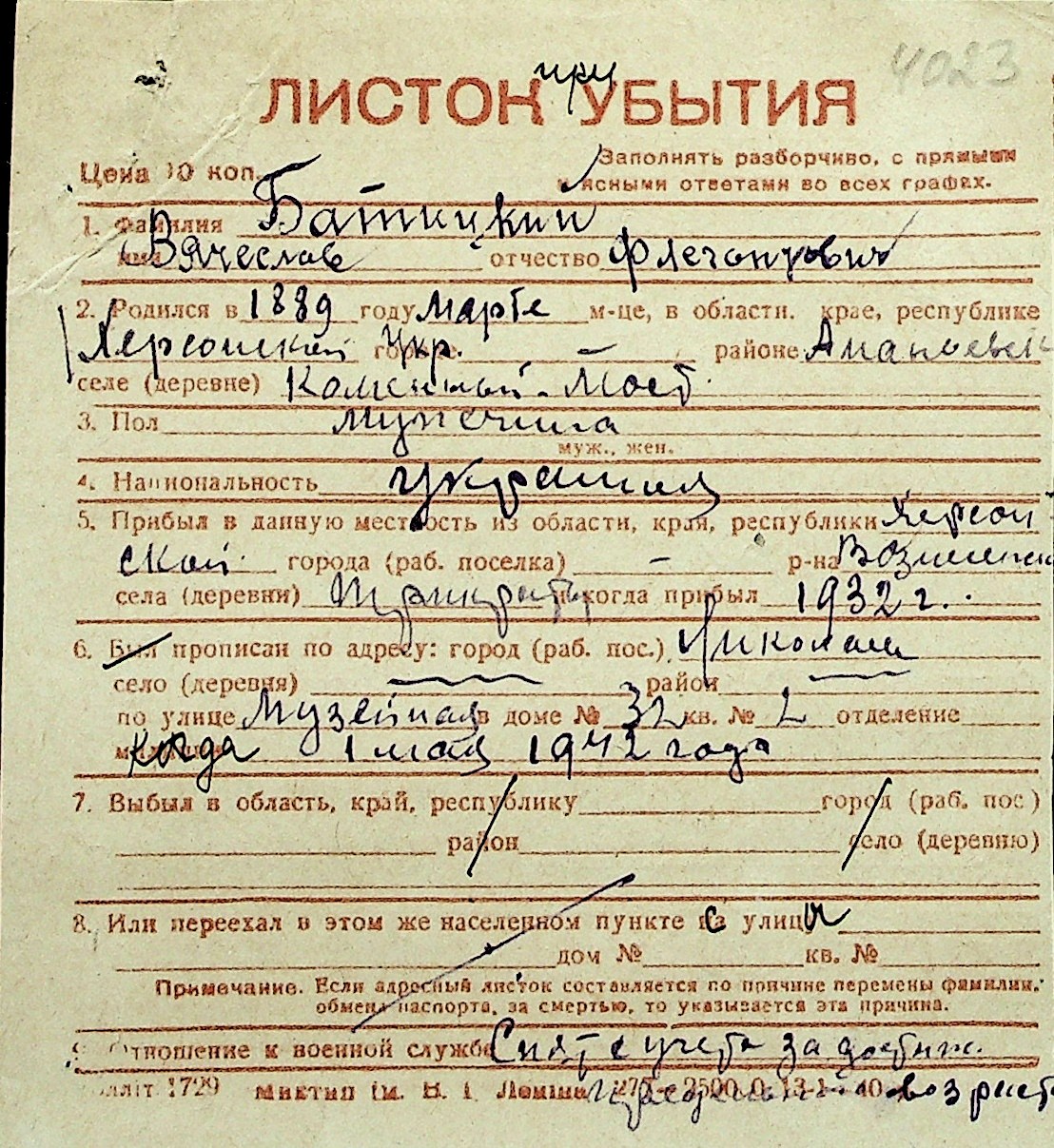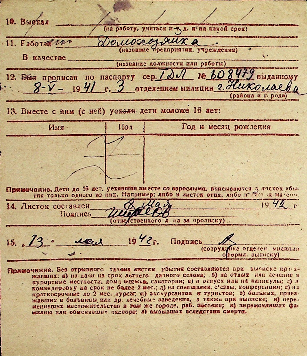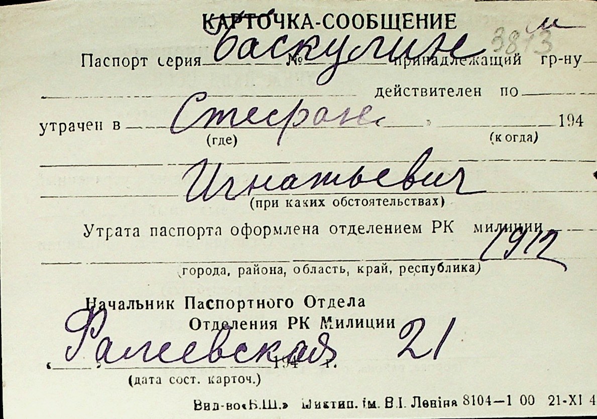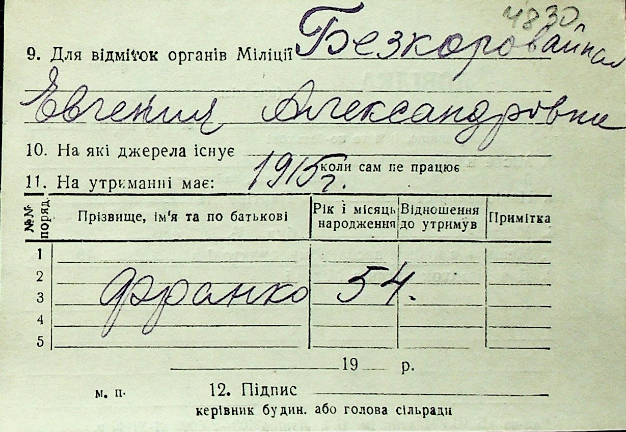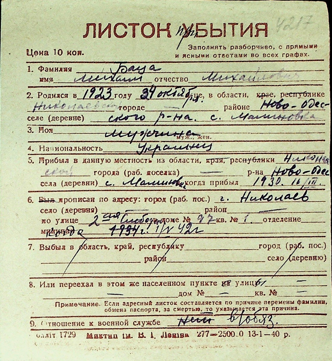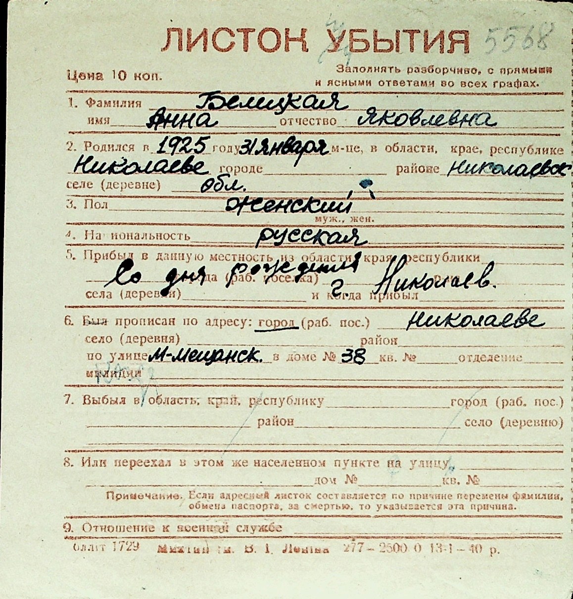 ◦ ◦ Перелік карток на осіб, які мешкали у м. Миколаїв у період окупації 1941–1944 років