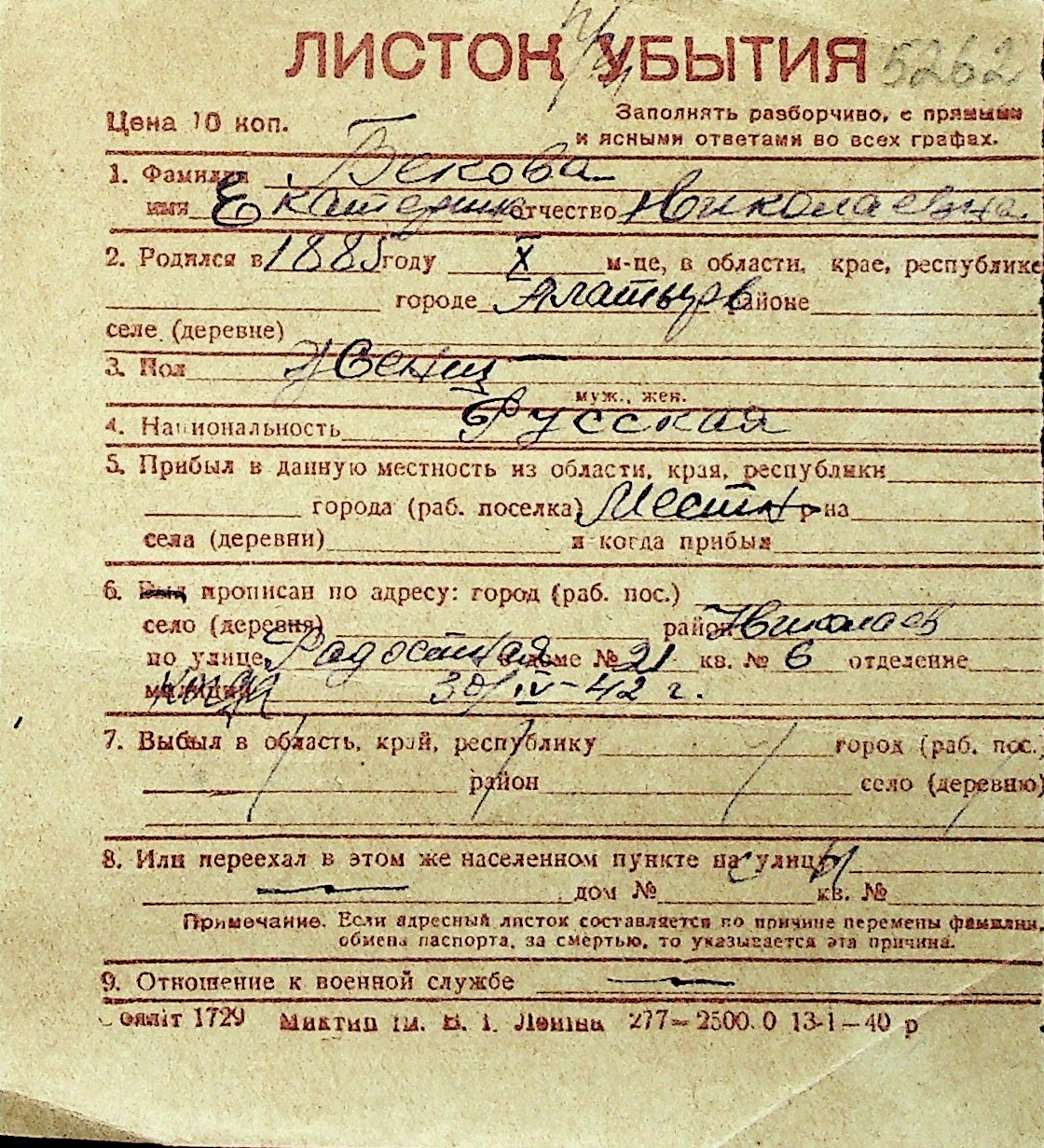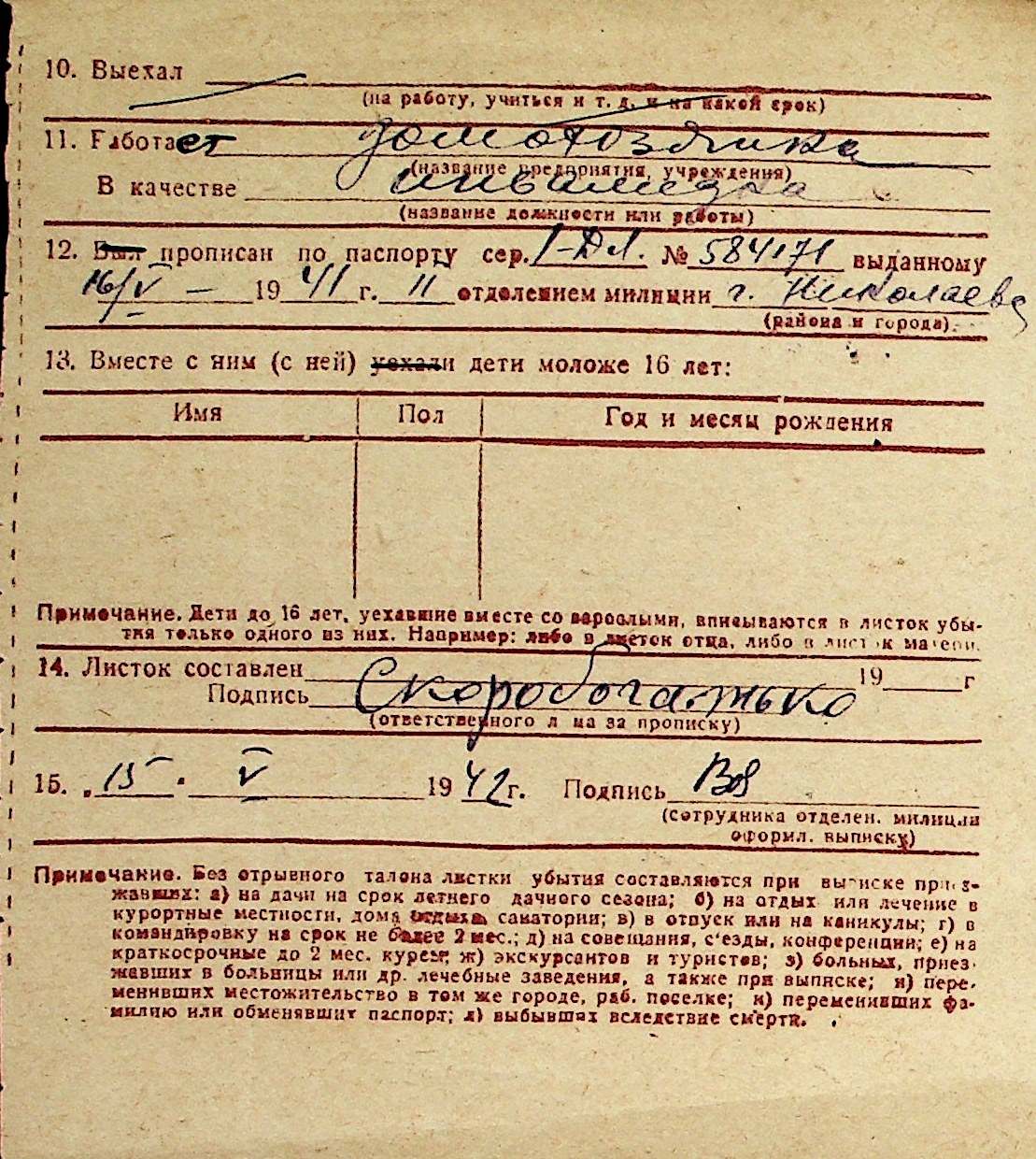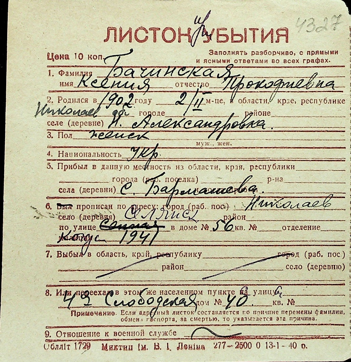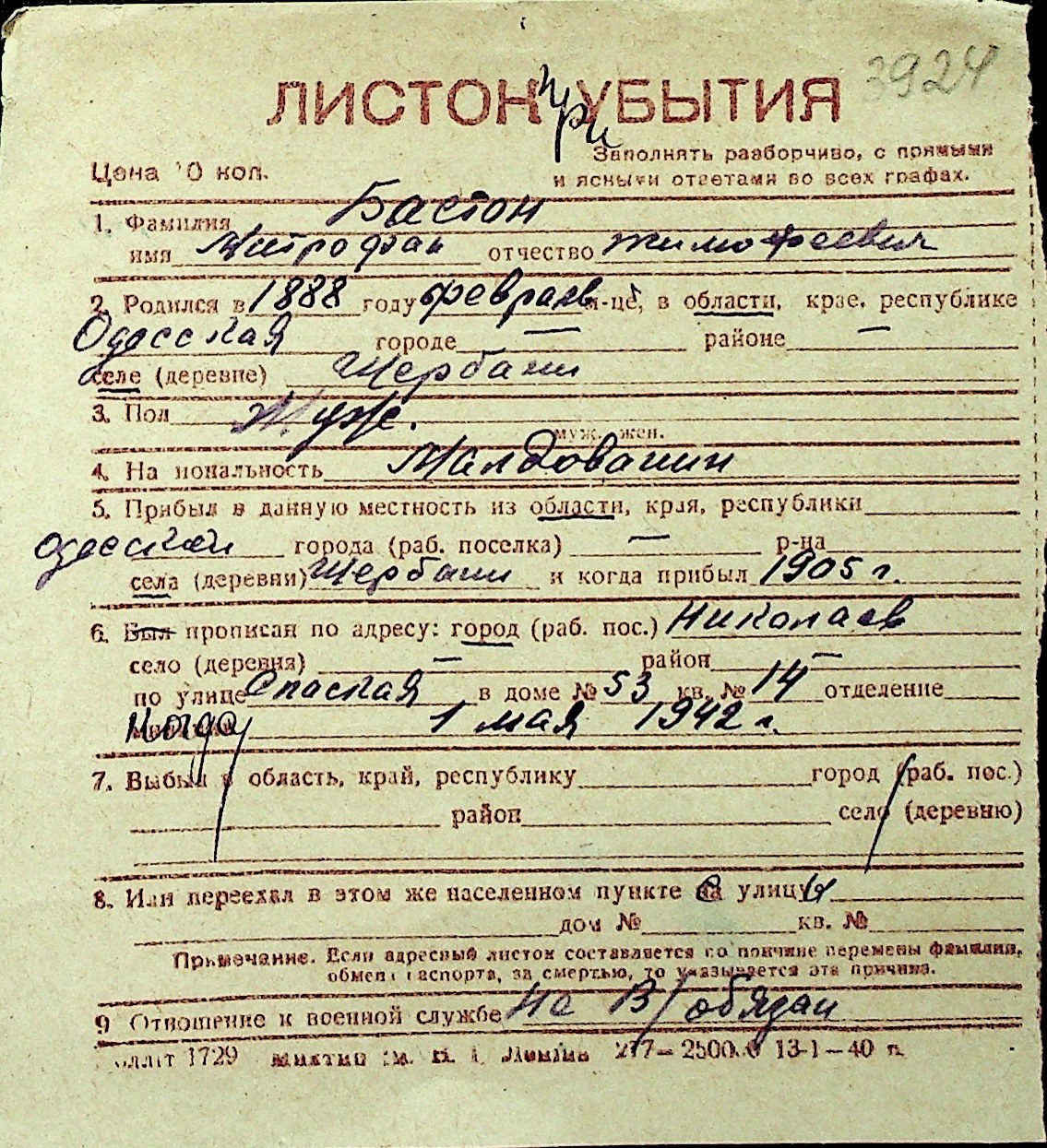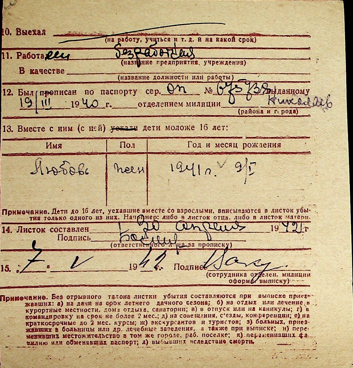 ◦ ◦ Перелік карток на осіб, які мешкали у м. Миколаїв у період окупації 1941–1944 років