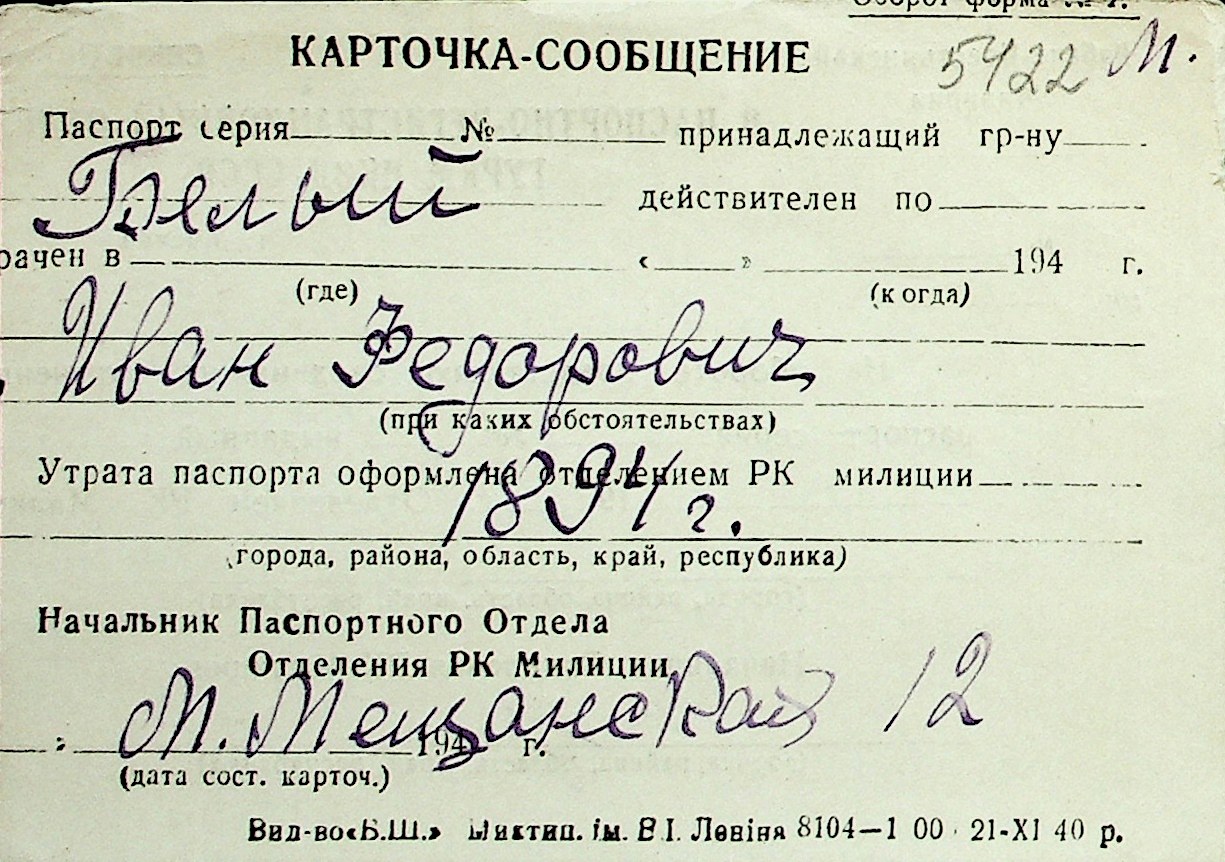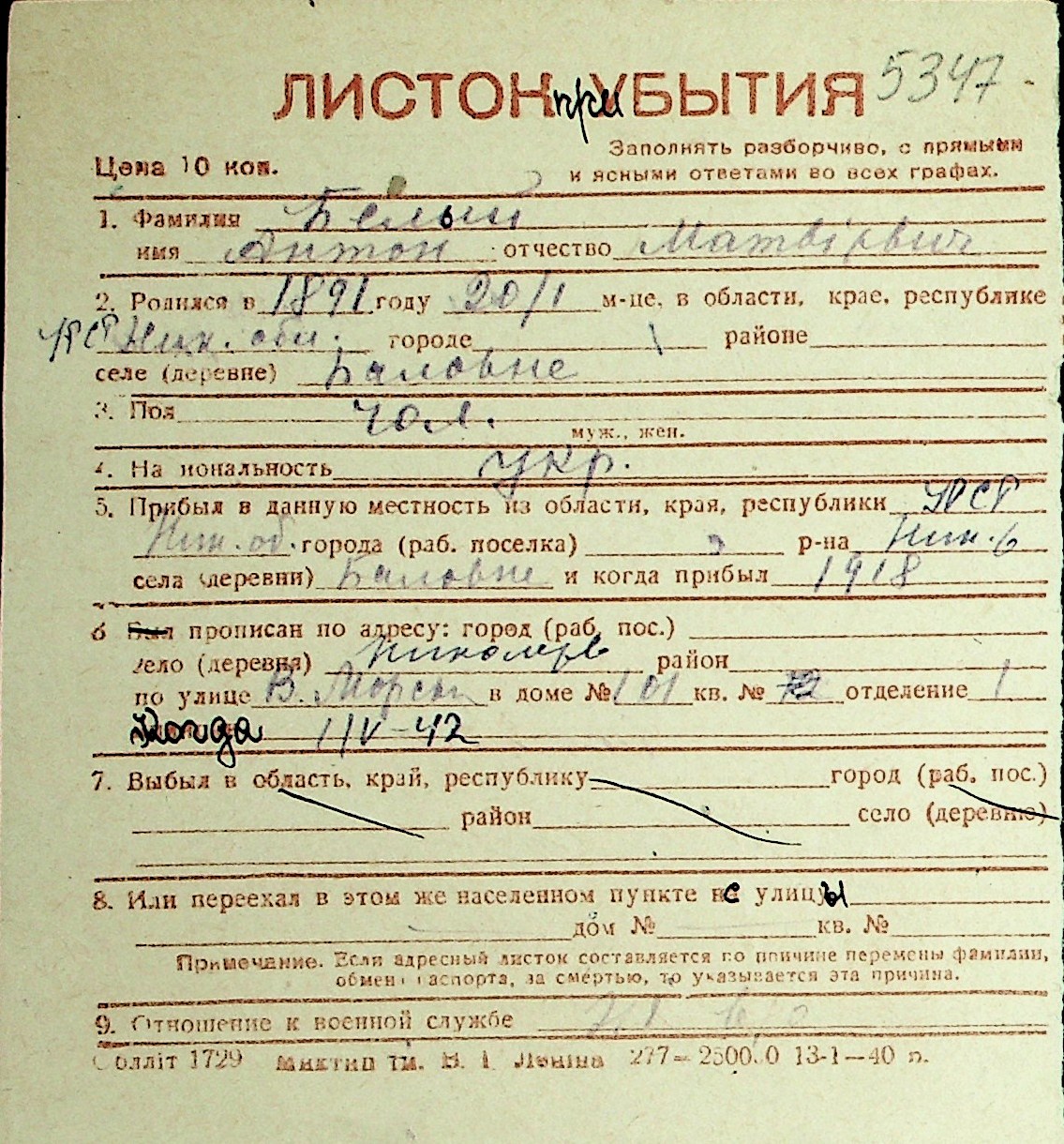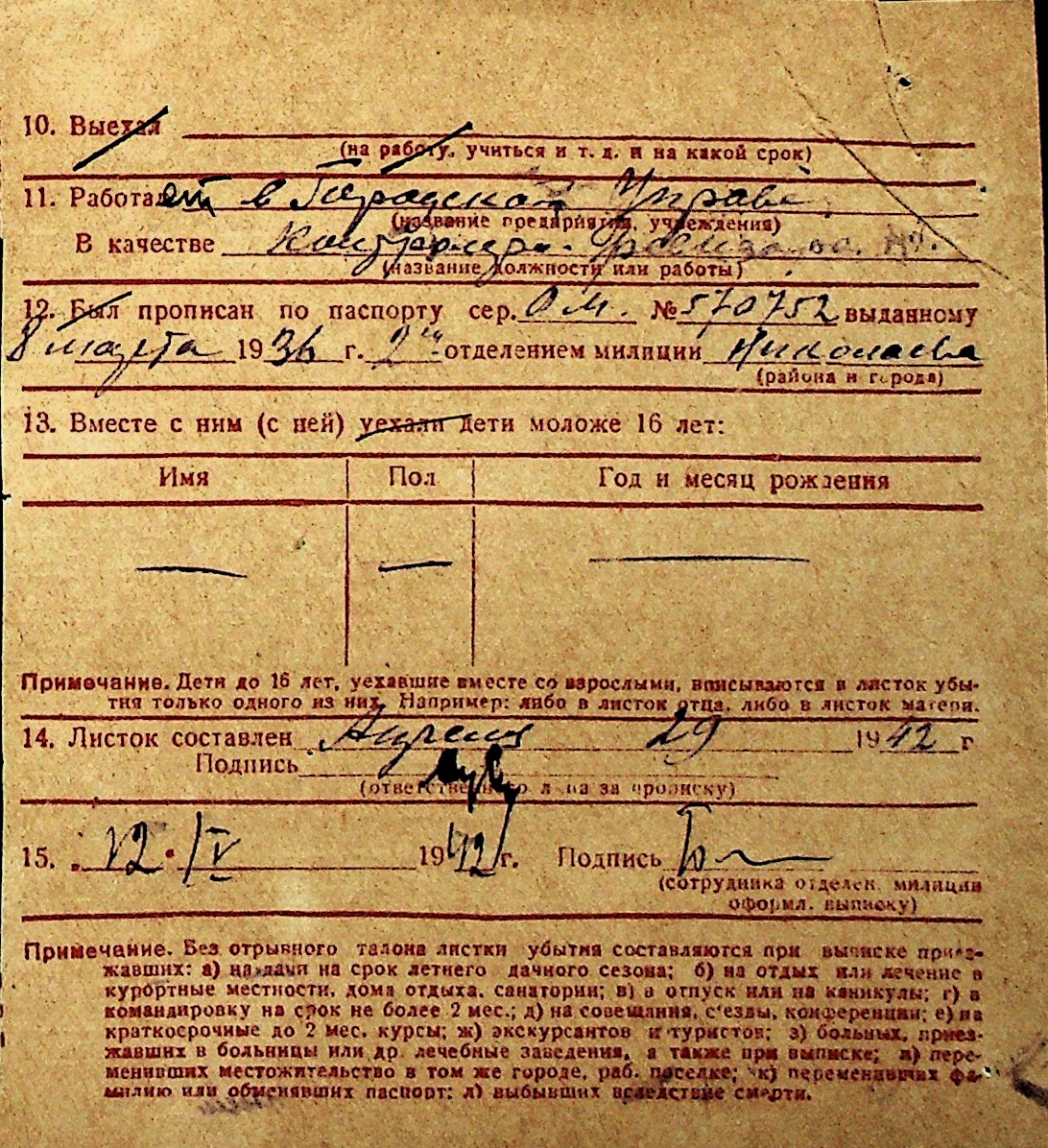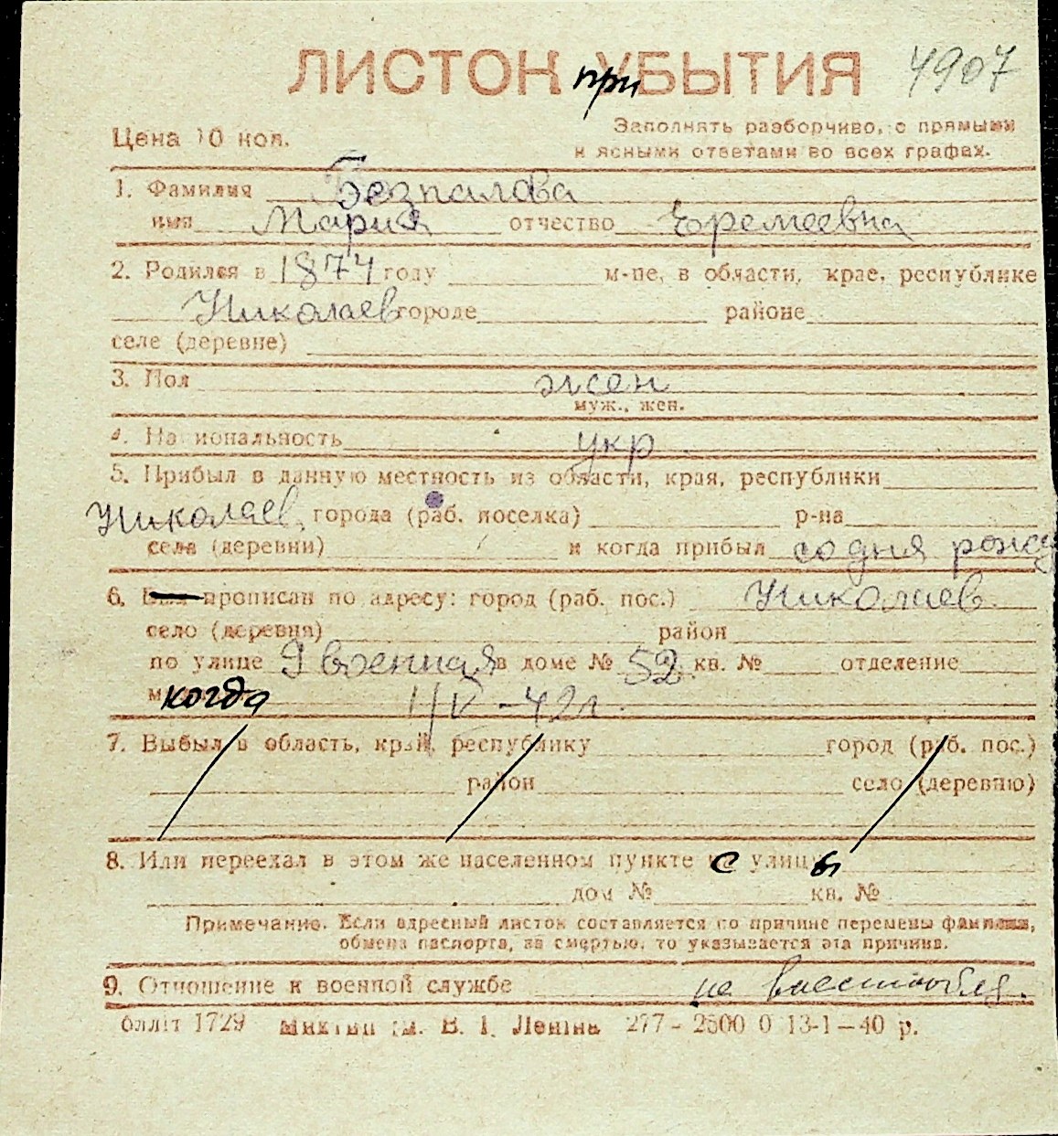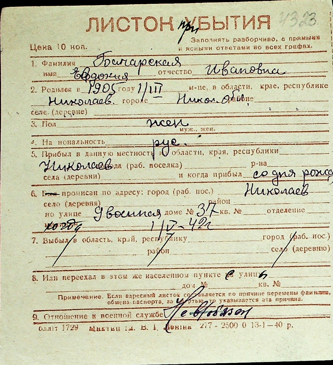 ◦ ◦ Перелік карток на осіб, які мешкали у м. Миколаїв у період окупації 1941–1944 років