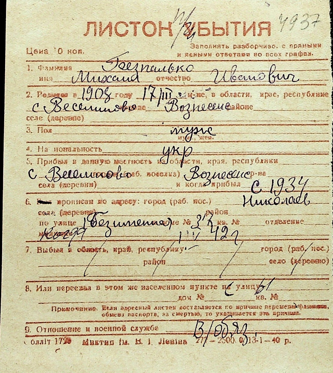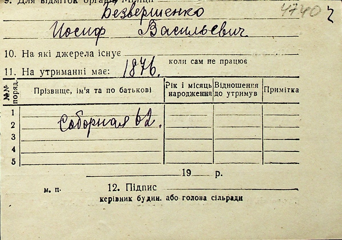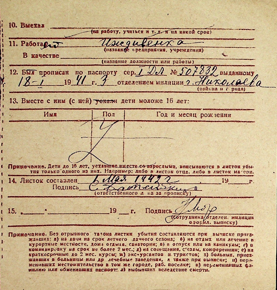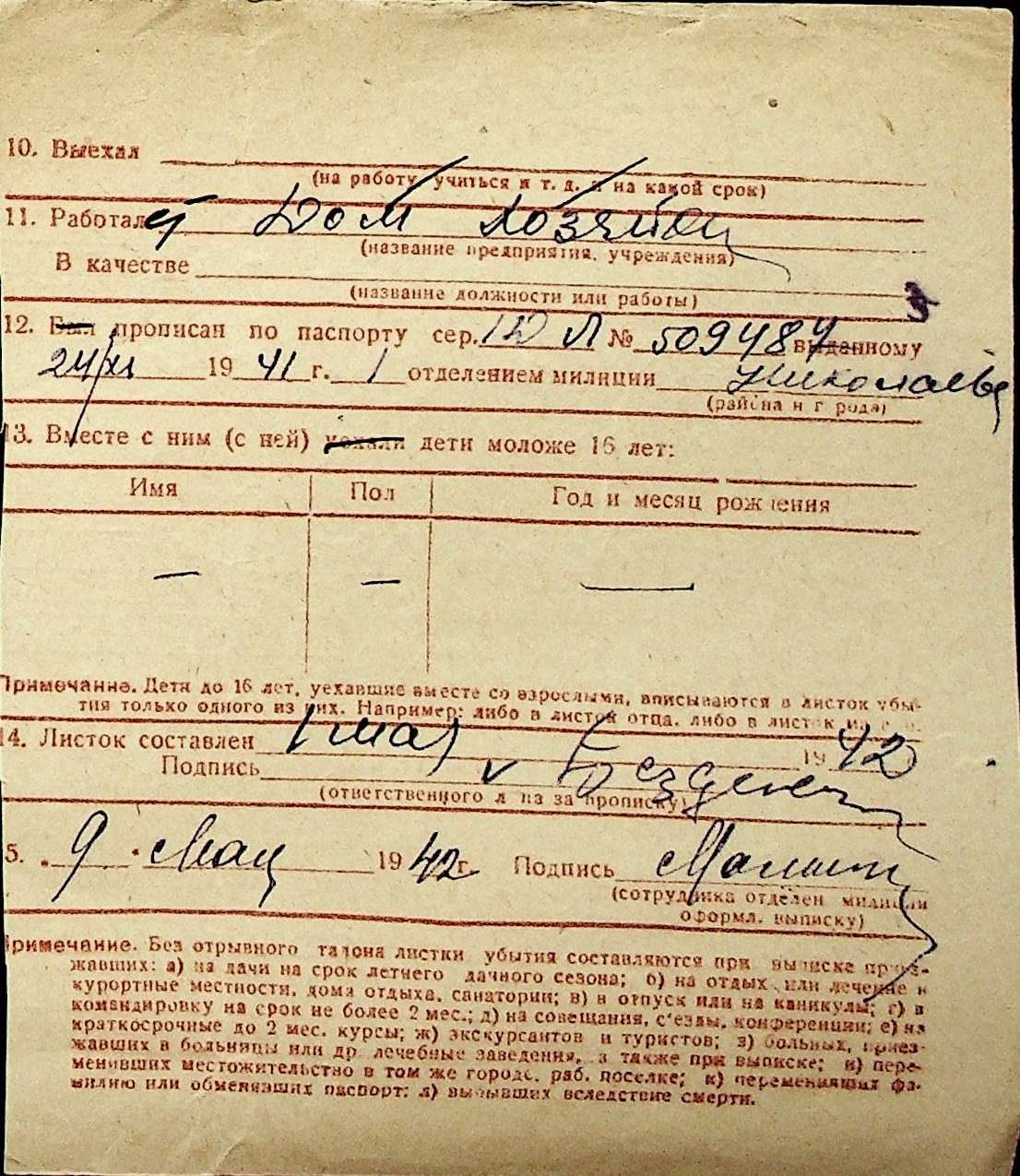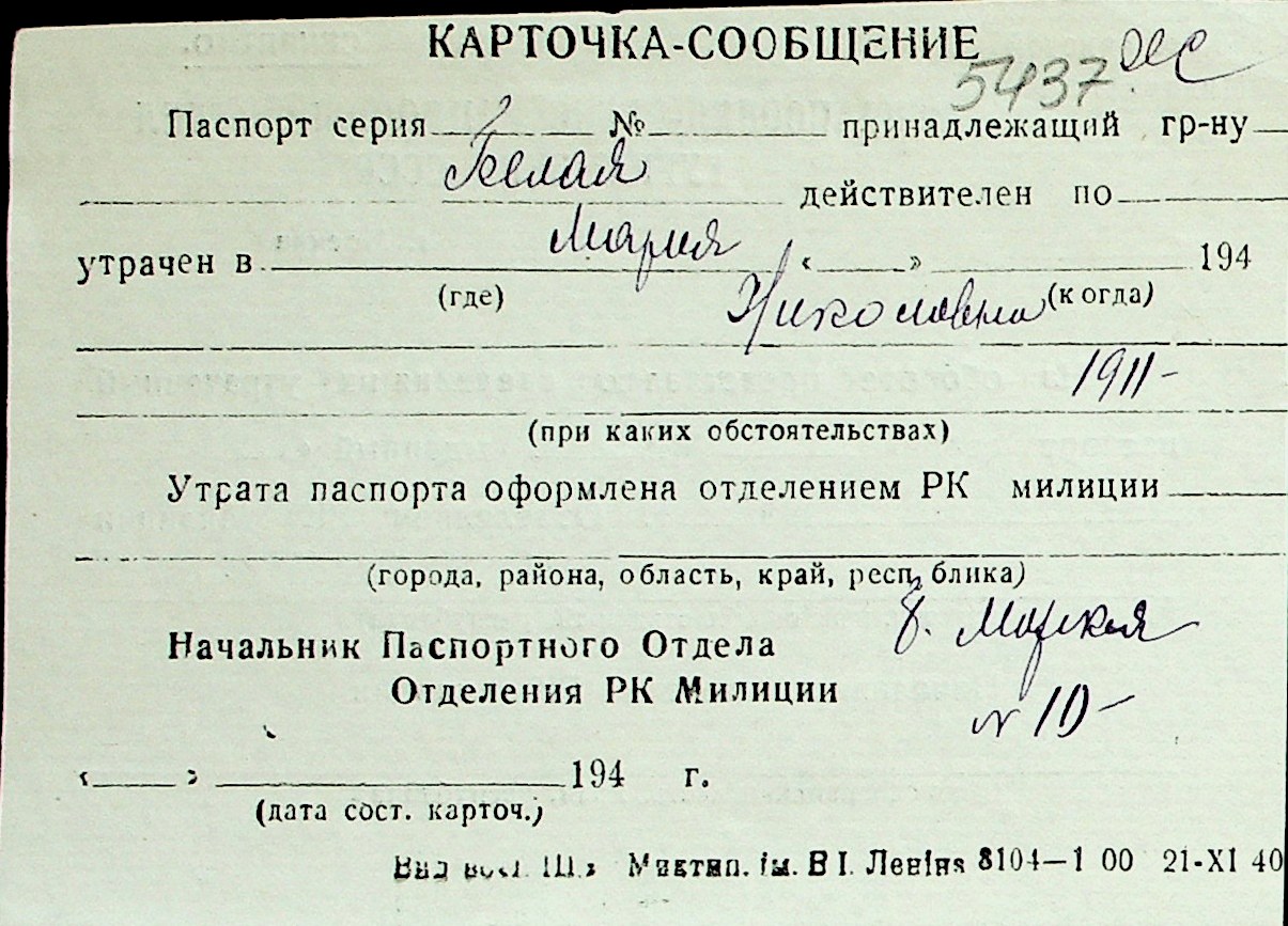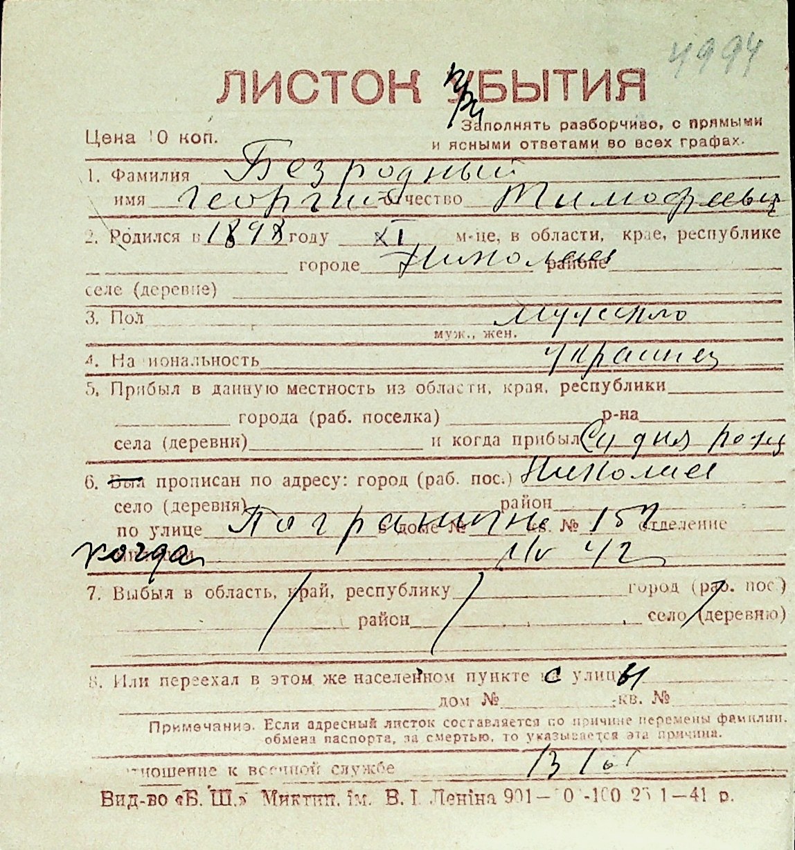 ◦ ◦ Перелік карток на осіб, які мешкали у м. Миколаїв у період окупації 1941–1944 років