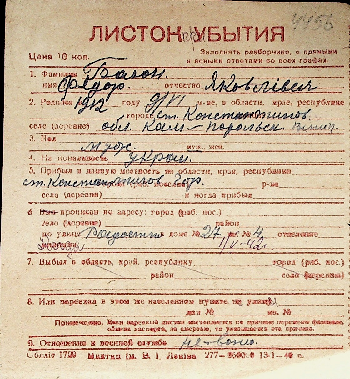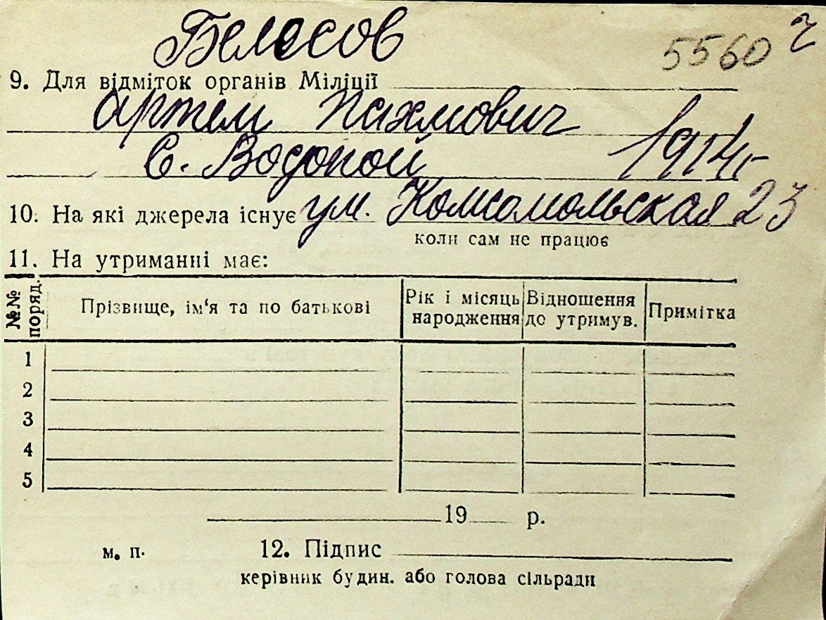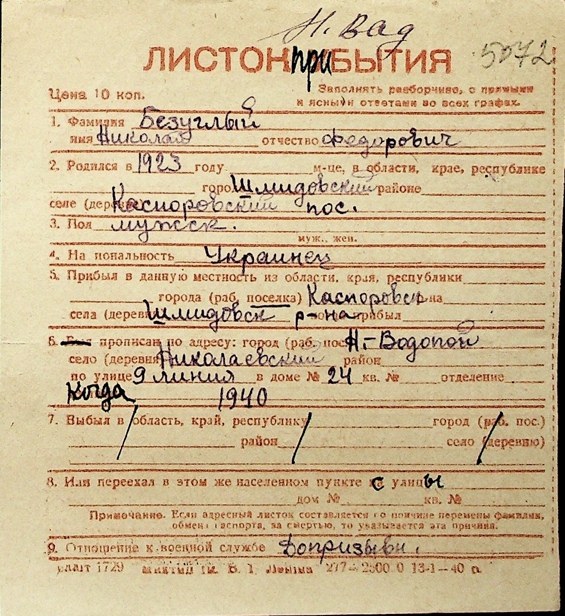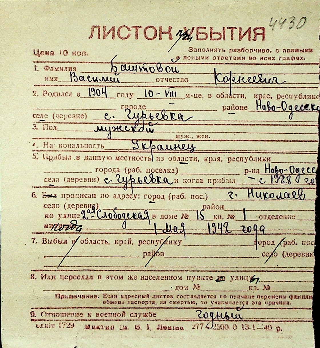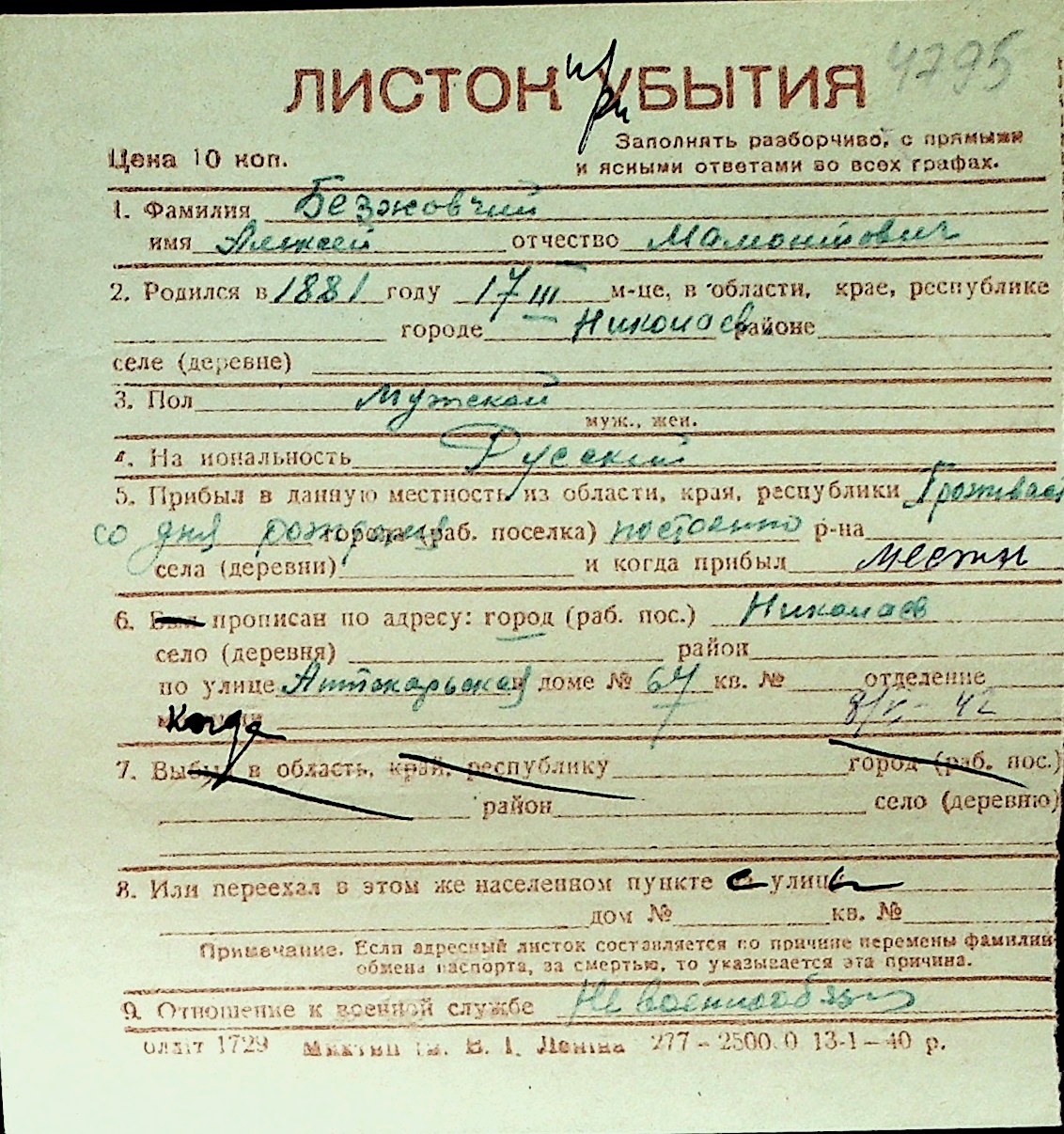 ◦ ◦ Перелік карток на осіб, які мешкали у м. Миколаїв у період окупації 1941–1944 років