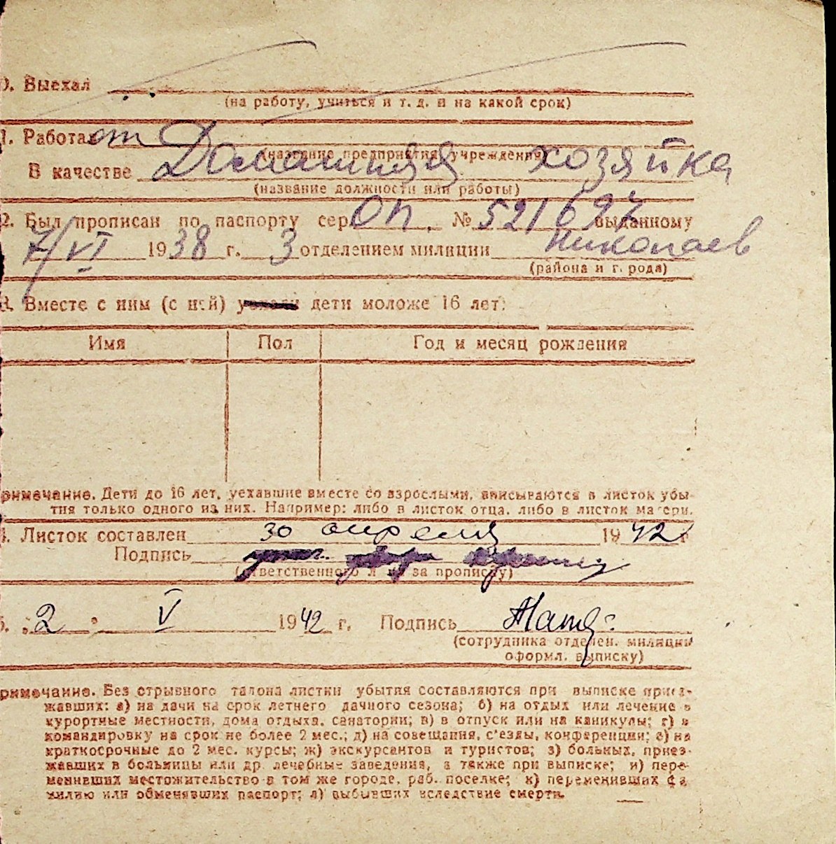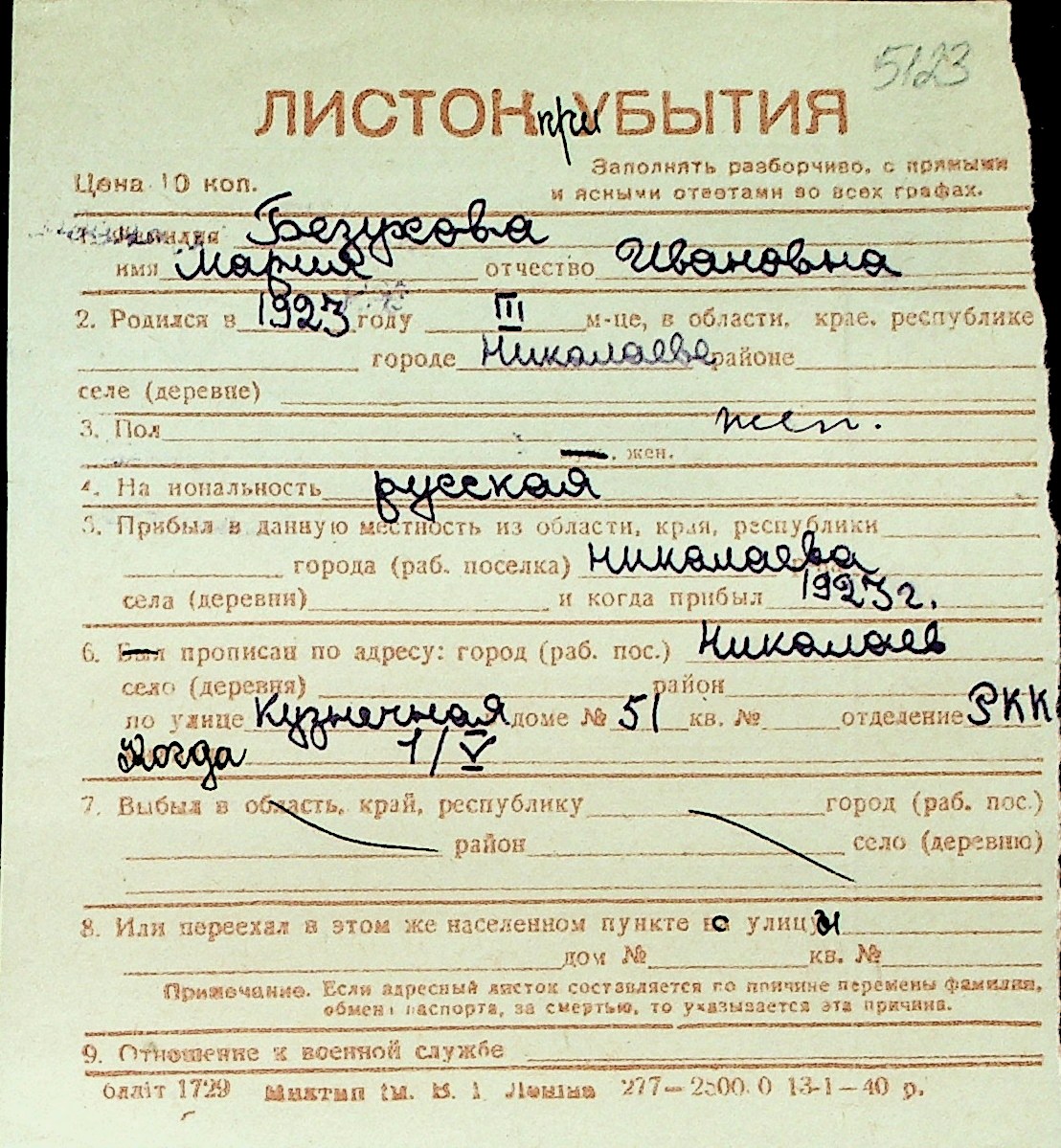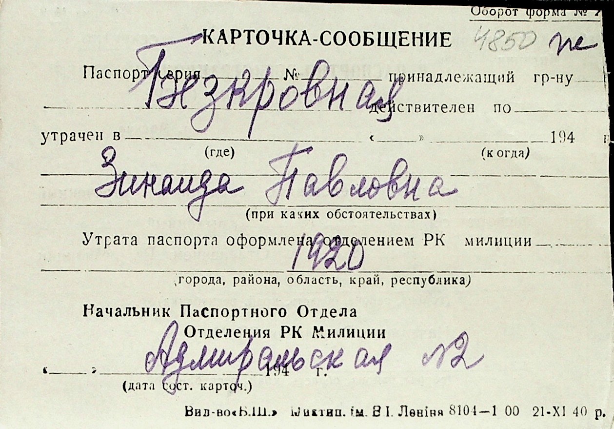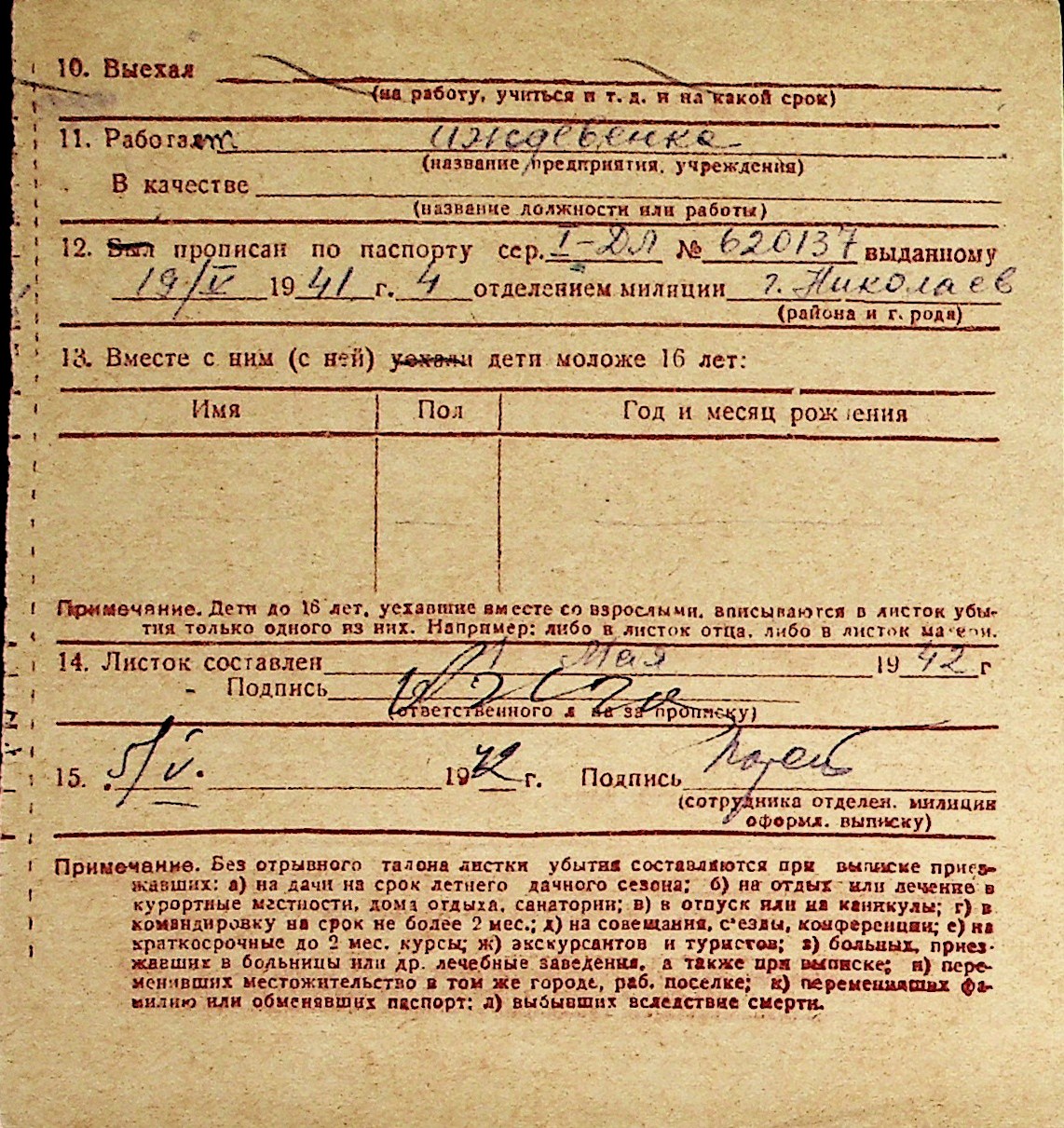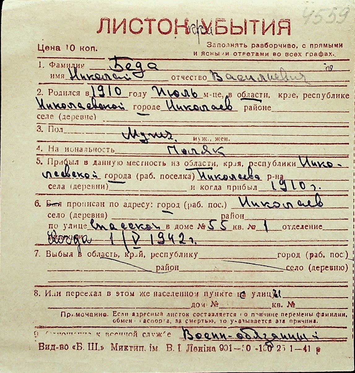 ◦ ◦ Перелік карток на осіб, які мешкали у м. Миколаїв у період окупації 1941–1944 років