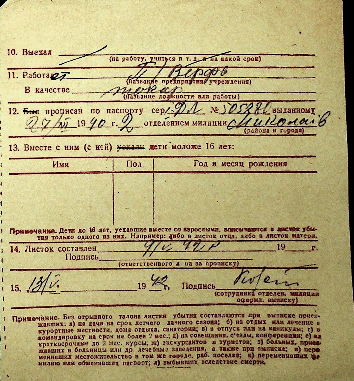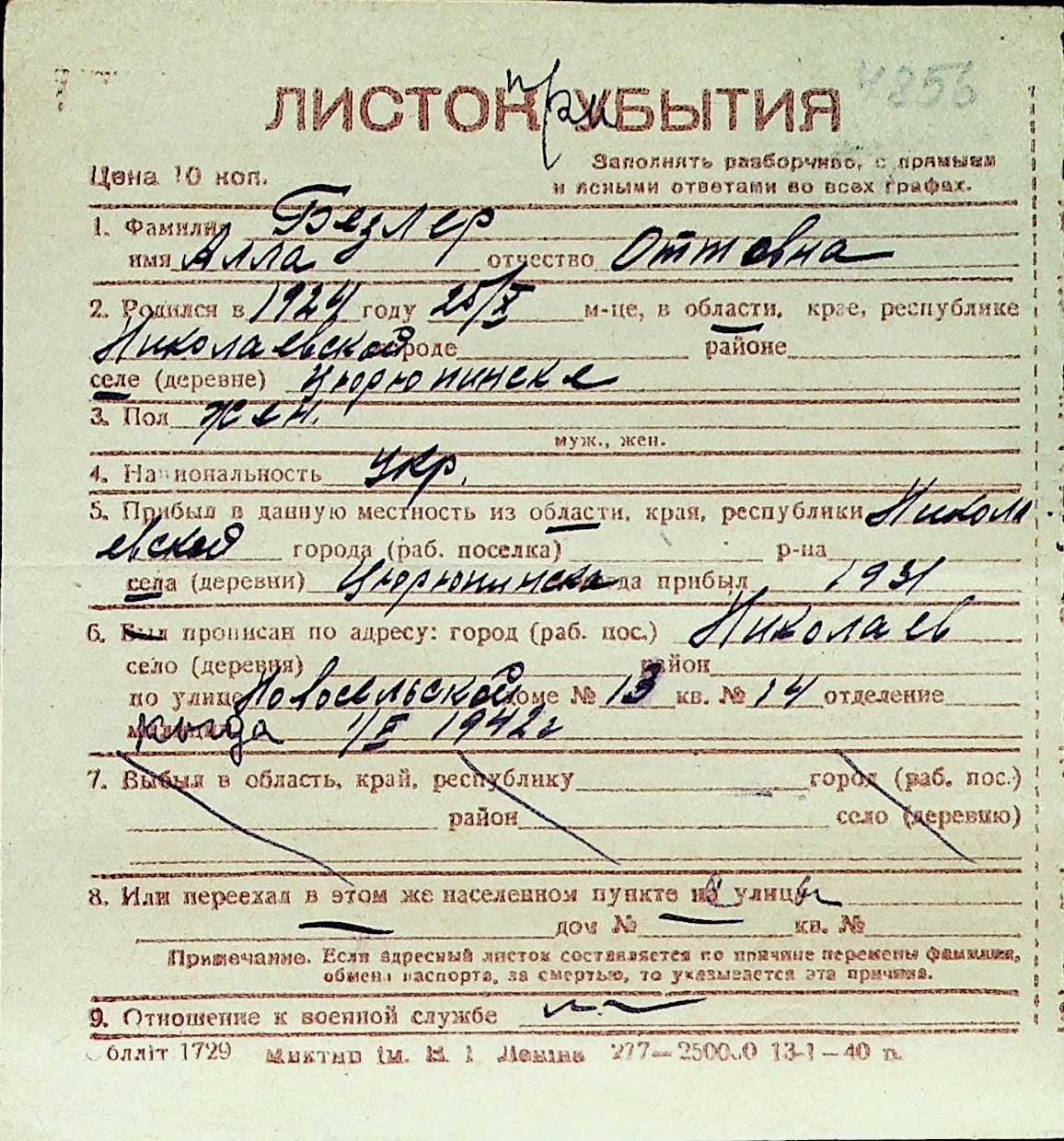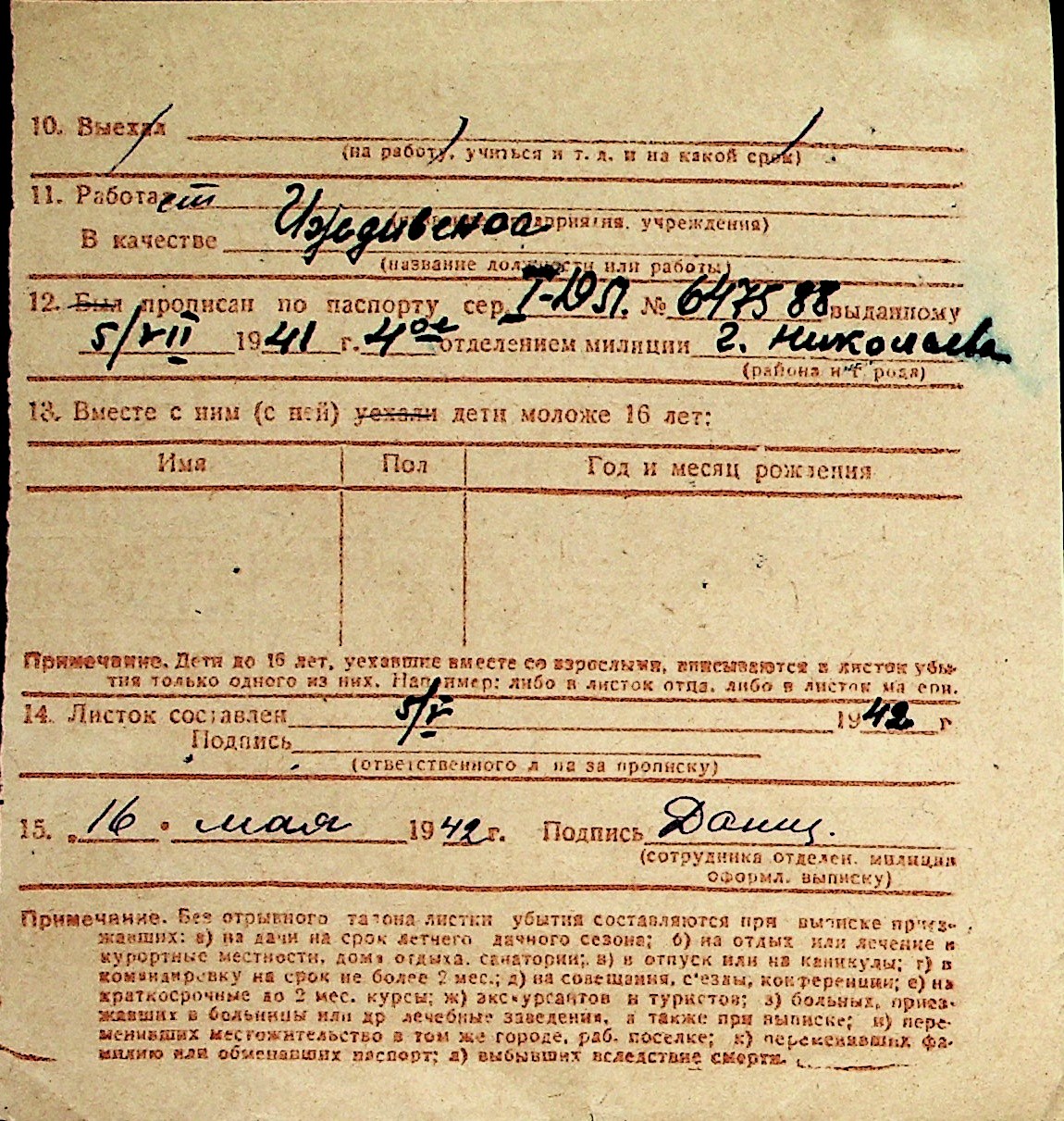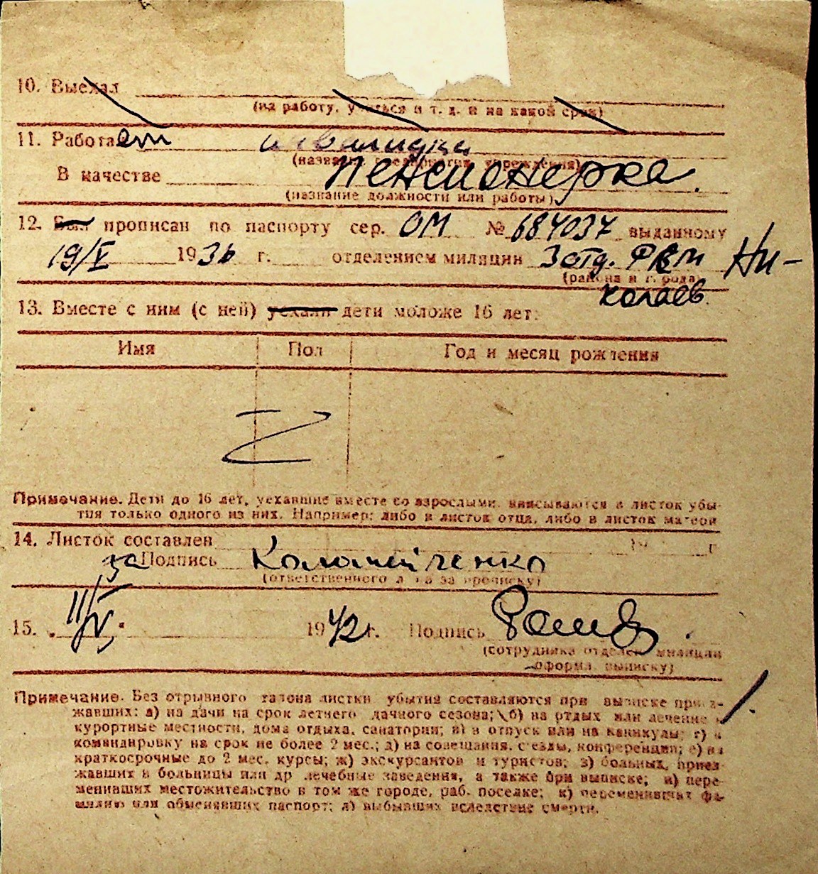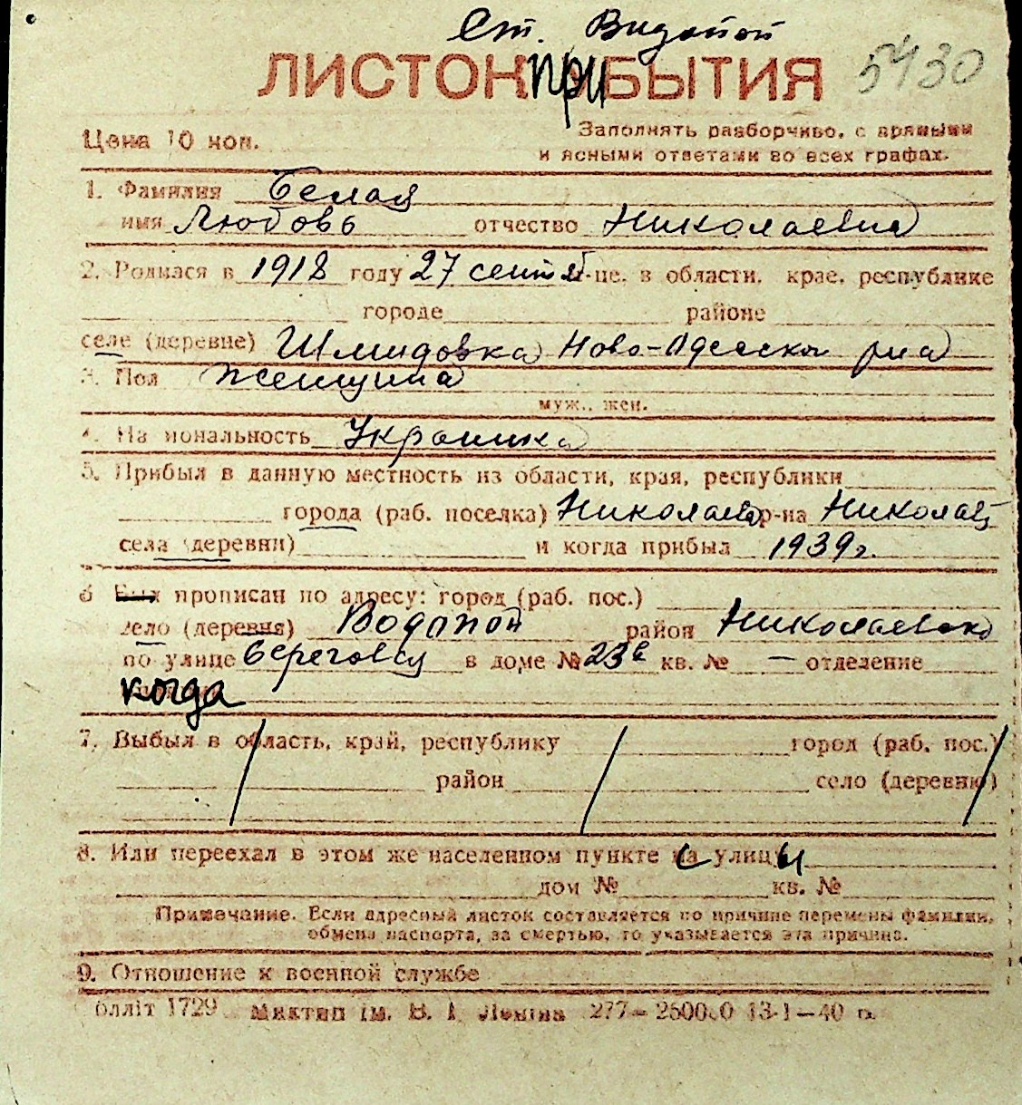 ◦ ◦ Перелік карток на осіб, які мешкали у м. Миколаїв у період окупації 1941–1944 років