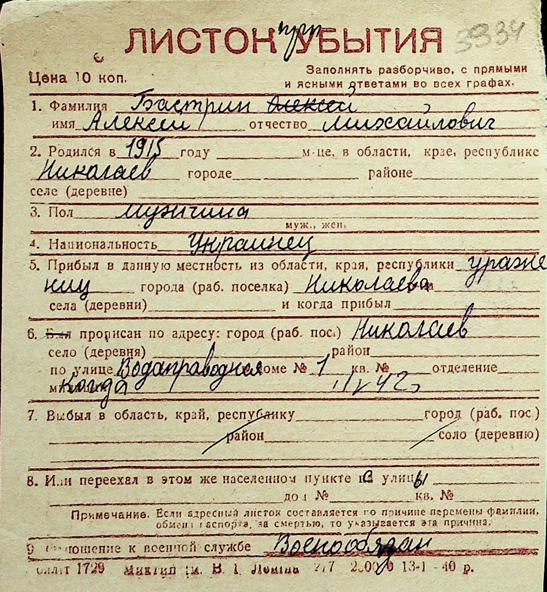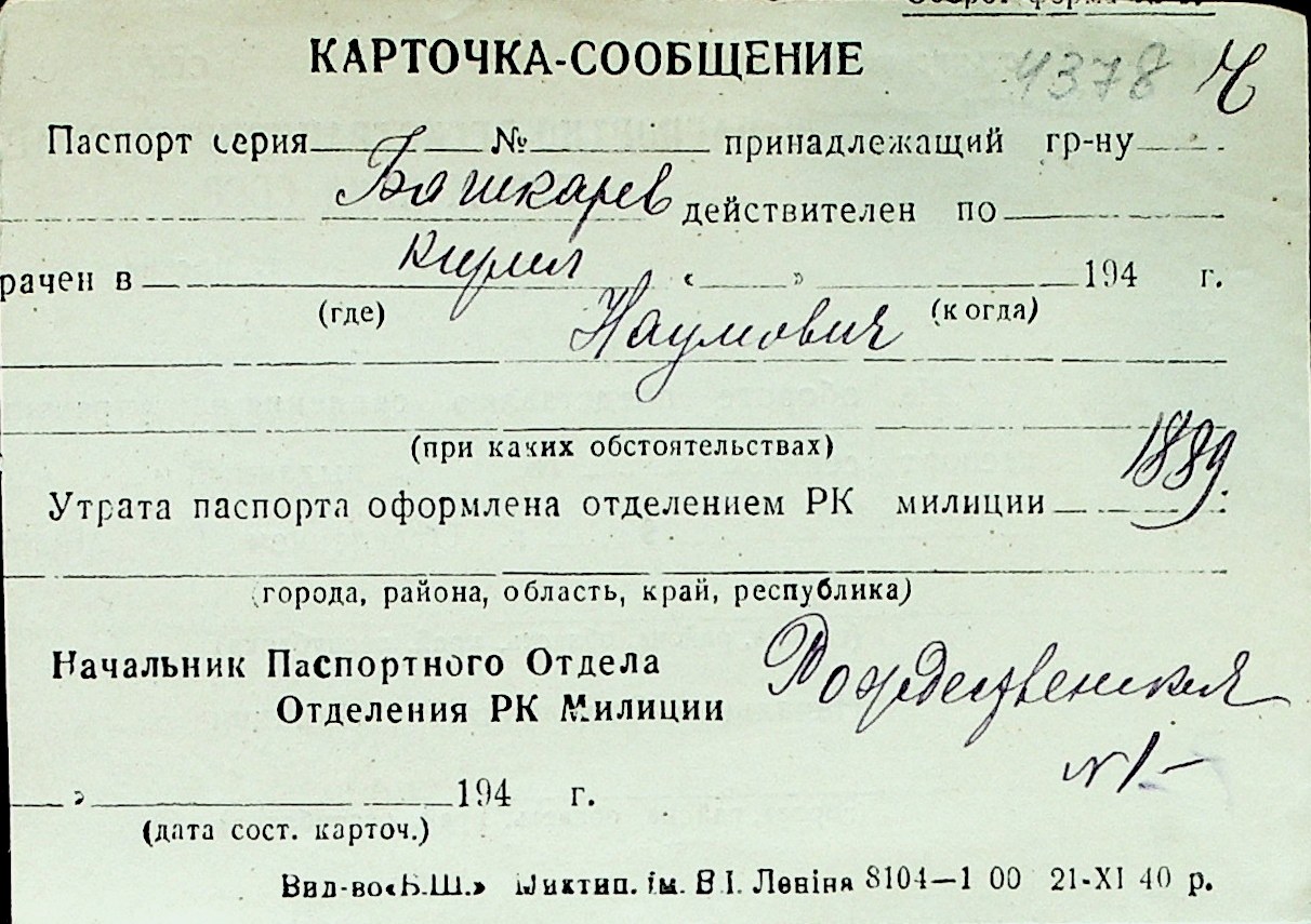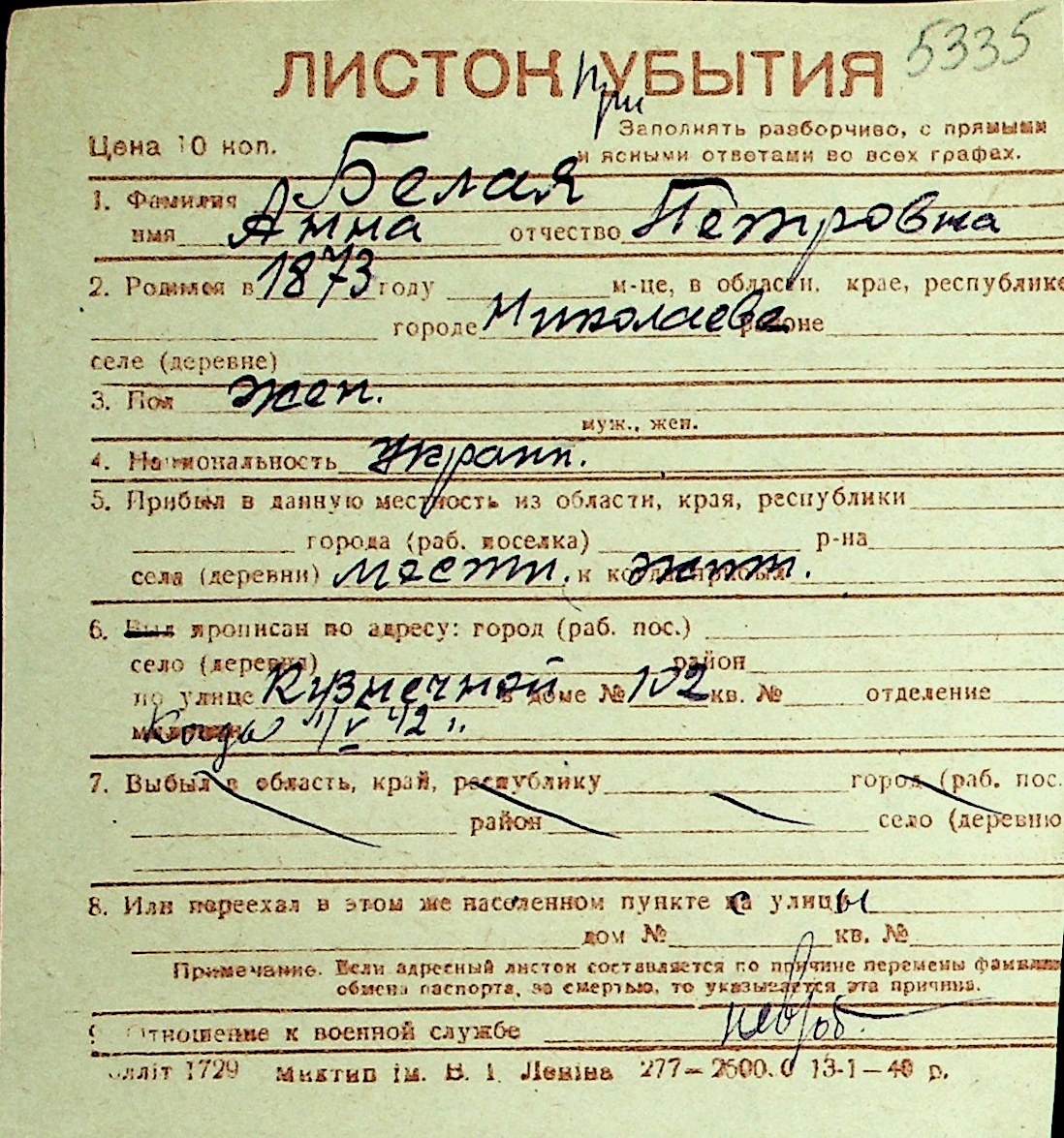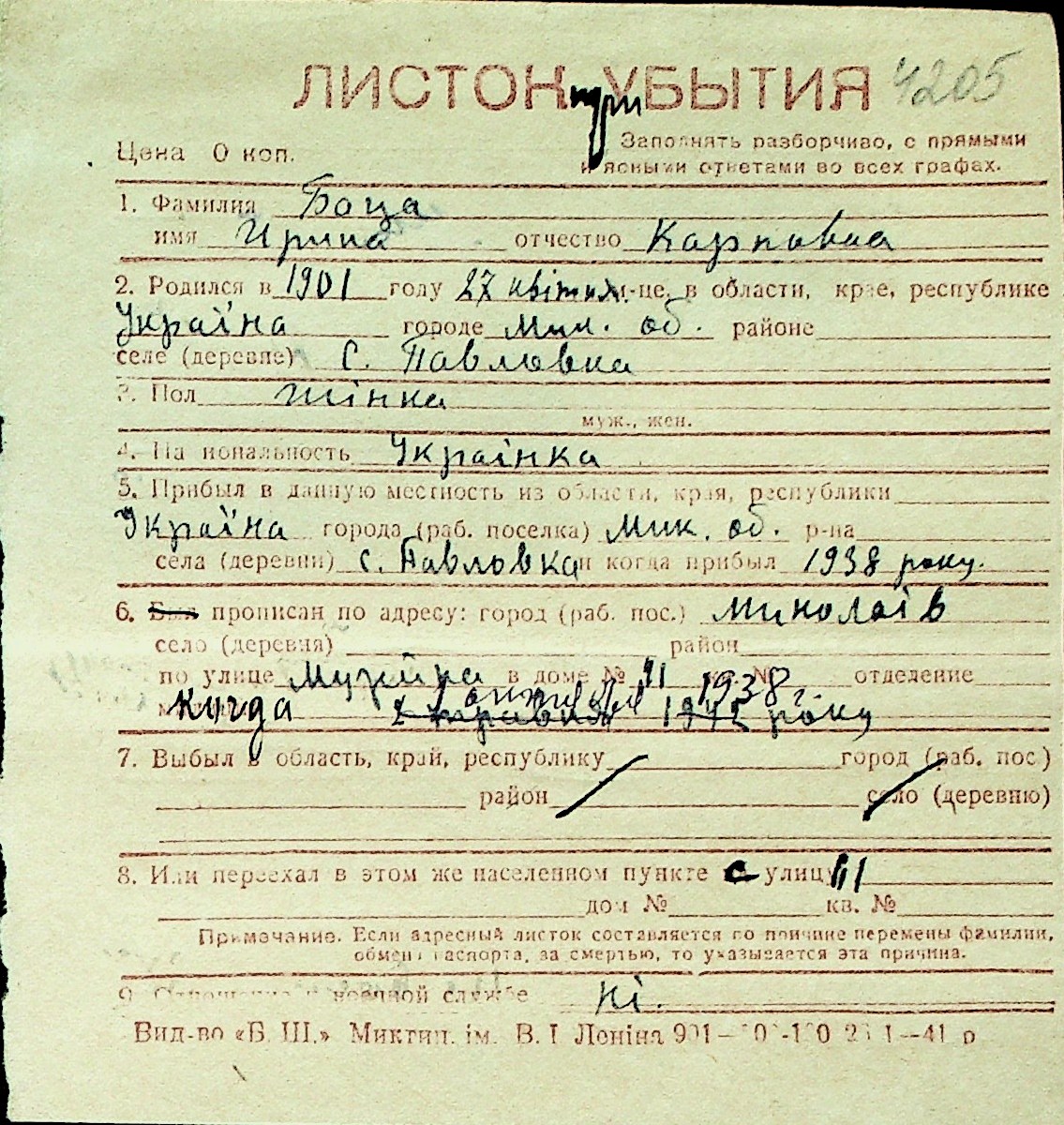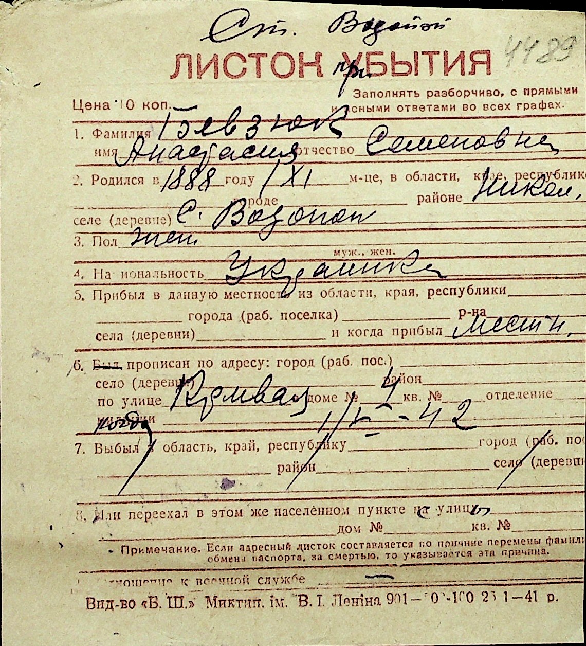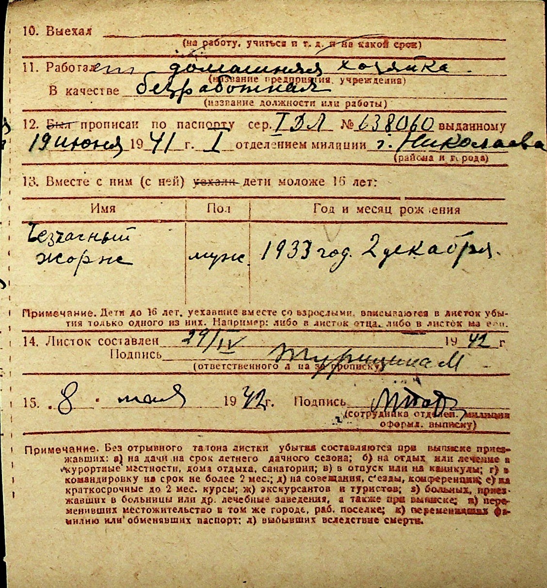 ◦ ◦ Перелік карток на осіб, які мешкали у м. Миколаїв у період окупації 1941–1944 років