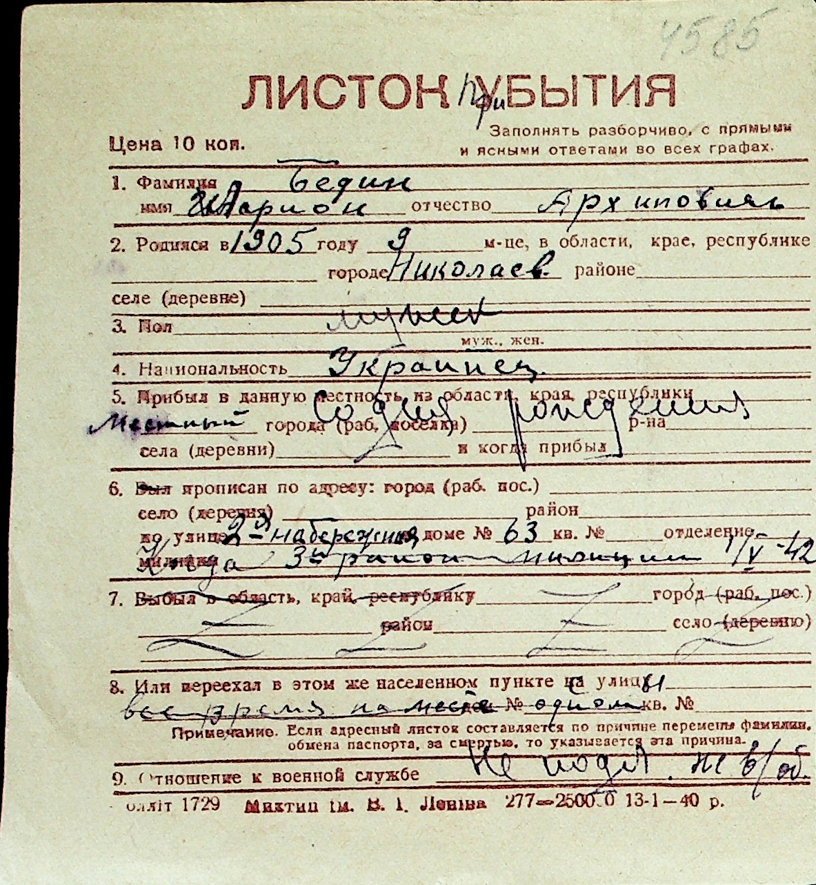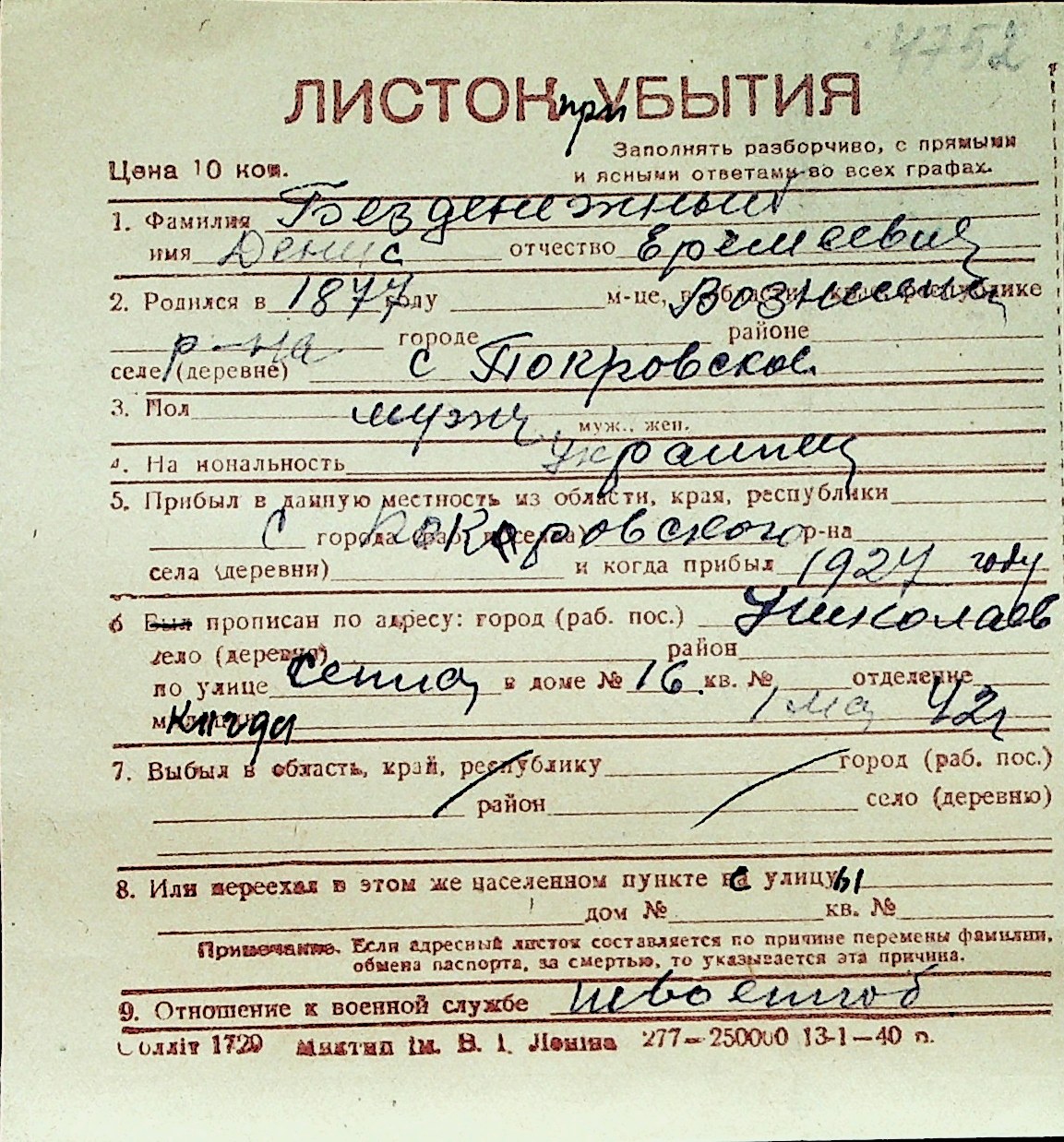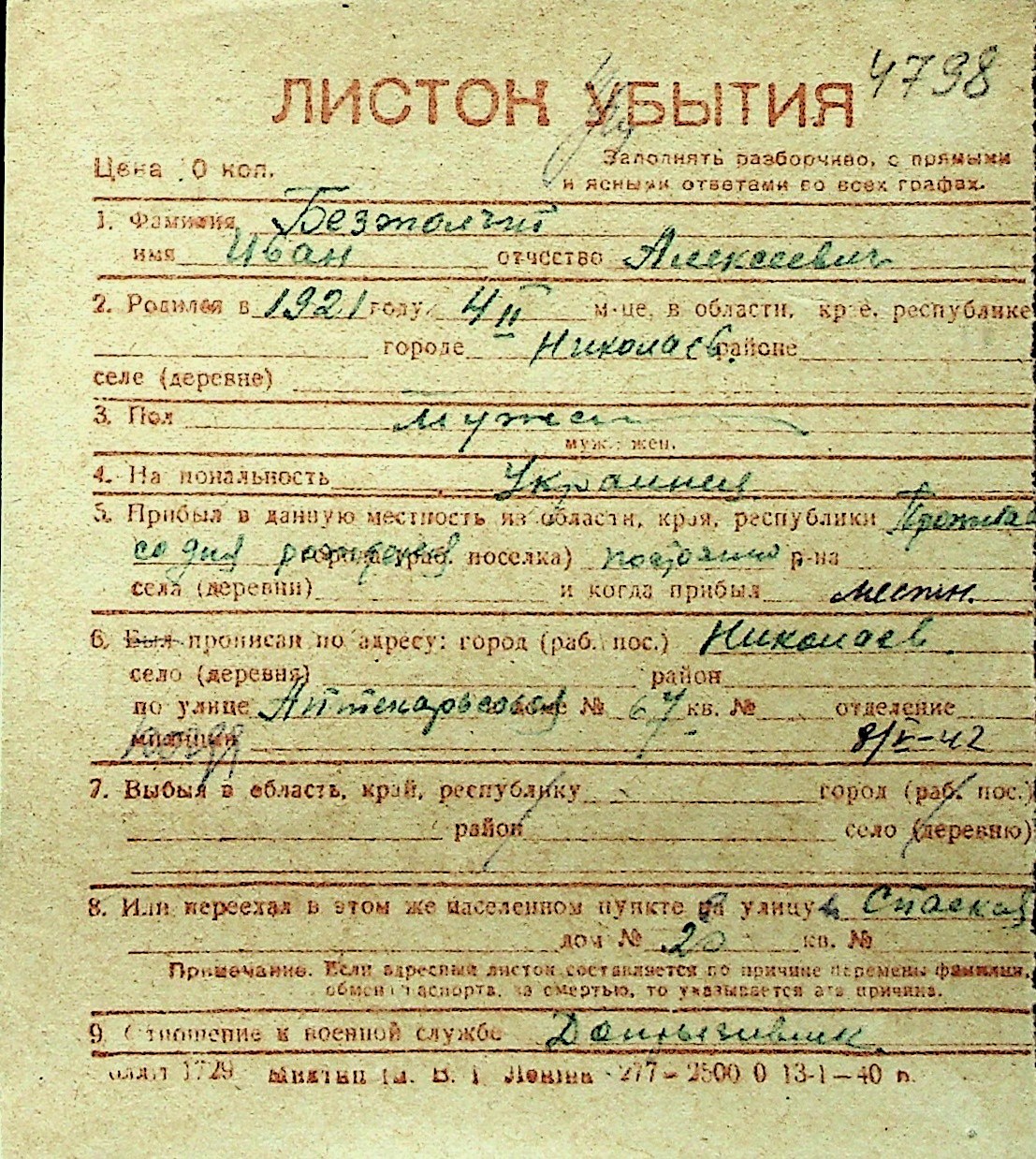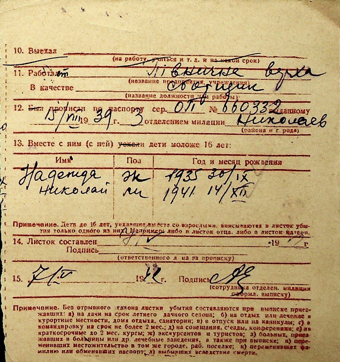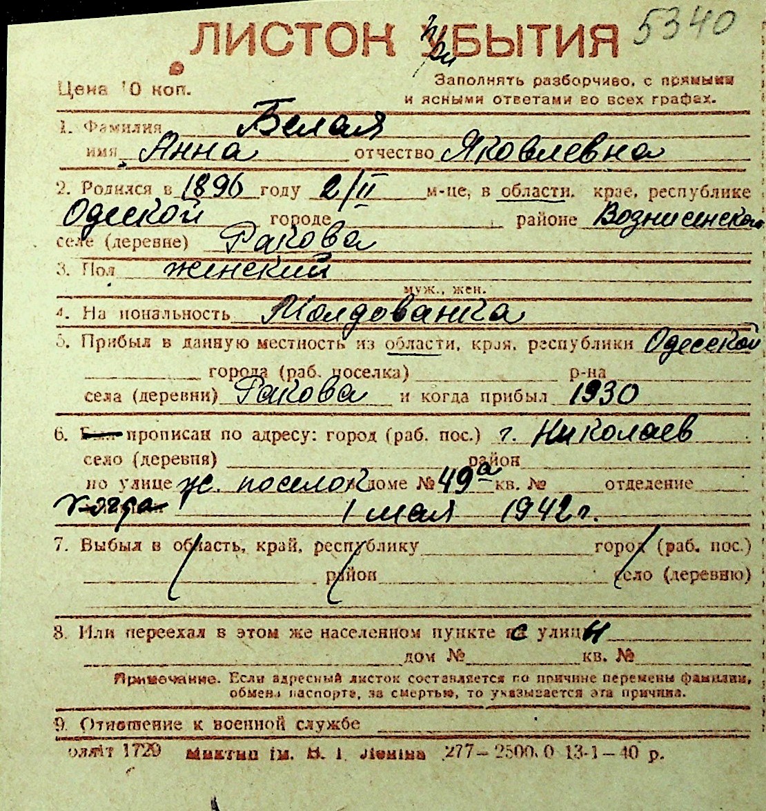 ◦ ◦ Перелік карток на осіб, які мешкали у м. Миколаїв у період окупації 1941–1944 років