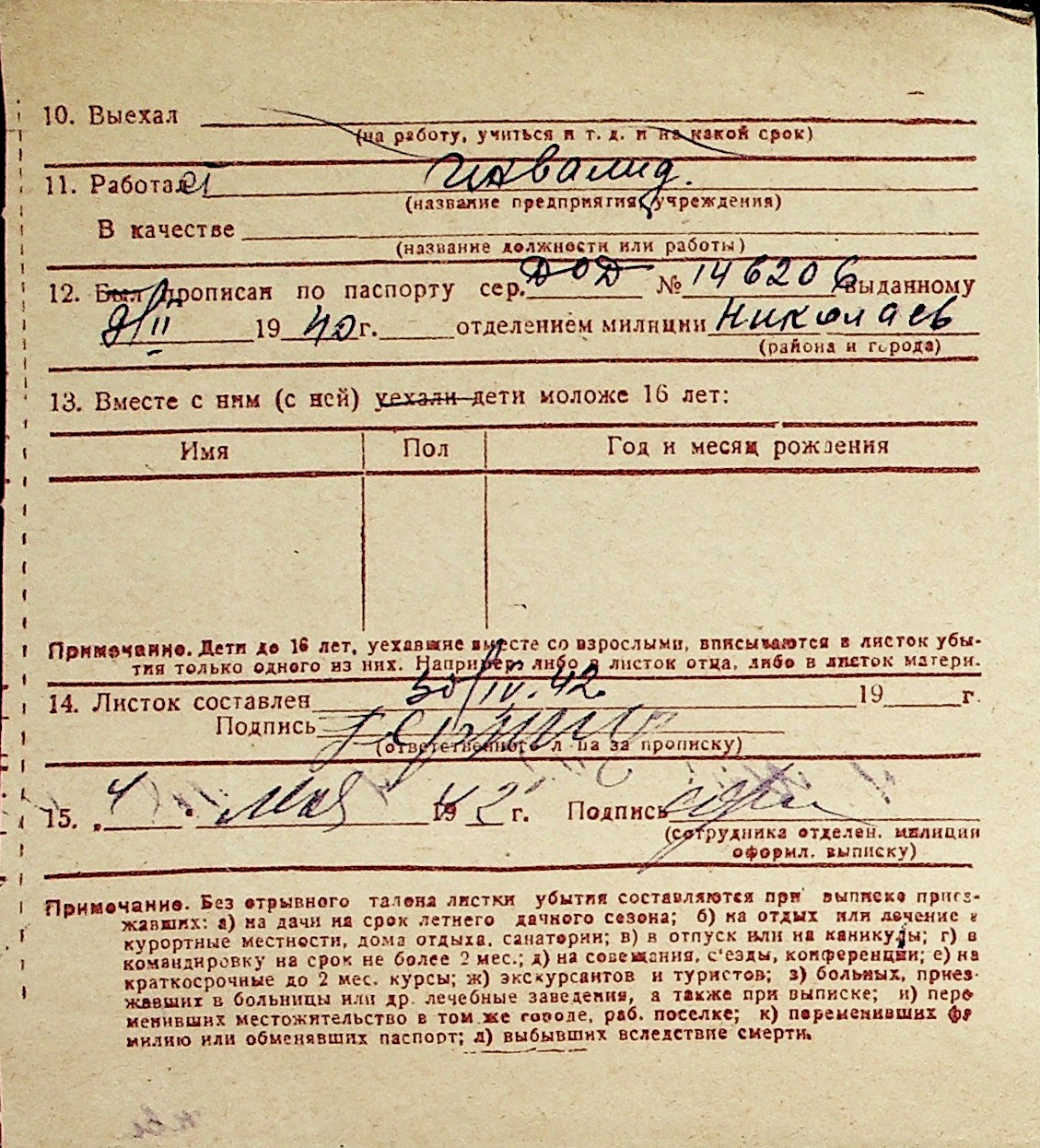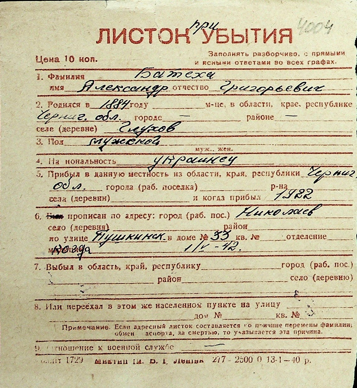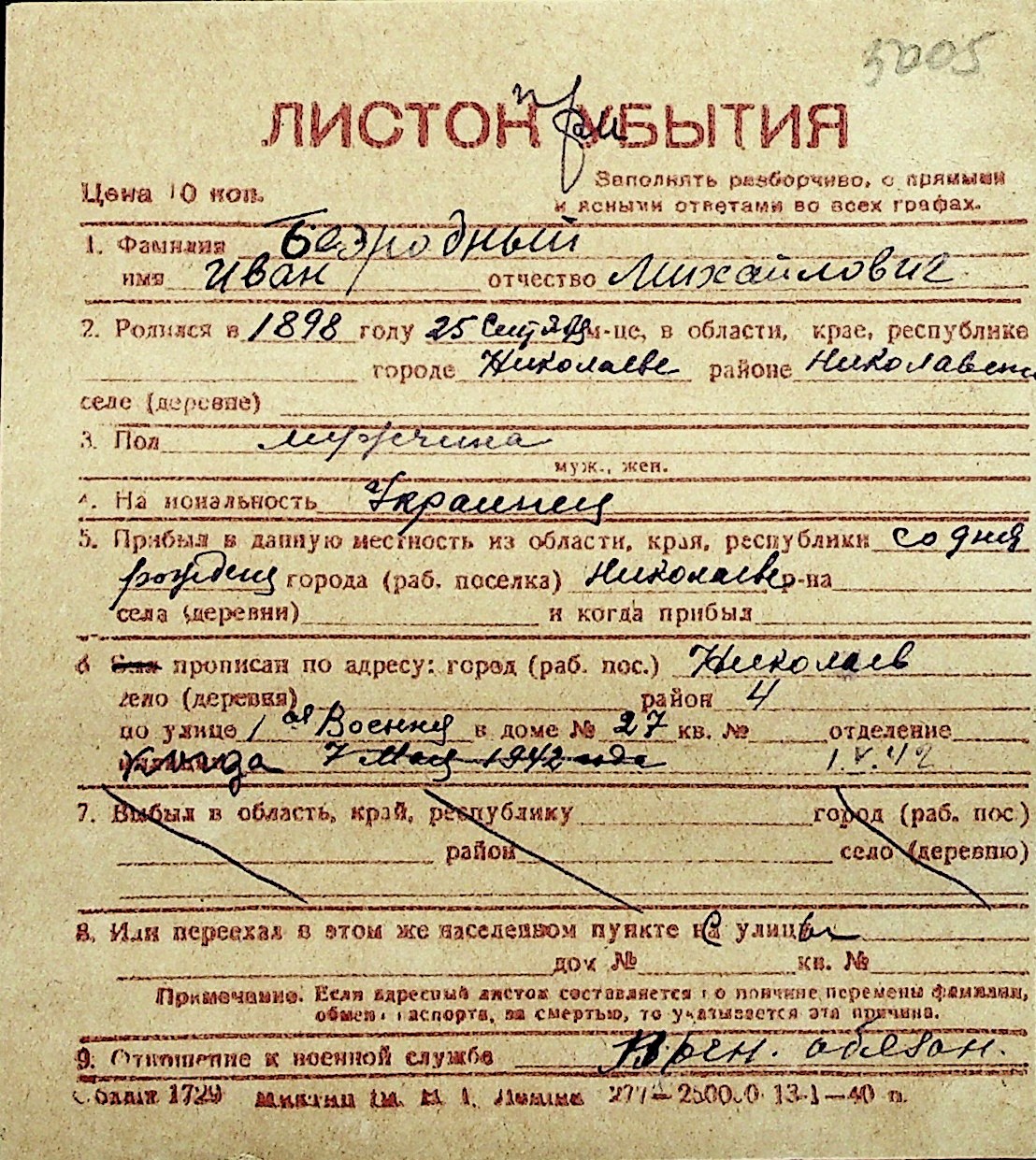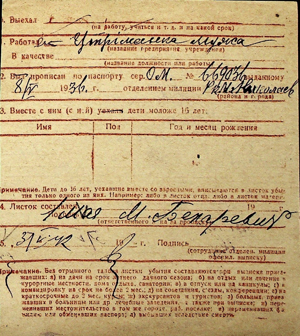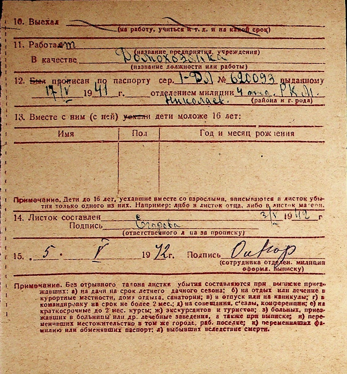 ◦ ◦ Перелік карток на осіб, які мешкали у м. Миколаїв у період окупації 1941–1944 років