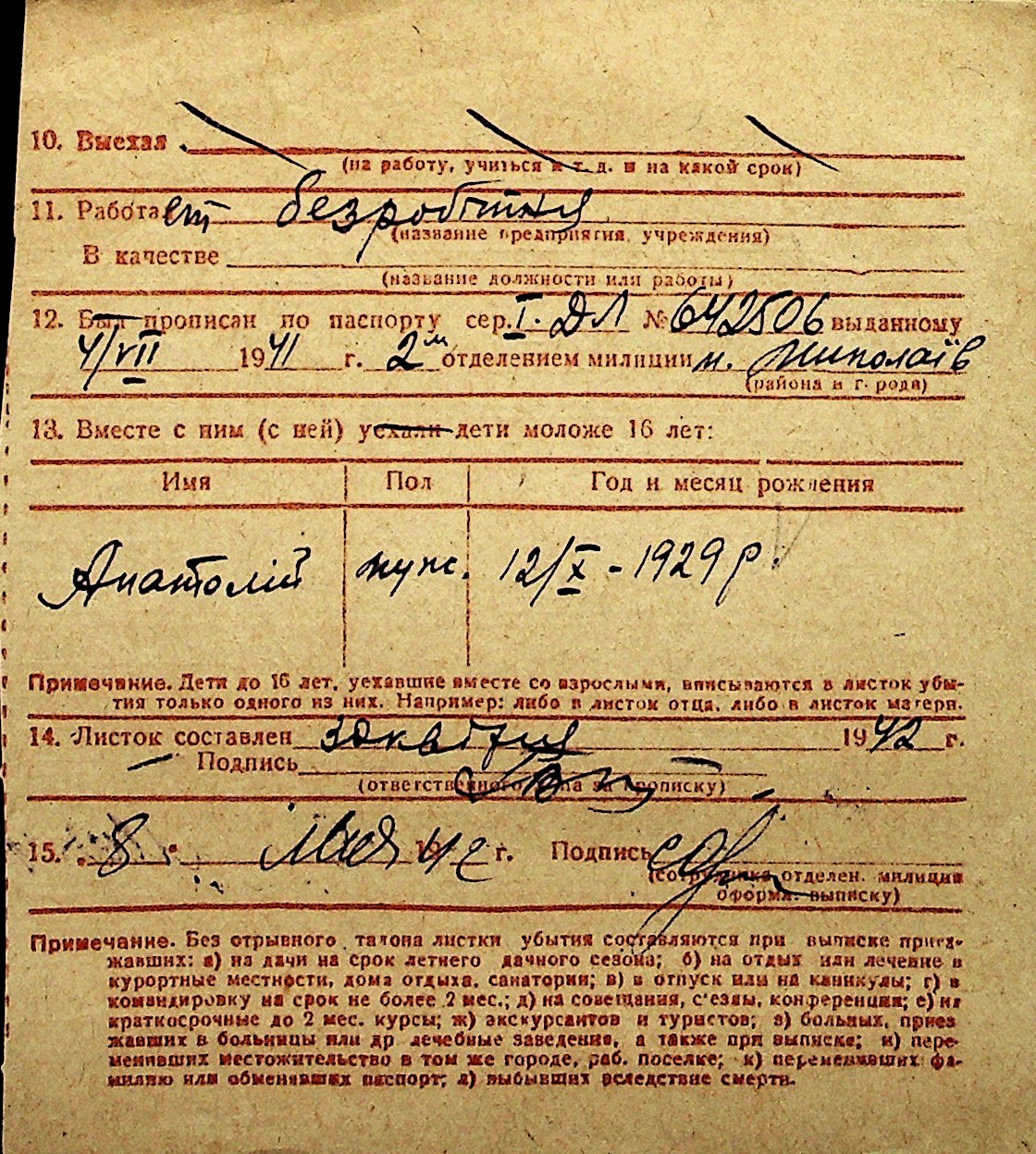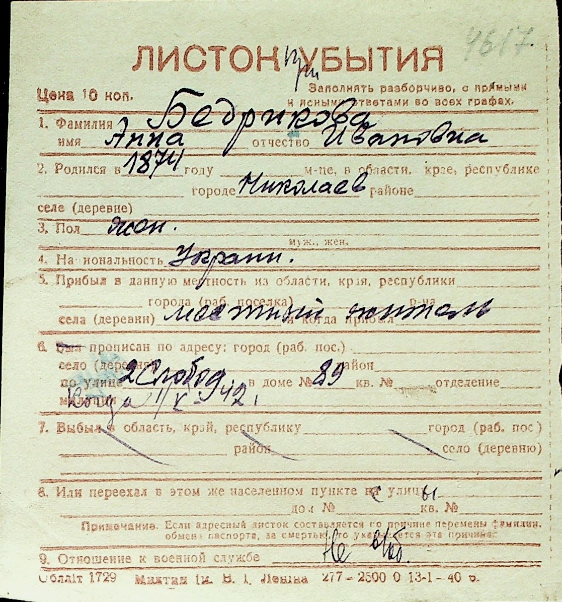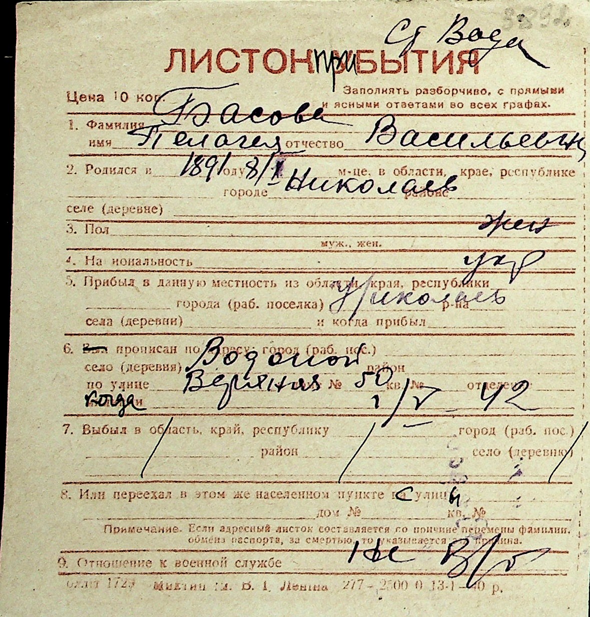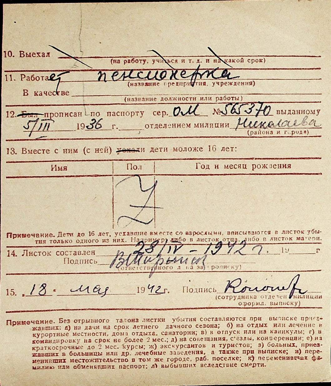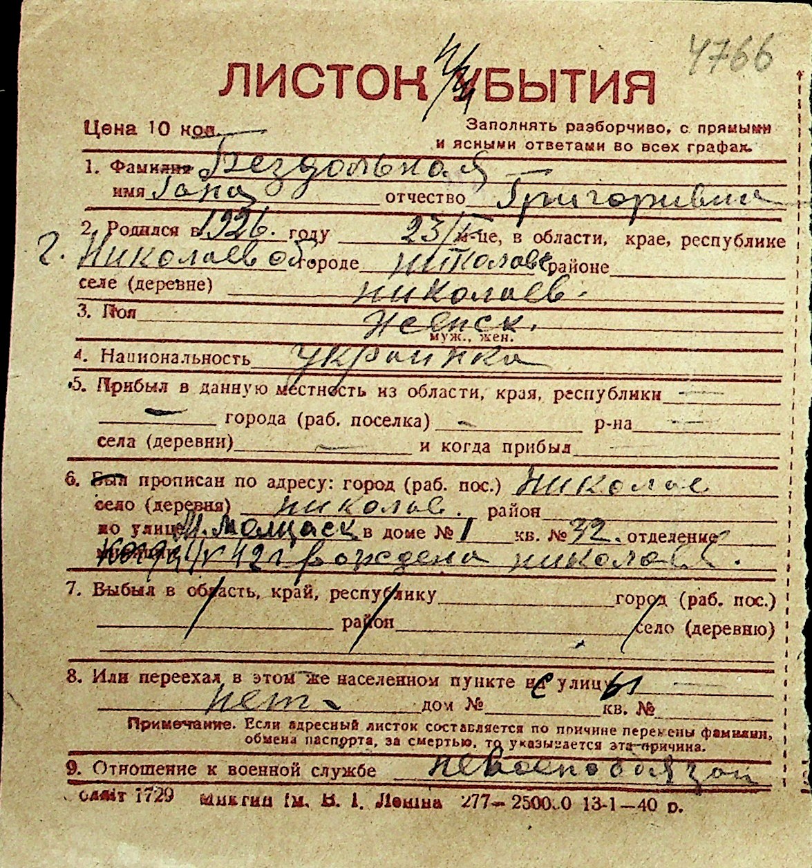 ◦ ◦ Перелік карток на осіб, які мешкали у м. Миколаїв у період окупації 1941–1944 років