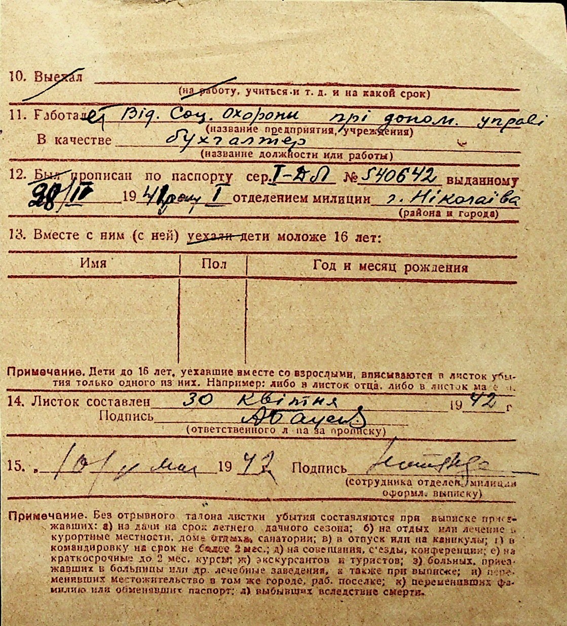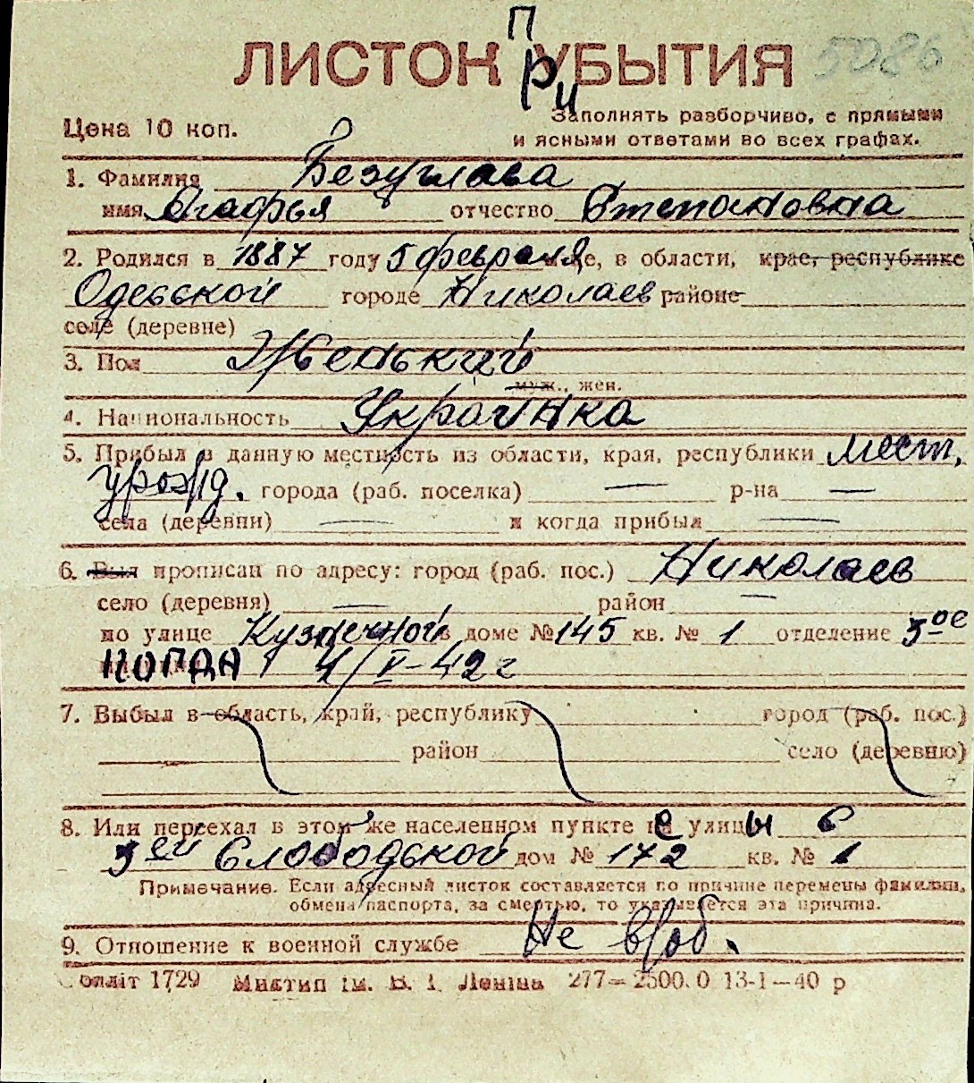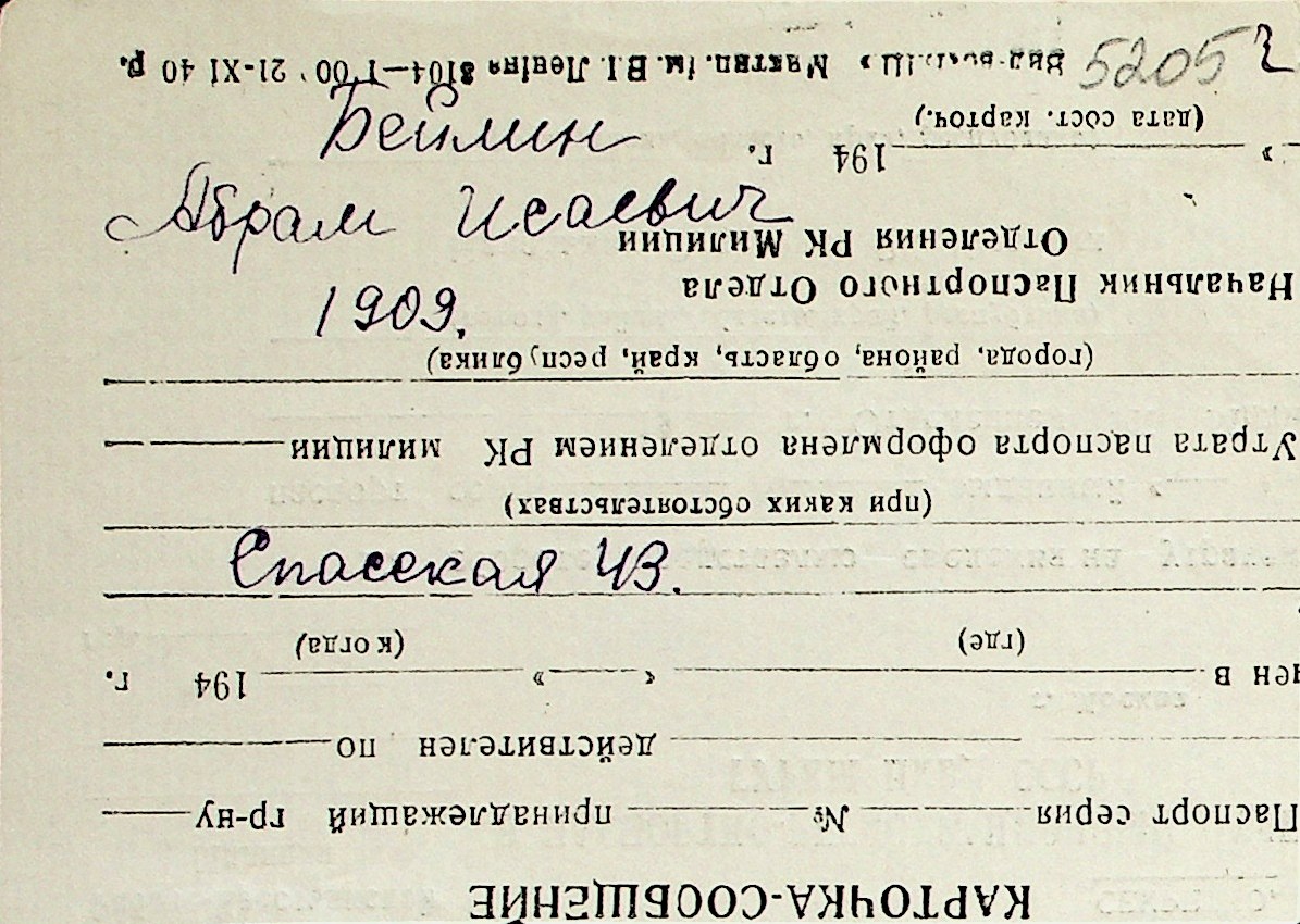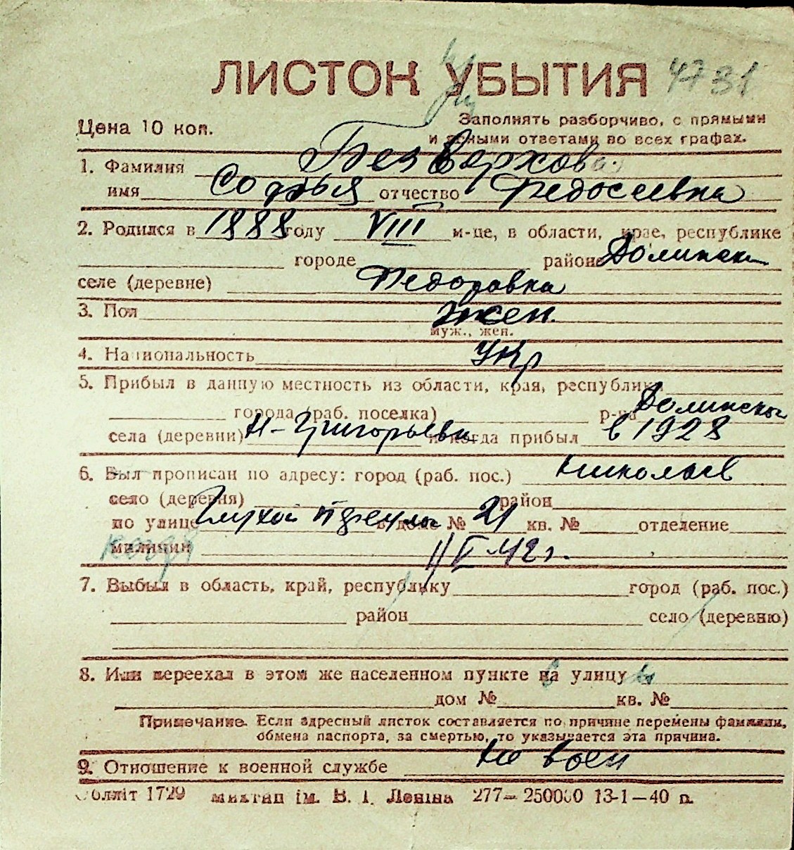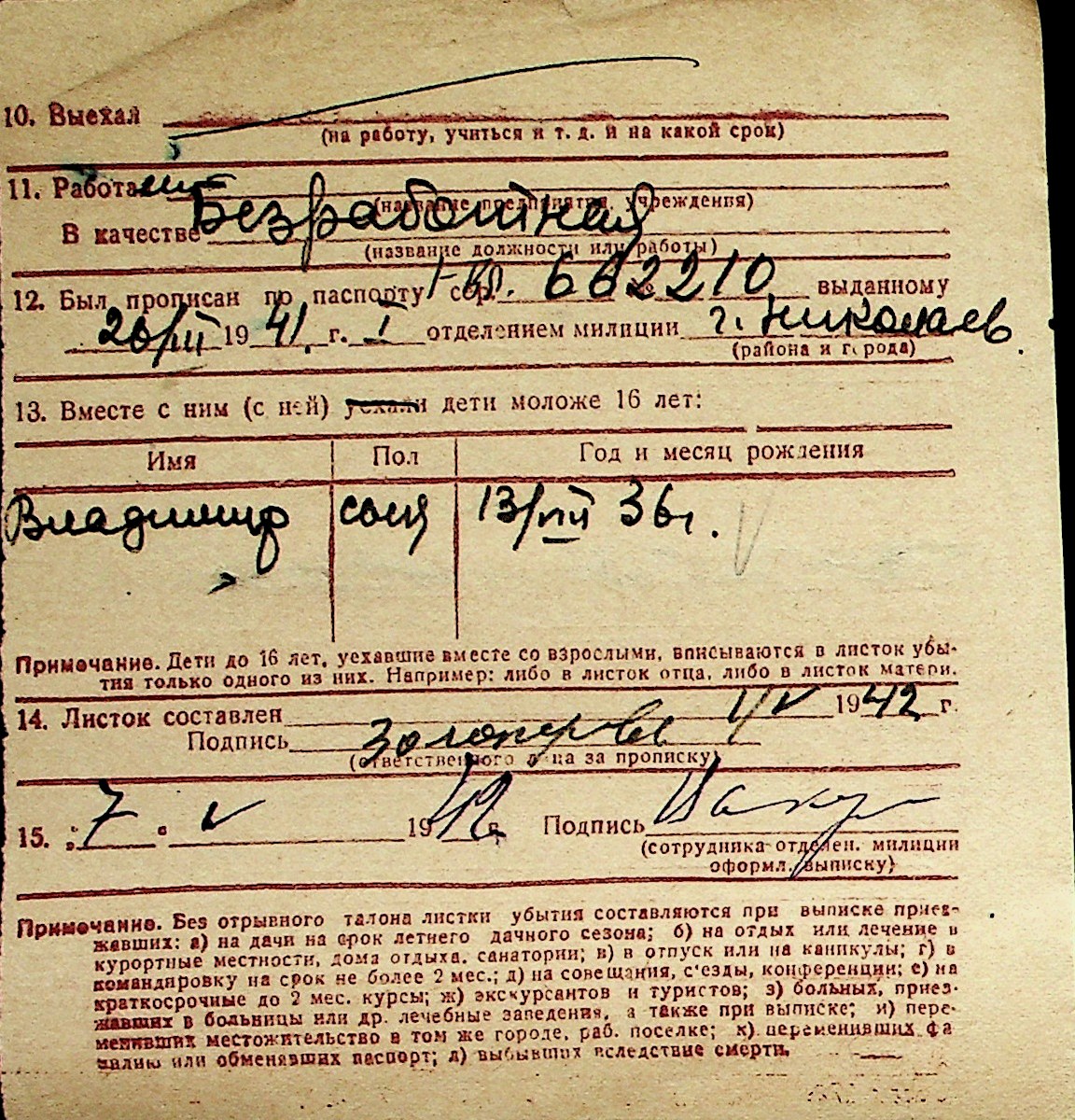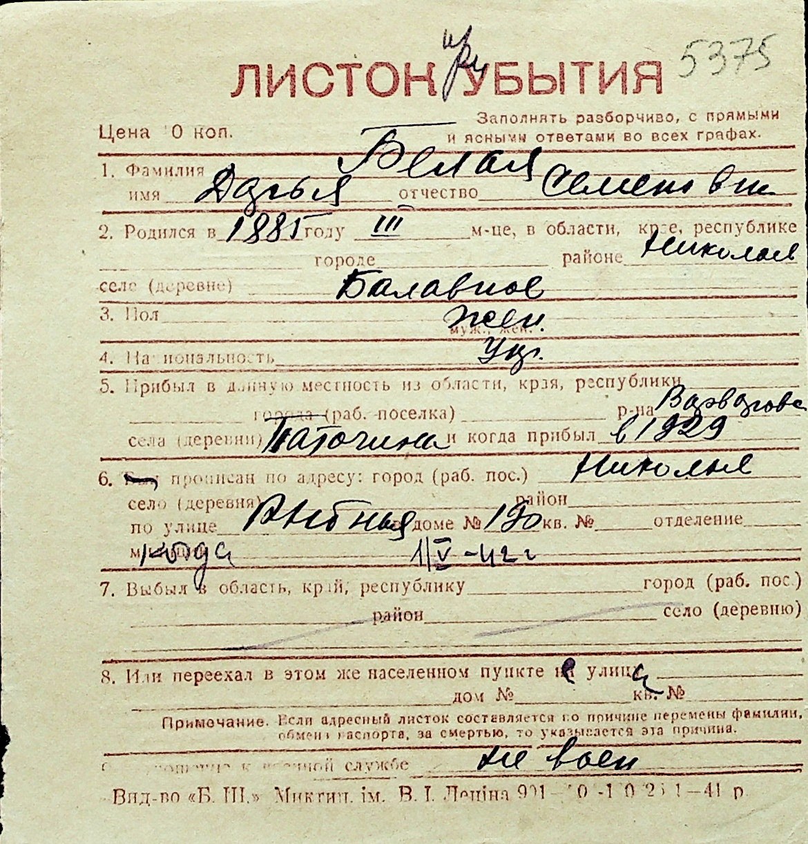 ◦ ◦ Перелік карток на осіб, які мешкали у м. Миколаїв у період окупації 1941–1944 років