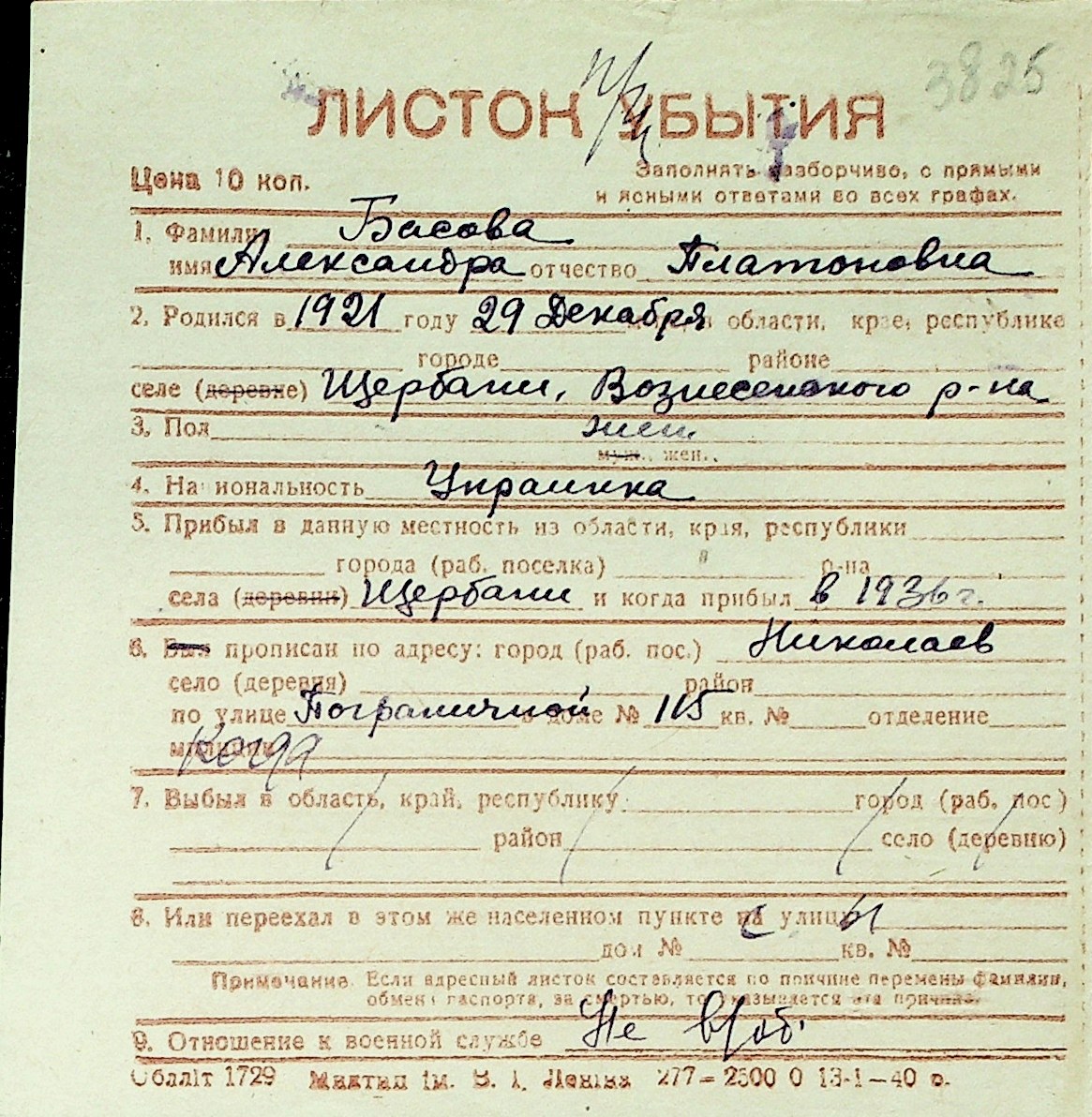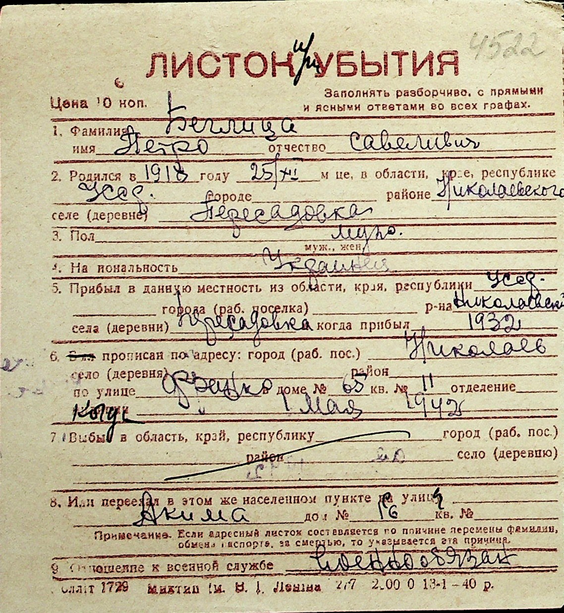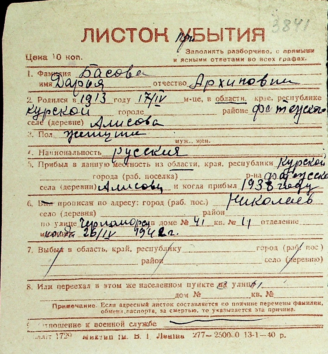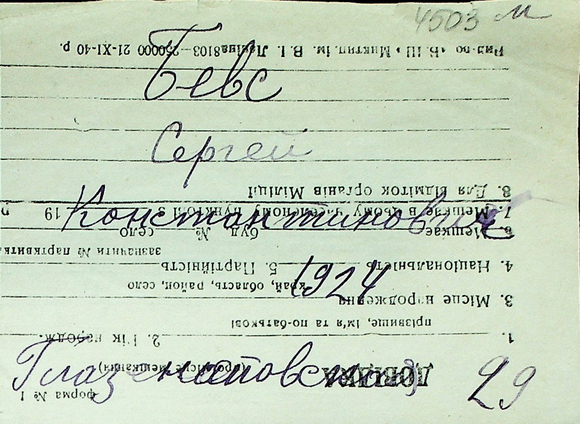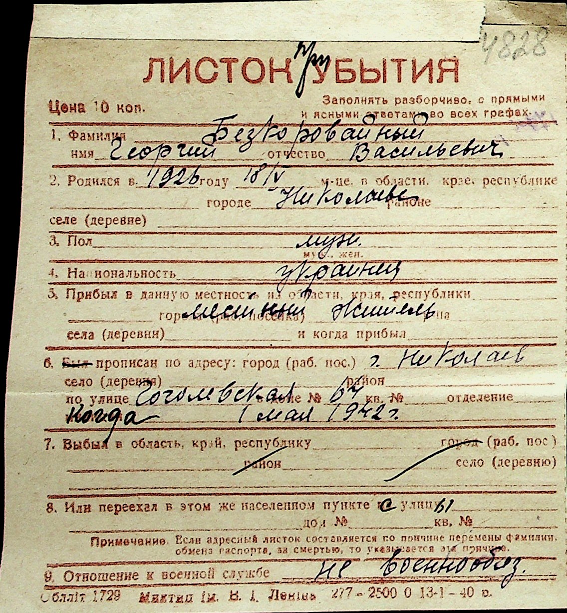 ◦ ◦ Перелік карток на осіб, які мешкали у м. Миколаїв у період окупації 1941–1944 років