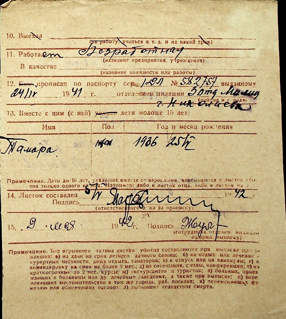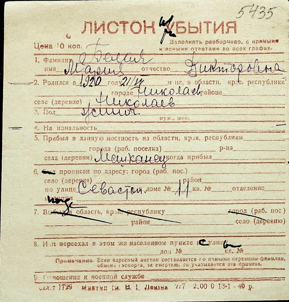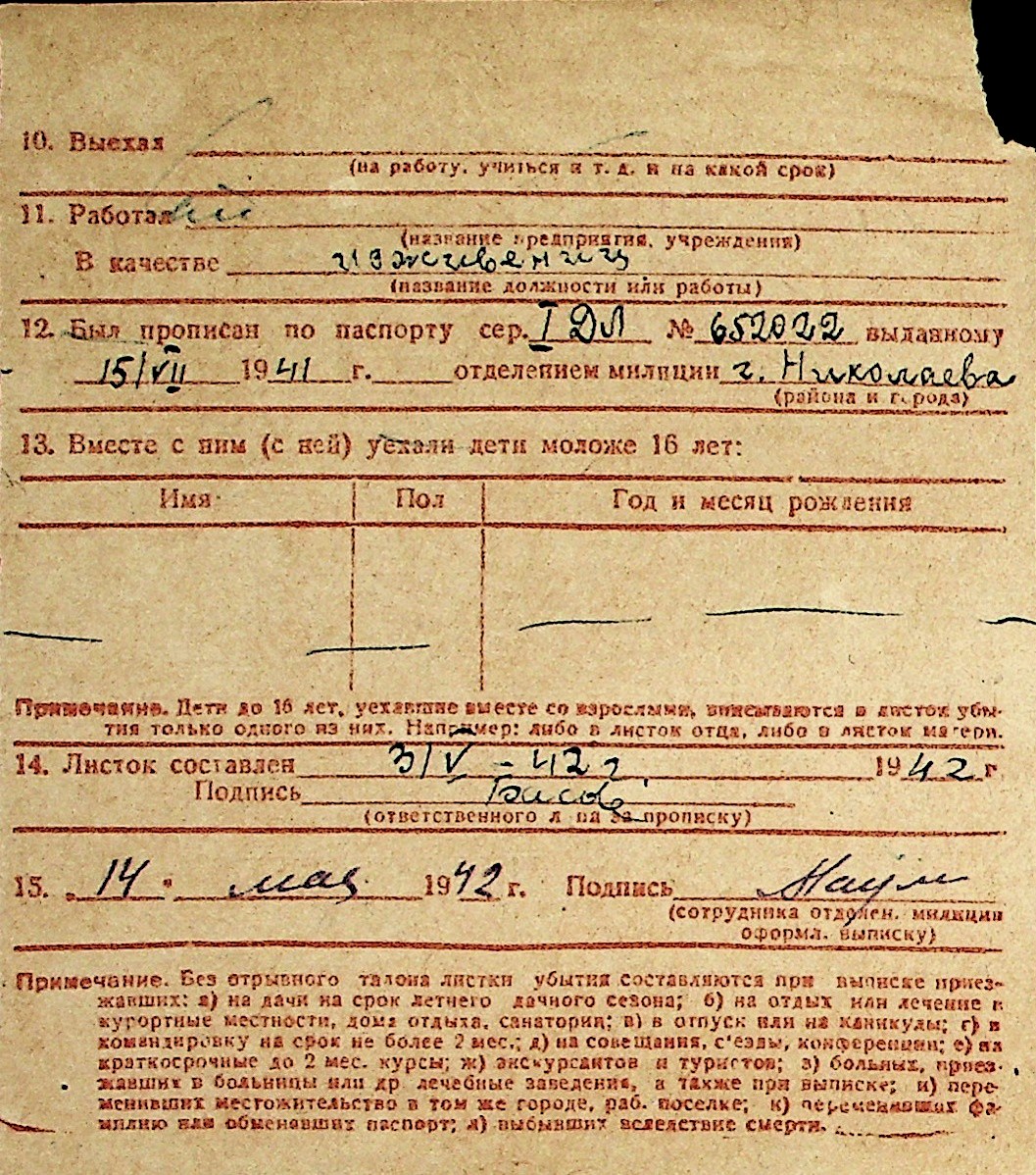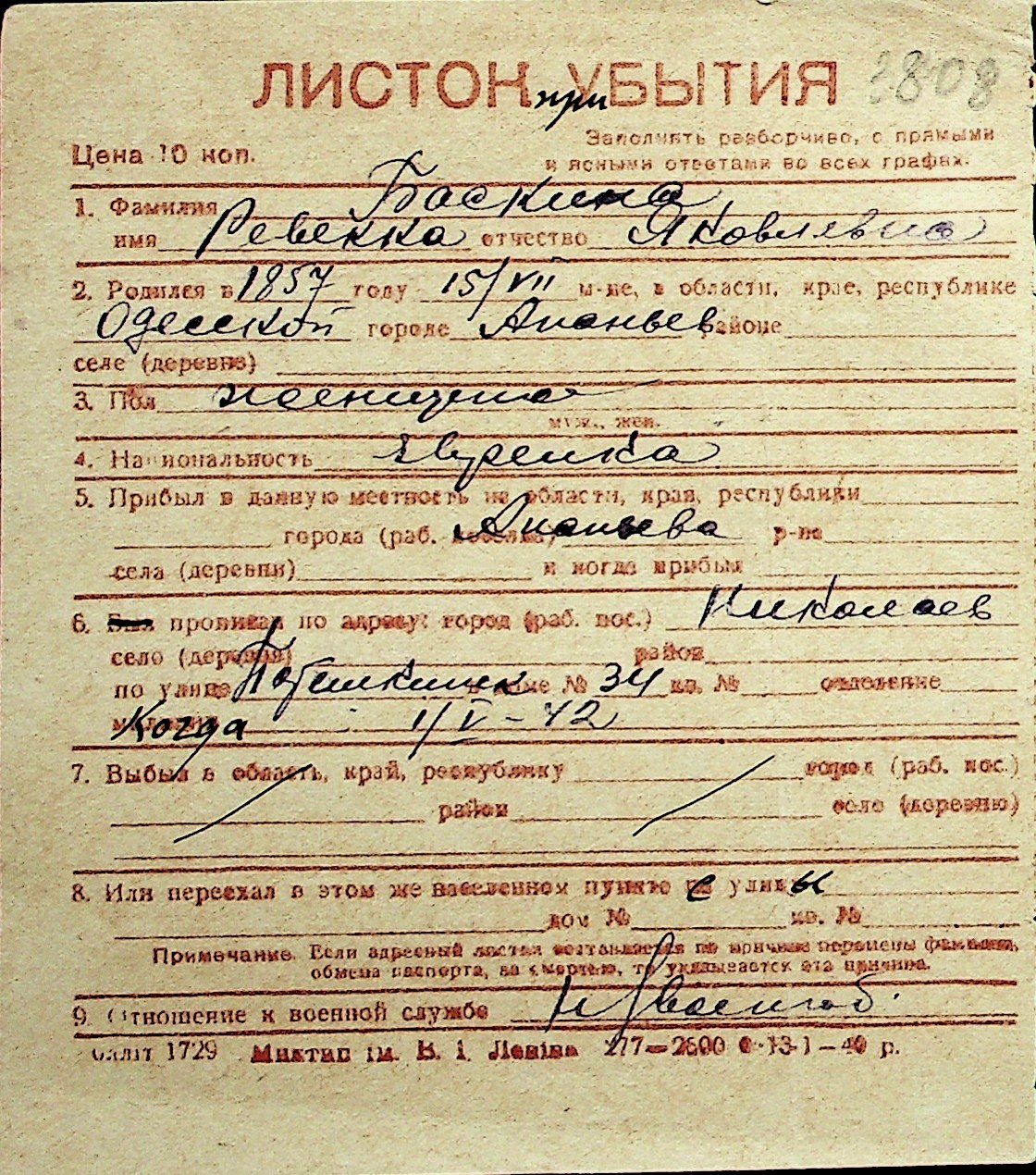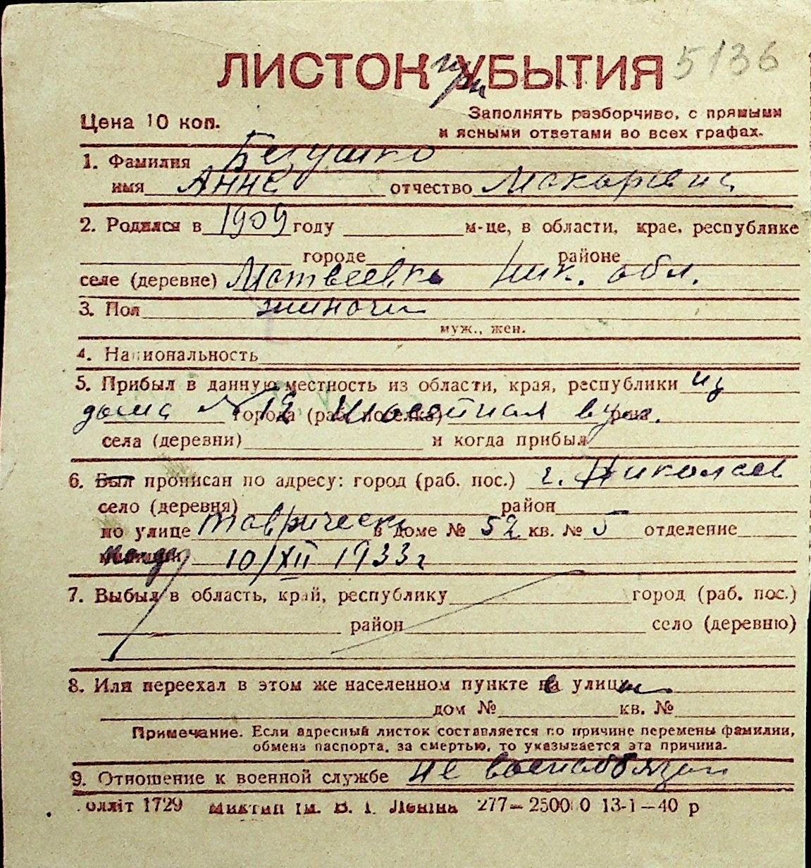◦ ◦ Перелік карток на осіб, які мешкали у м. Миколаїв у період окупації 1941–1944 років