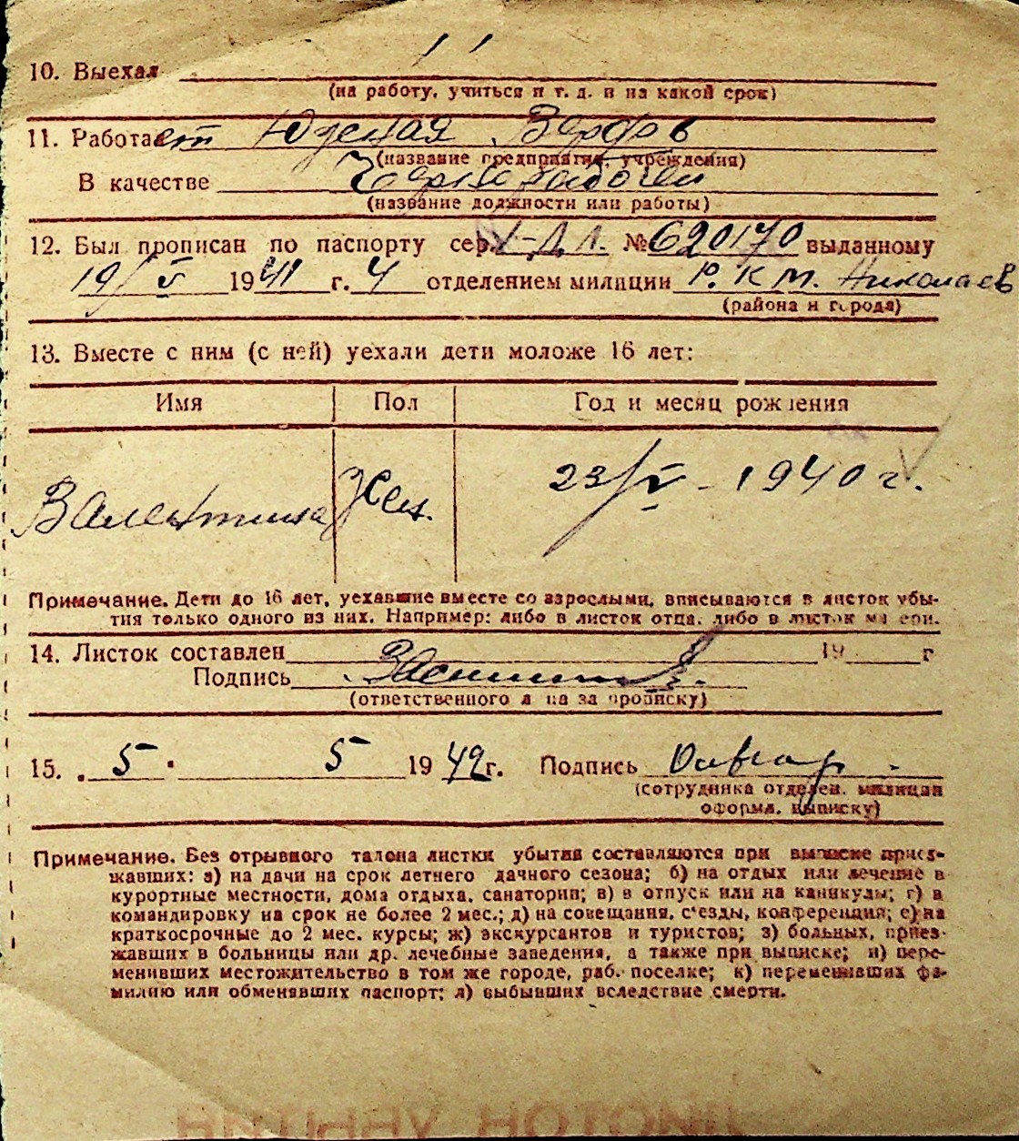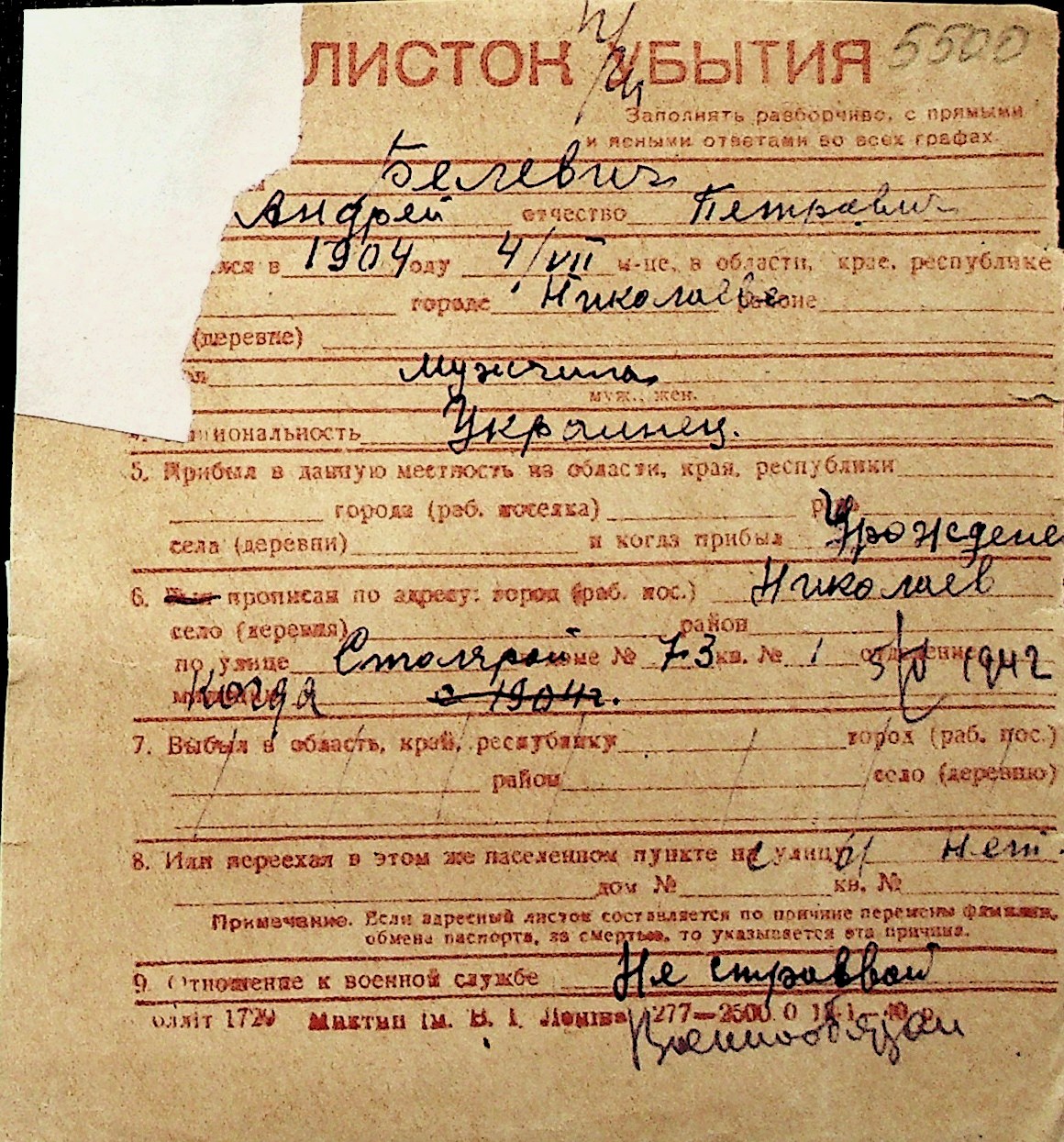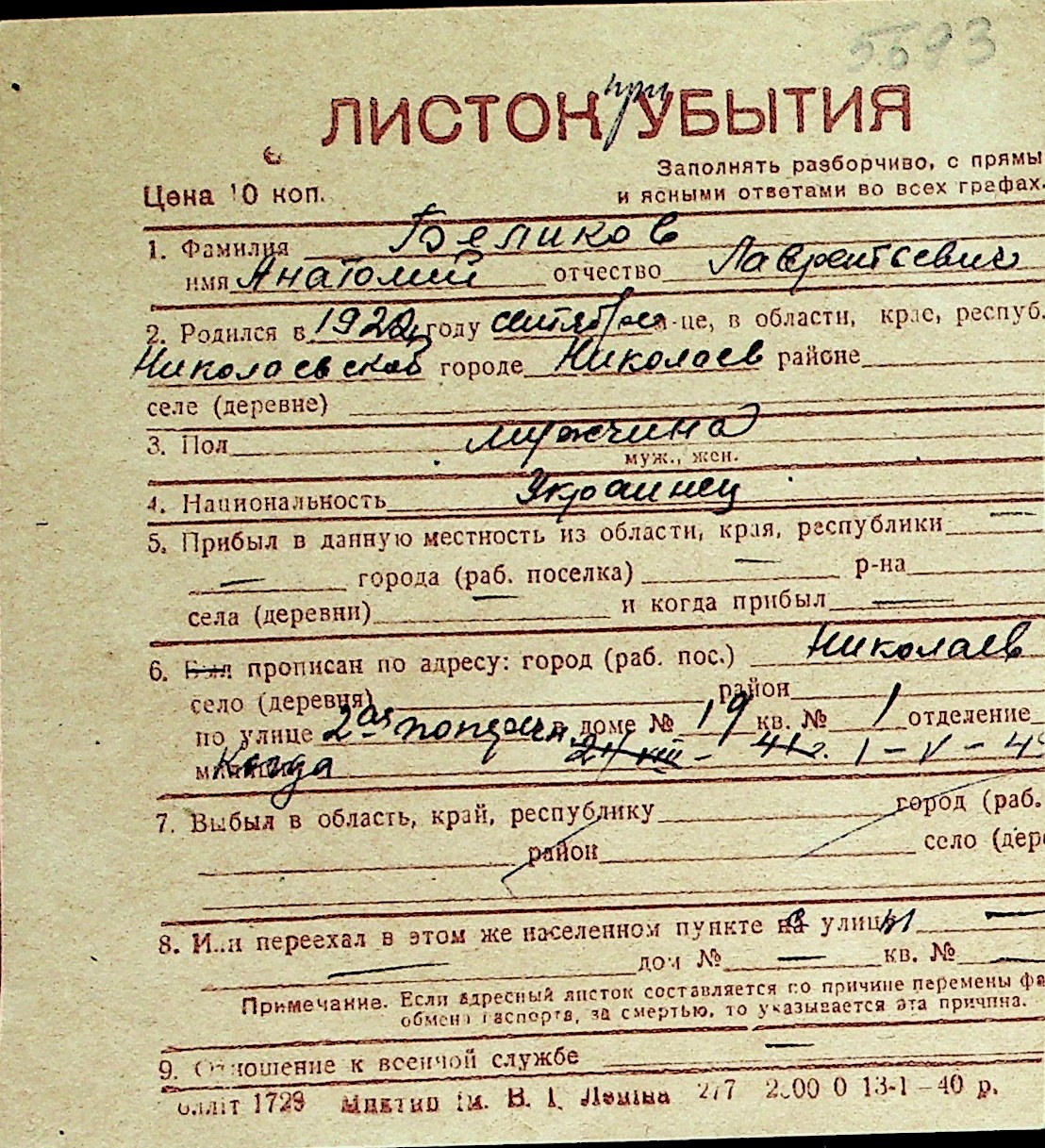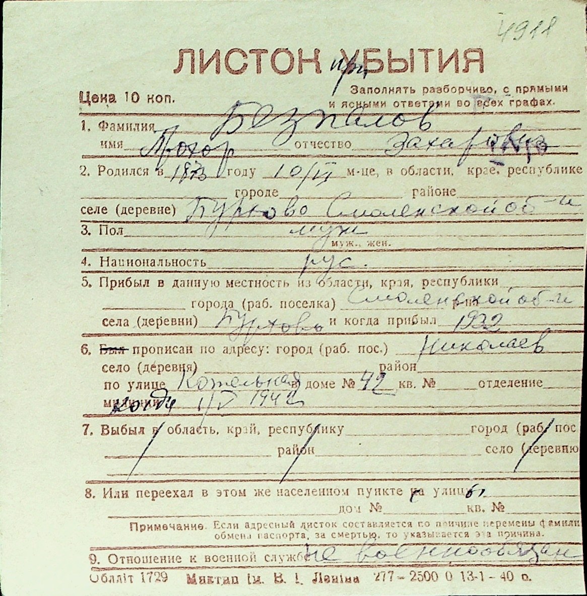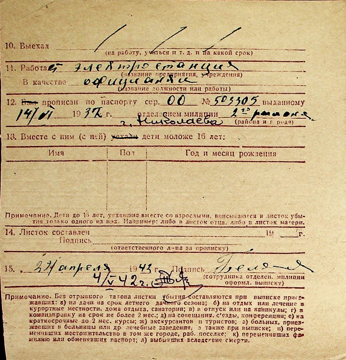 ◦ ◦ Перелік карток на осіб, які мешкали у м. Миколаїв у період окупації 1941–1944 років