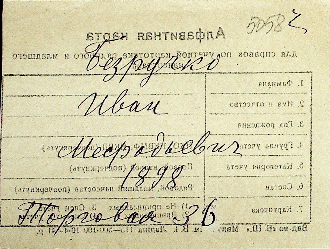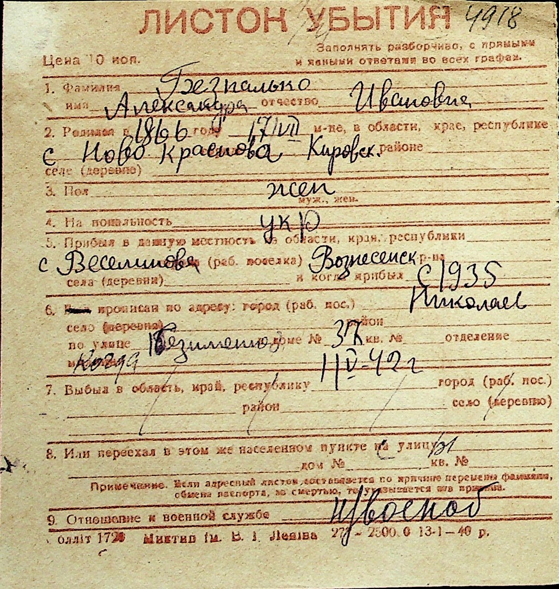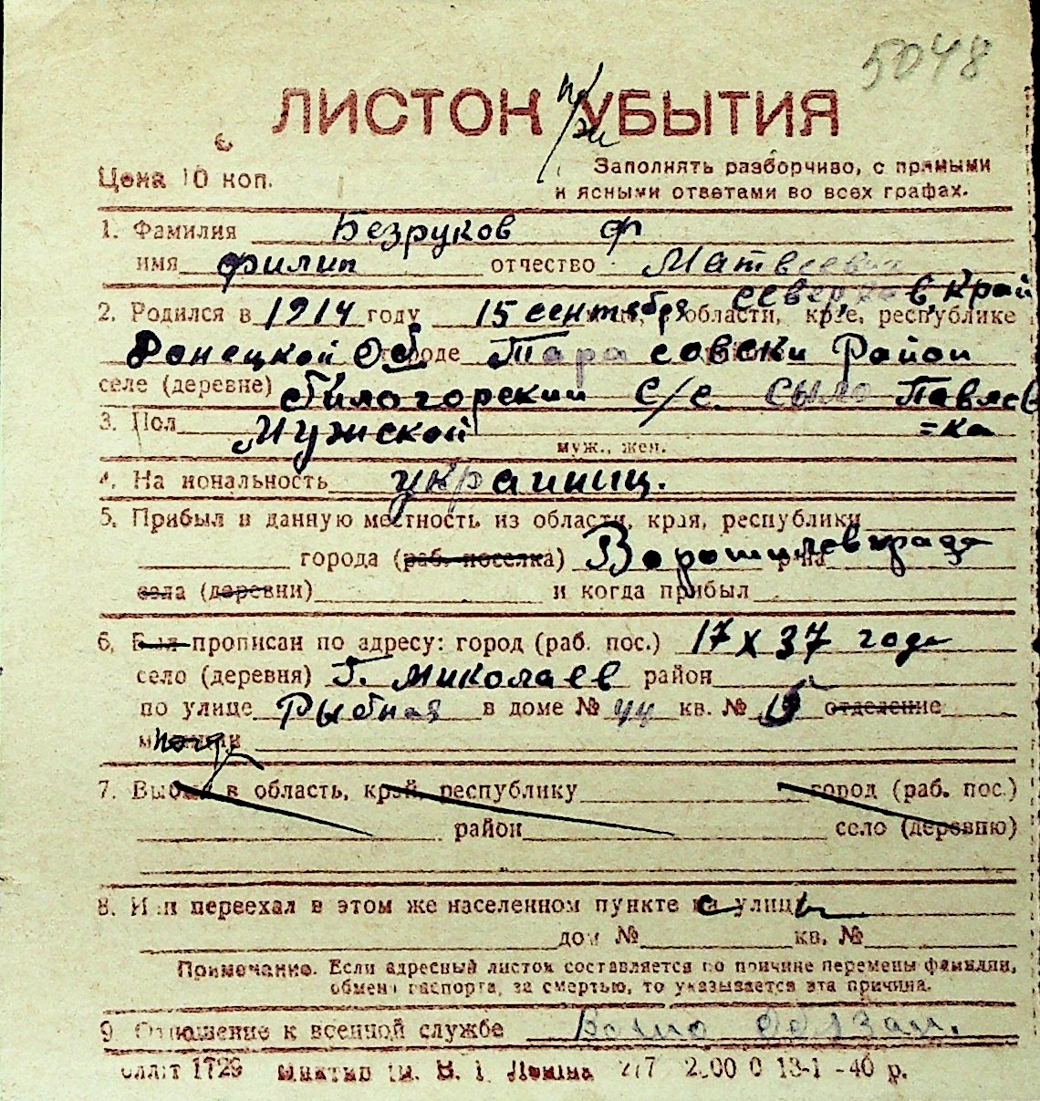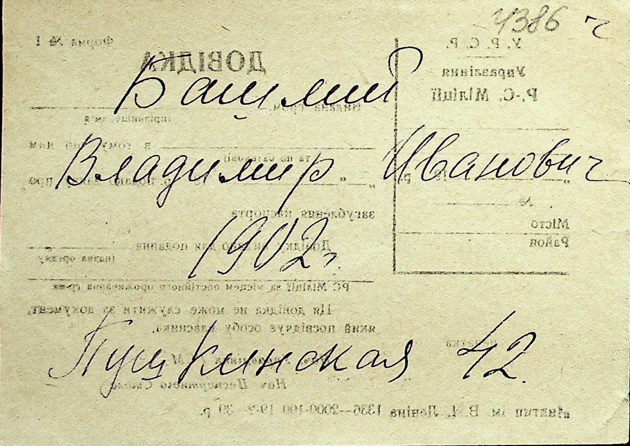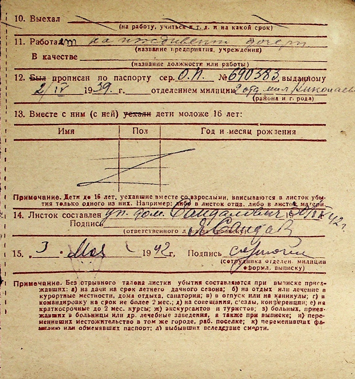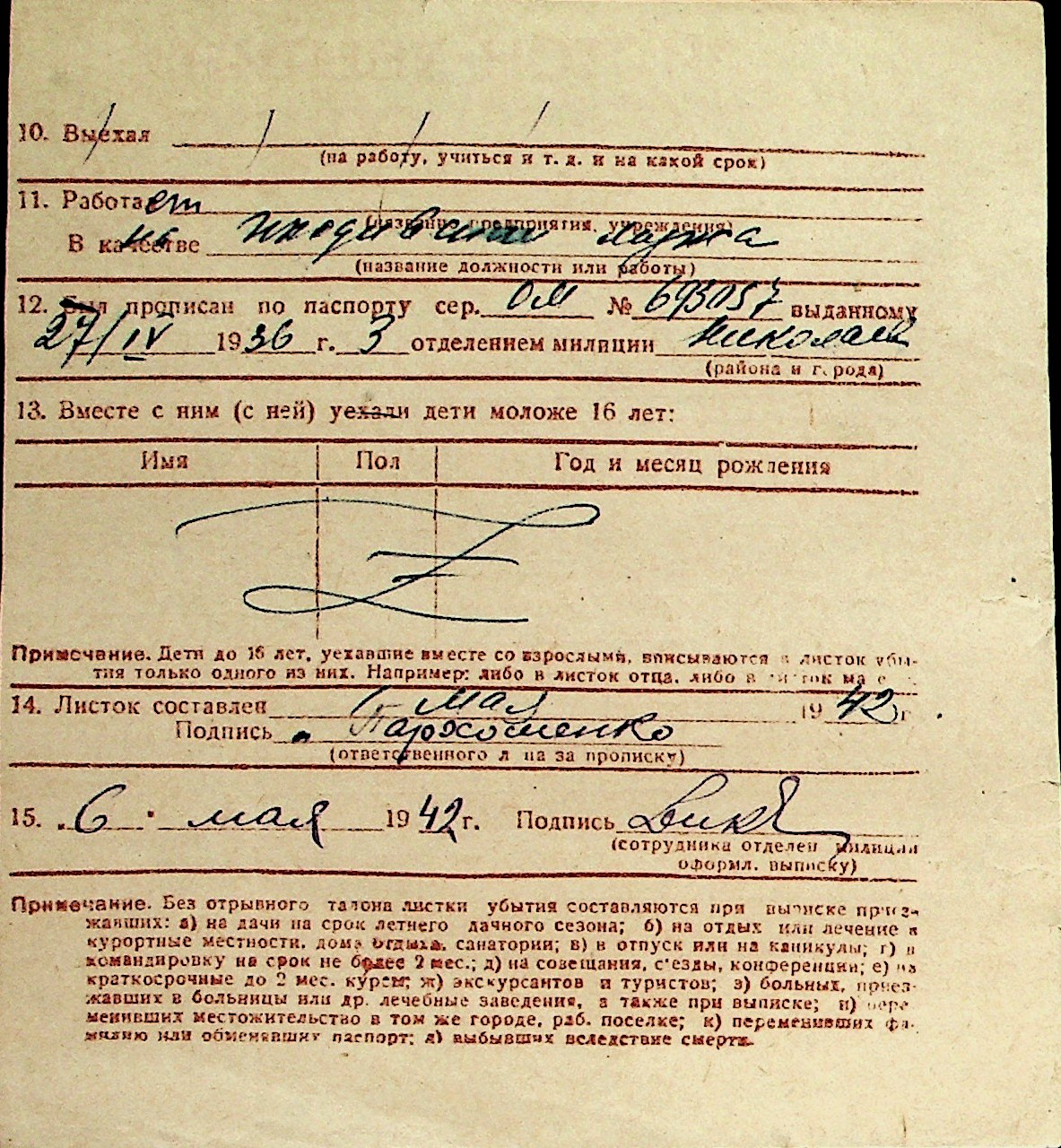 ◦ ◦ Перелік карток на осіб, які мешкали у м. Миколаїв у період окупації 1941–1944 років