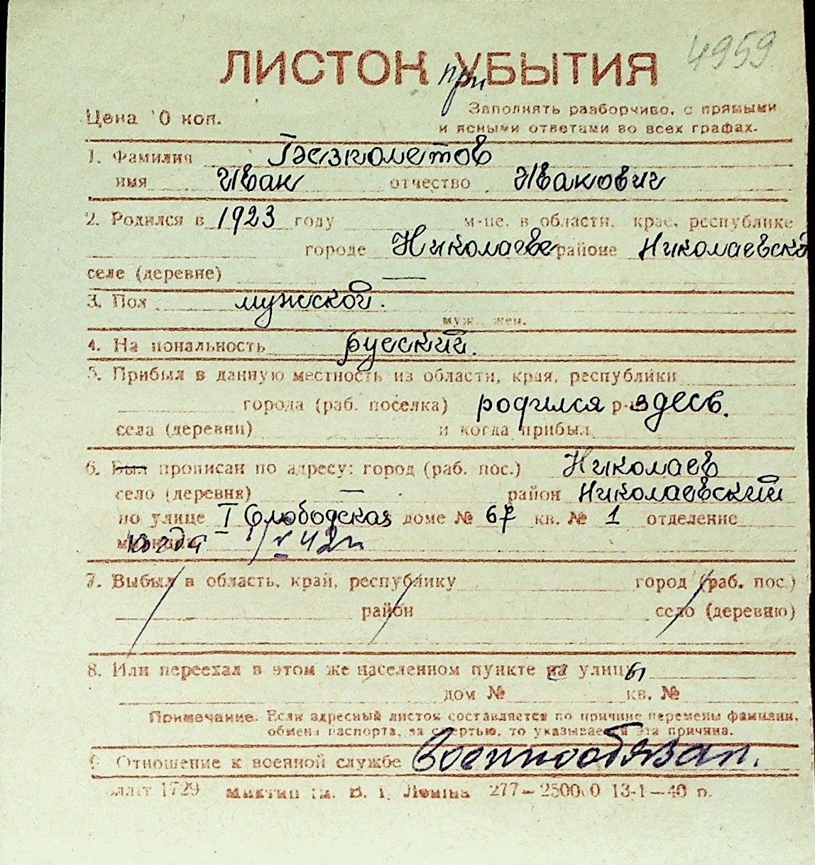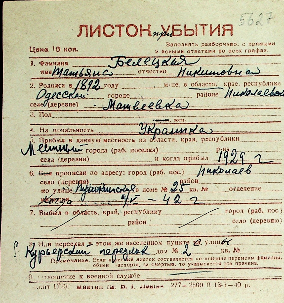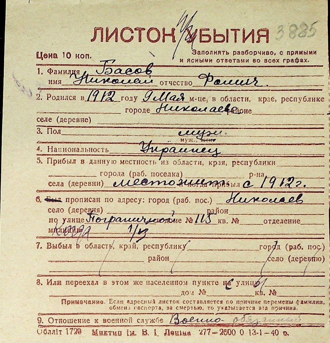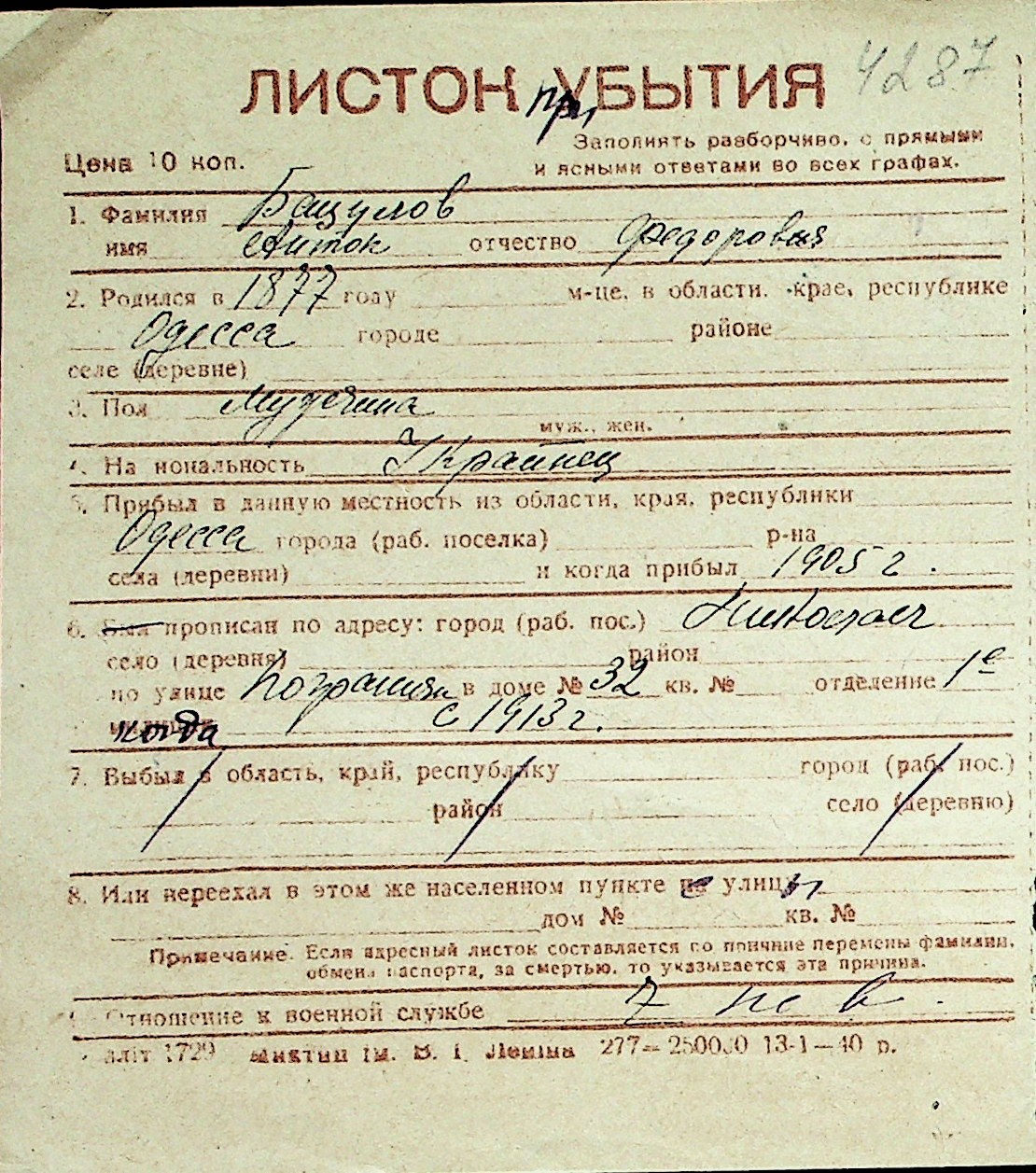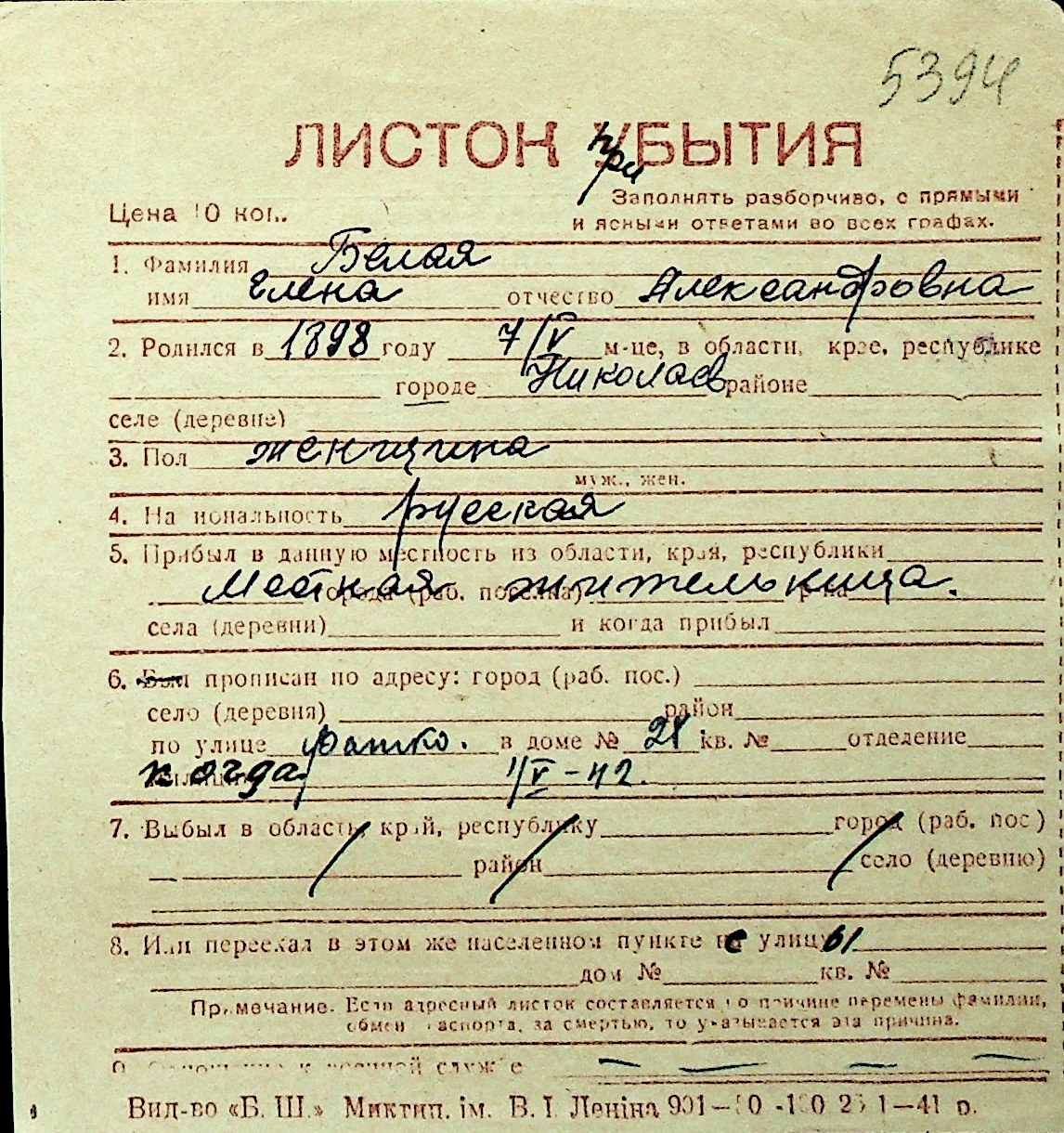 ◦ ◦ Перелік карток на осіб, які мешкали у м. Миколаїв у період окупації 1941–1944 років