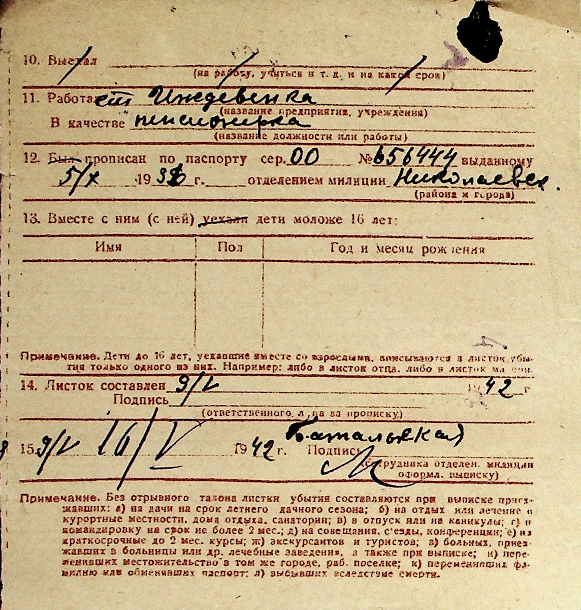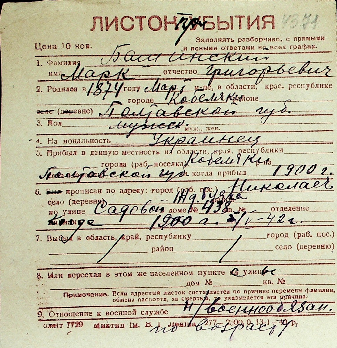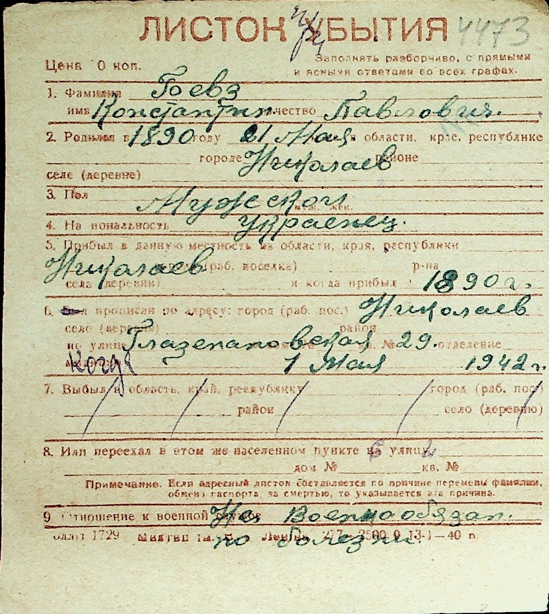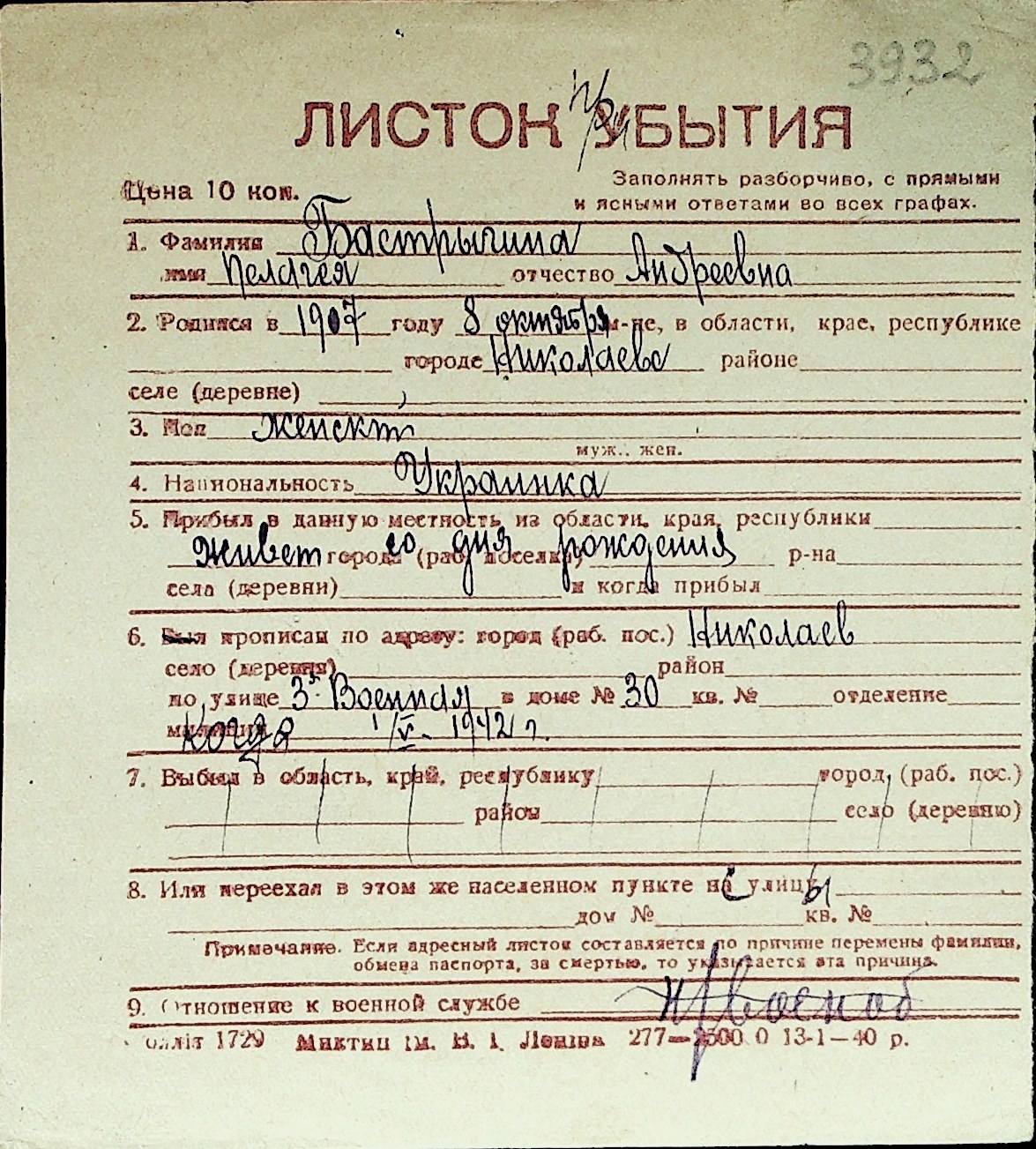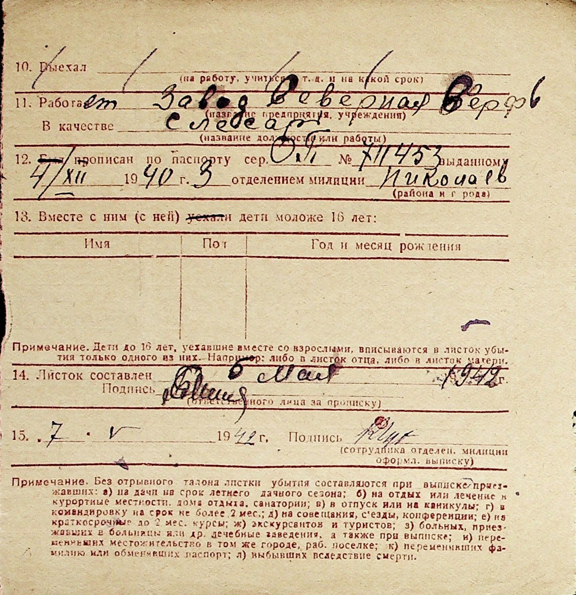 ◦ ◦ Перелік карток на осіб, які мешкали у м. Миколаїв у період окупації 1941–1944 років